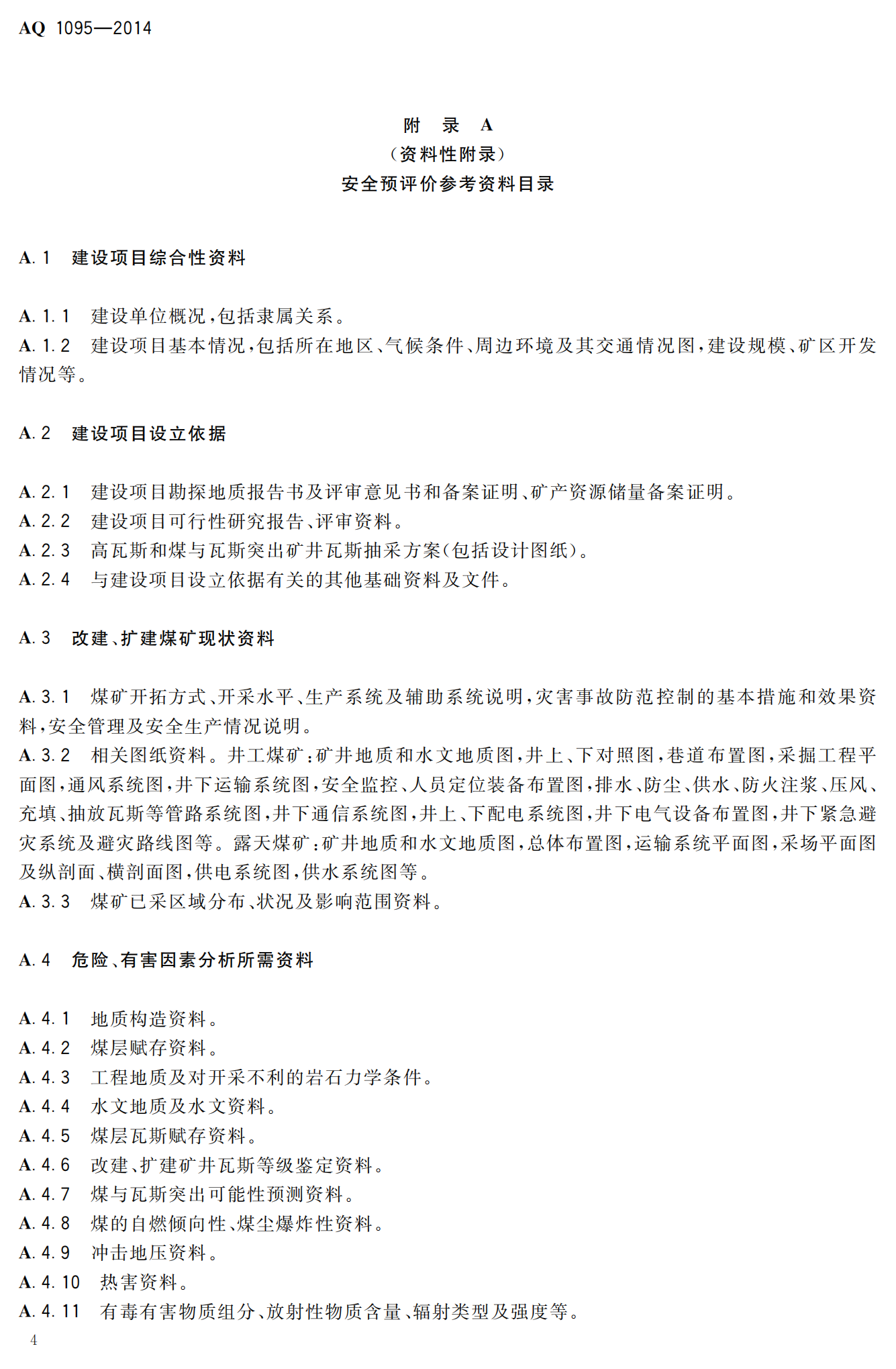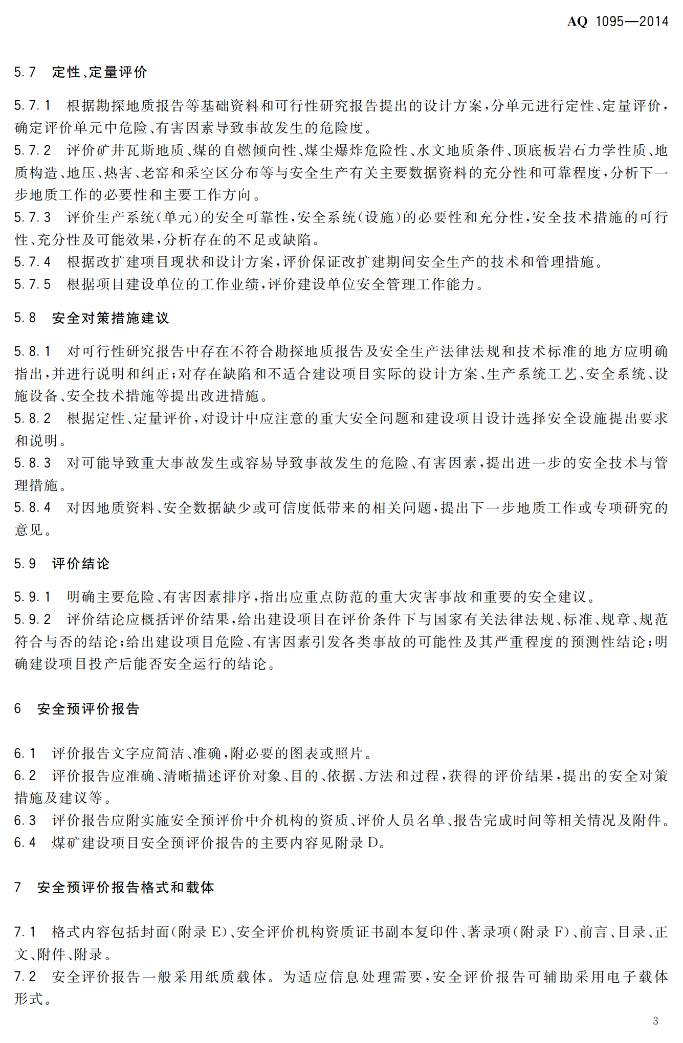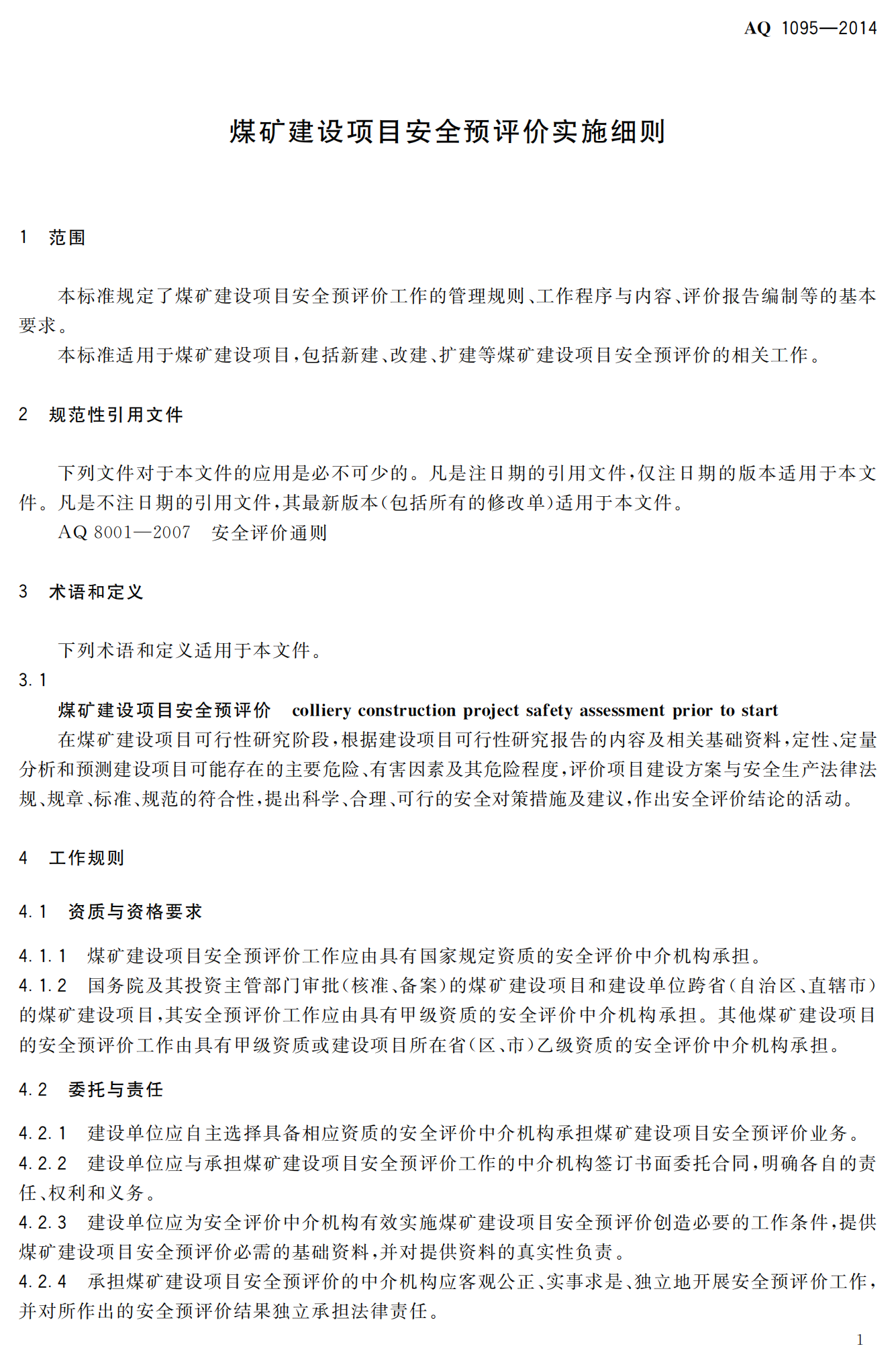 《煤矿建设项目安全预评价实施细则》(AQ1095-2014)