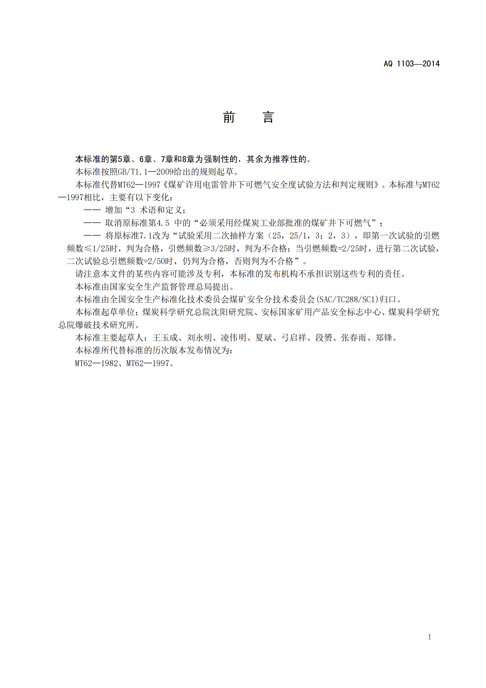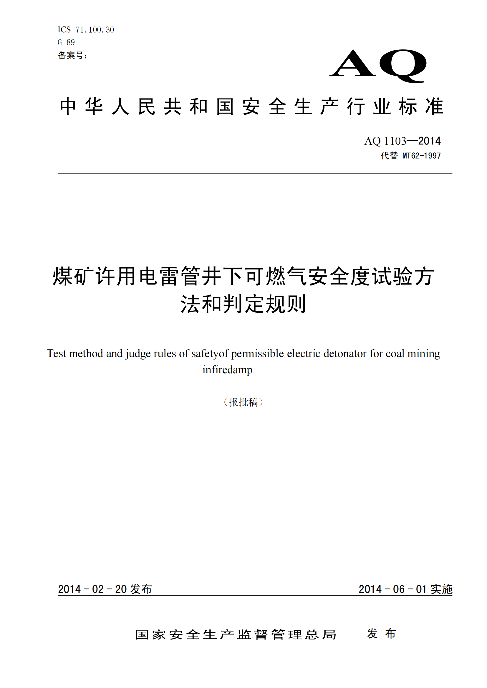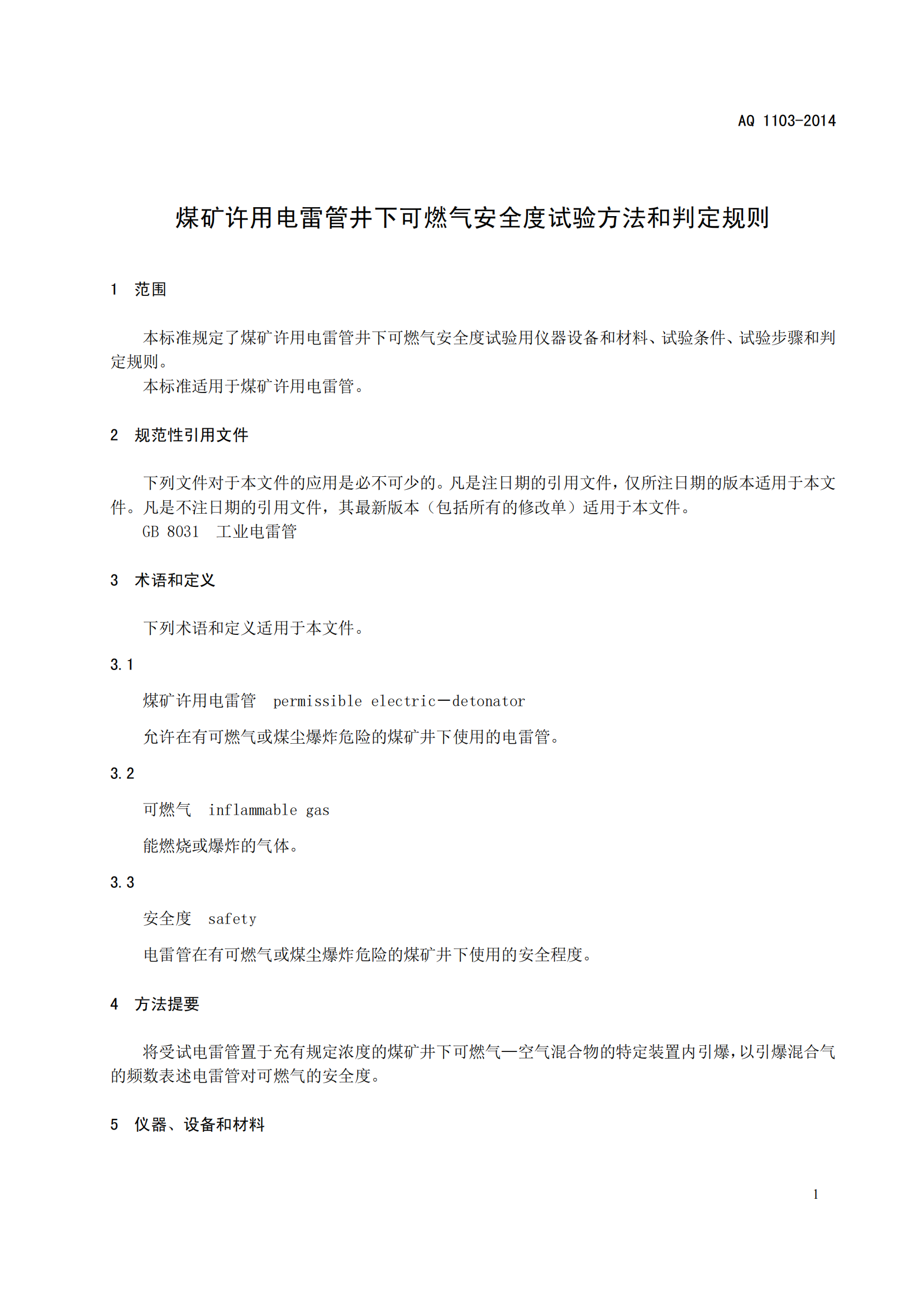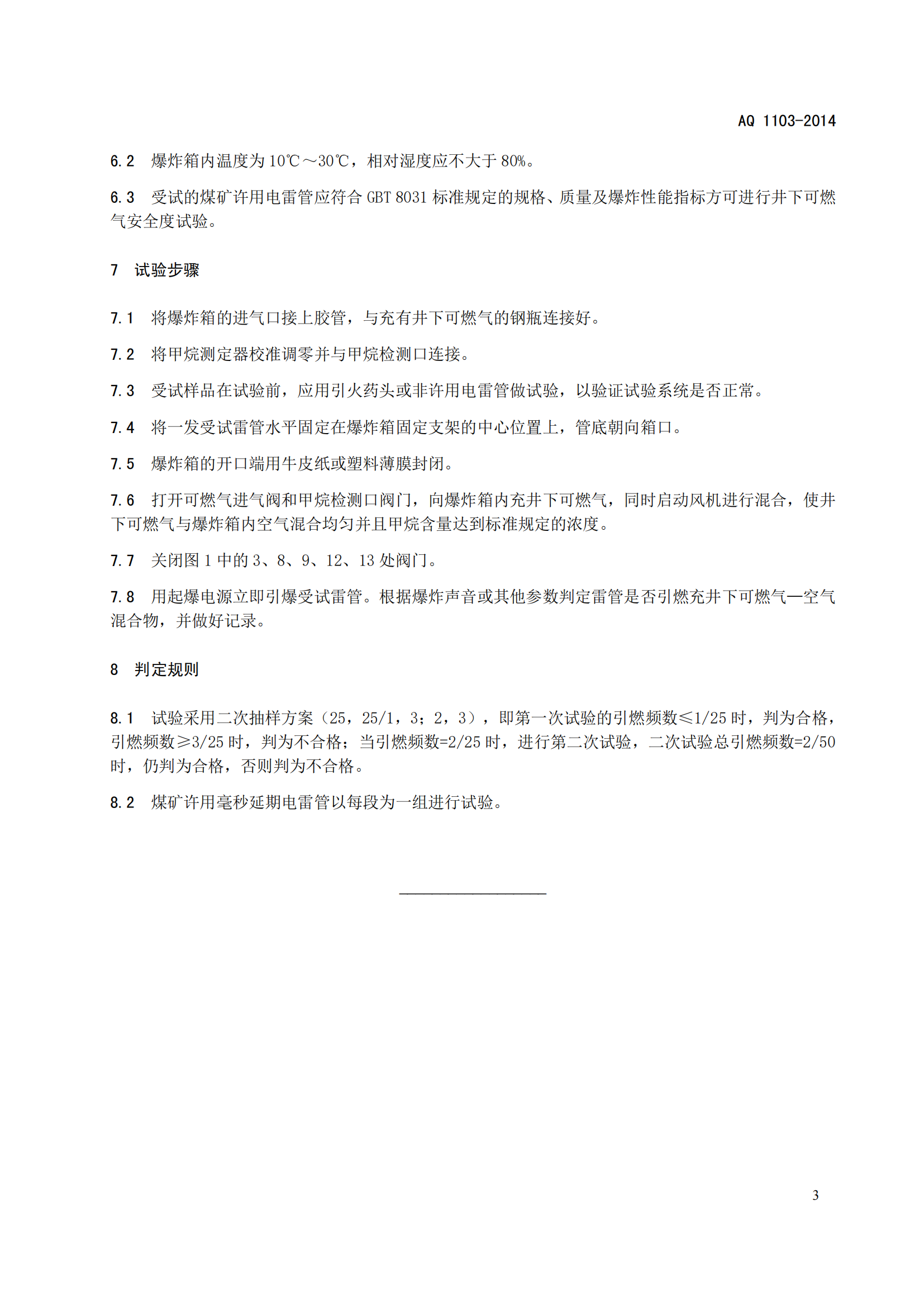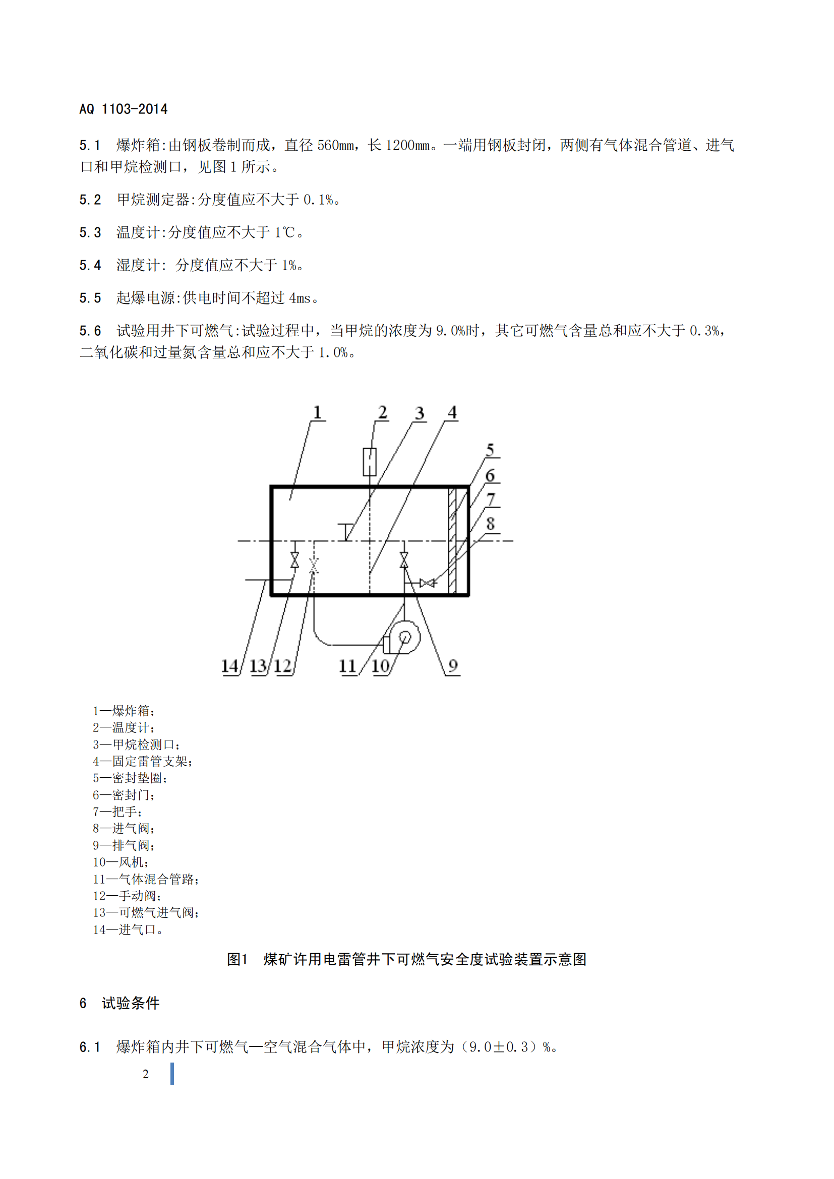 《煤矿许用电雷管井下可燃气安全度试验方法和判定规则》(AQ1103-2014)