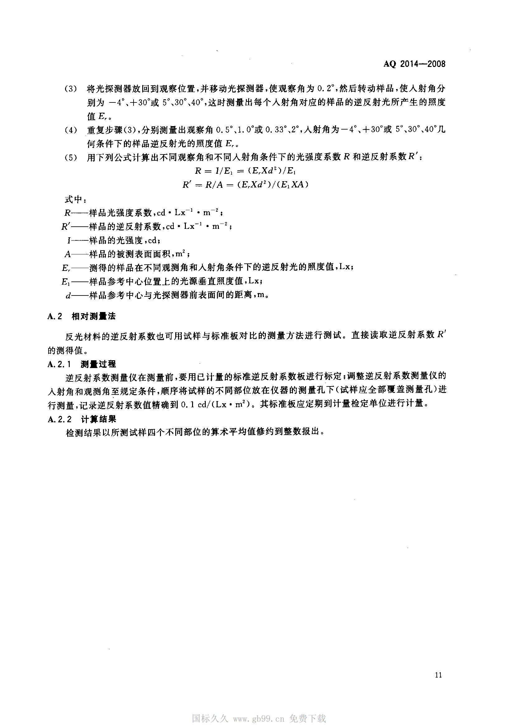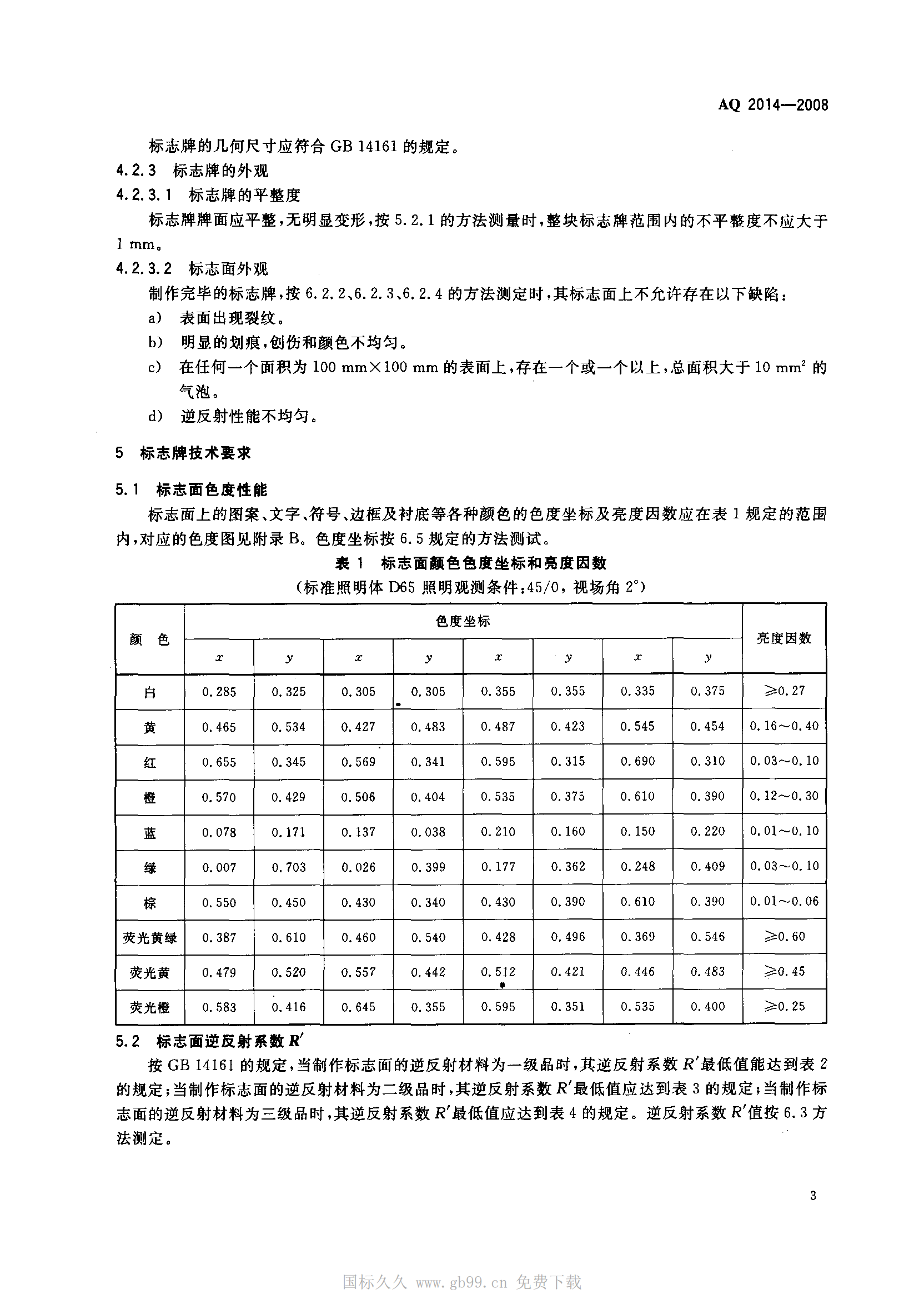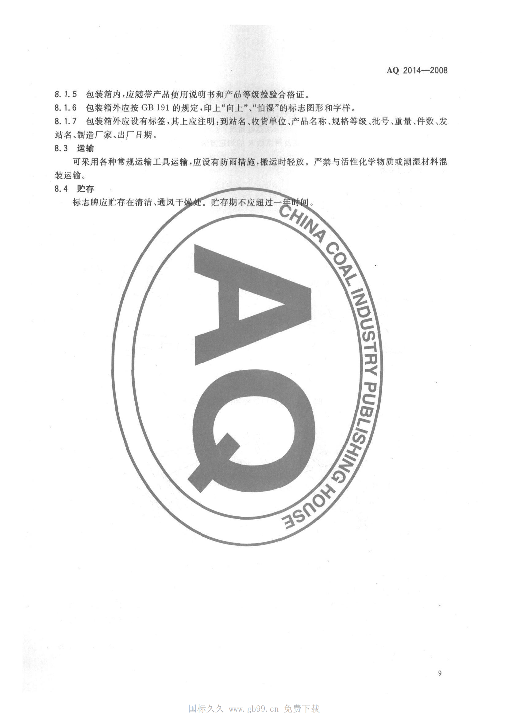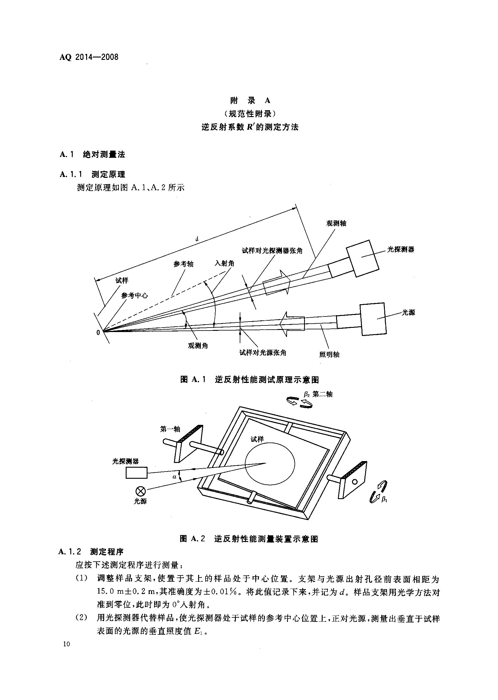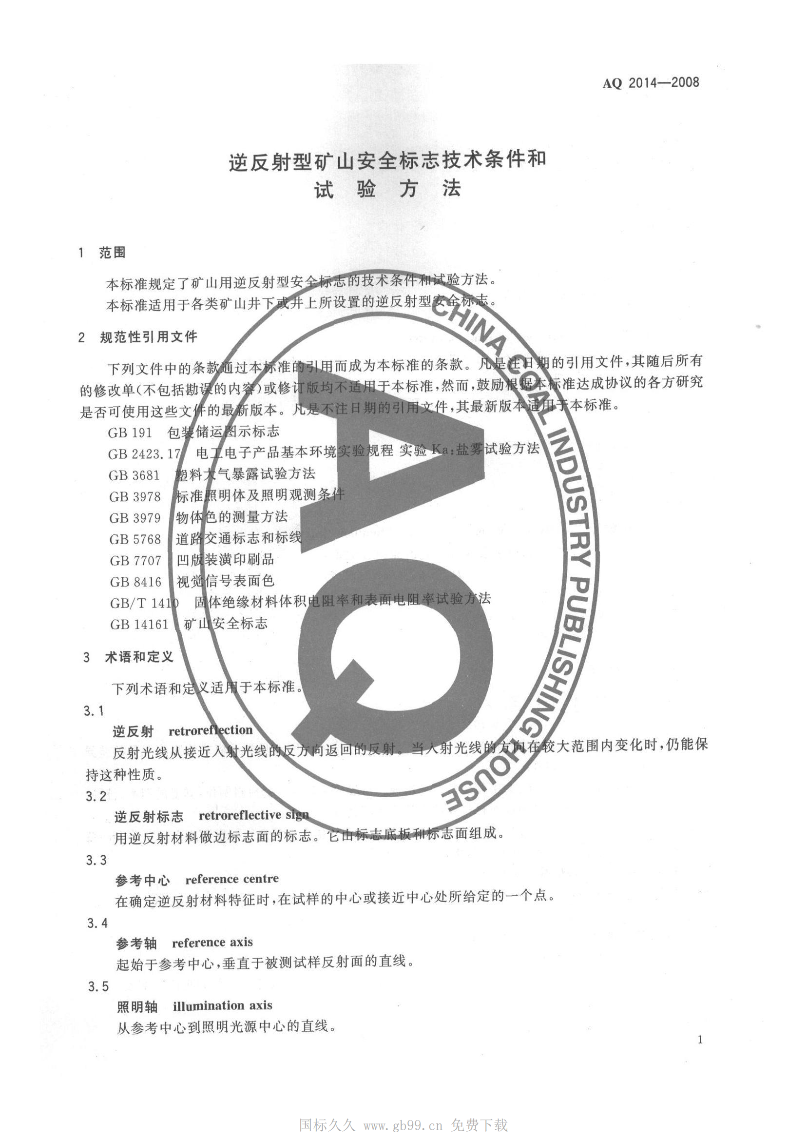 《逆反射型矿山安全标志技术条件和试验方法》(AQ2014-2008)
