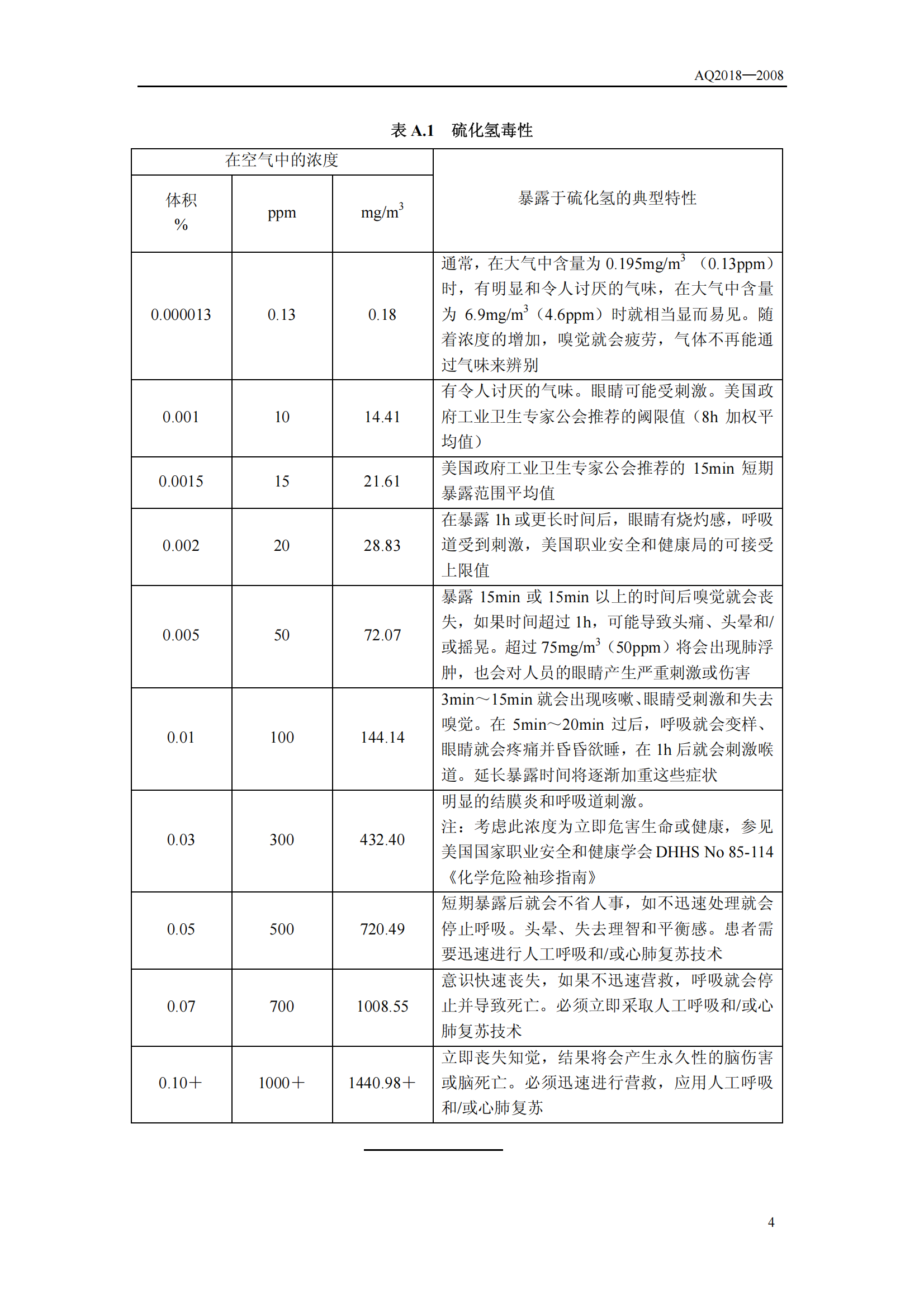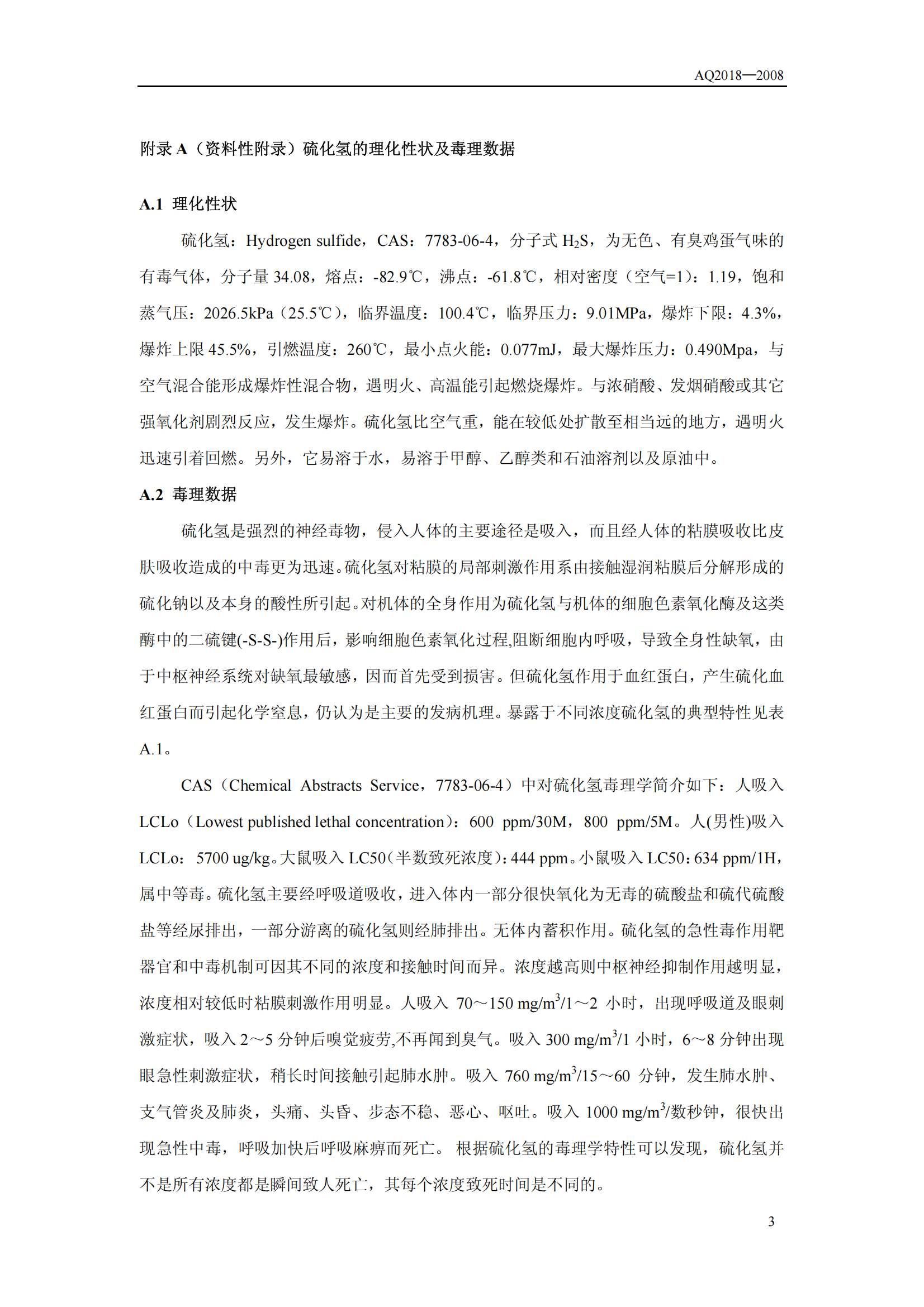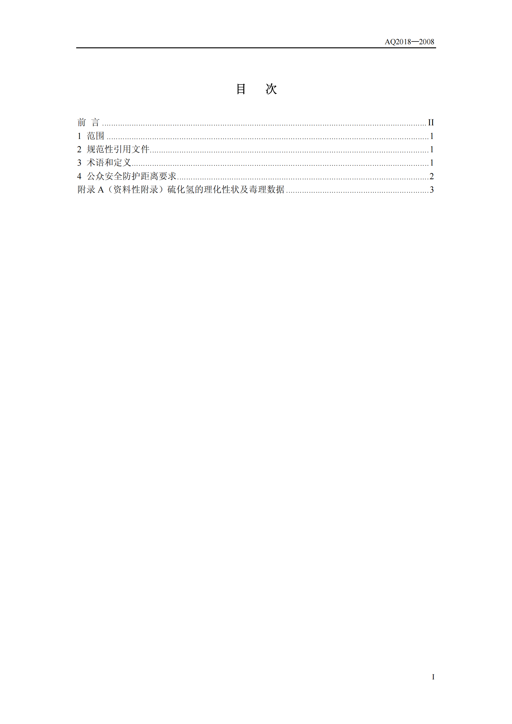《含硫化氢天然气井公众安全防护距离》(AQ2018-2008)