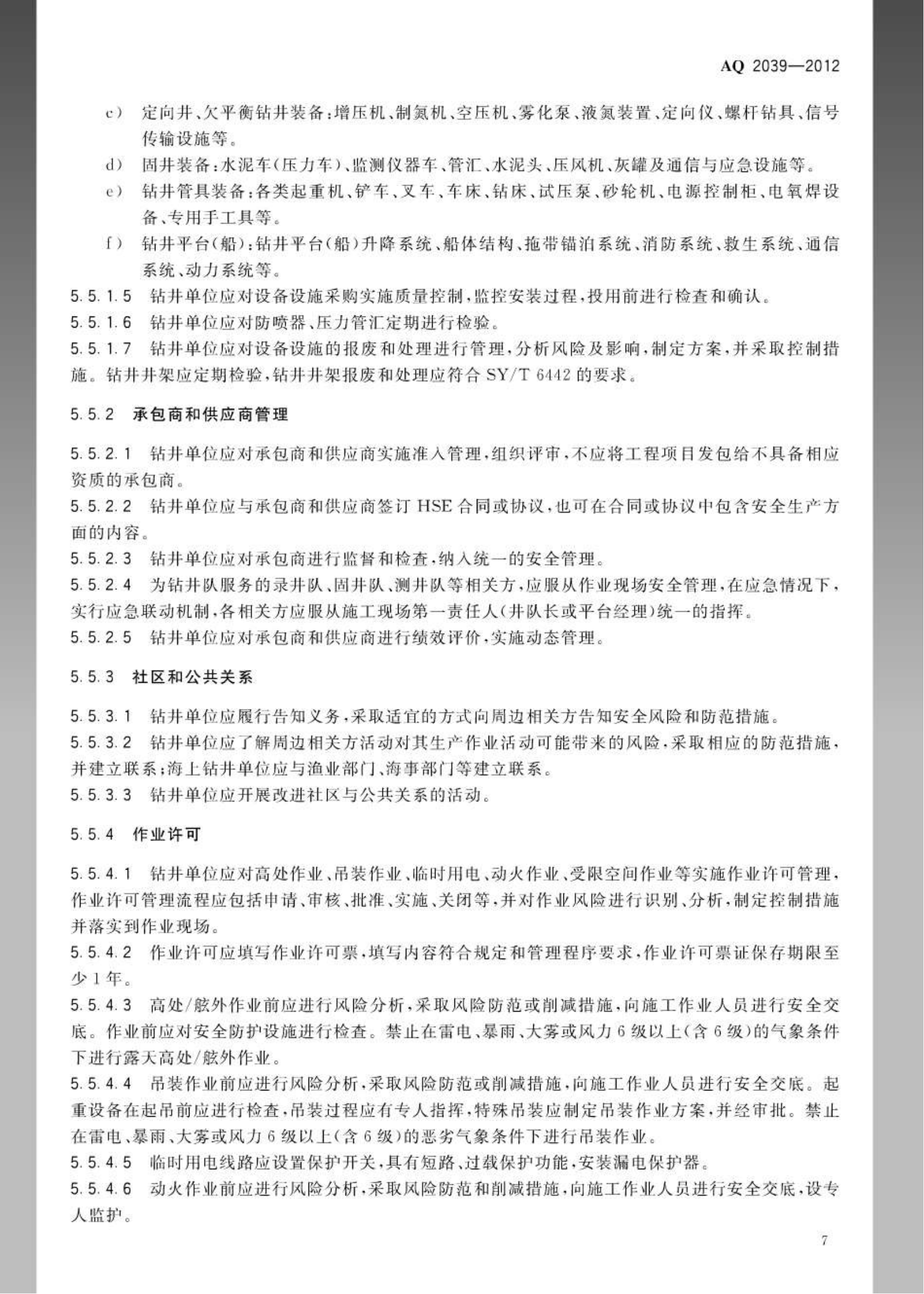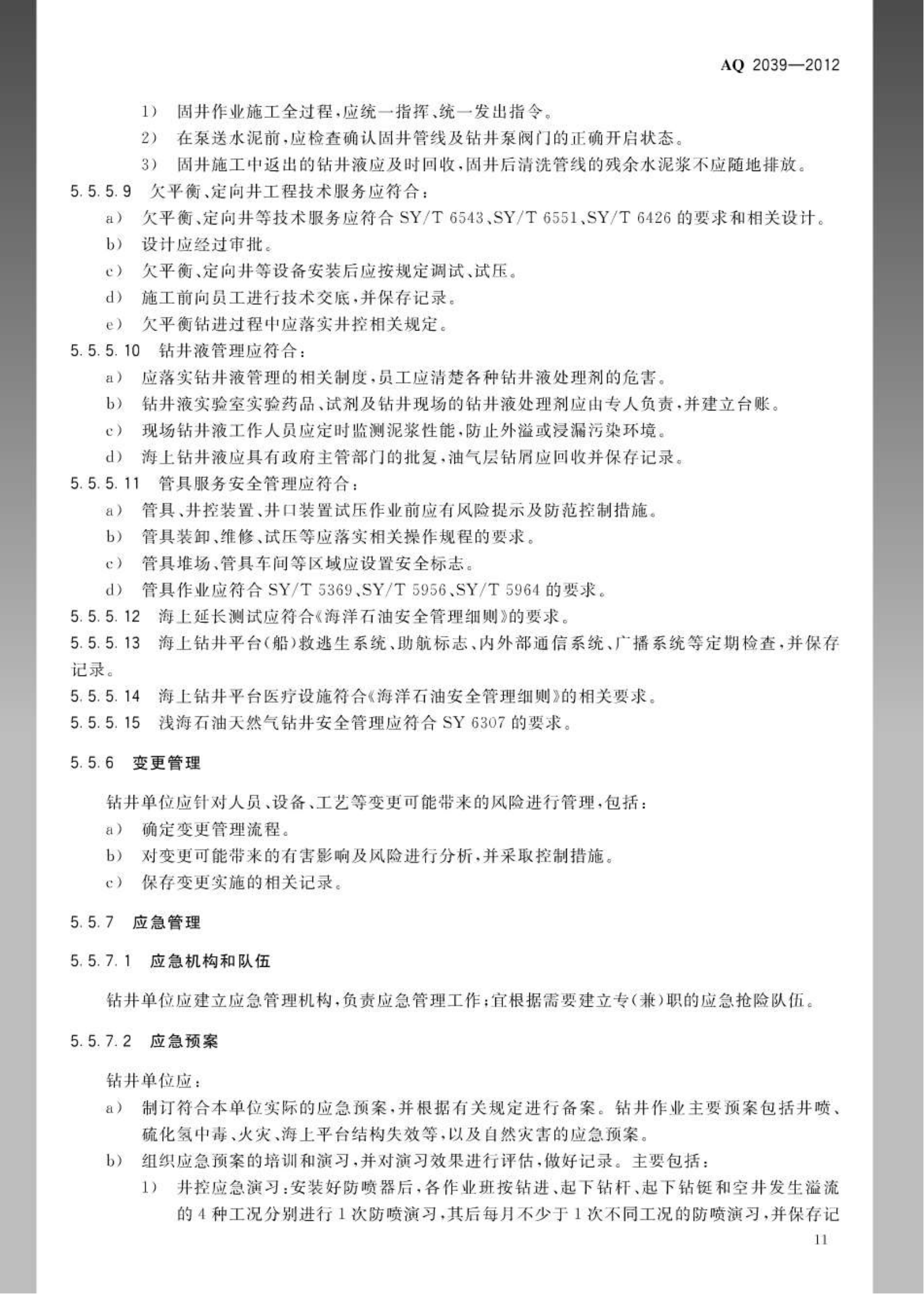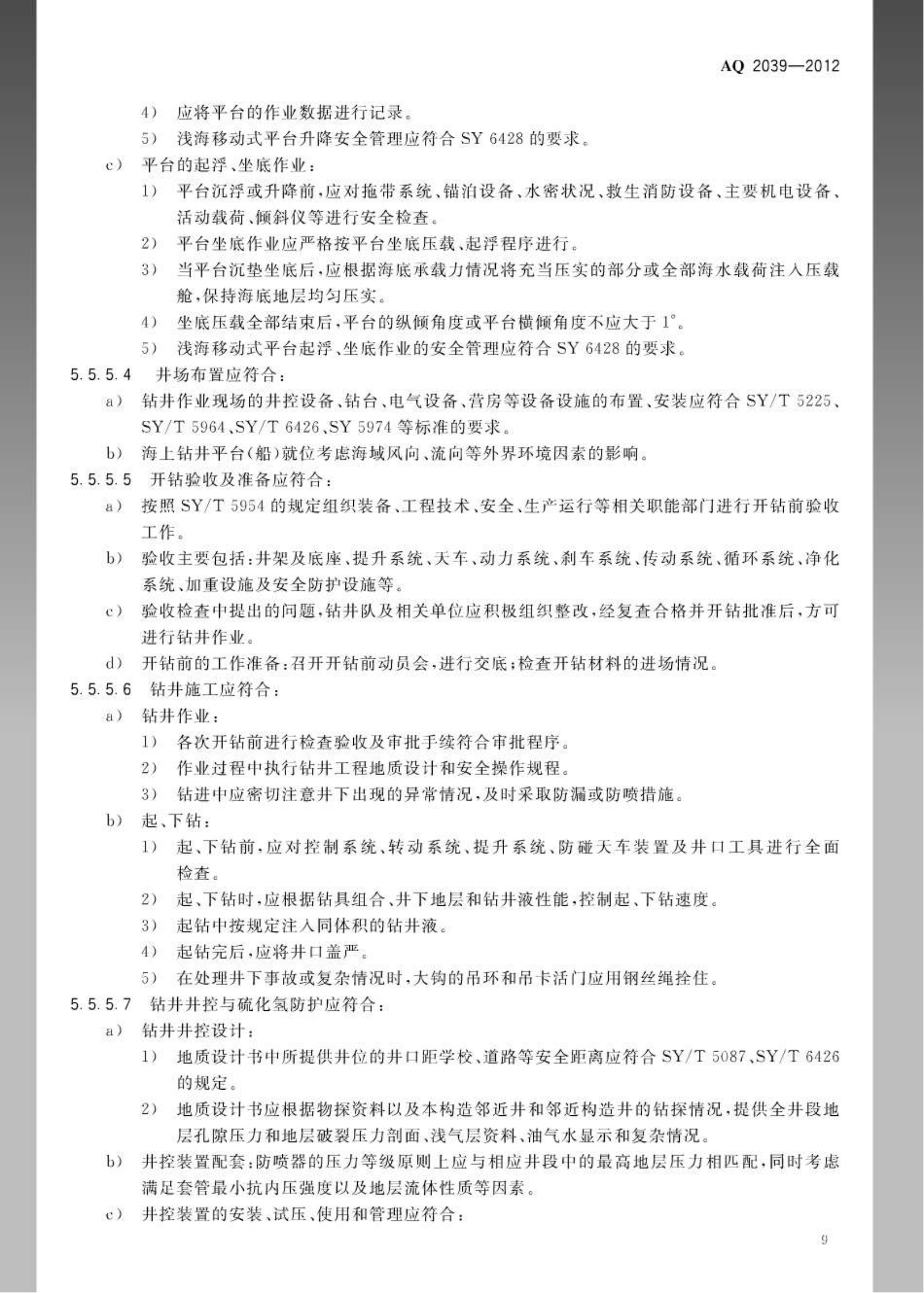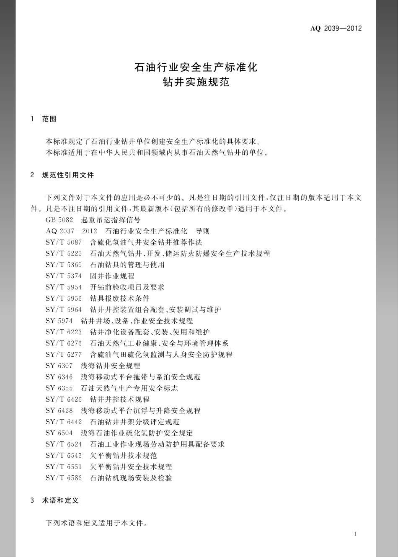 《石油行业安全生产标准化钻井实施规范》(AQ2039-2012)