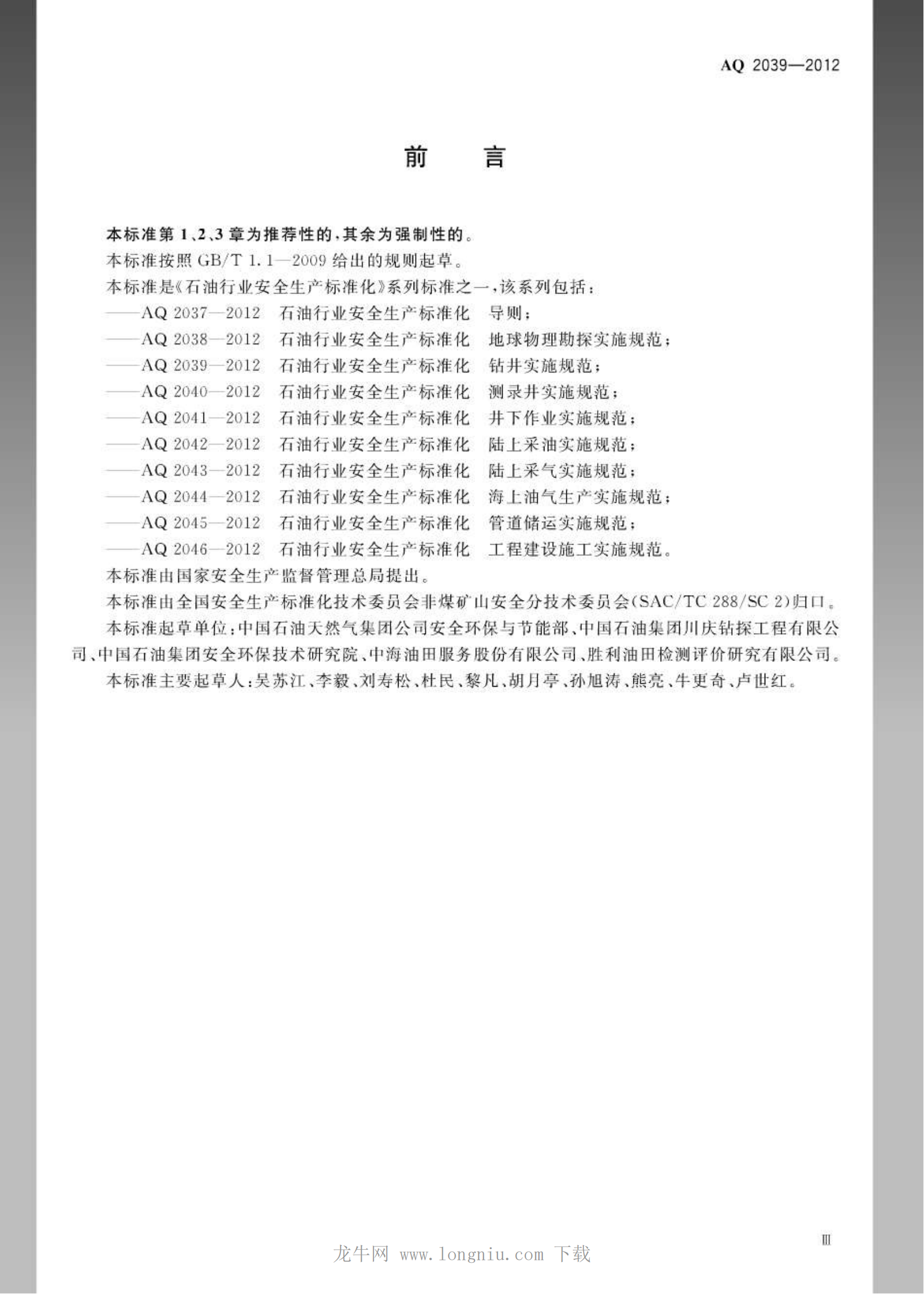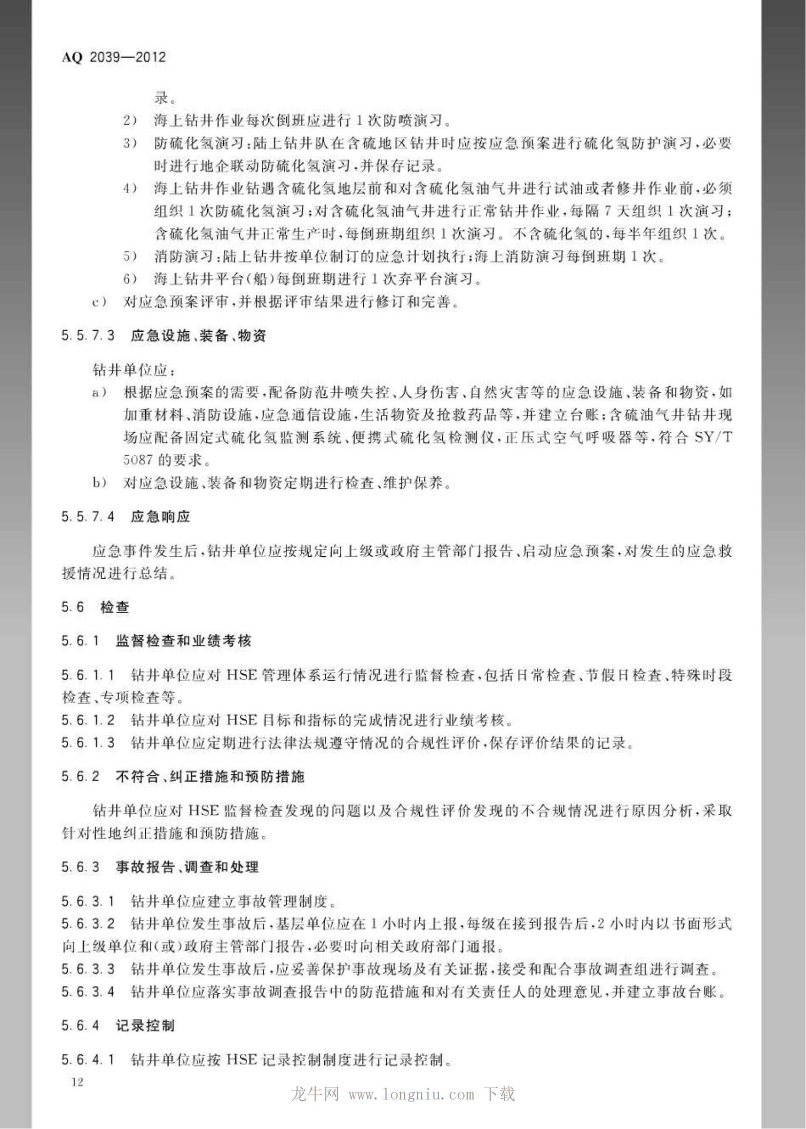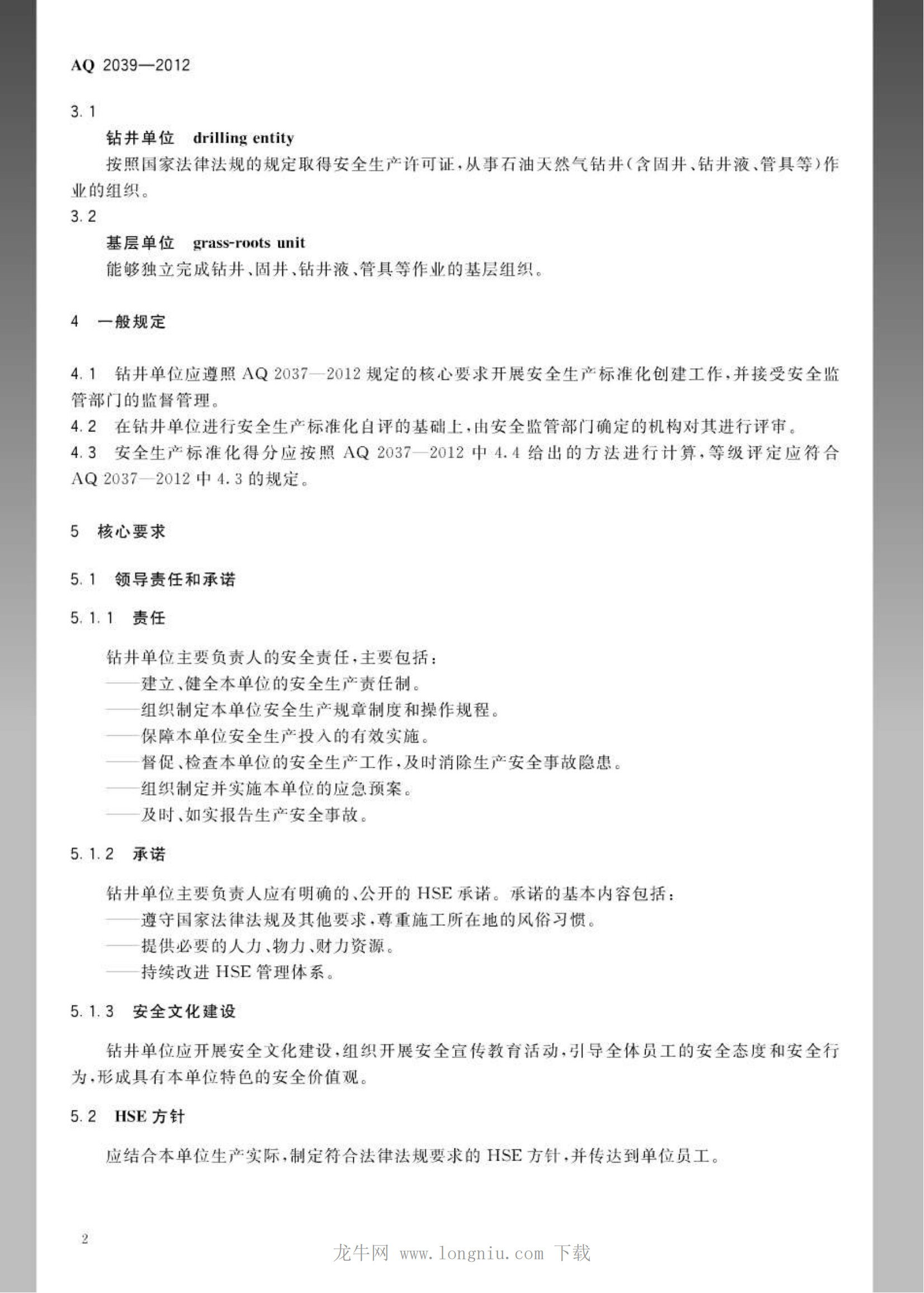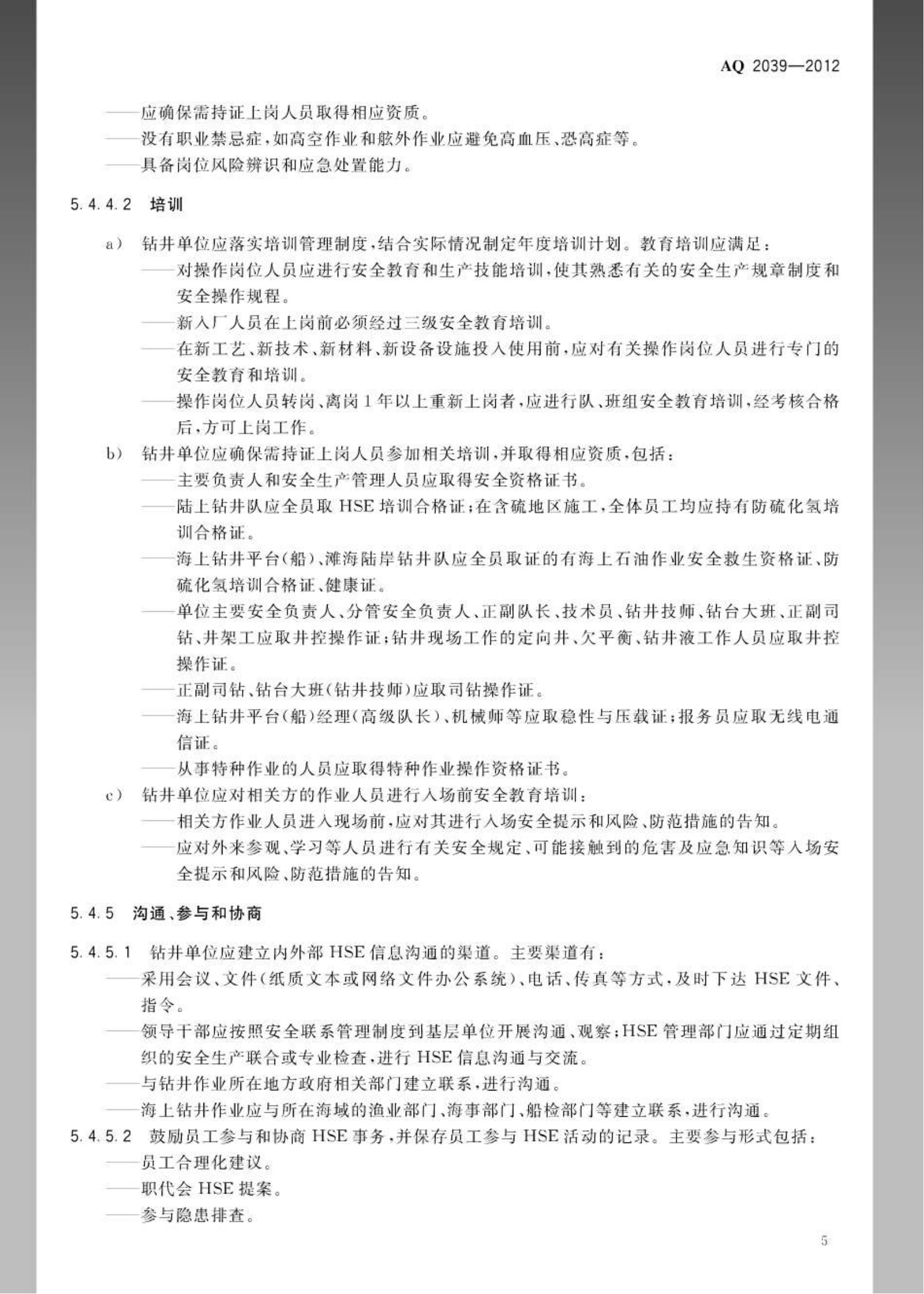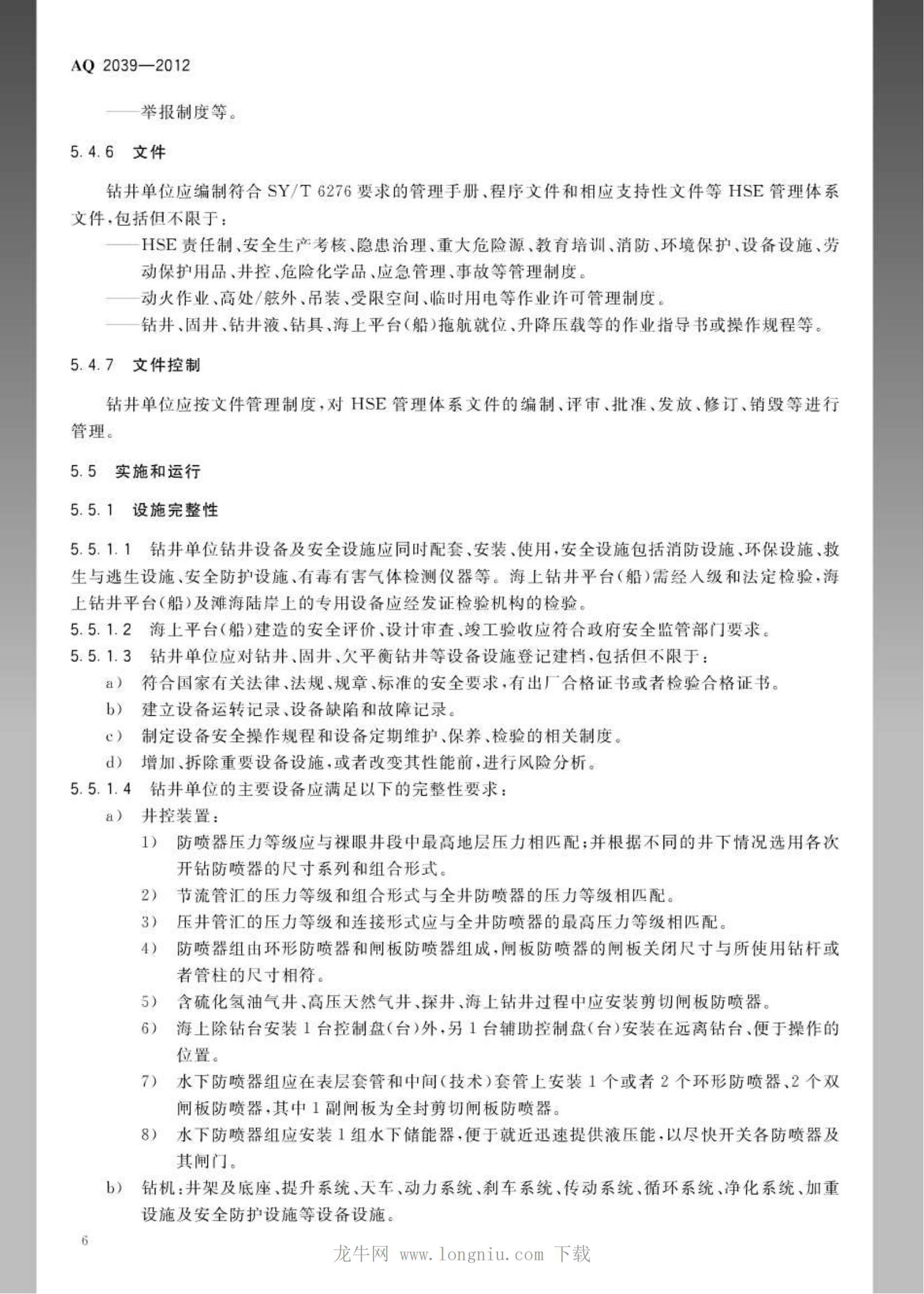 《石油行业安全生产标准化钻井实施规范》(AQ2039-2012)