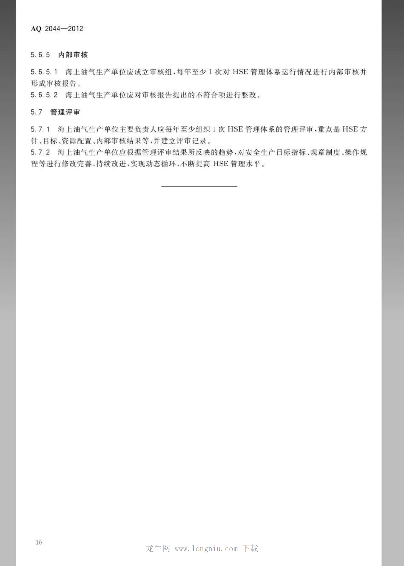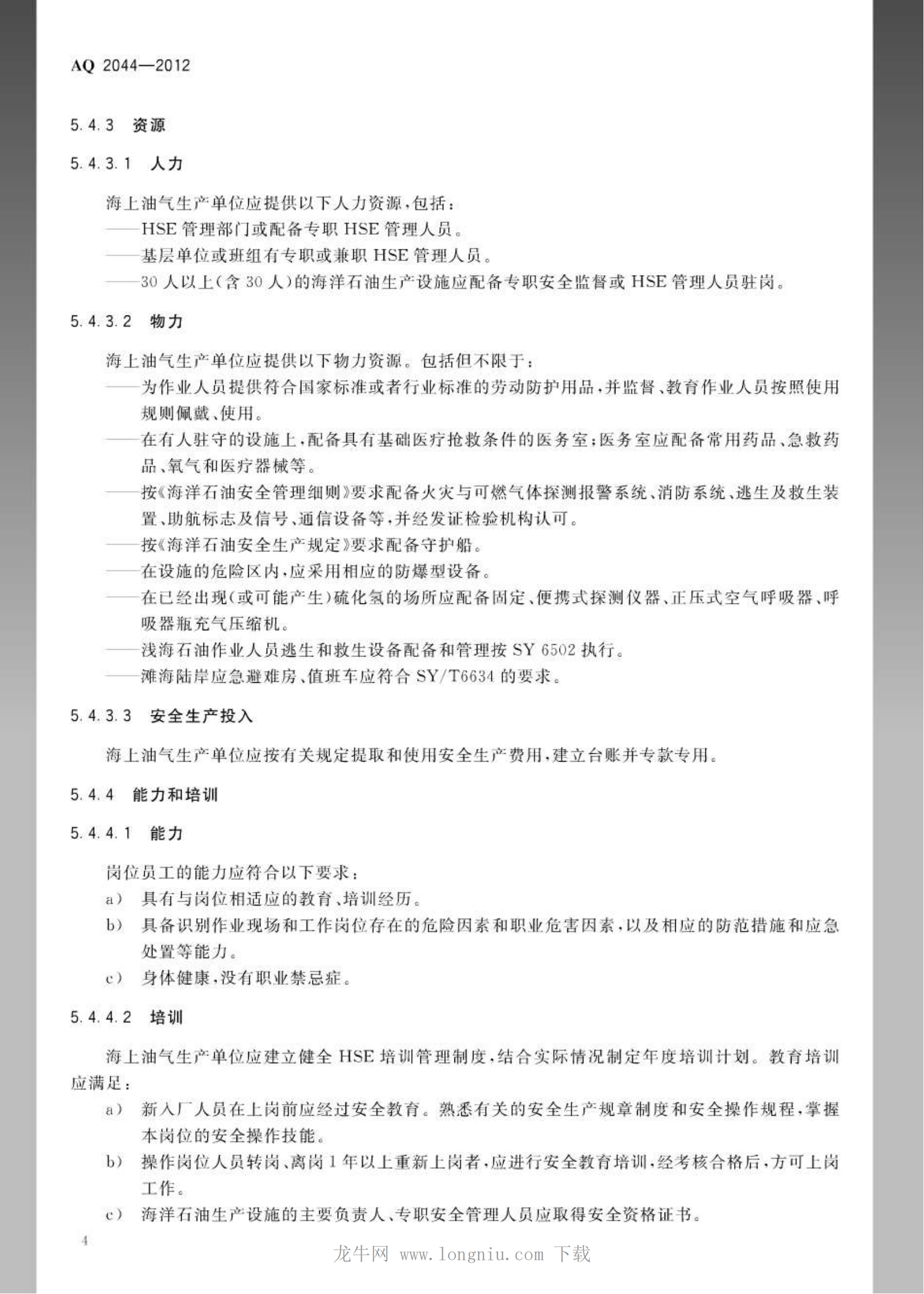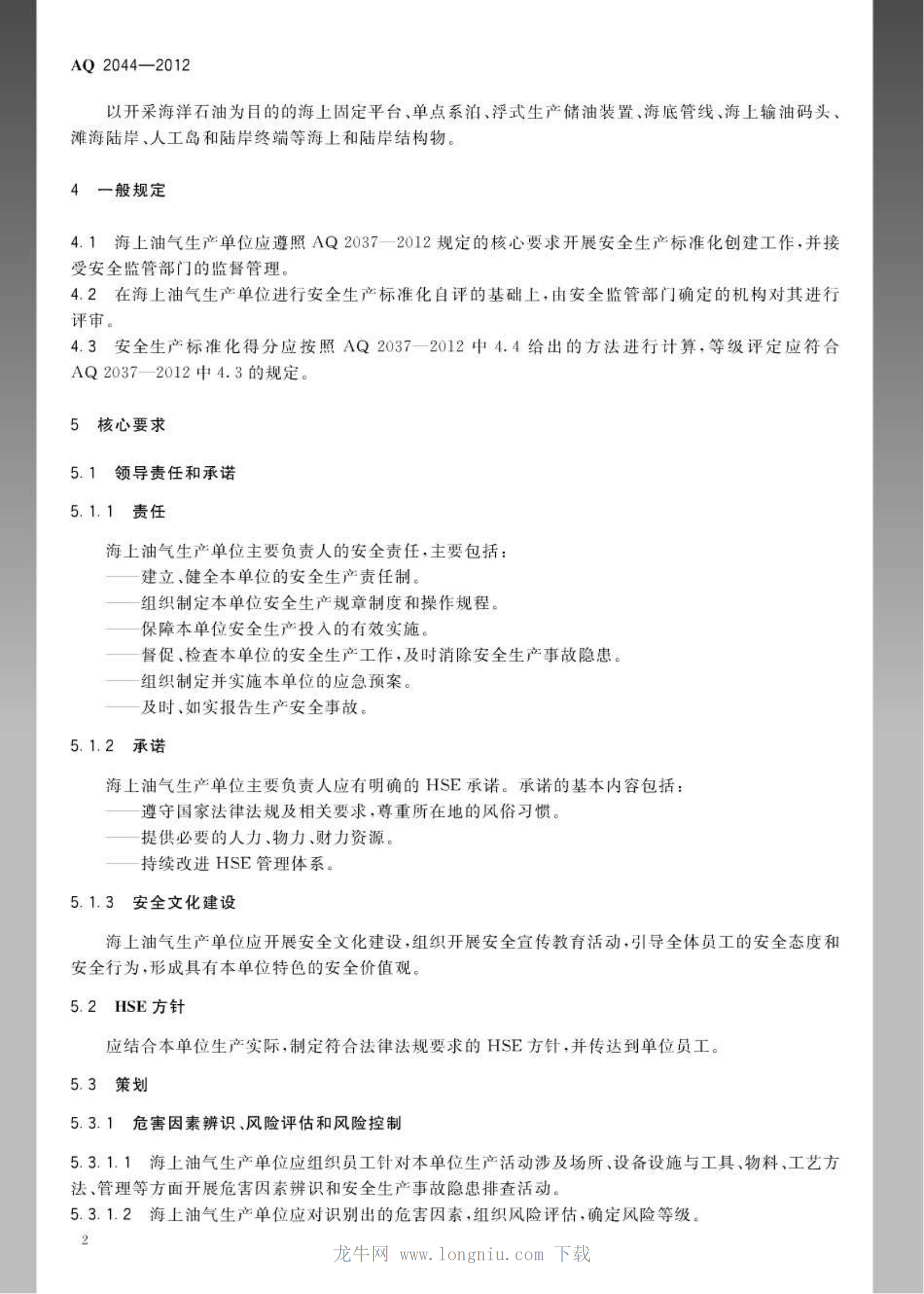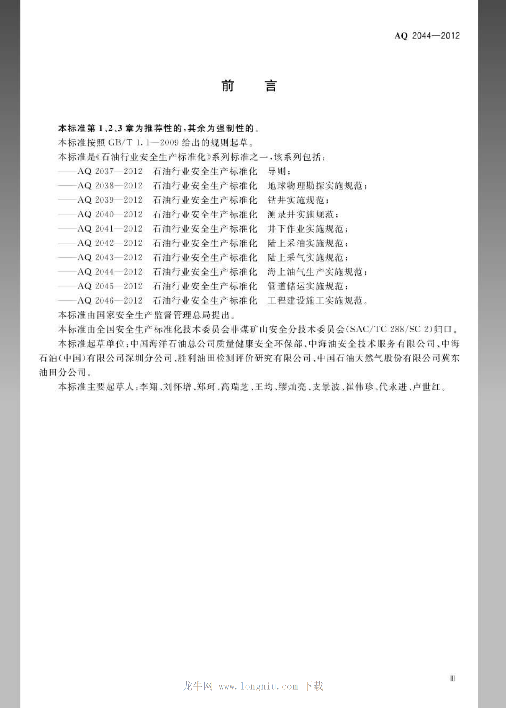 《石油行业安全生产标准化海上油气生产实施规范》(AQ2044-2012)