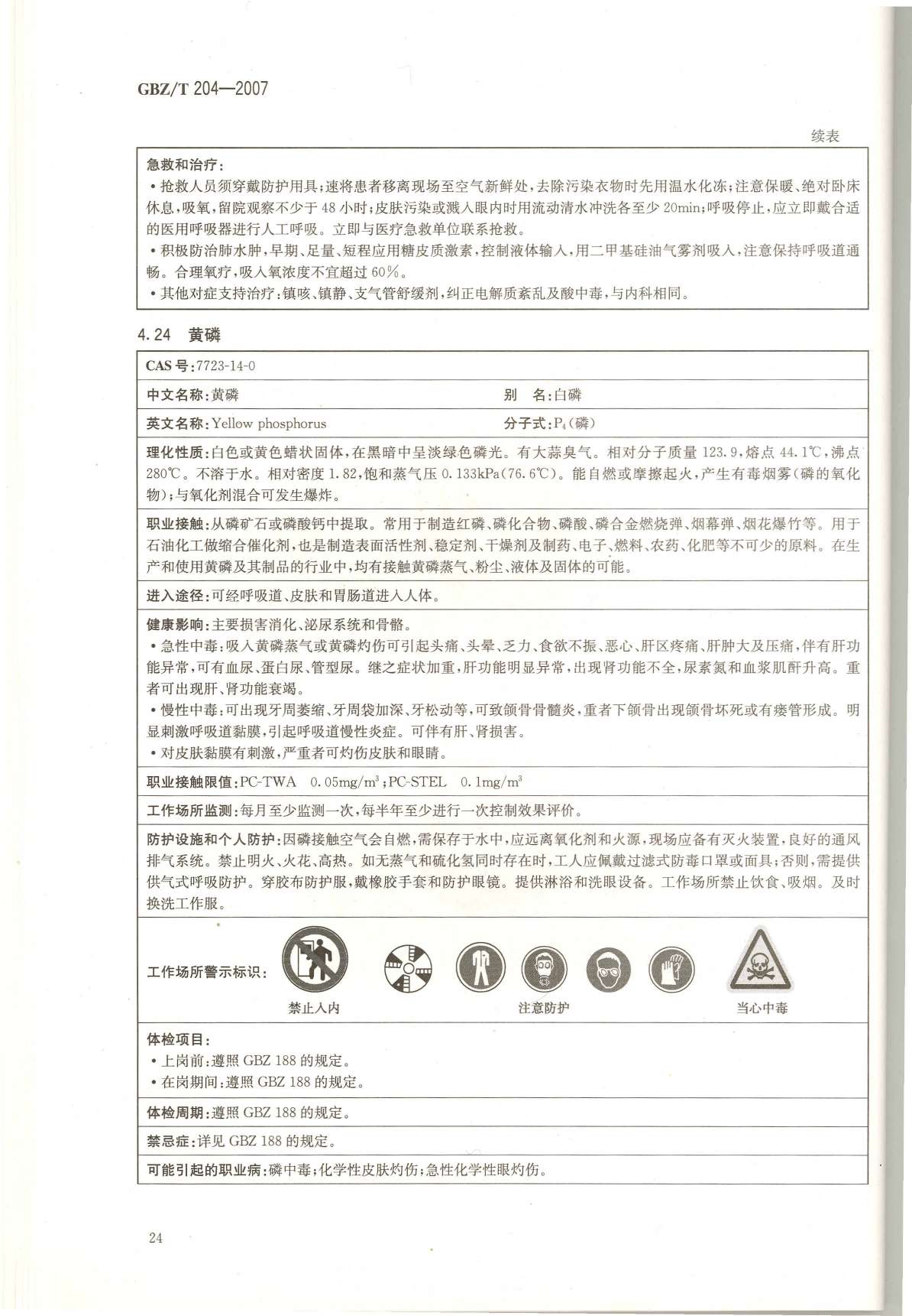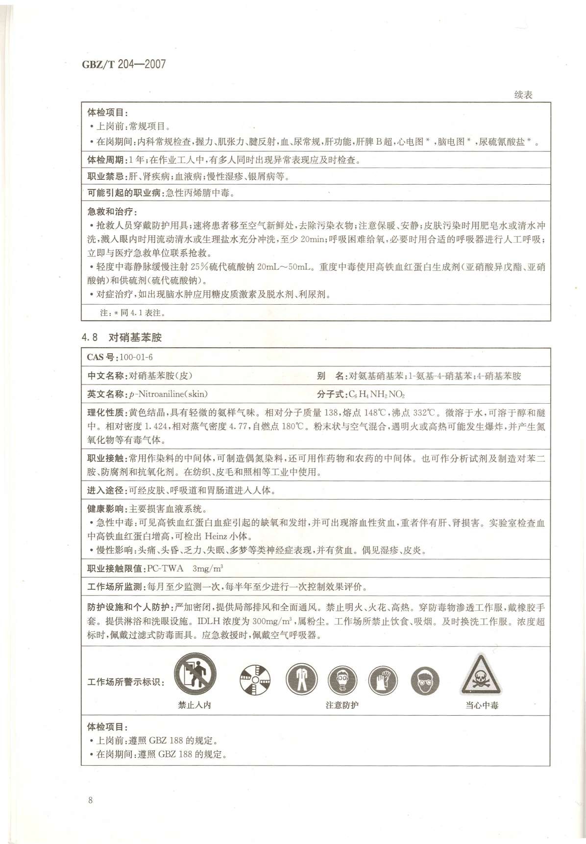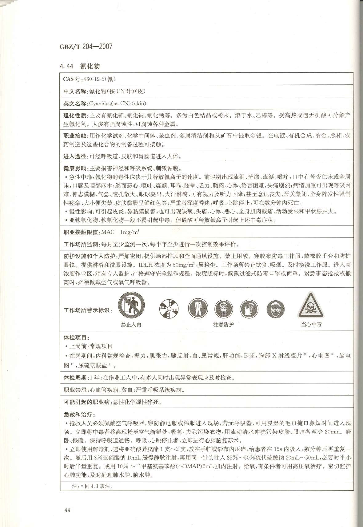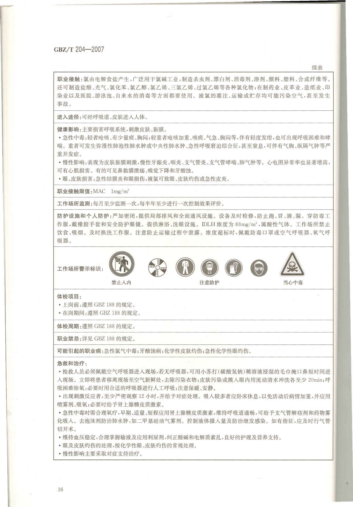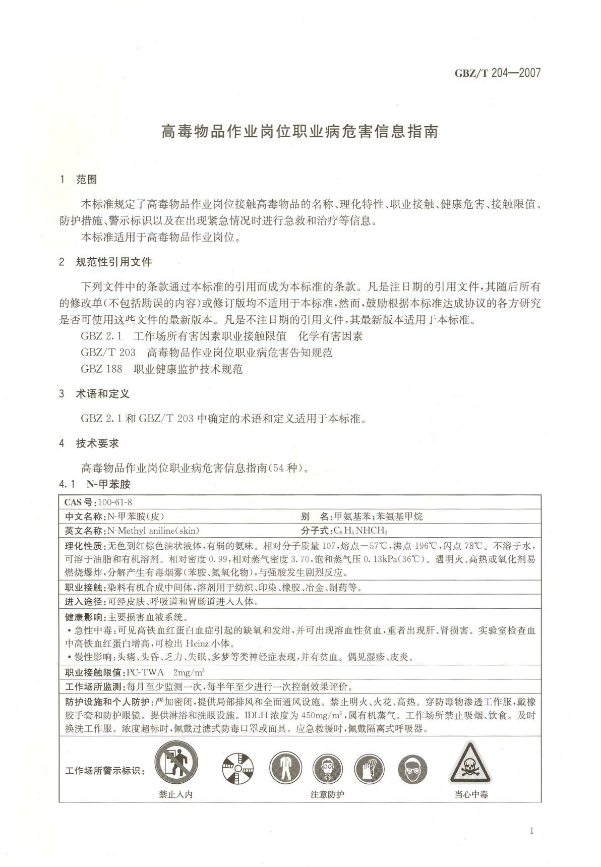 《高毒物品作业岗位职业危害信息指南》(GBZ/T204-2007)