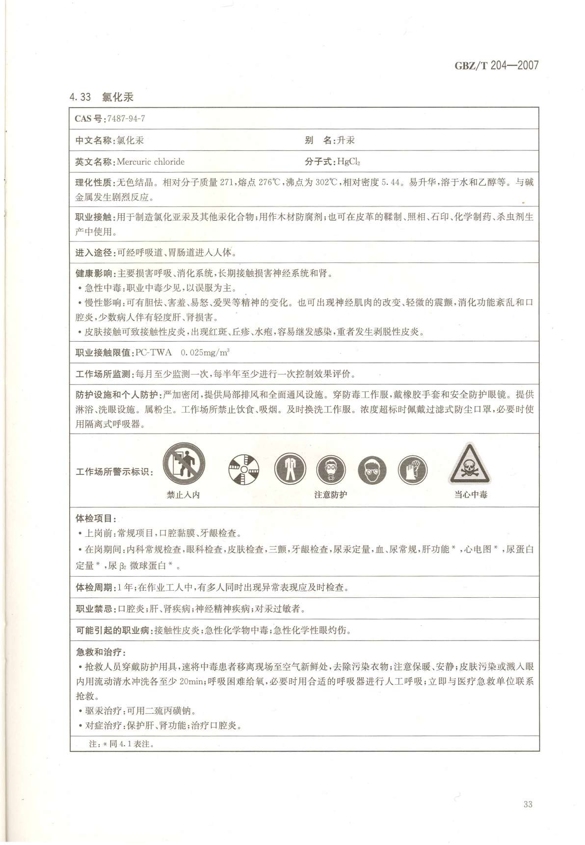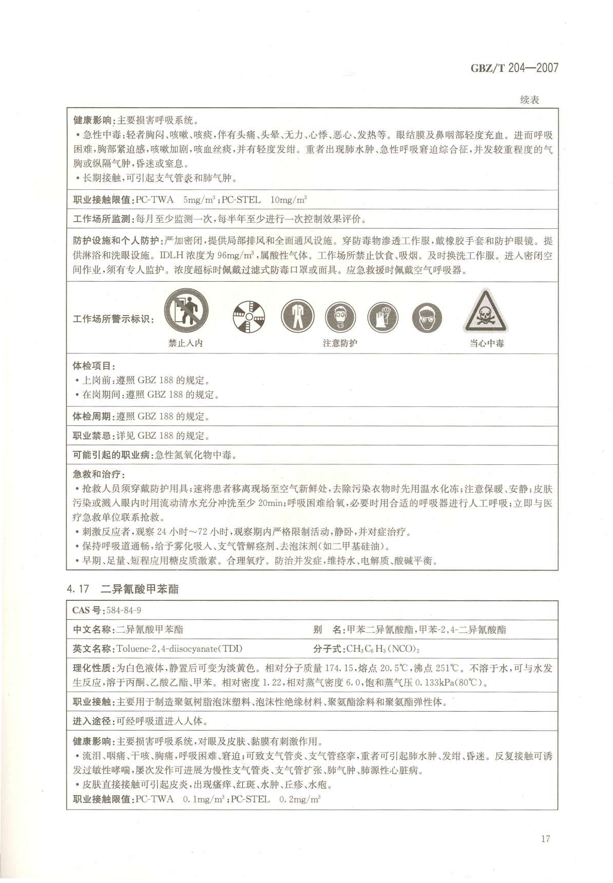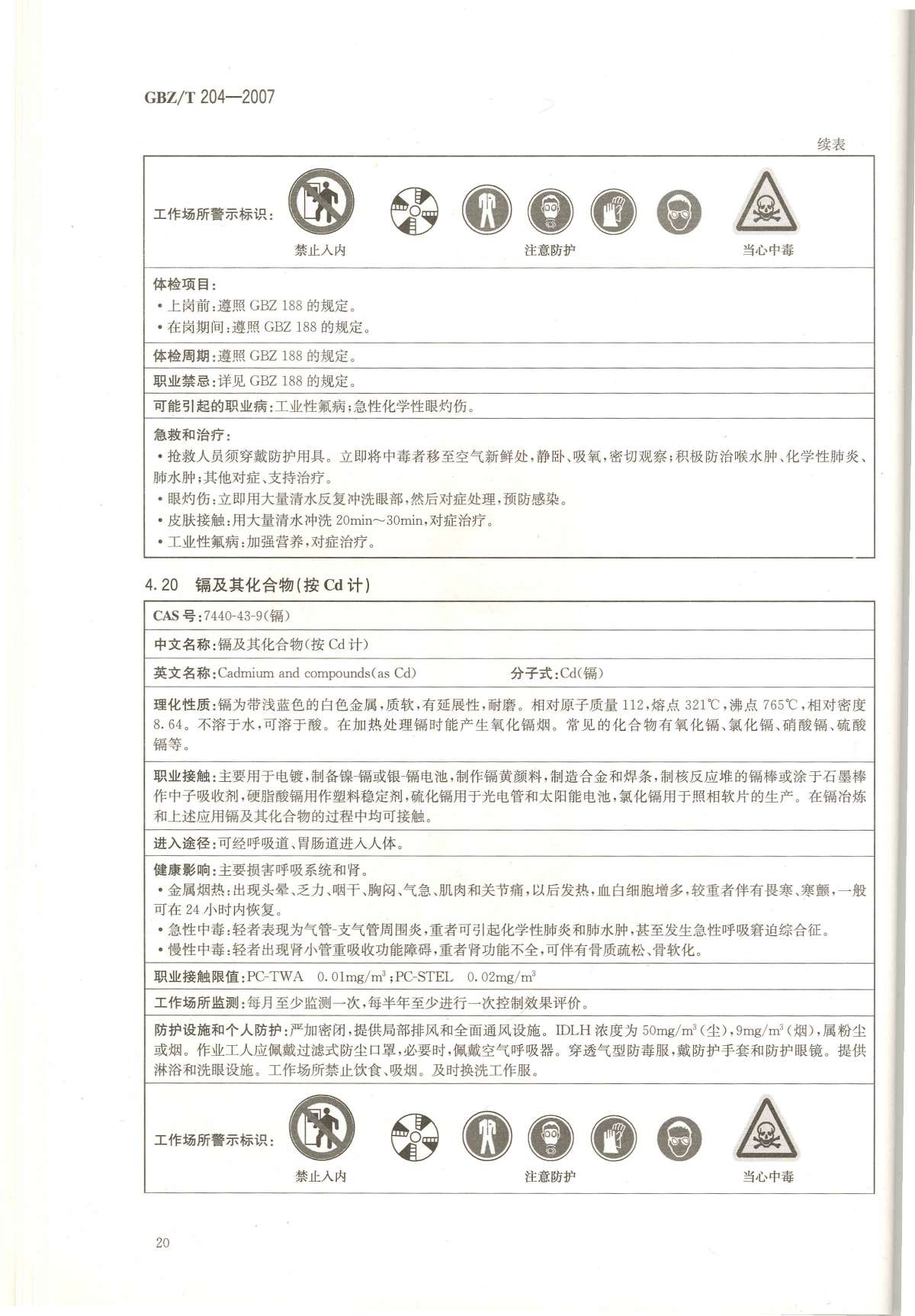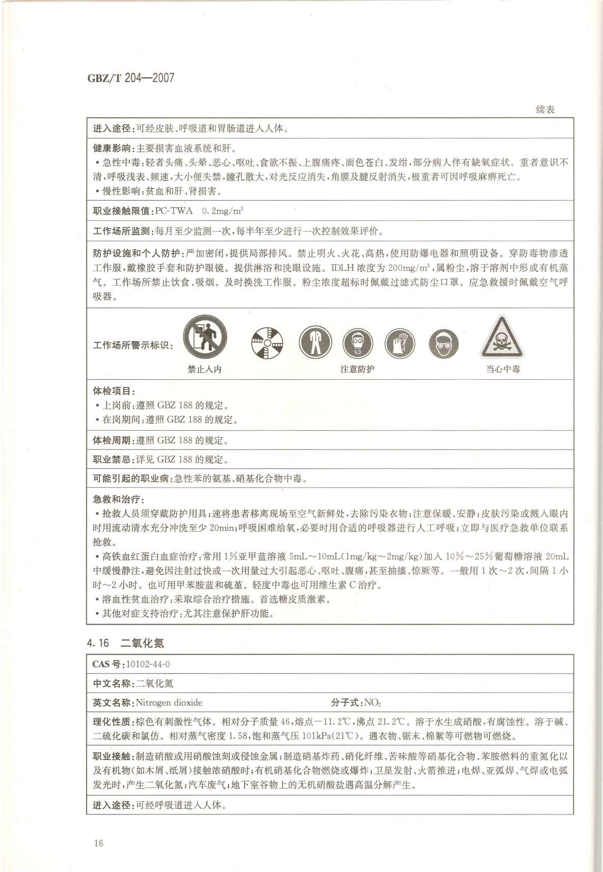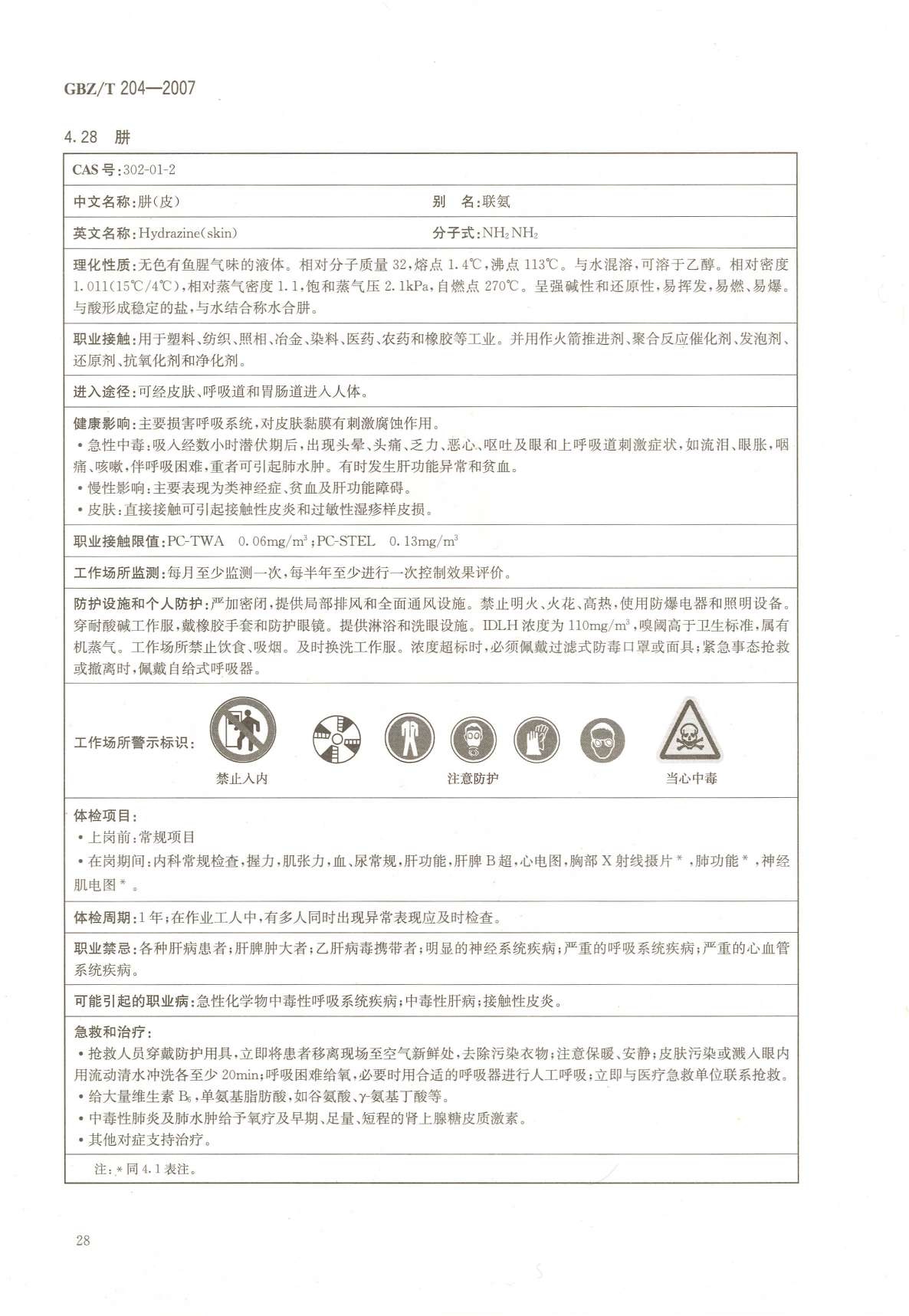 《高毒物品作业岗位职业危害信息指南》(GBZ/T204-2007)