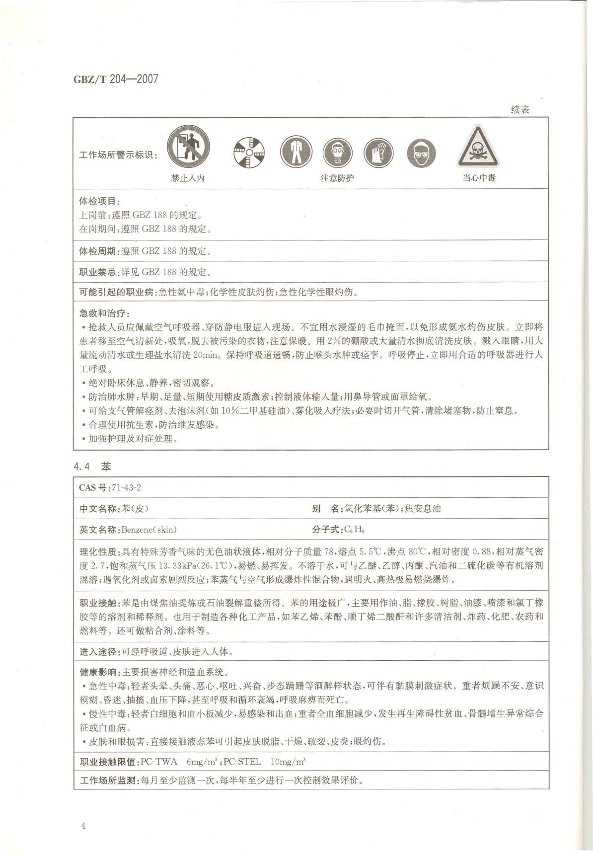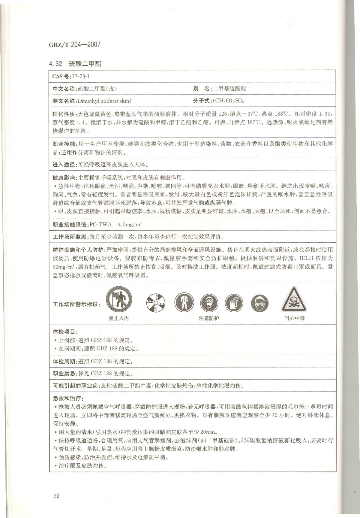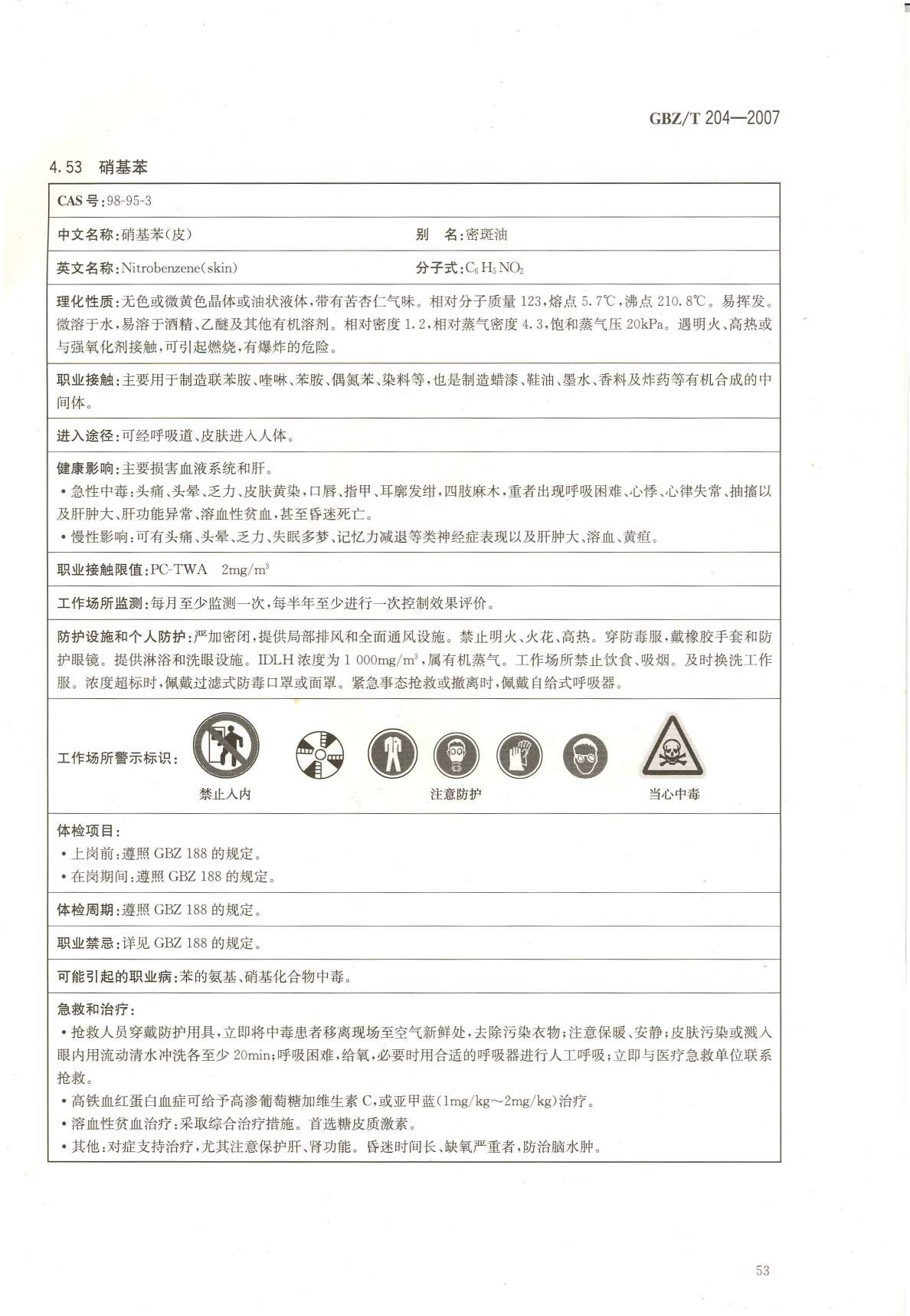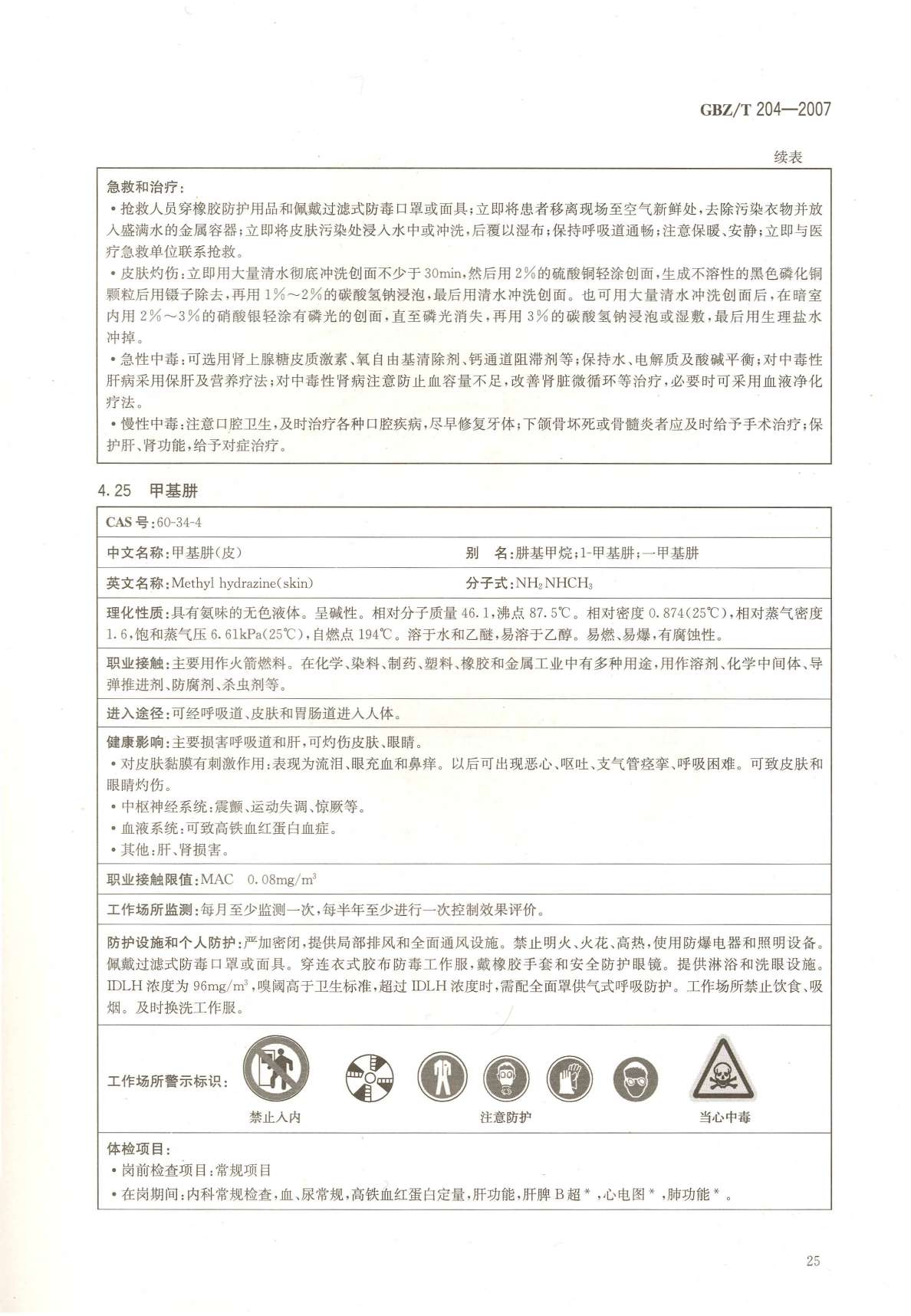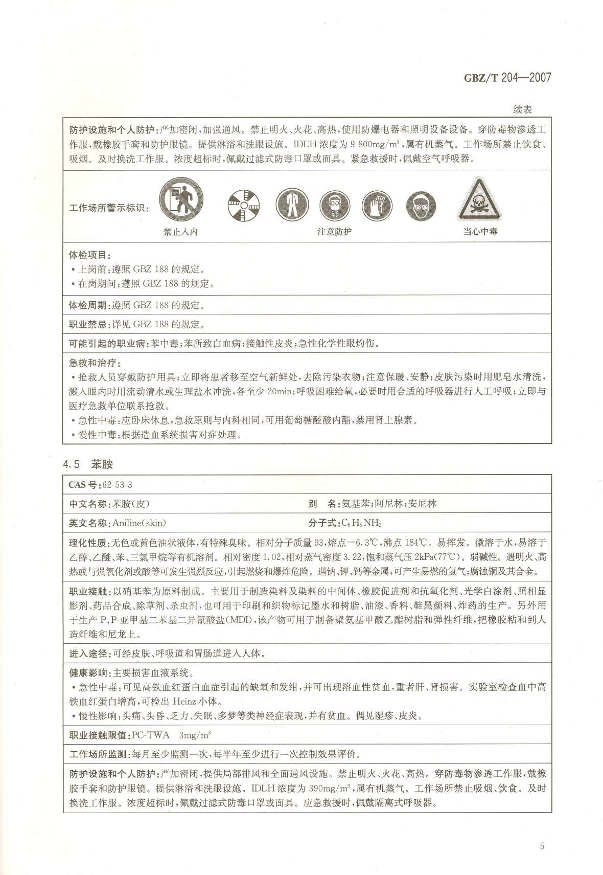 《高毒物品作业岗位职业危害信息指南》(GBZ/T204-2007)
