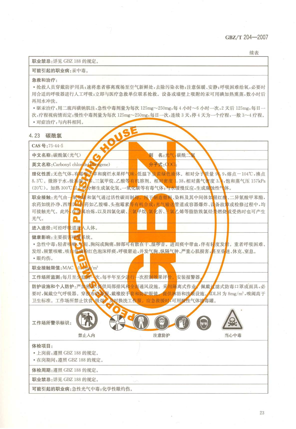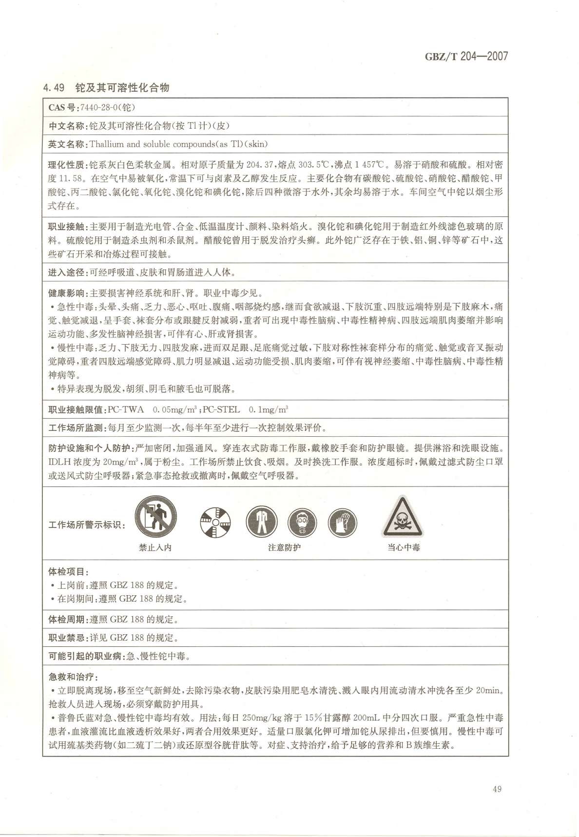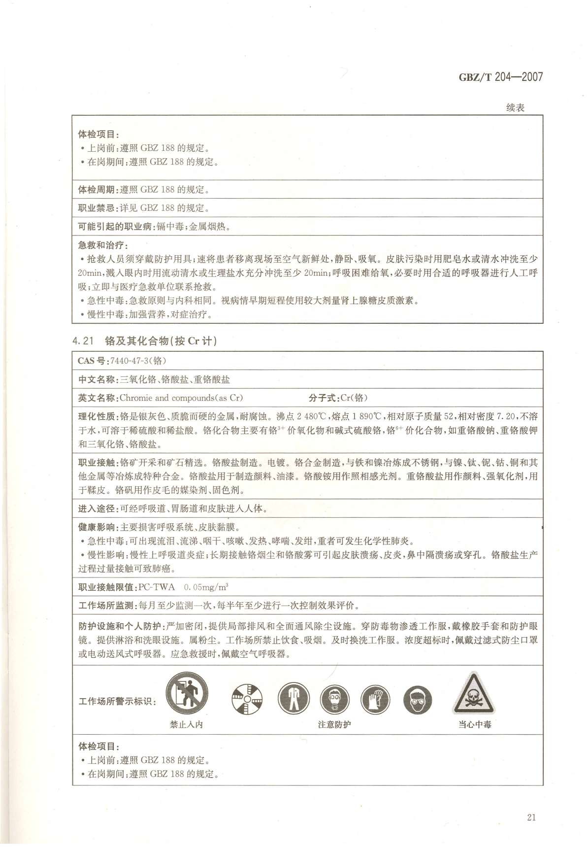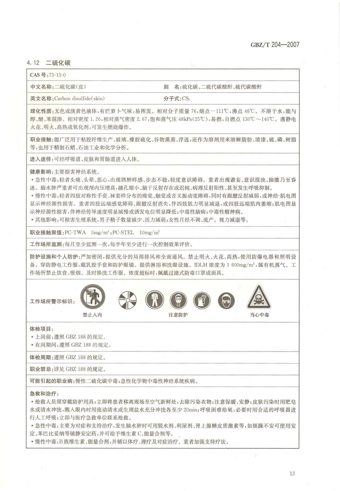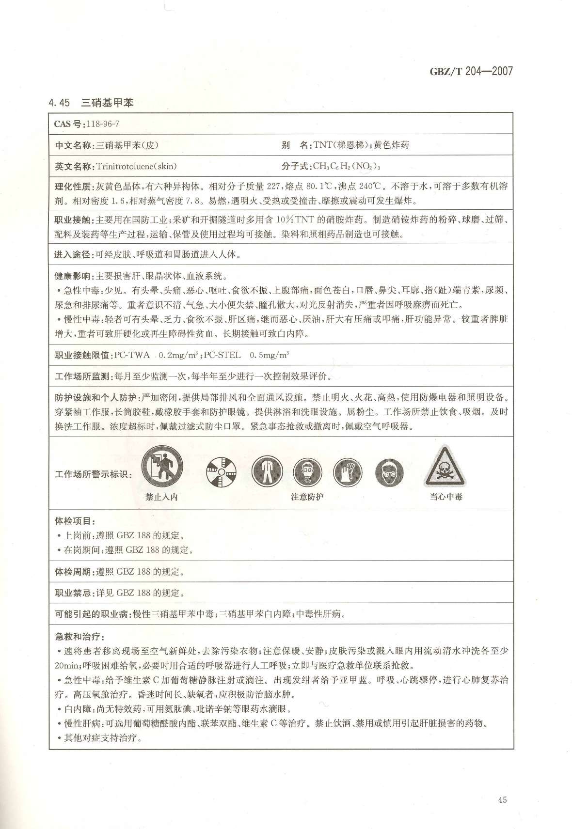 《高毒物品作业岗位职业危害信息指南》(GBZ/T204-2007)