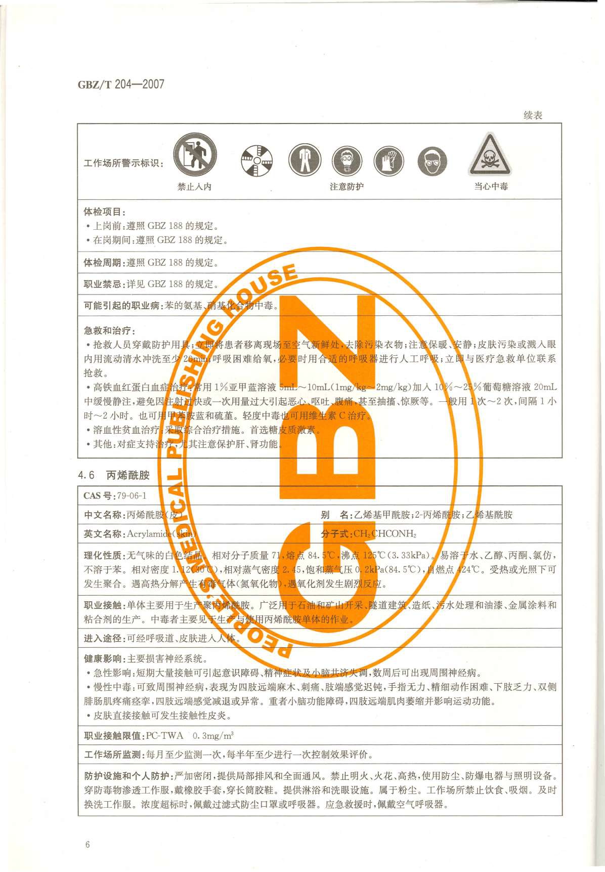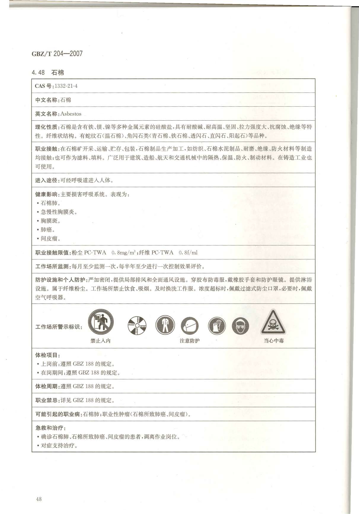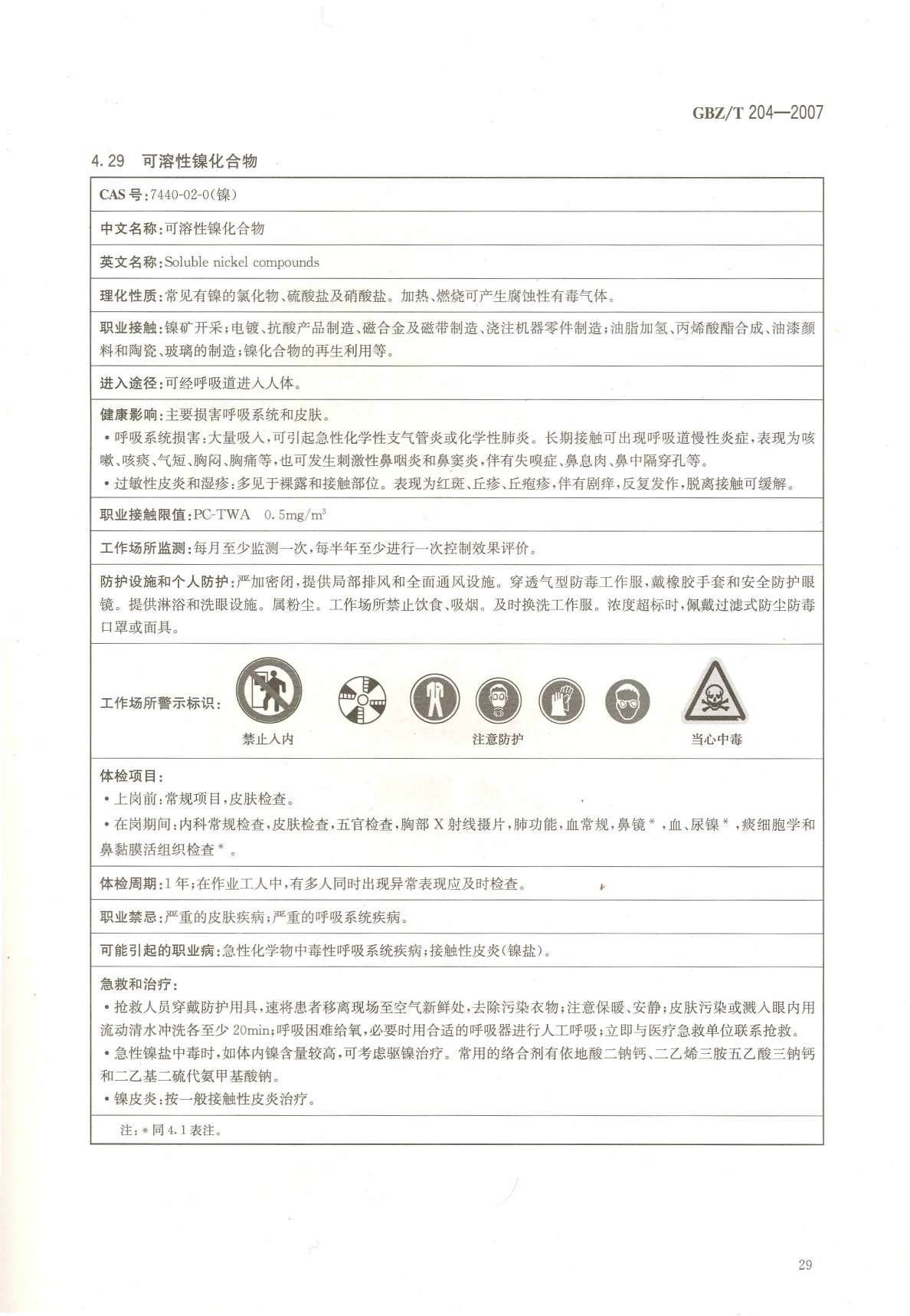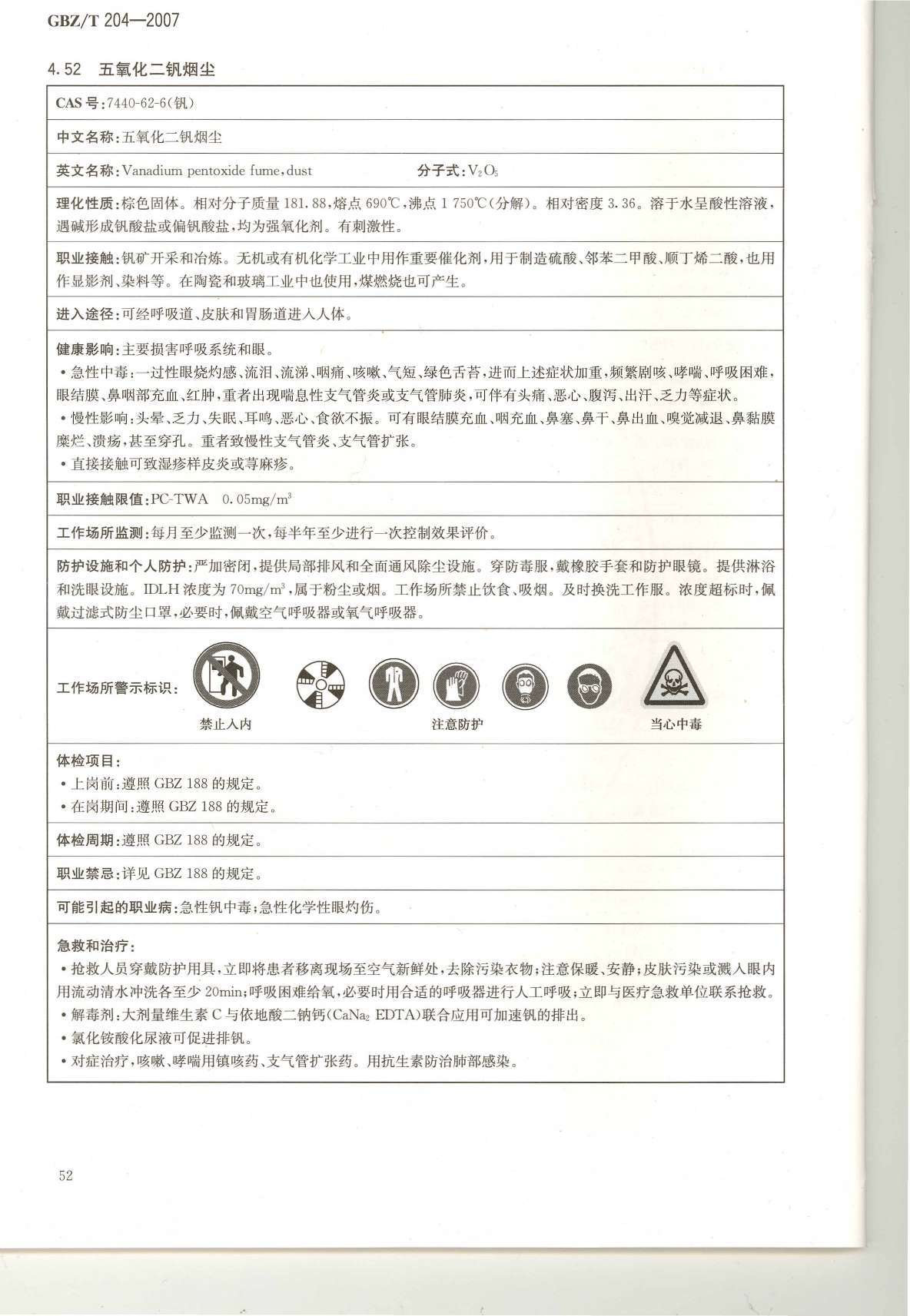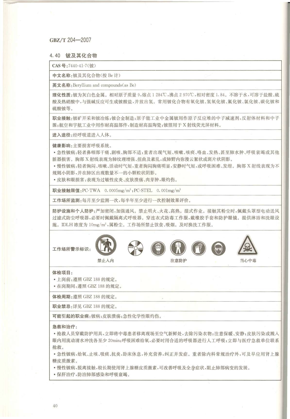 《高毒物品作业岗位职业危害信息指南》(GBZ/T204-2007)