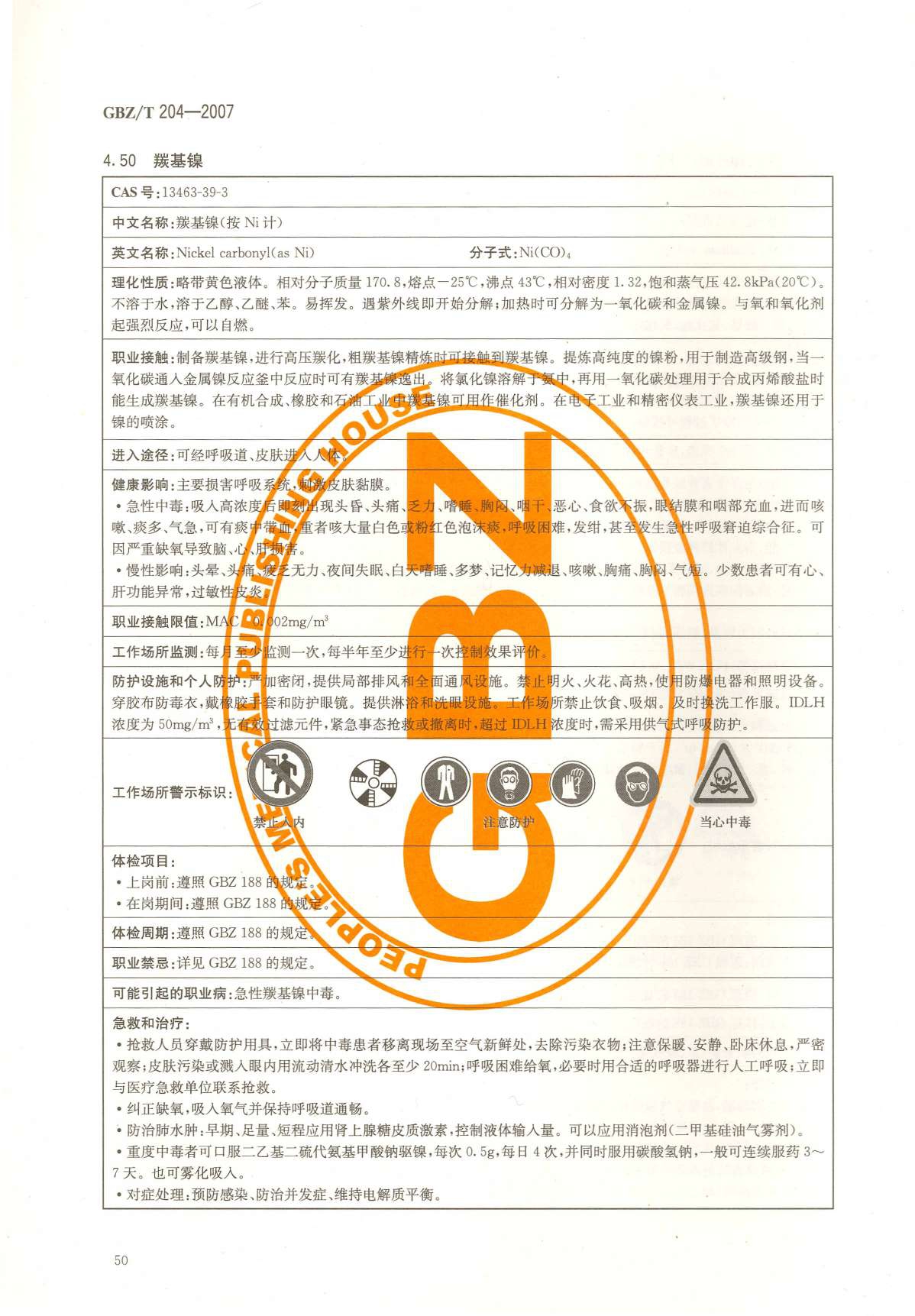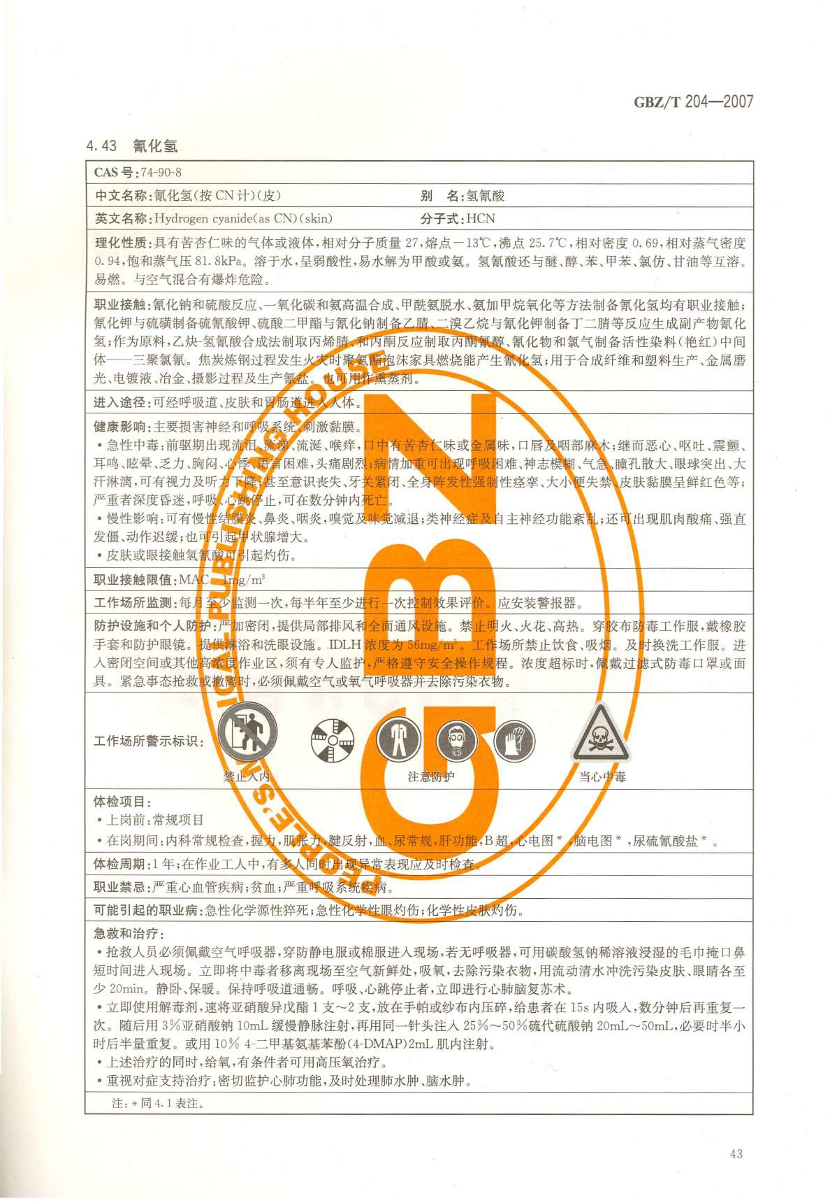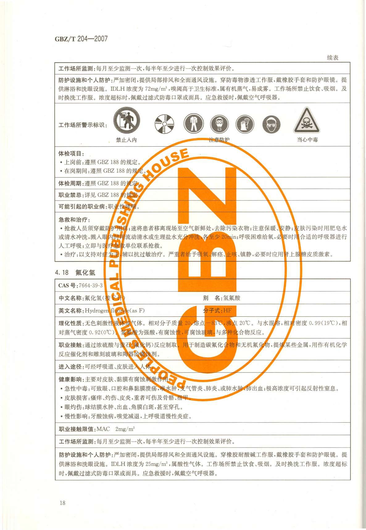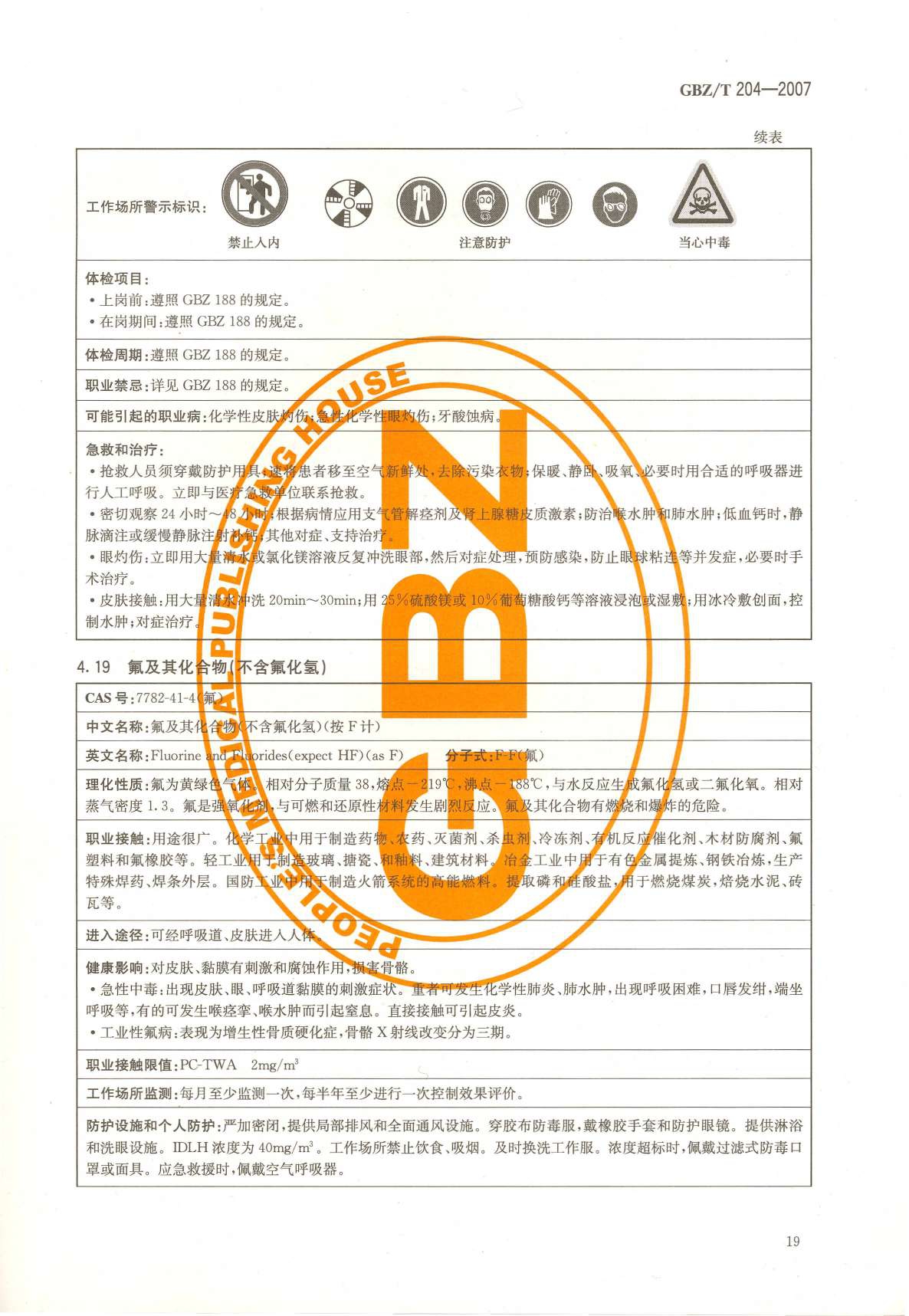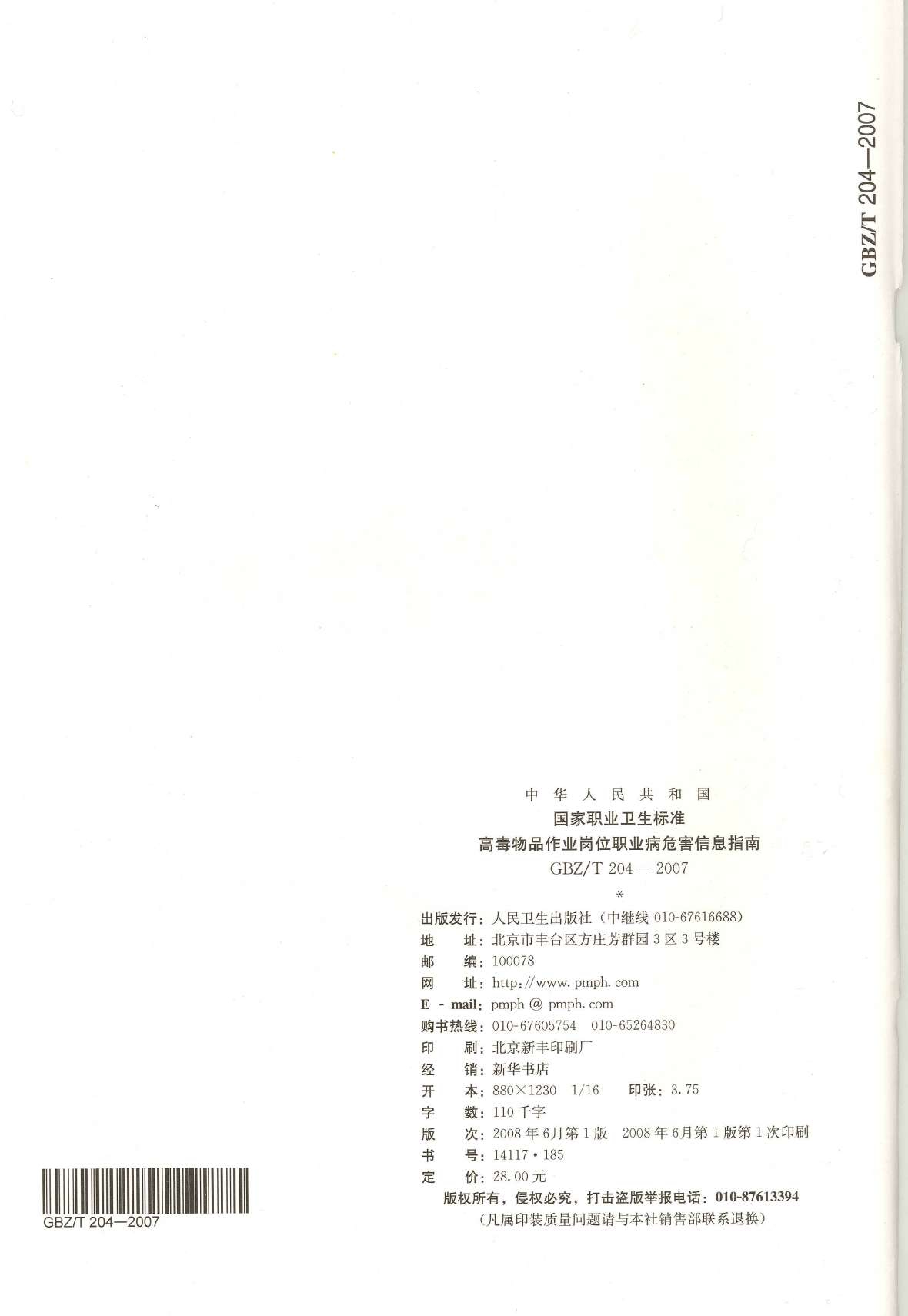 《高毒物品作业岗位职业危害信息指南》(GBZ/T204-2007)