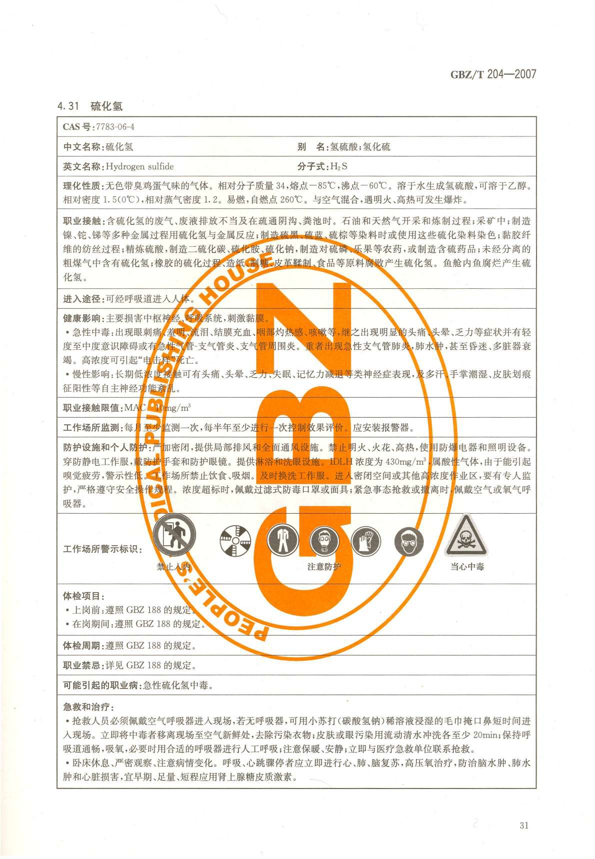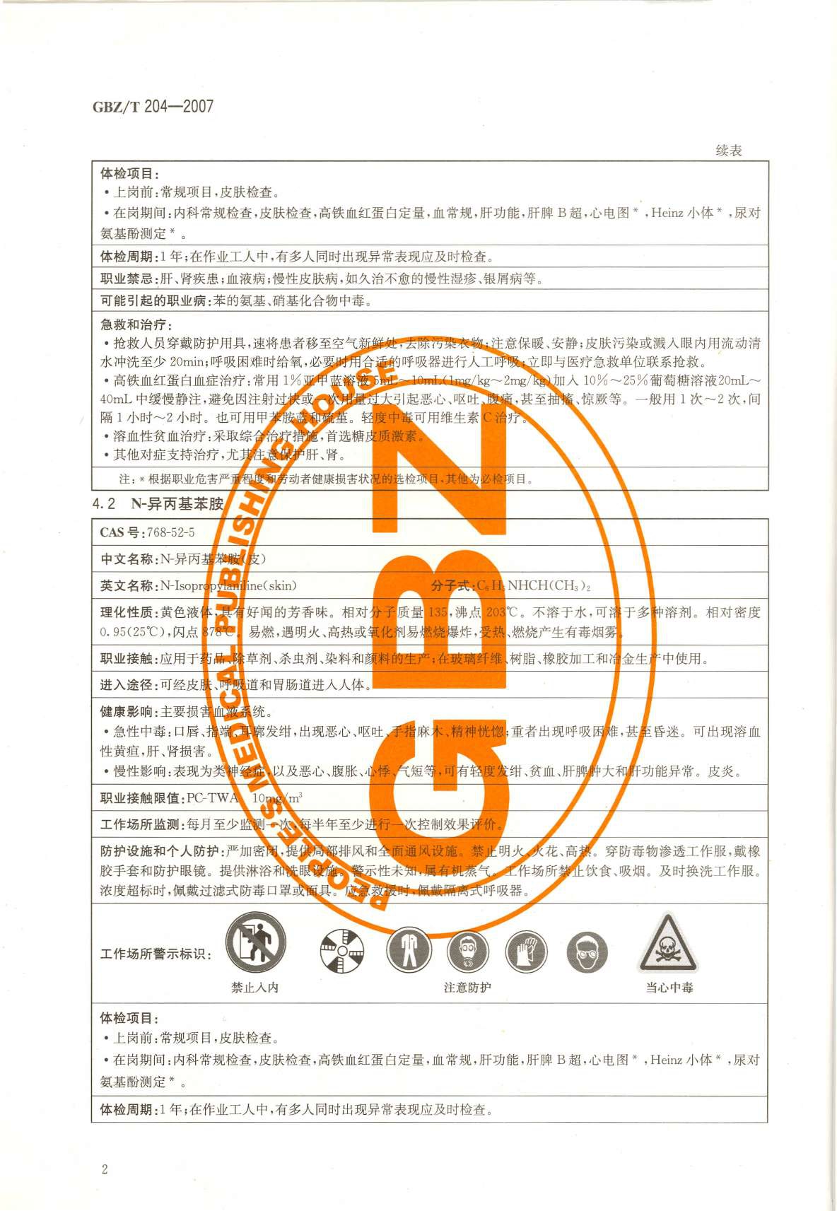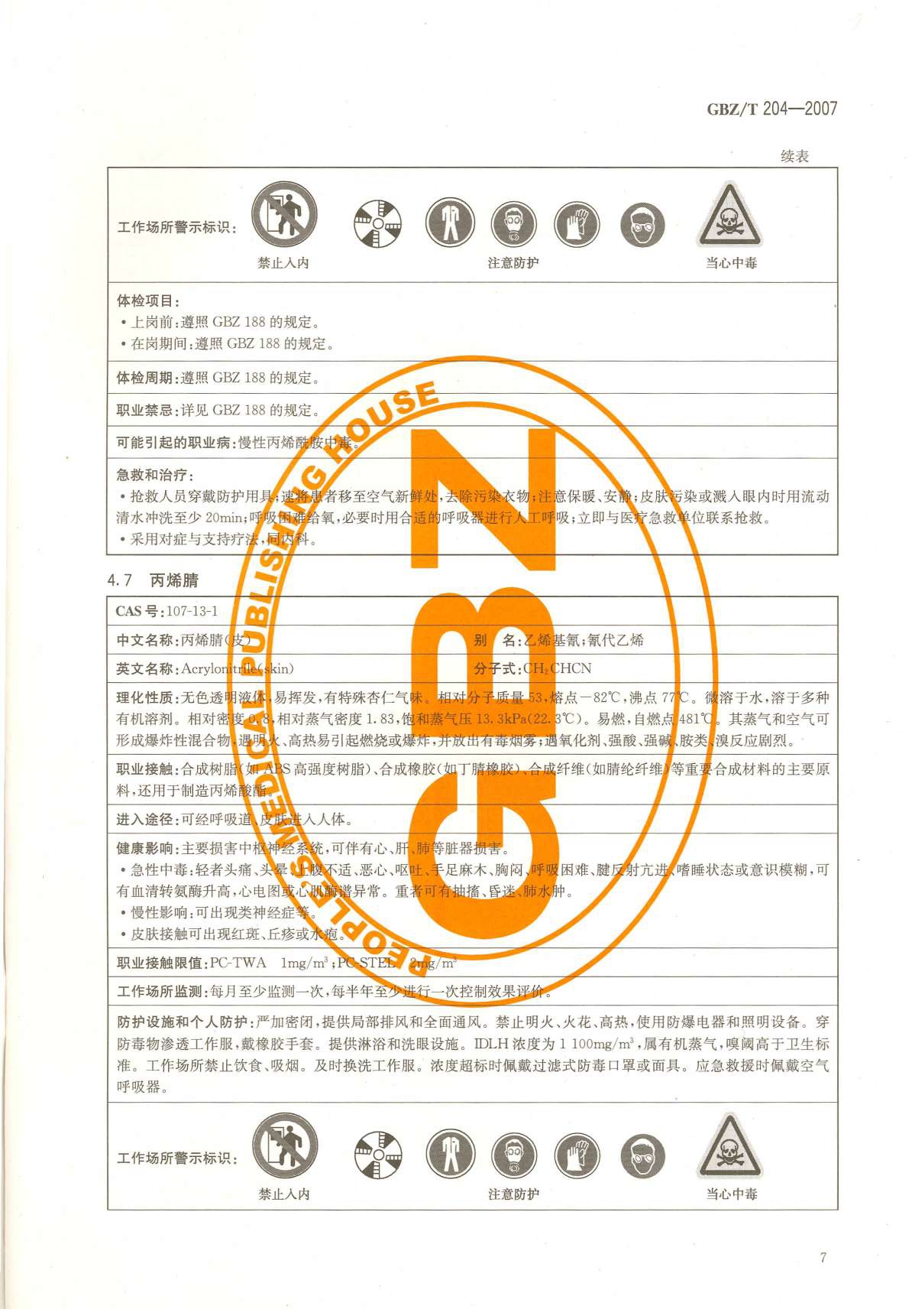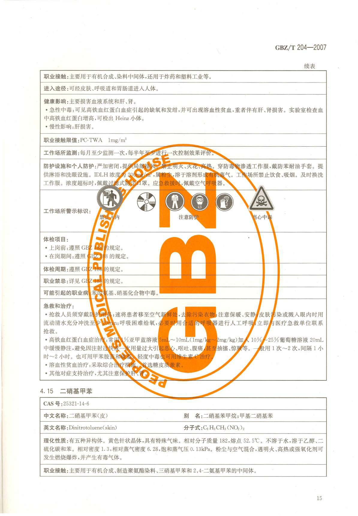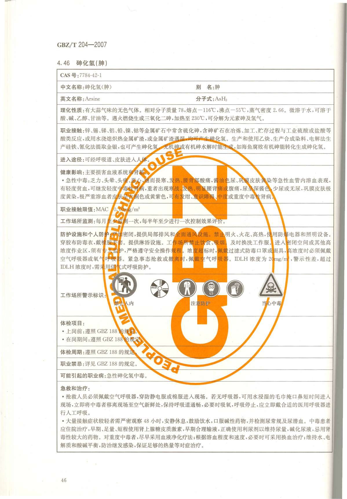 《高毒物品作业岗位职业危害信息指南》(GBZ/T204-2007)
