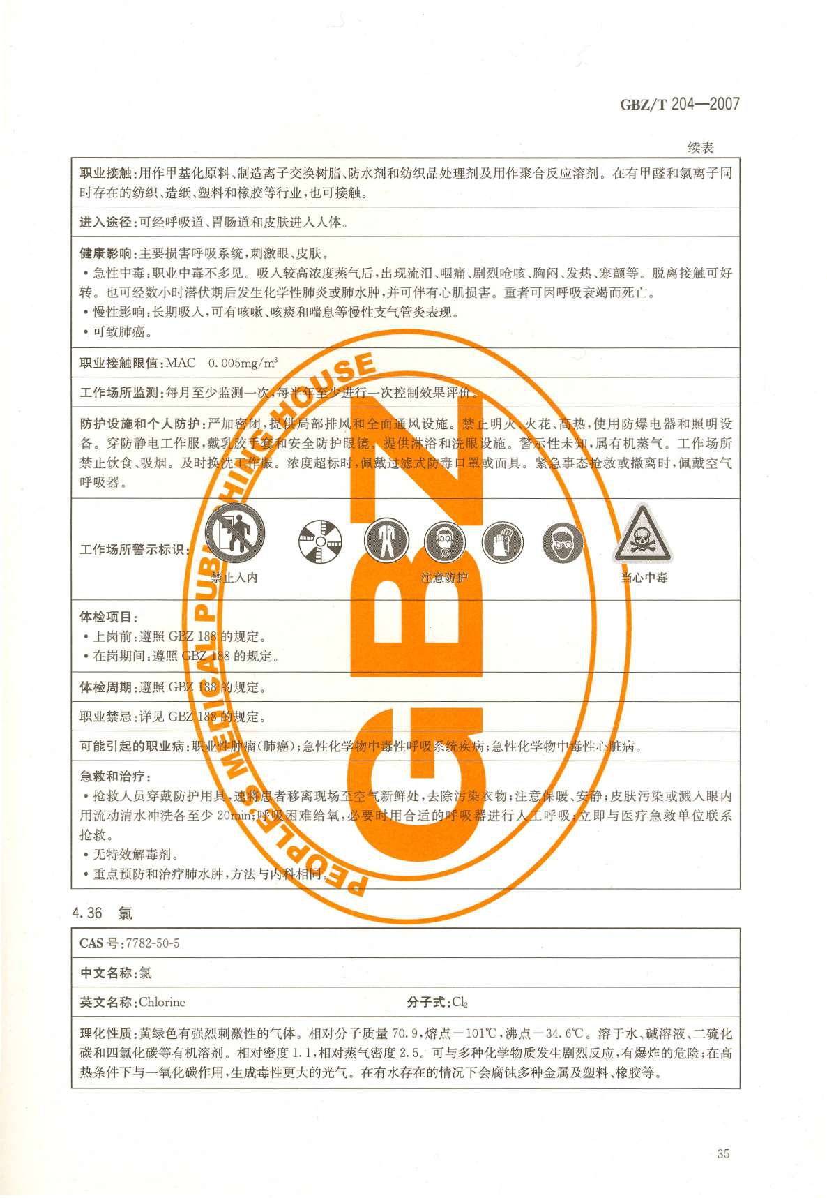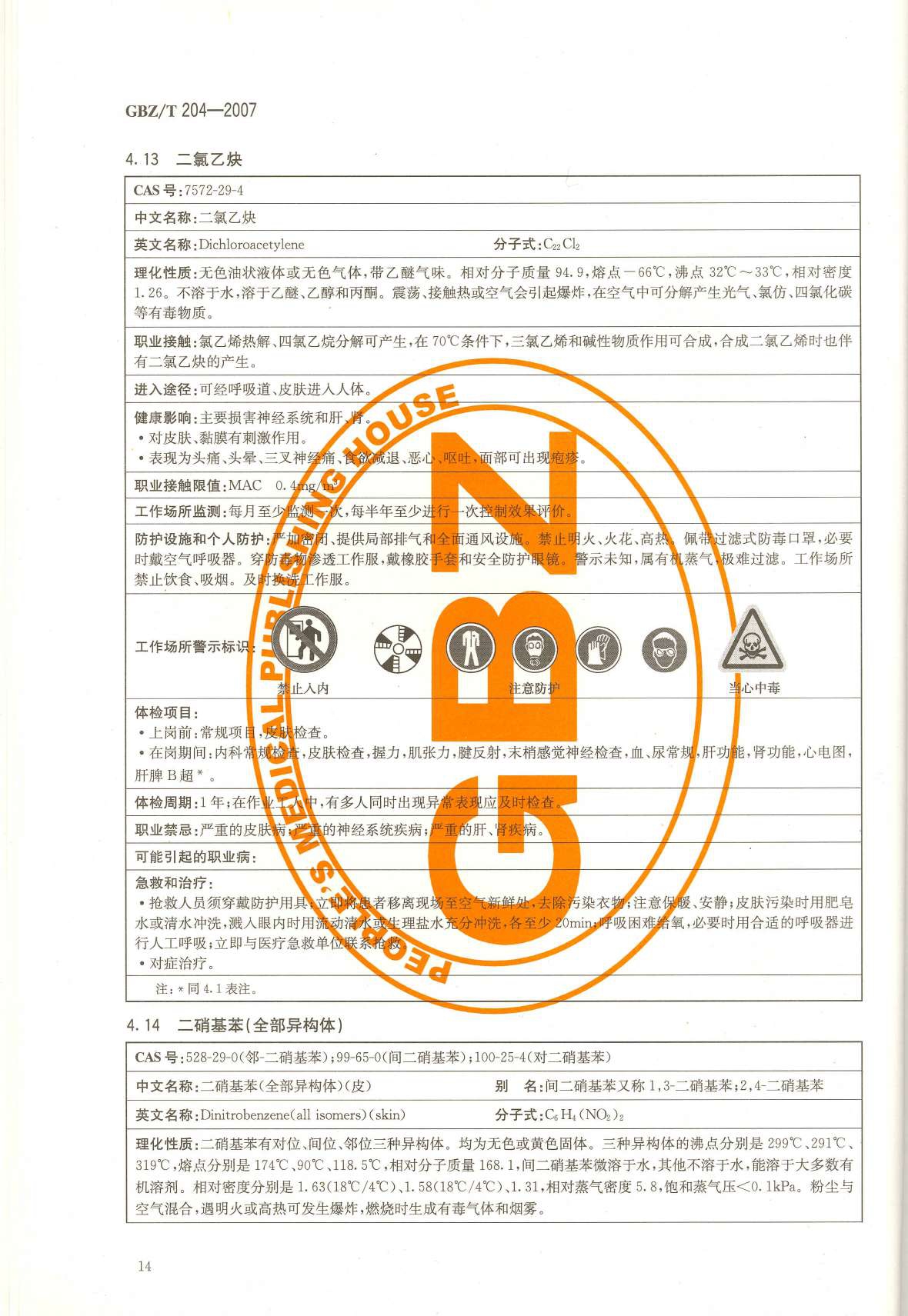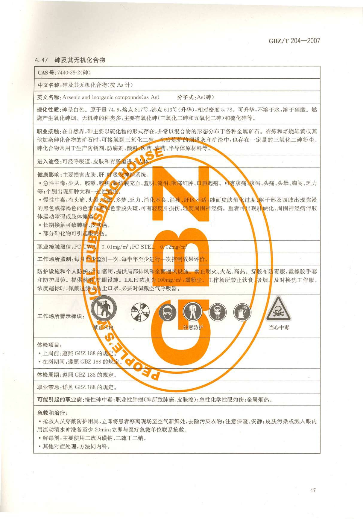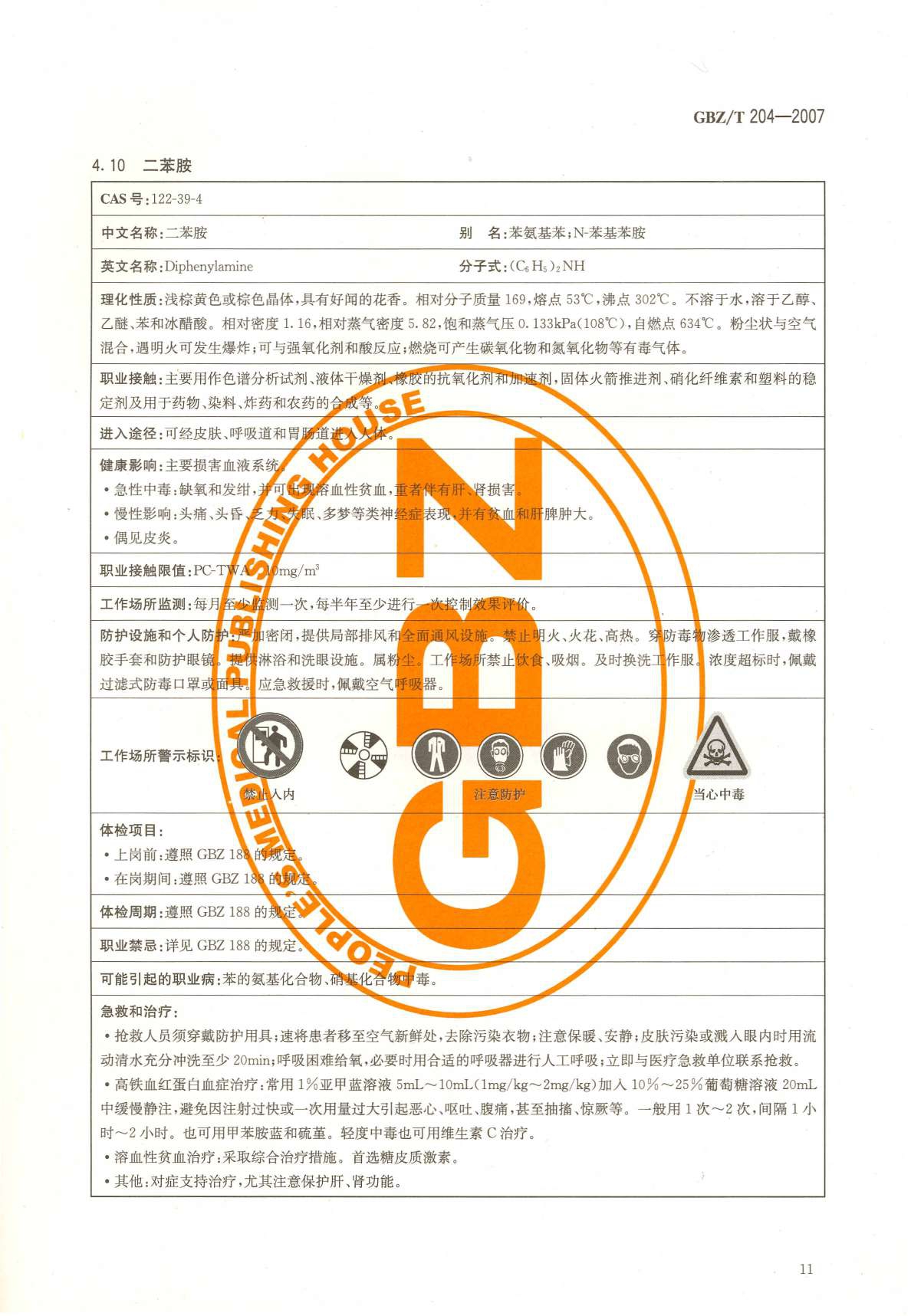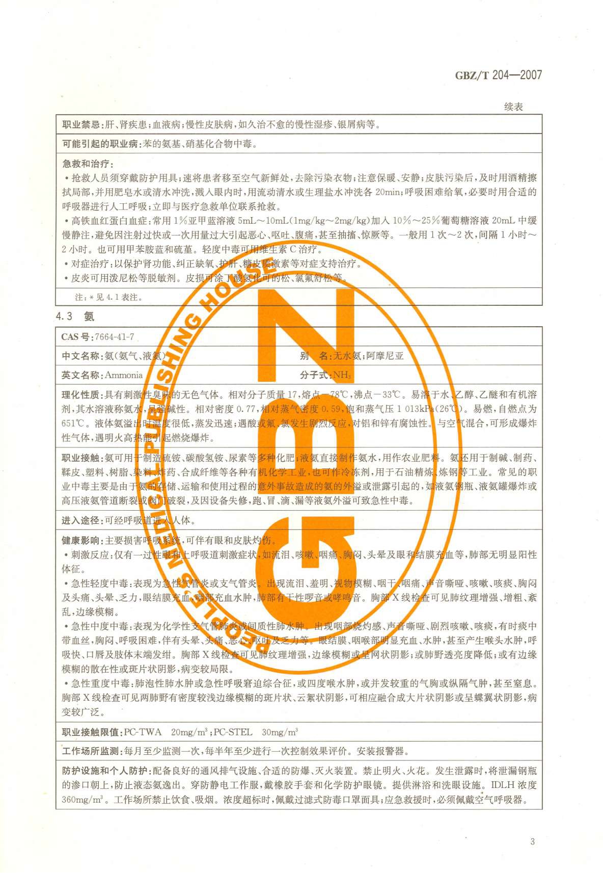 《高毒物品作业岗位职业危害信息指南》(GBZ/T204-2007)
