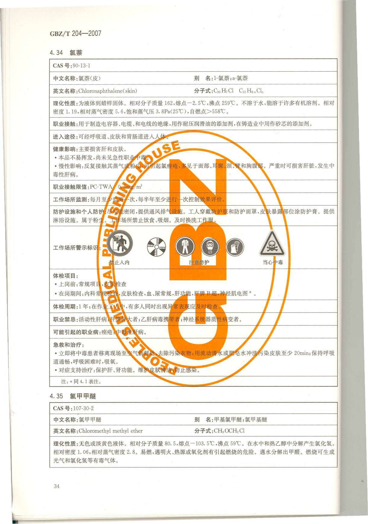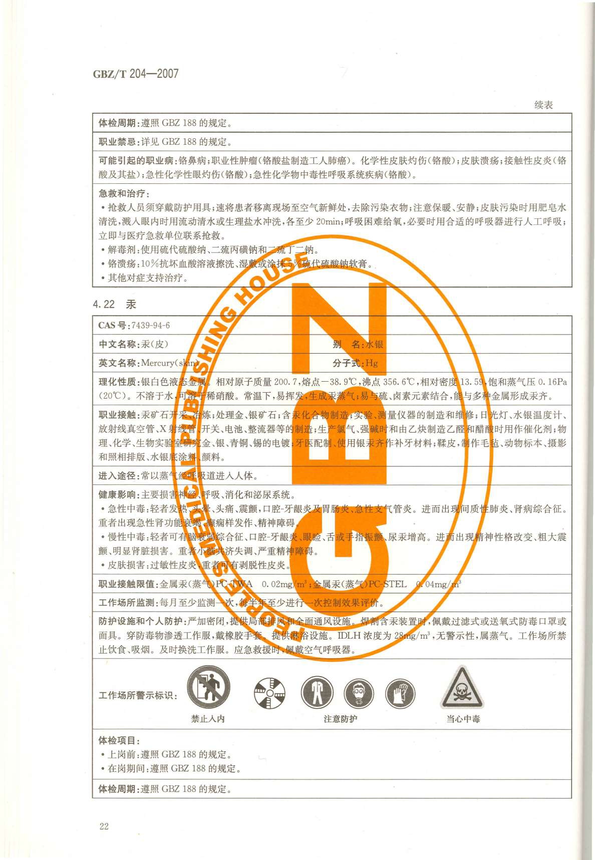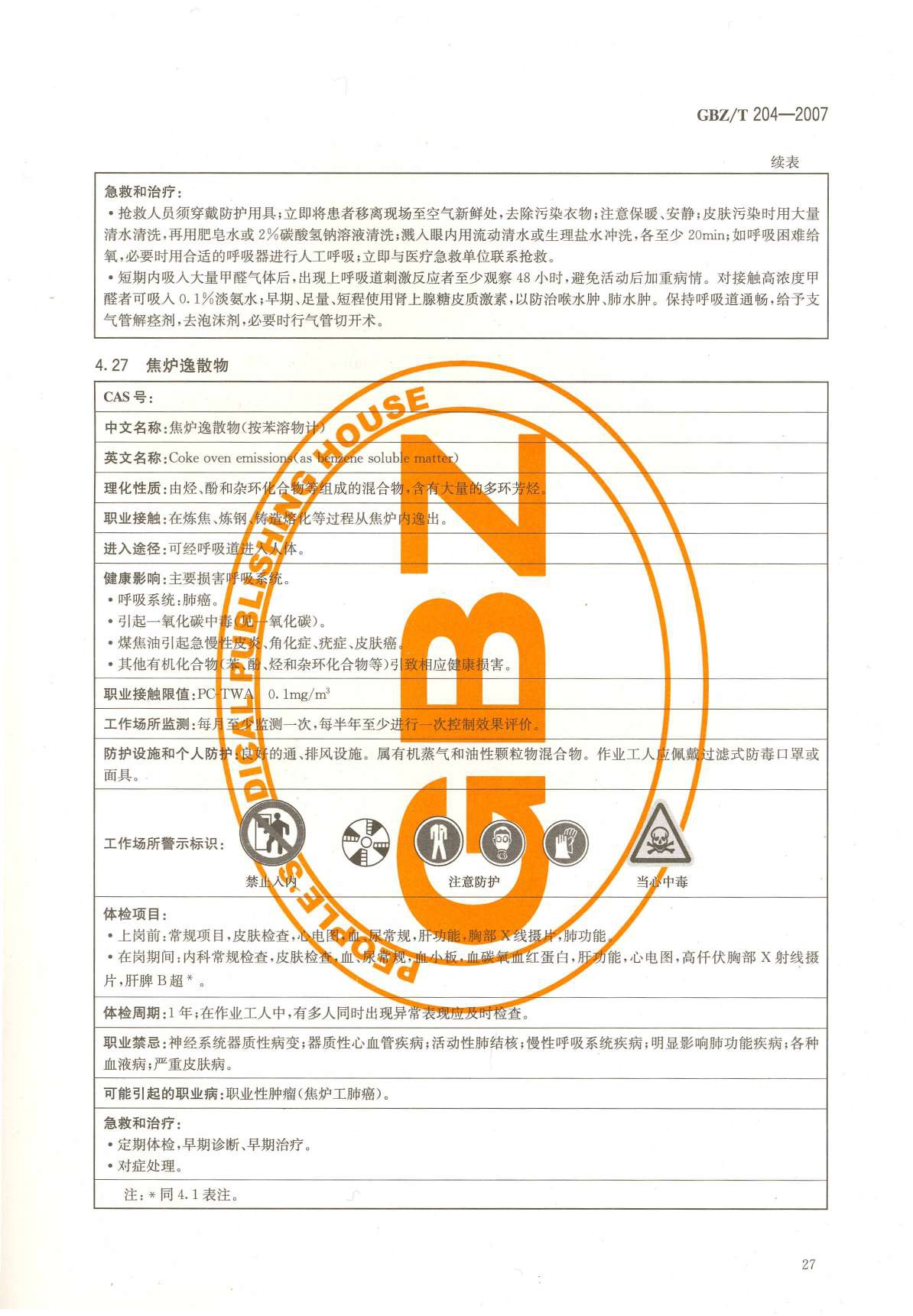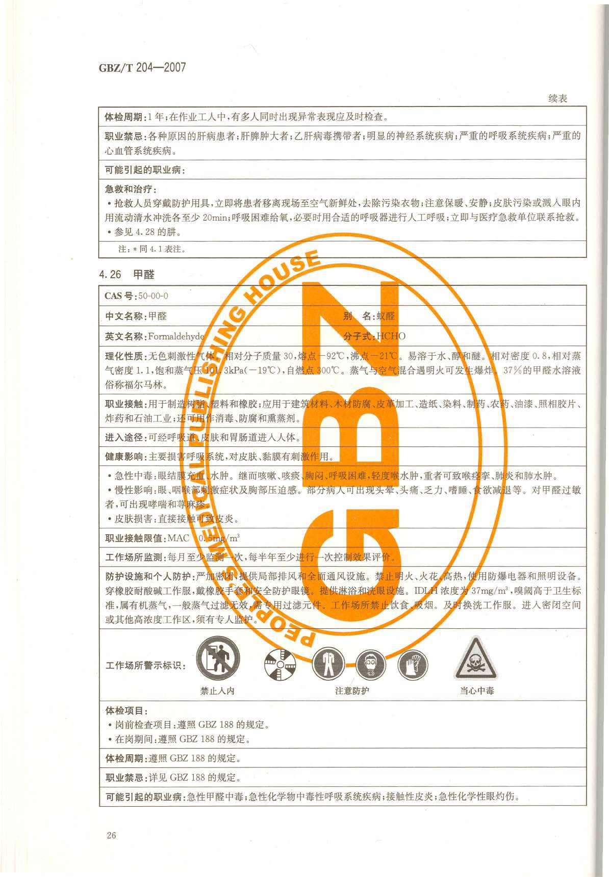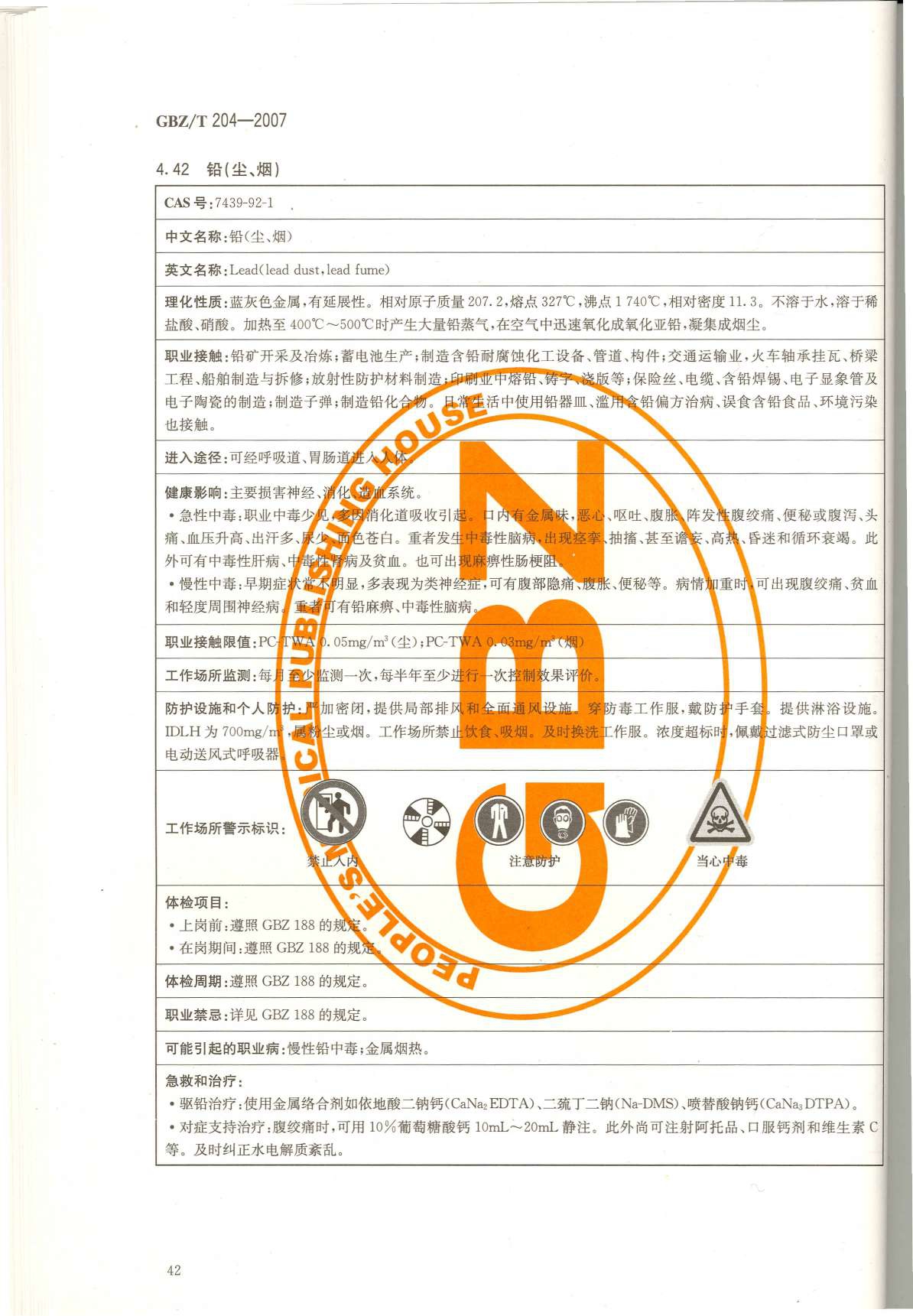 《高毒物品作业岗位职业危害信息指南》(GBZ/T204-2007)