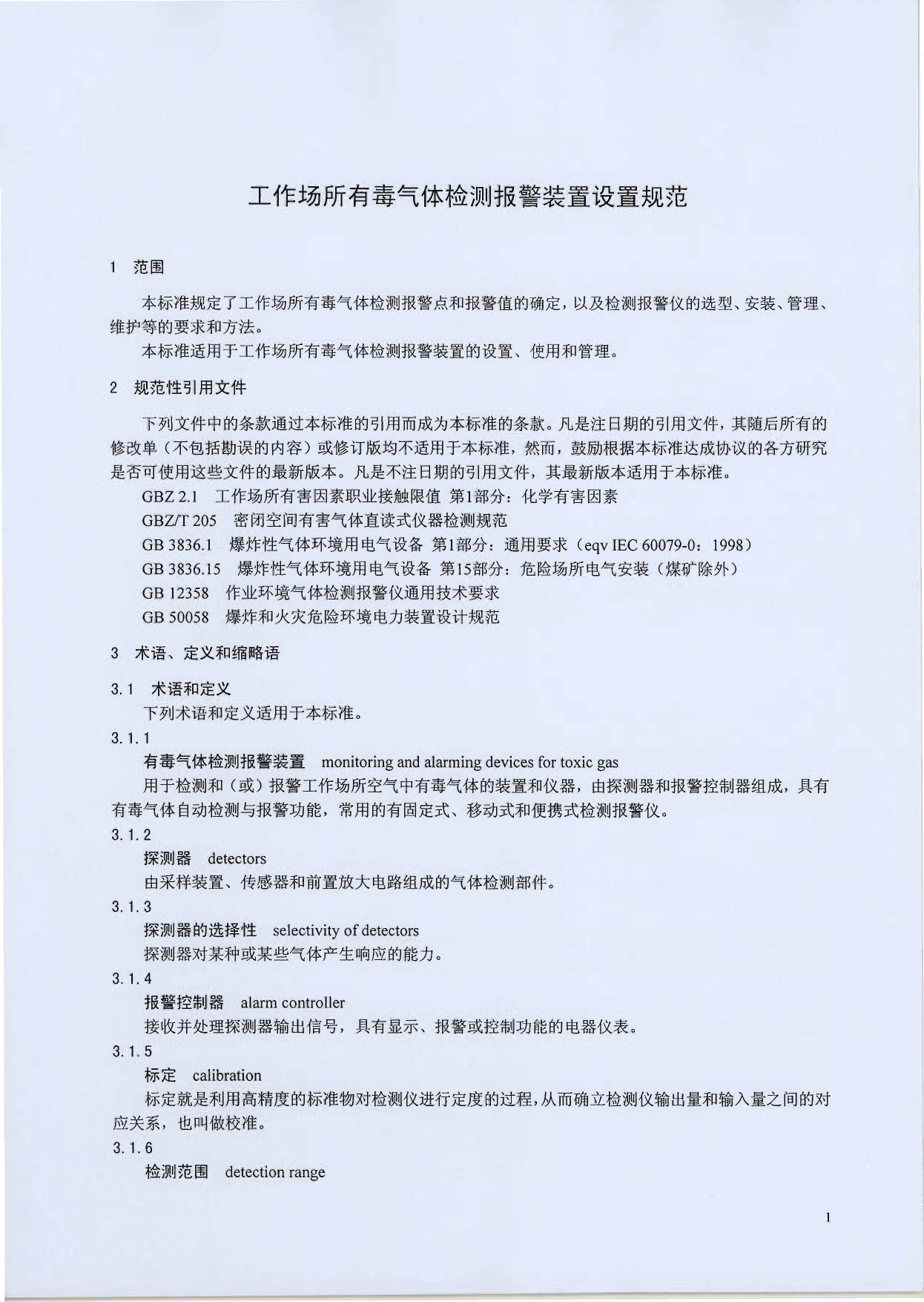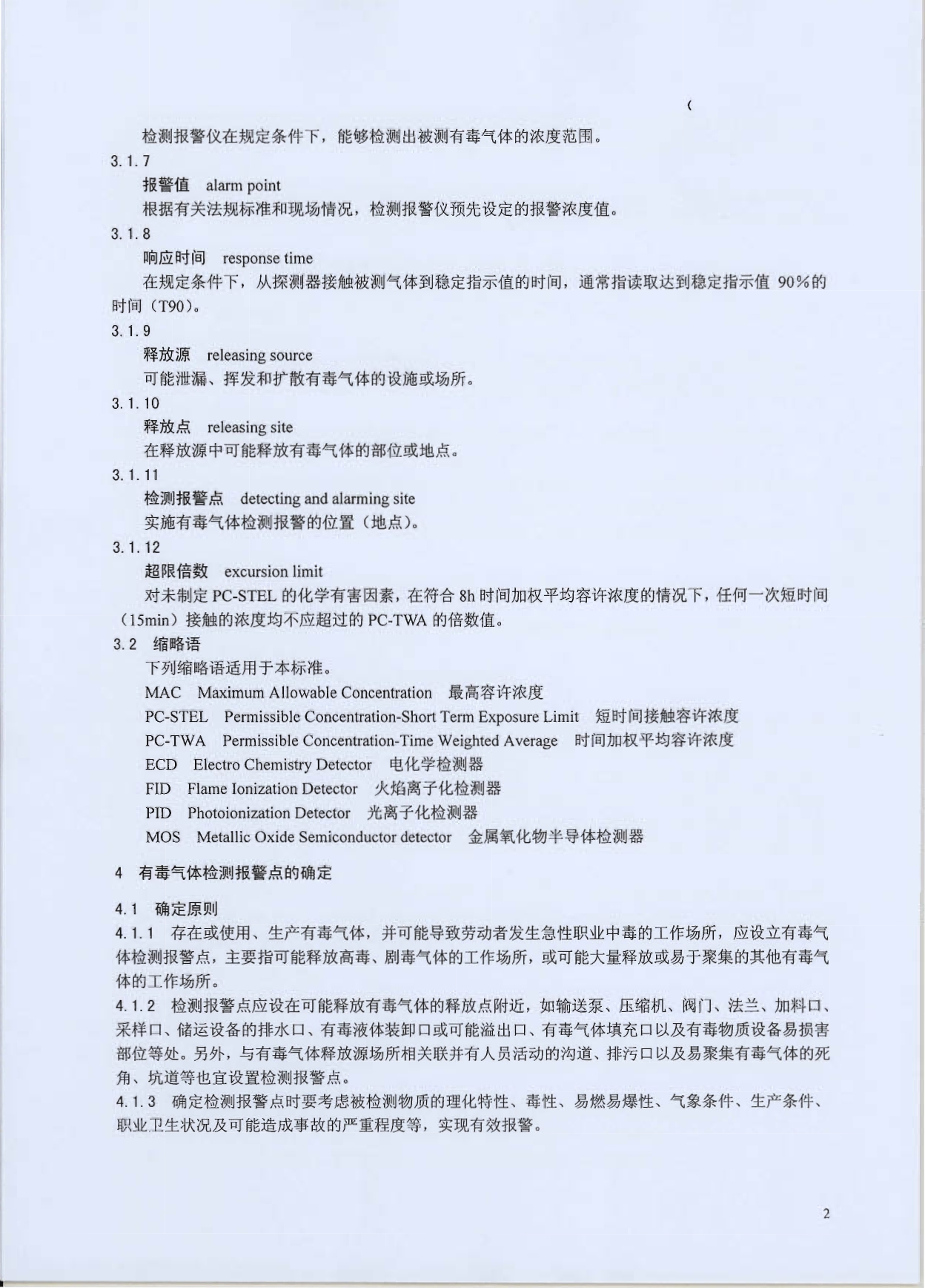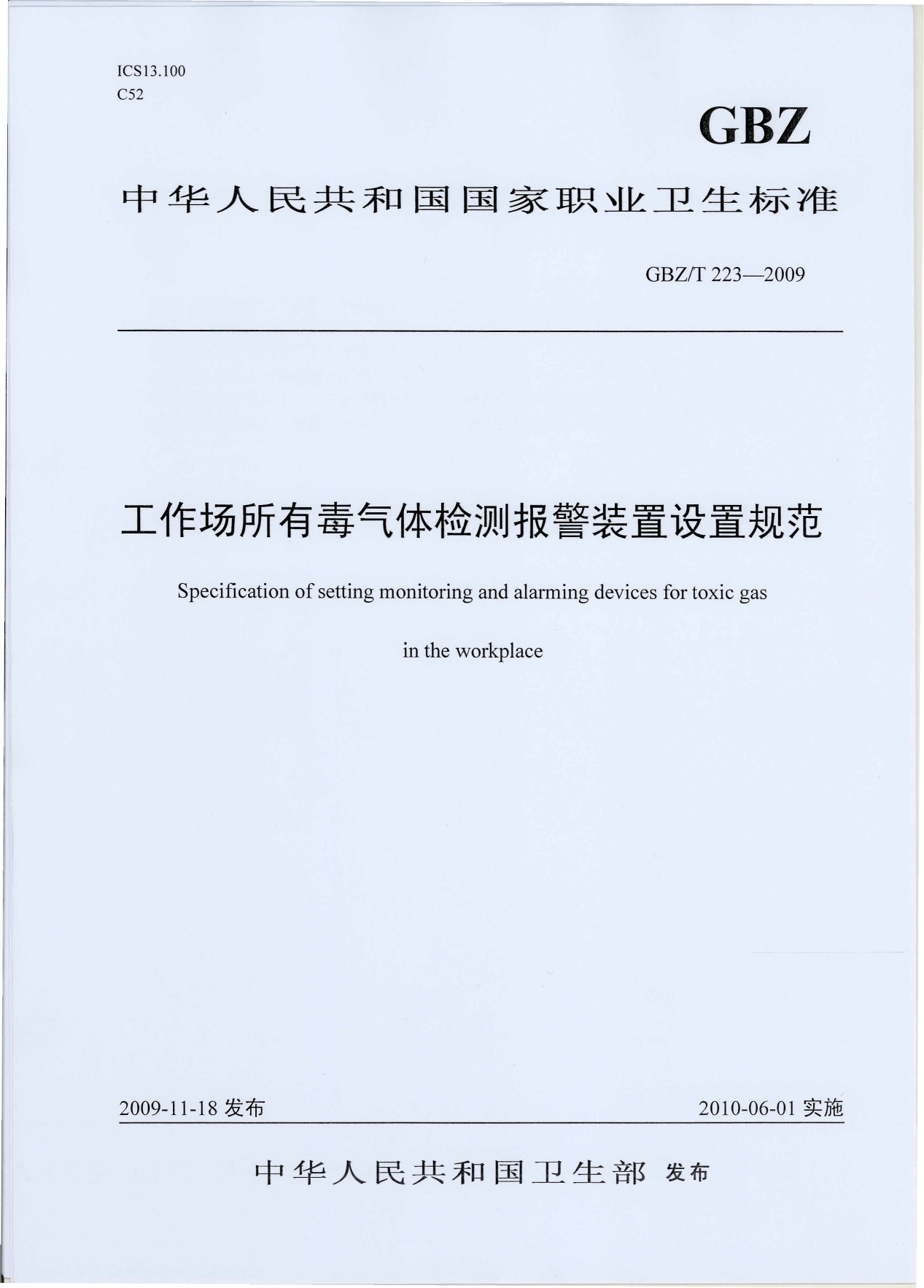 《工作场所有毒气体检测报警装置设置规范》(GBZ/T223-2009)