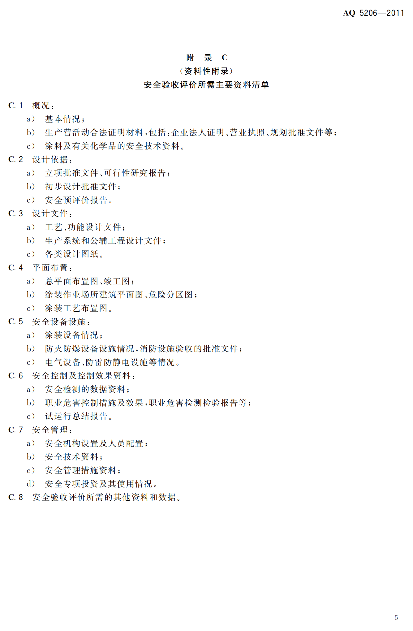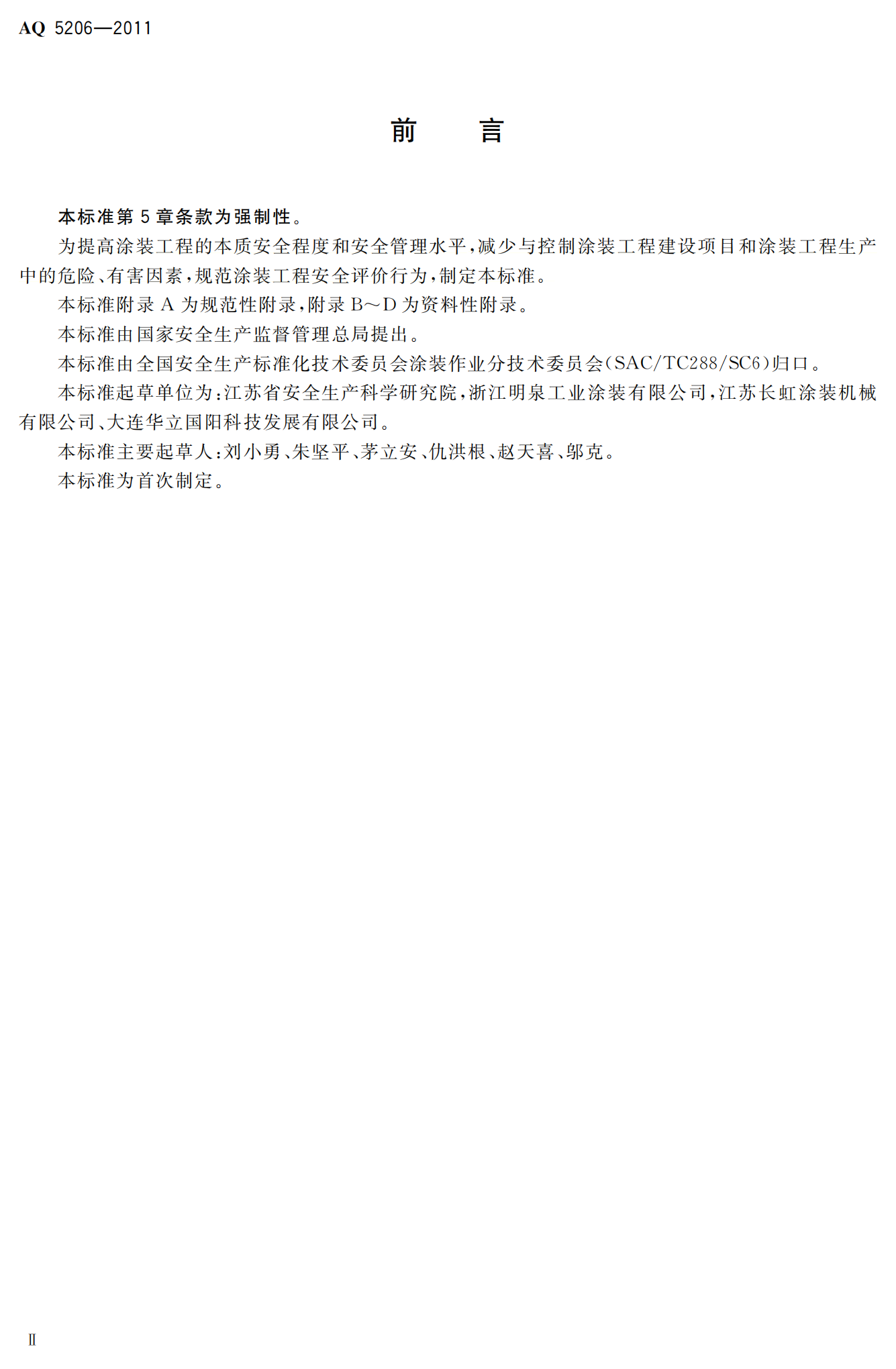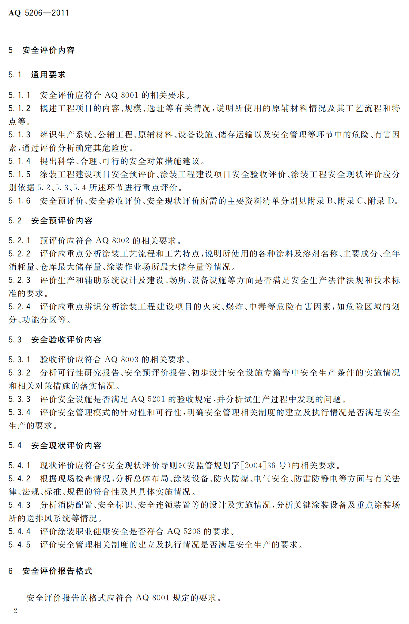 涂装工程安全评价导则--AQ5206-2011