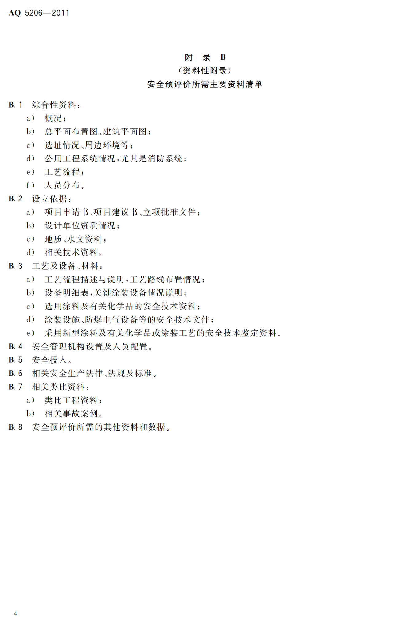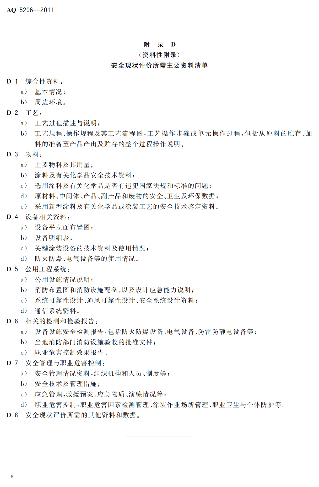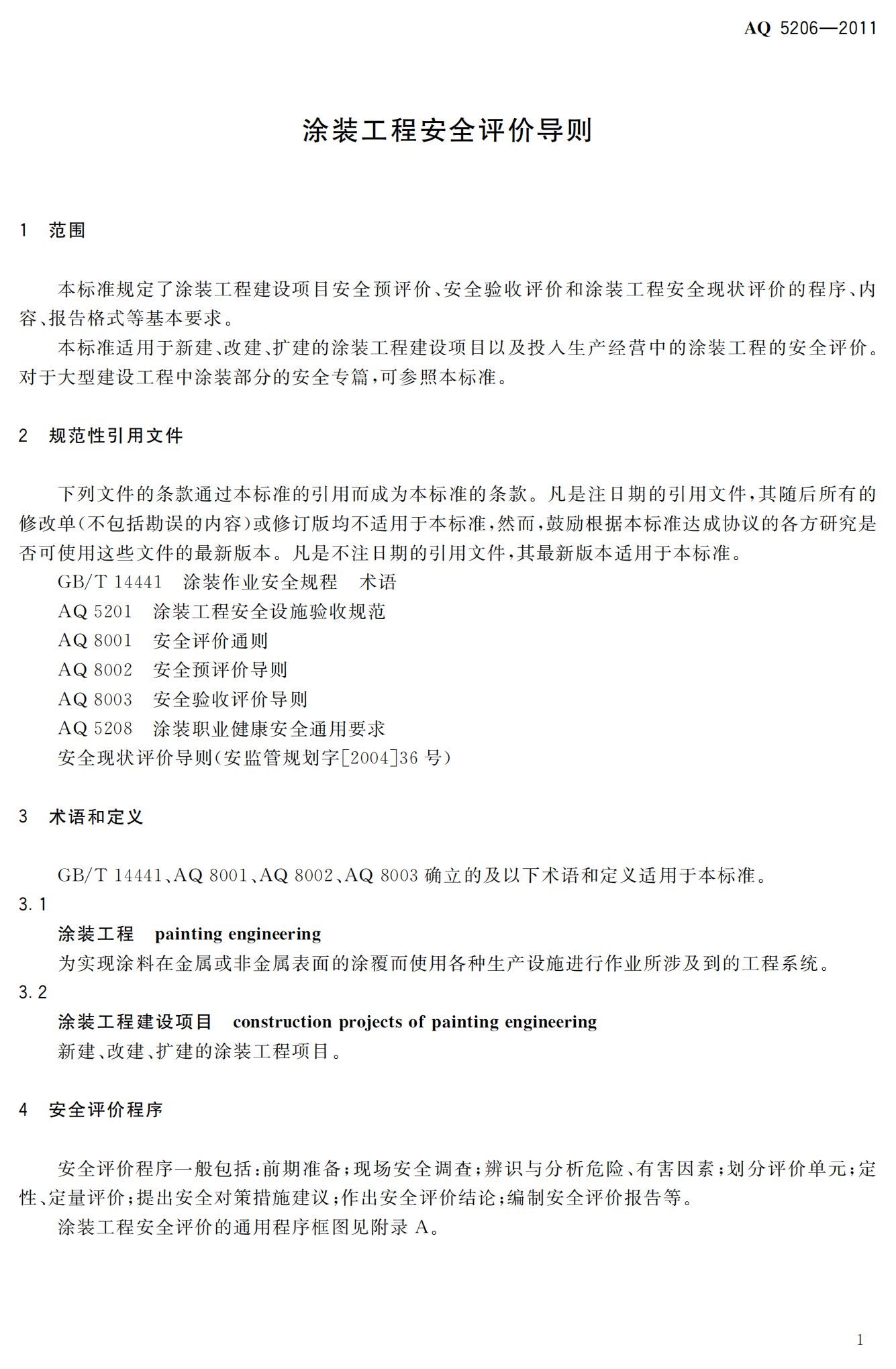 涂装工程安全评价导则--AQ5206-2011