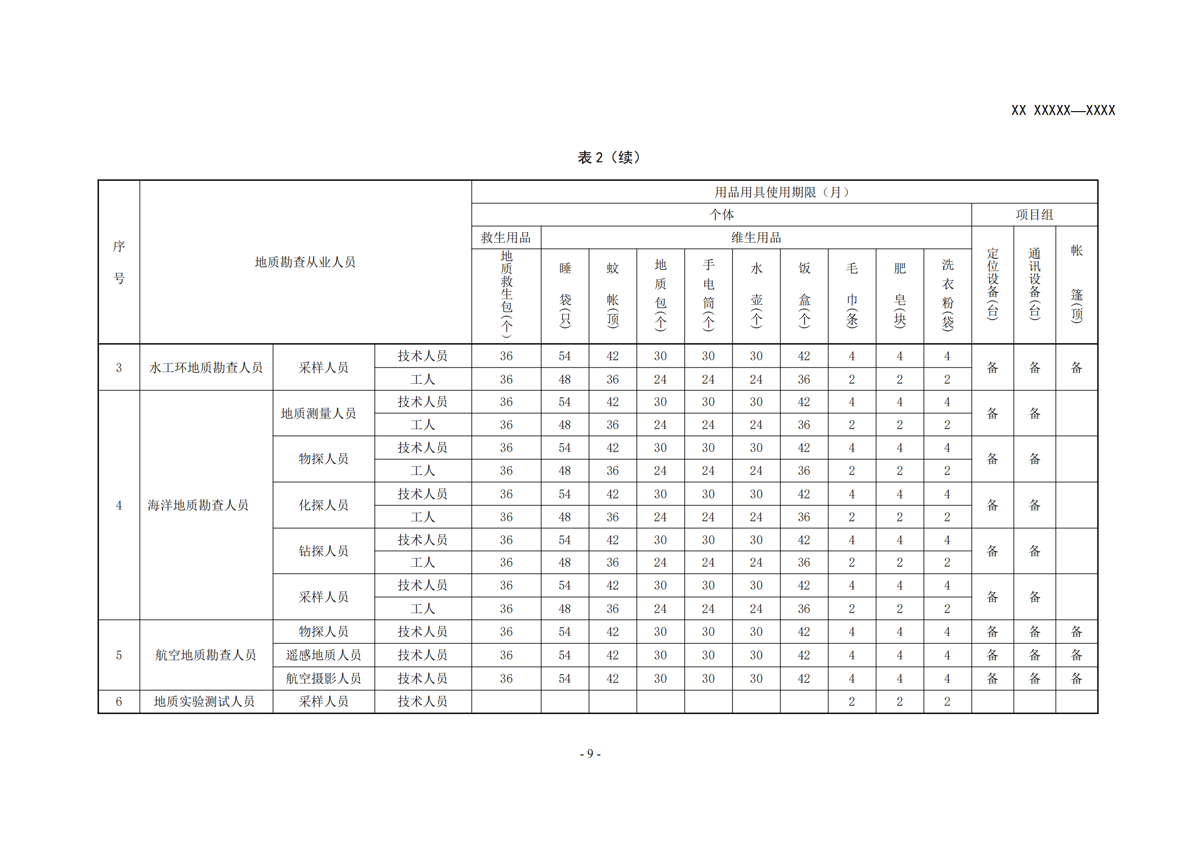 《地质勘查安全防护与应急救生用品(用具)配备要求》(AQ2049-2013)