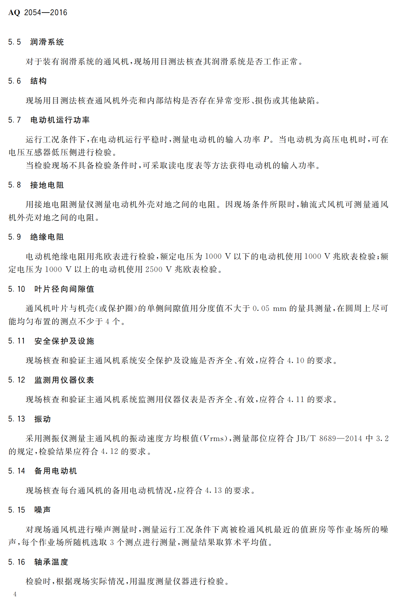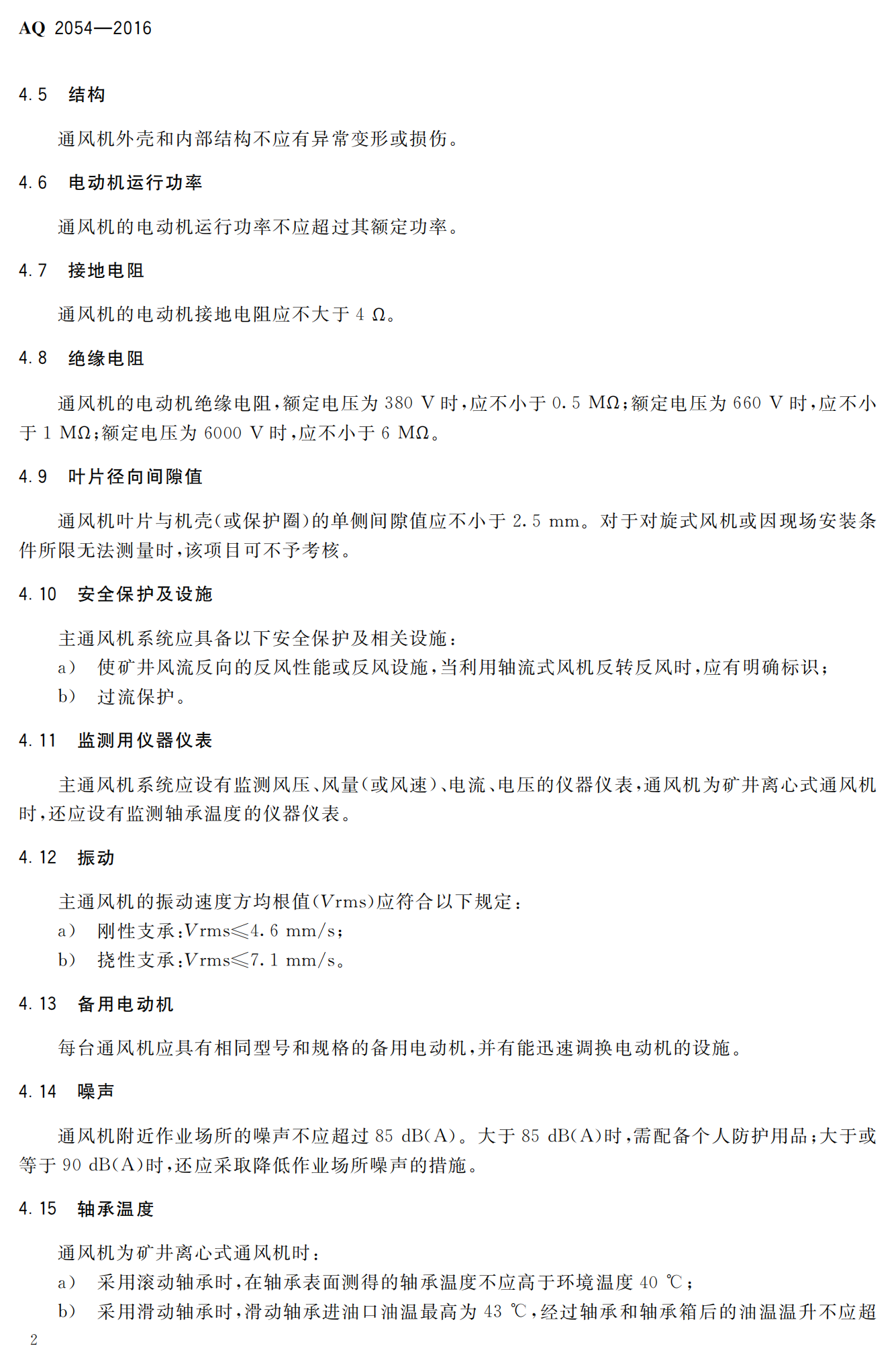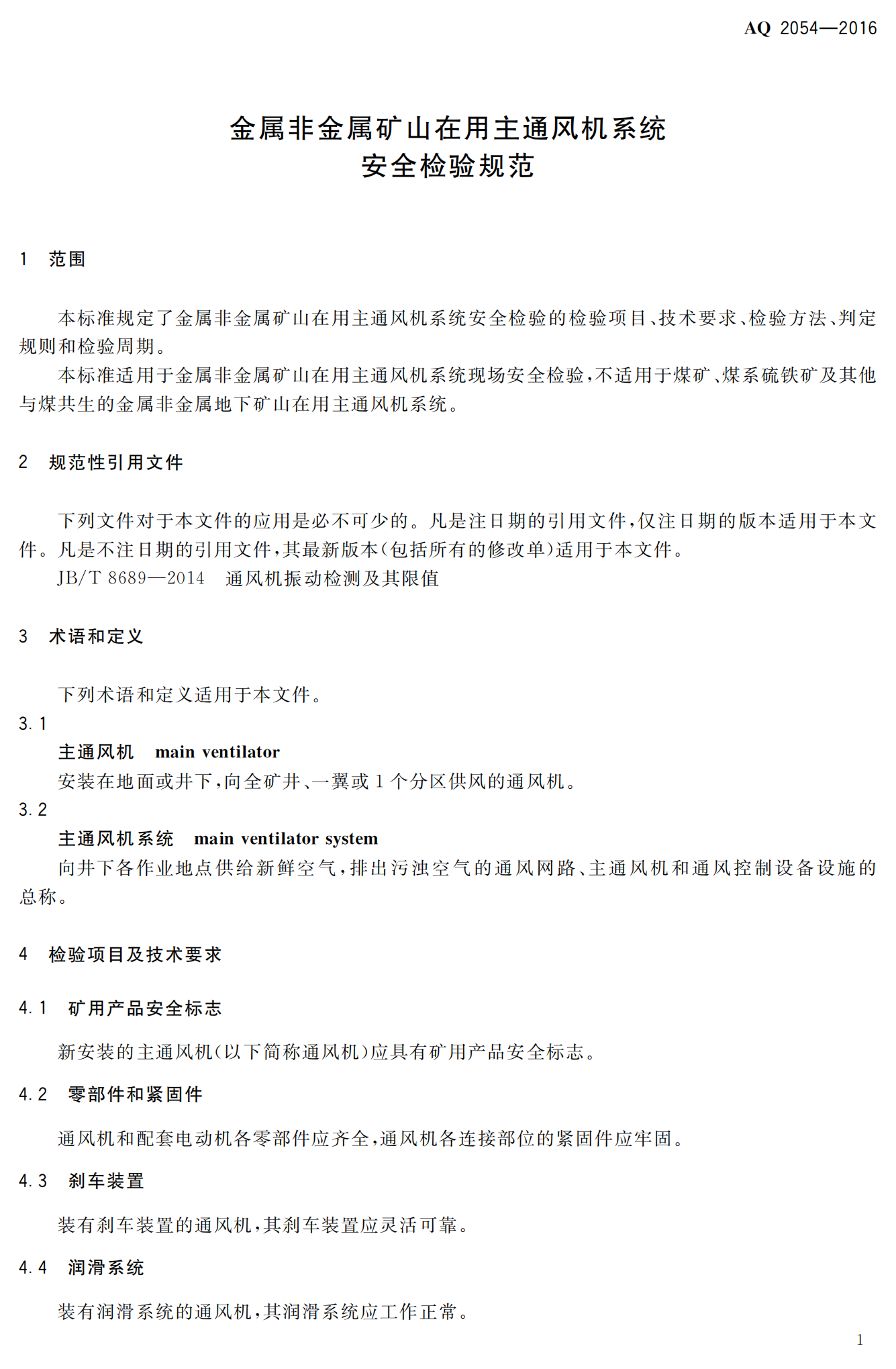 《金属非金属矿山在用主通风机系统安全检验规范》(AQ2054-2016)