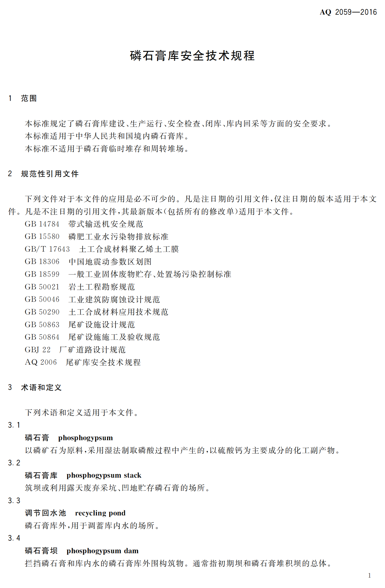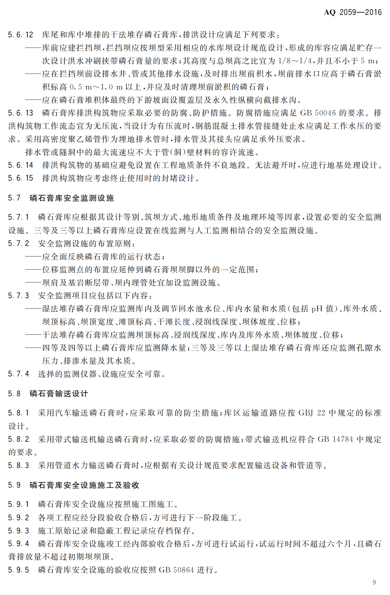 《磷石膏库安全技术规程》(AQ2059-2016)