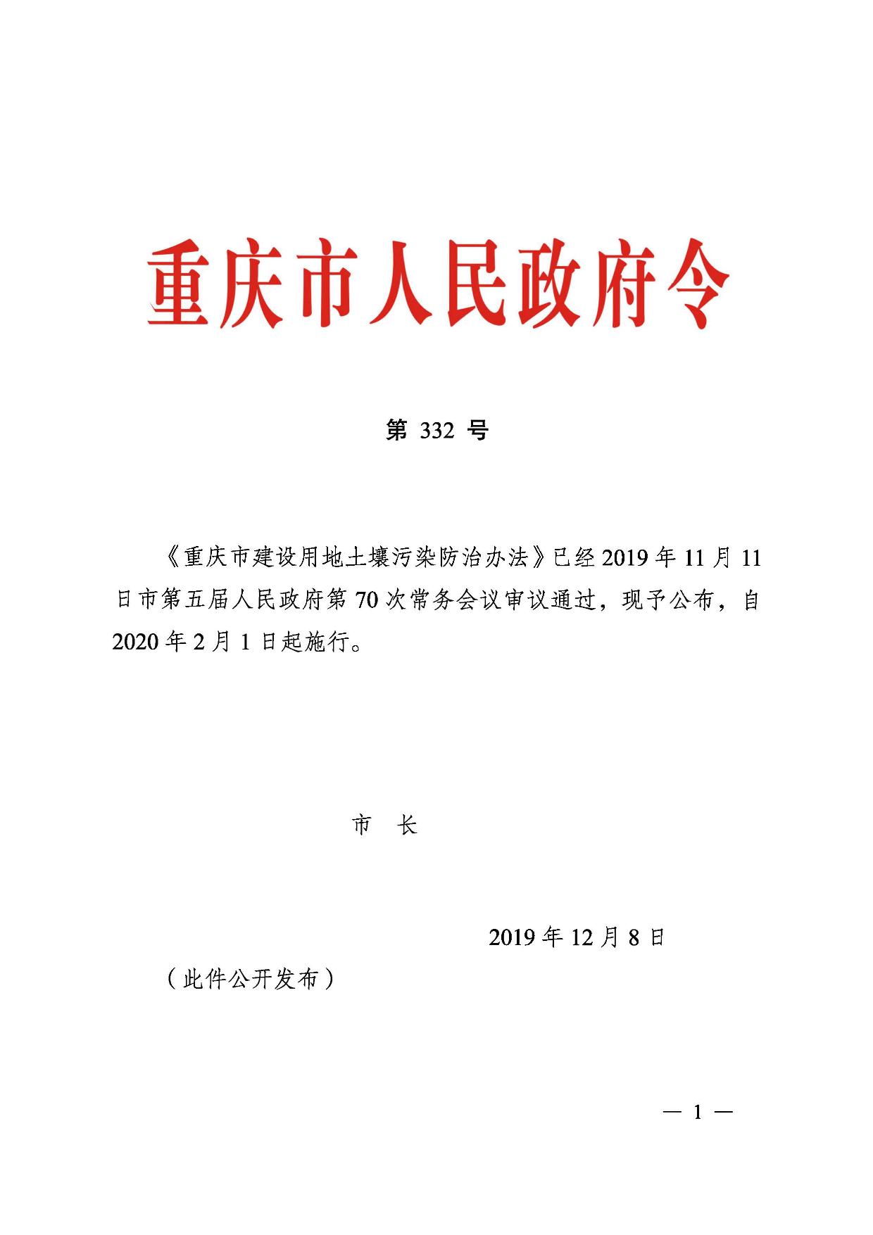 《重庆市建设用地土壤污染防治办法》(渝府令〔2019〕第332号)