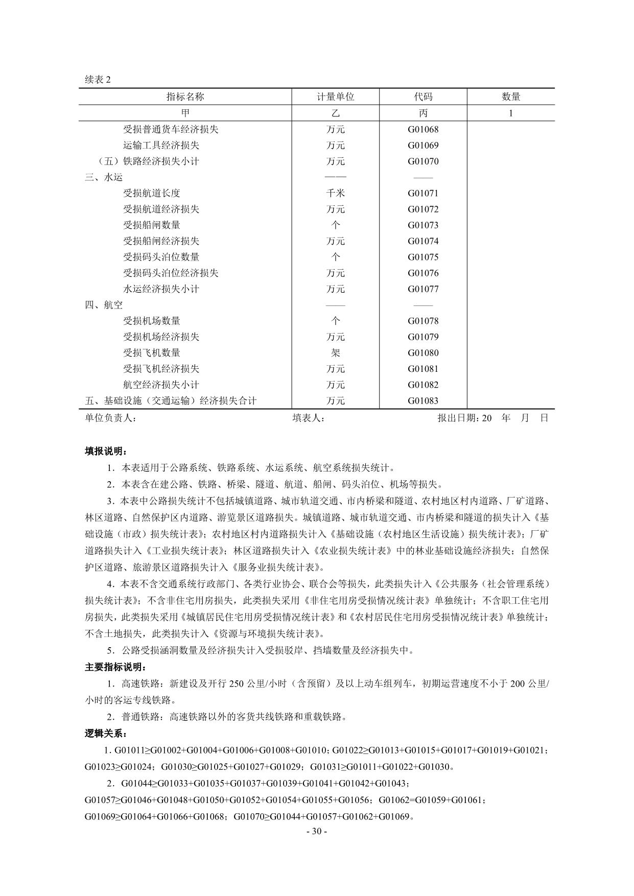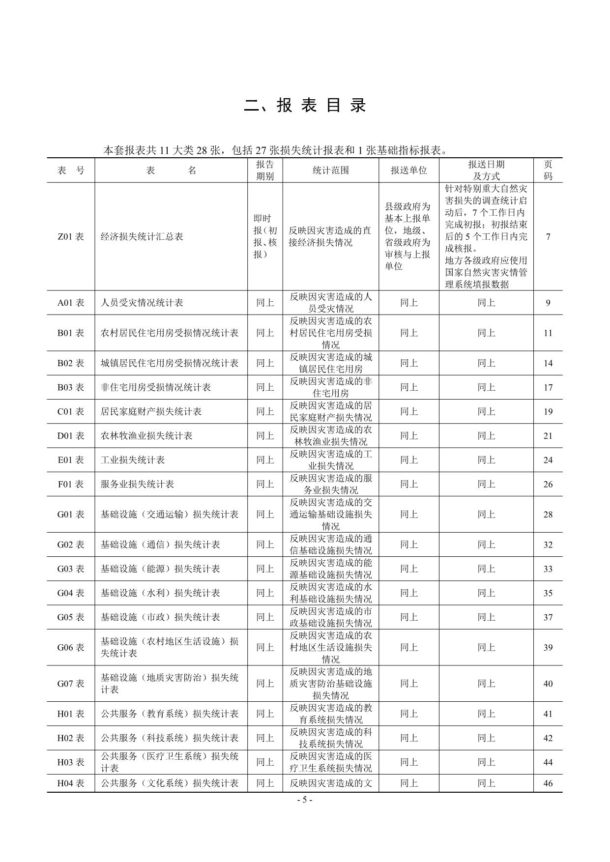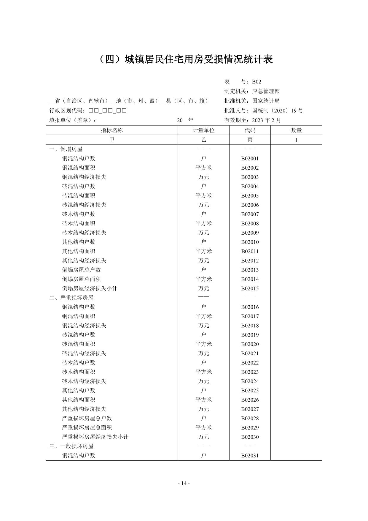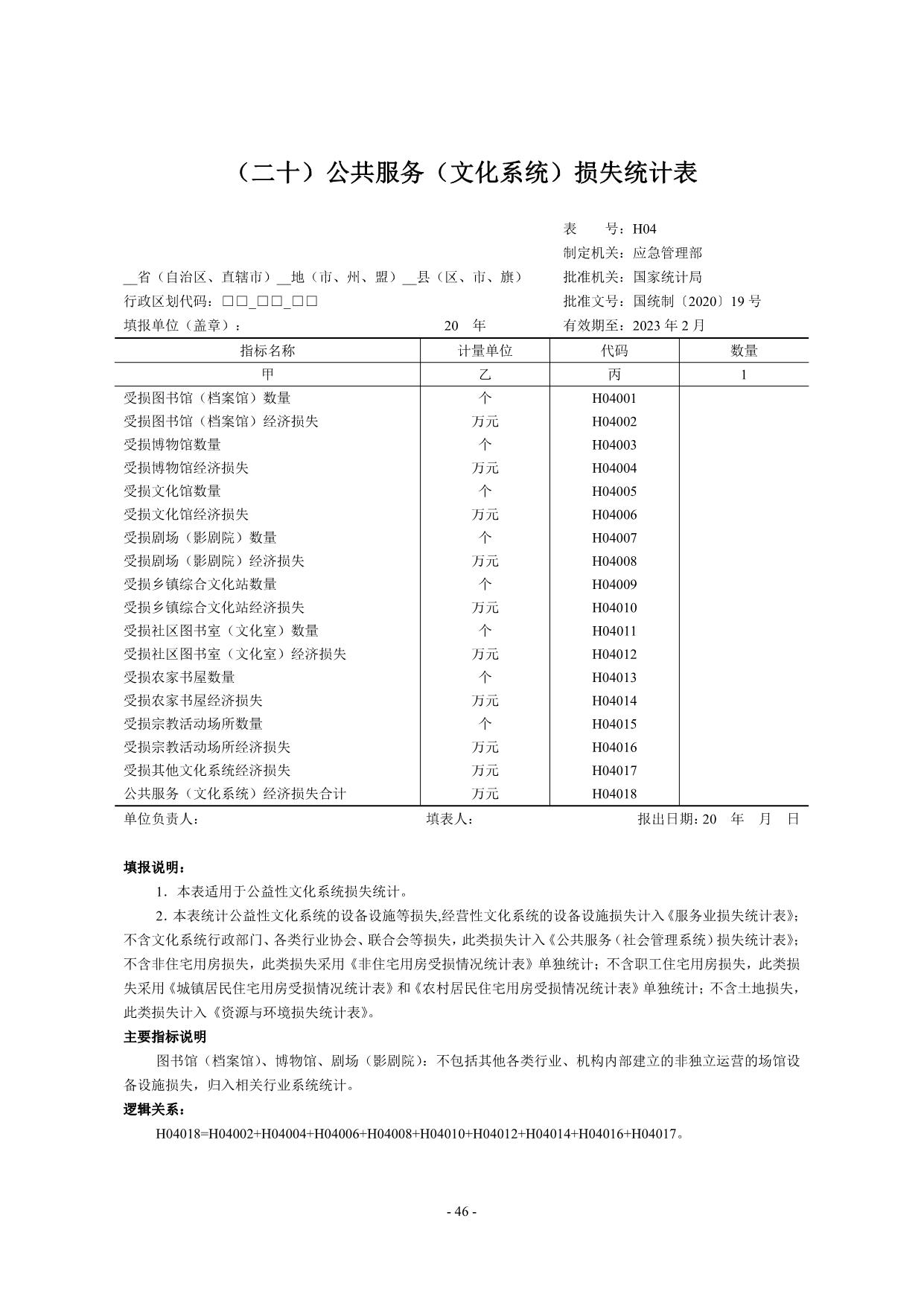 《特别重大自然灾害损失统计调查制度》(应急[2020]19号附件2)