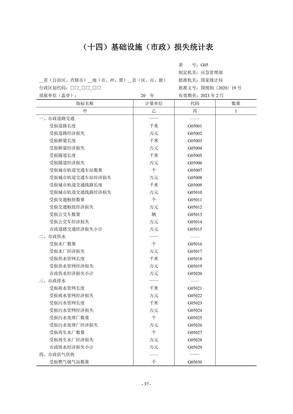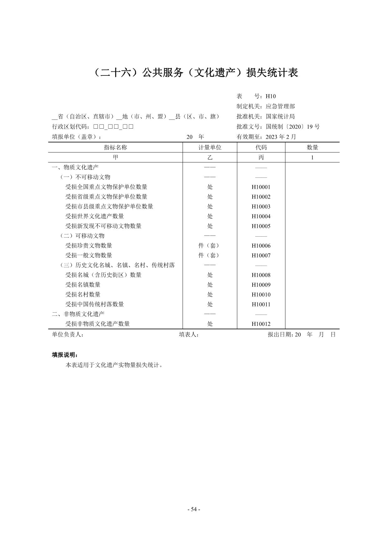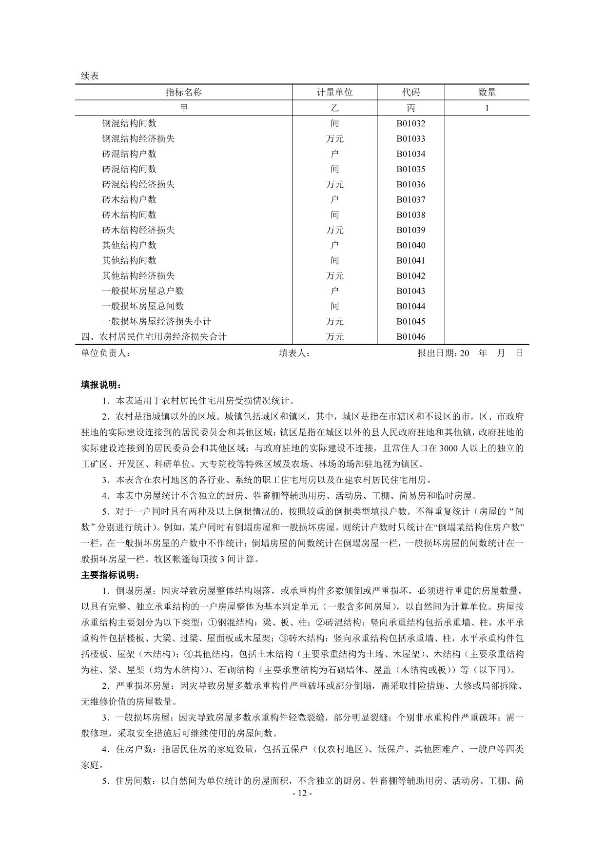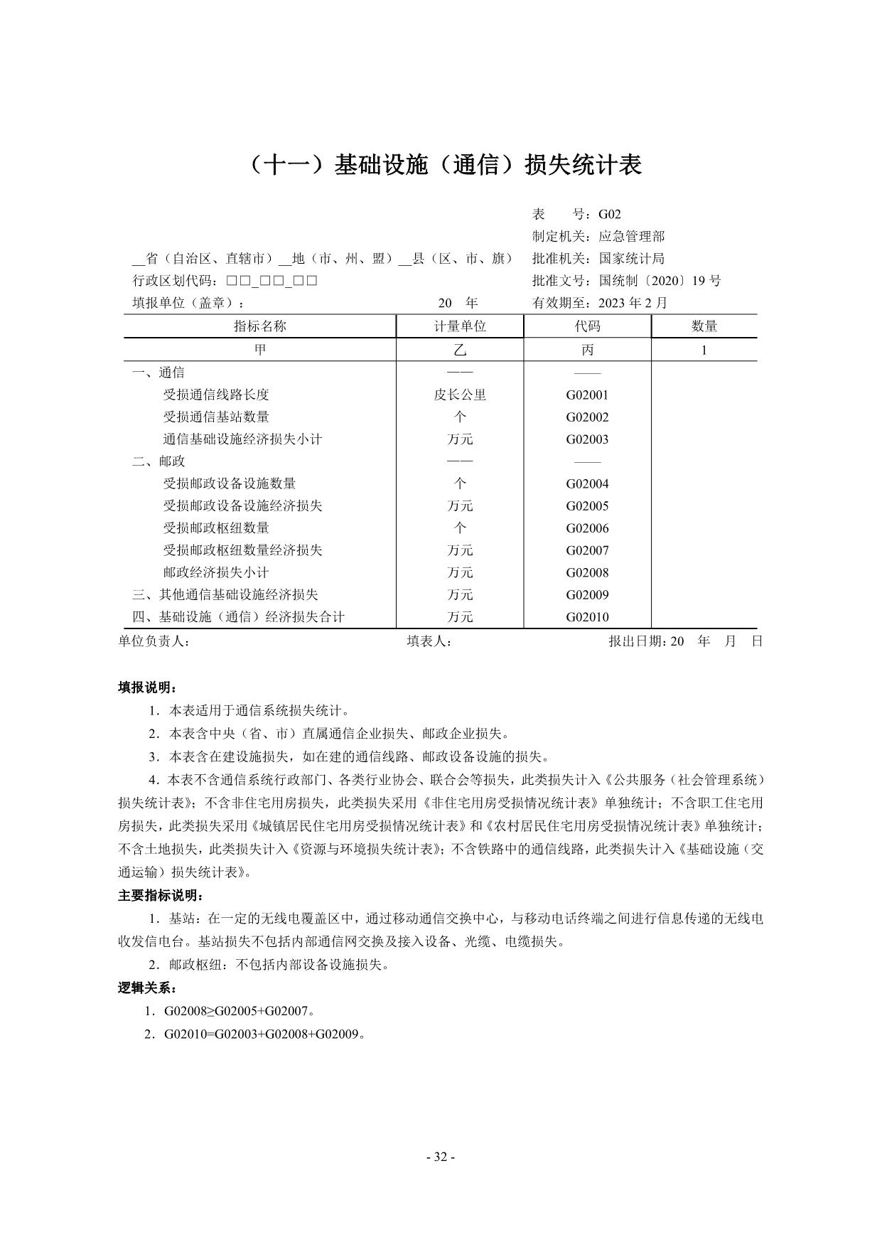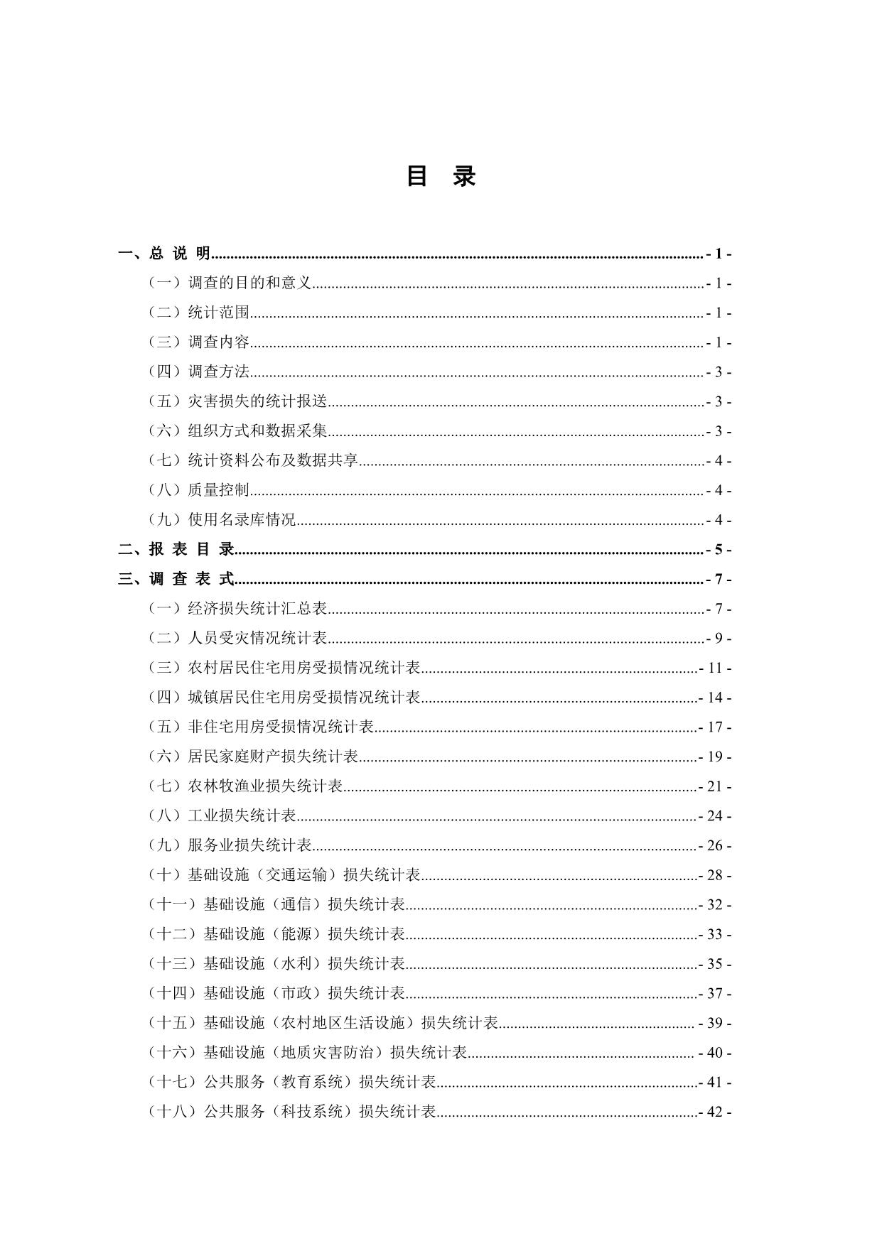 《特别重大自然灾害损失统计调查制度》(应急[2020]19号附件2)