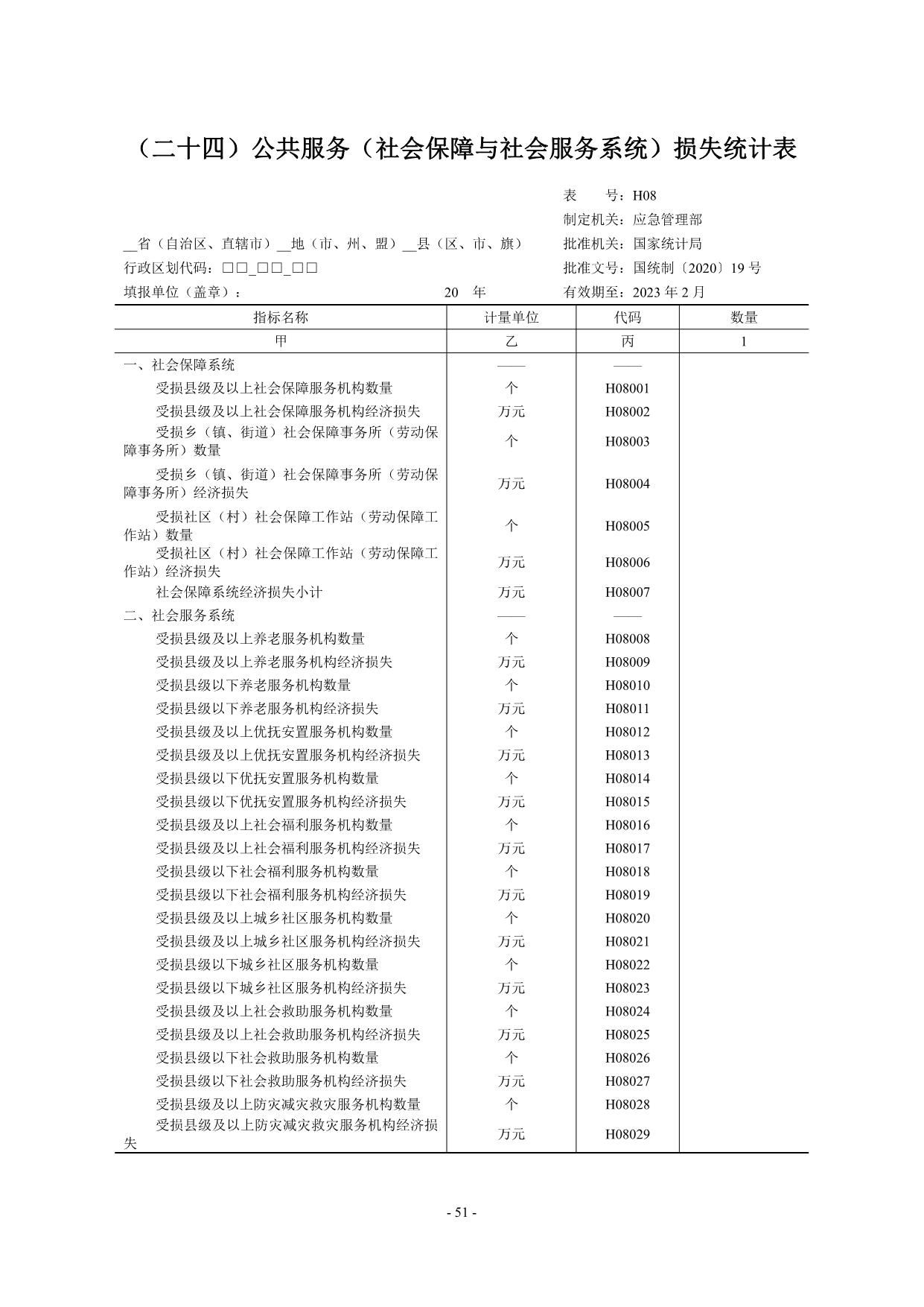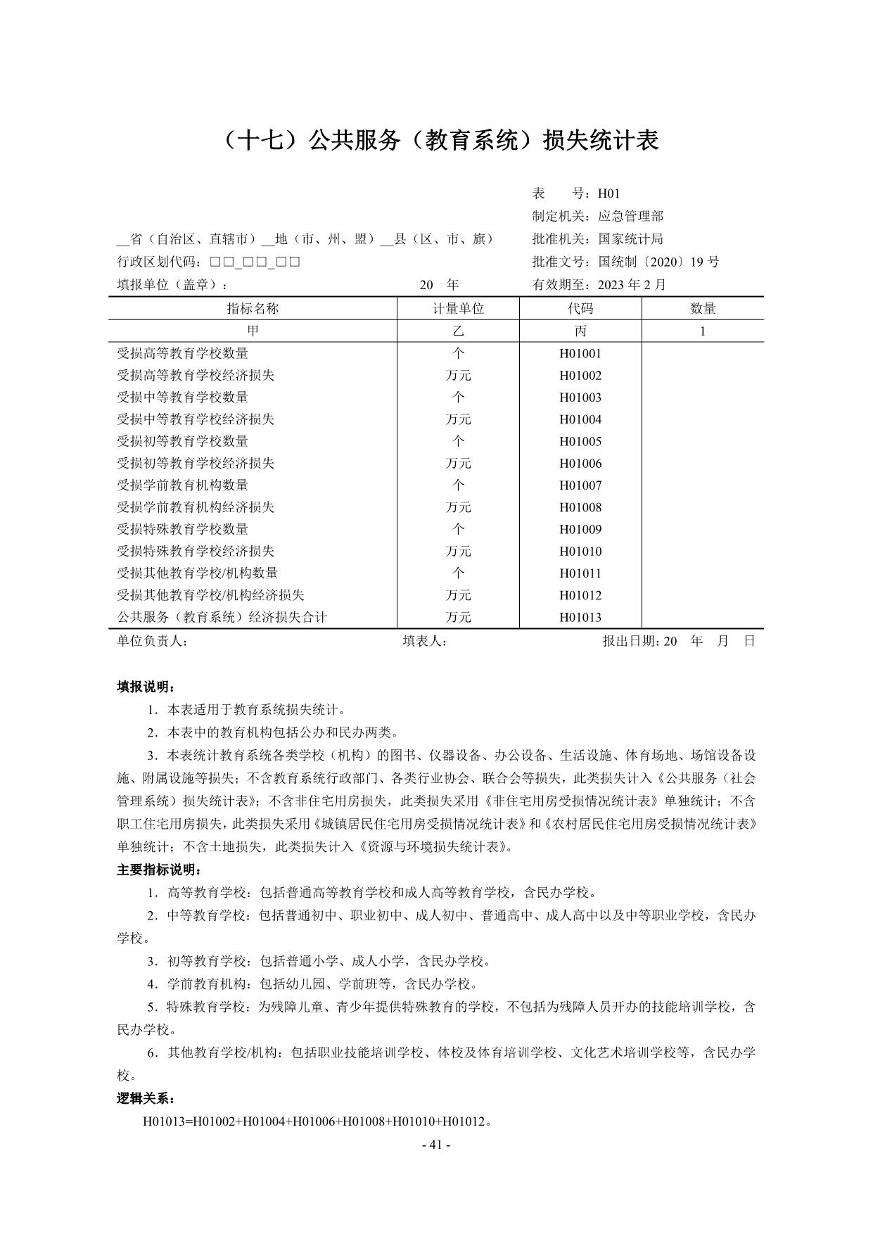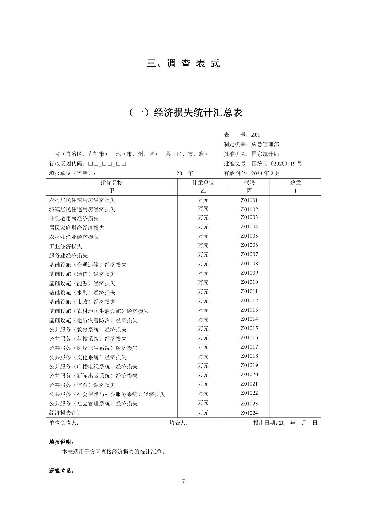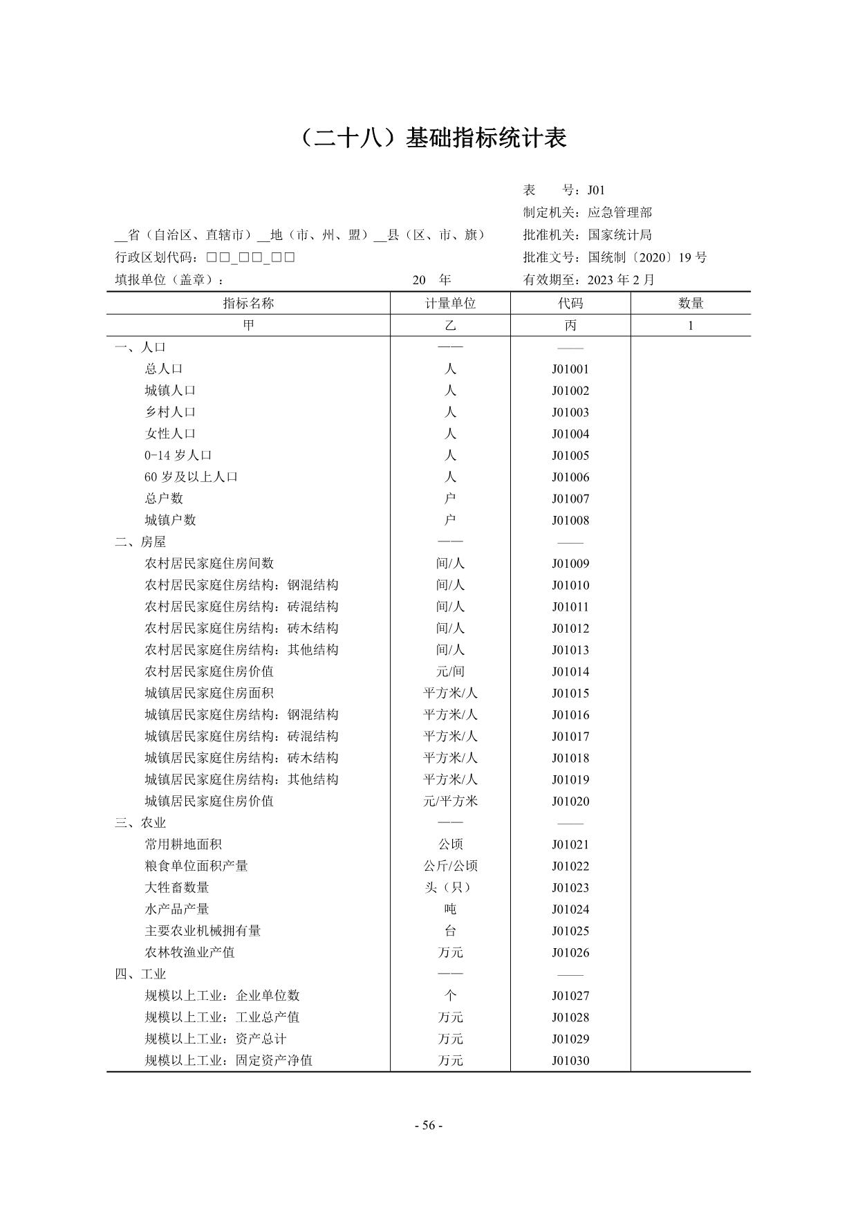 《特别重大自然灾害损失统计调查制度》(应急[2020]19号附件2)
