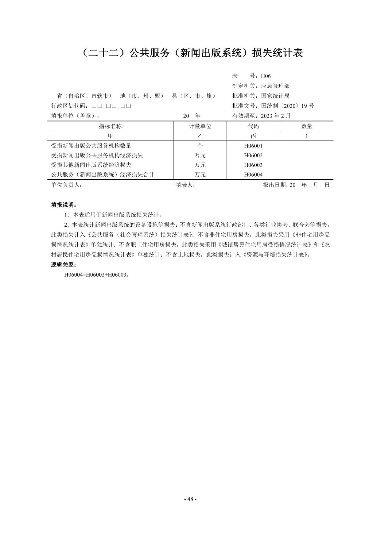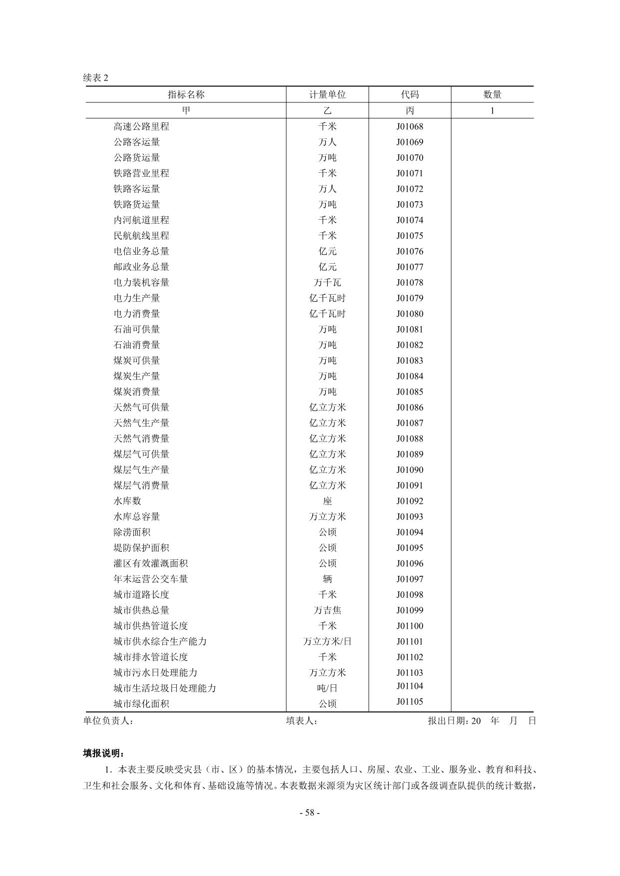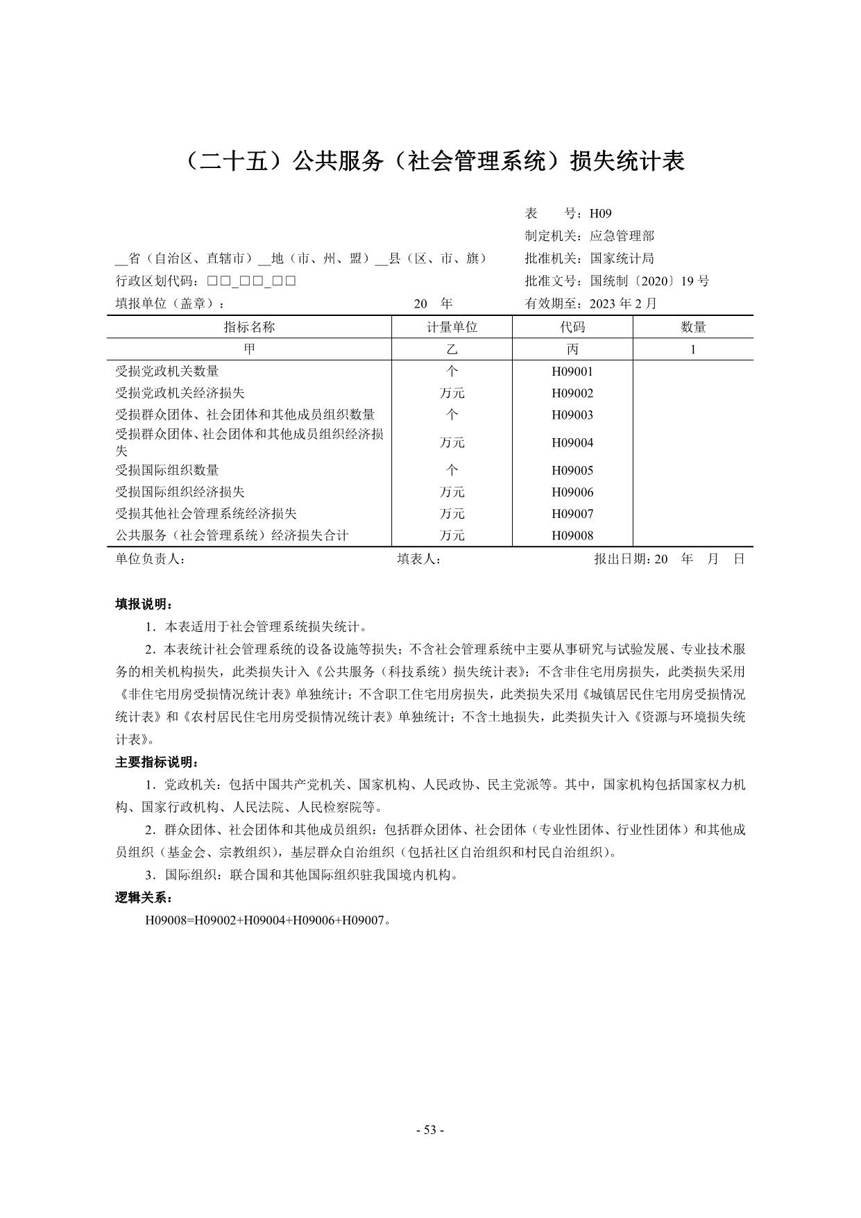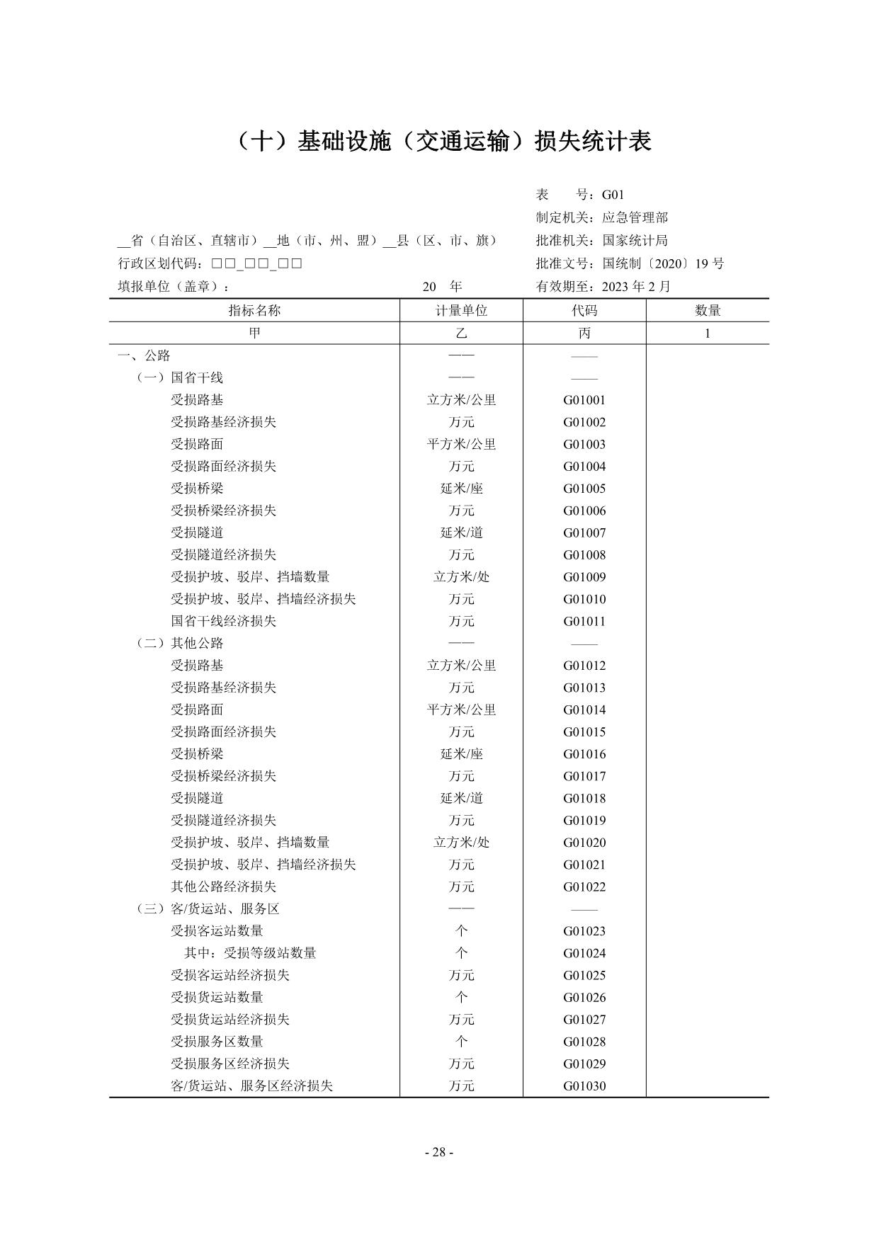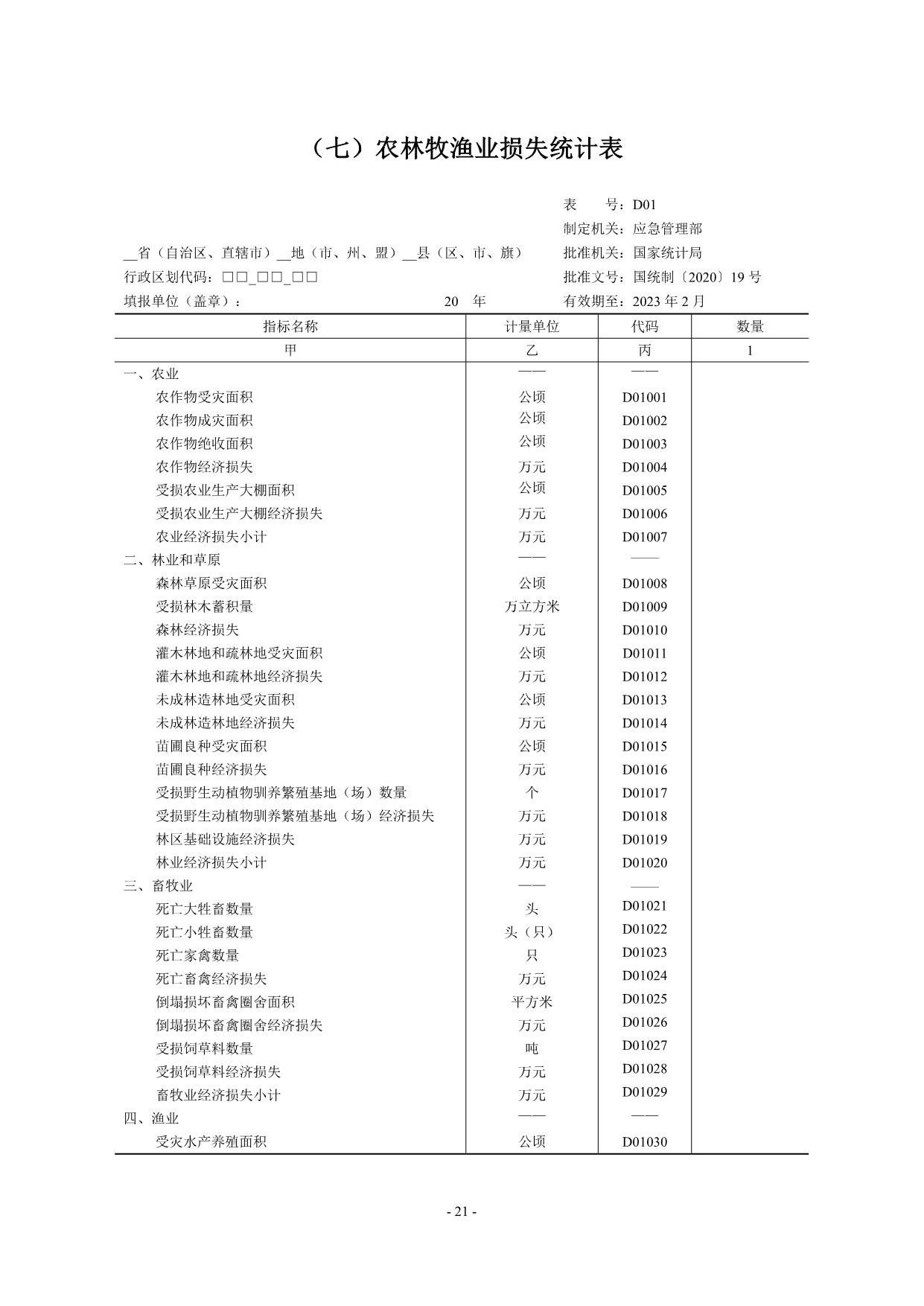 《特别重大自然灾害损失统计调查制度》(应急[2020]19号附件2)