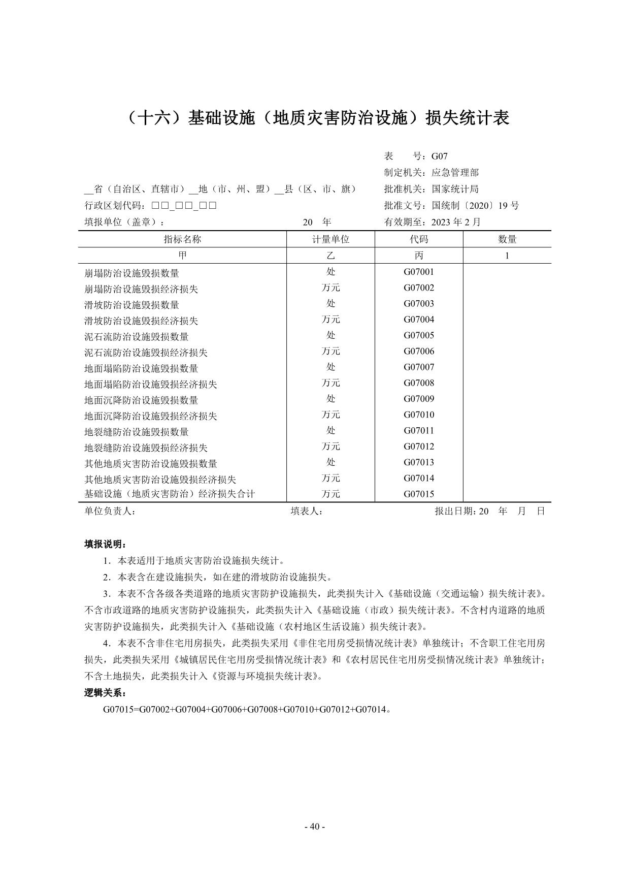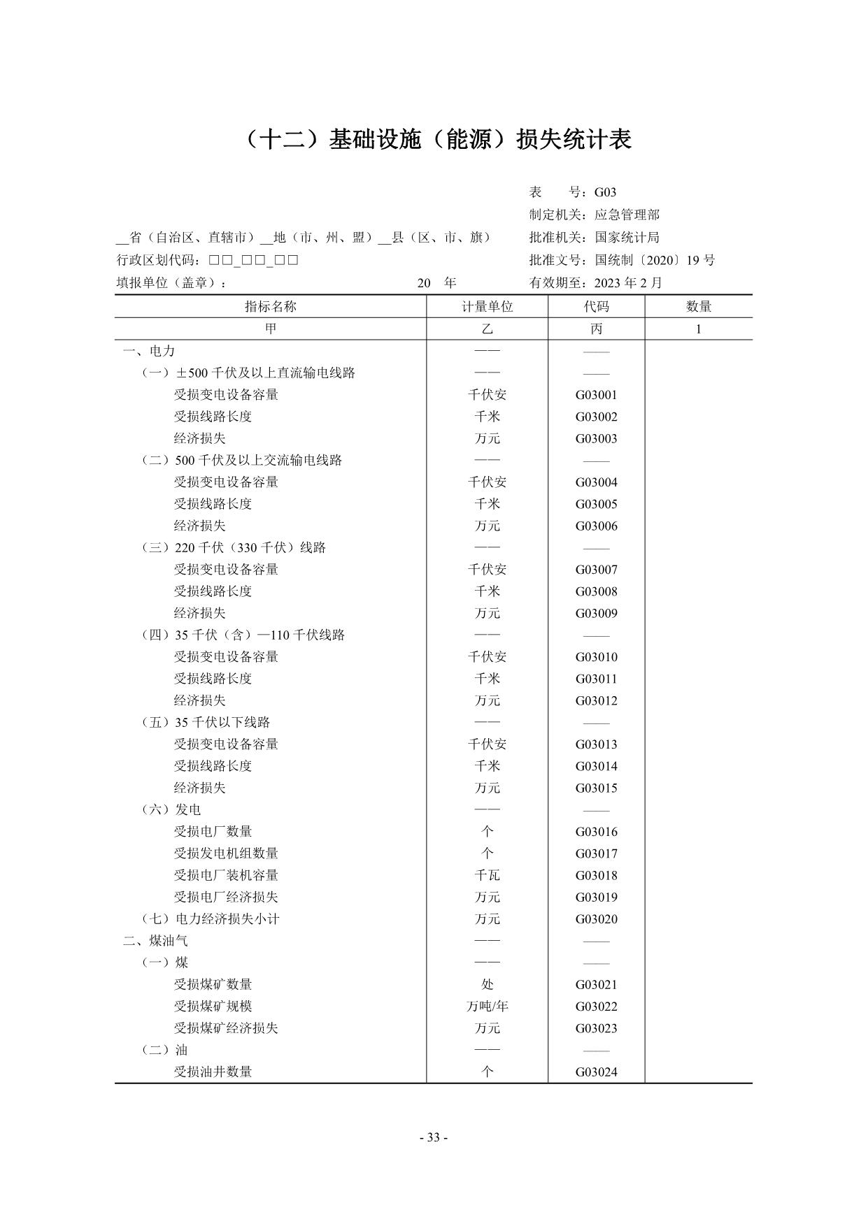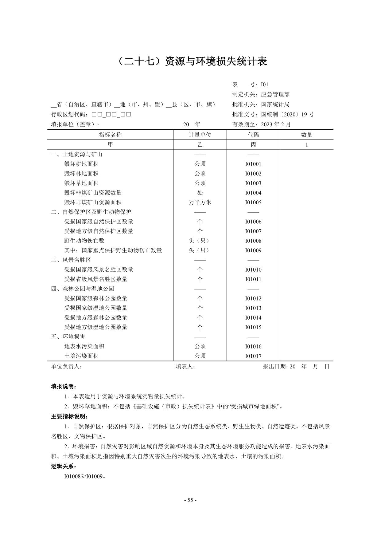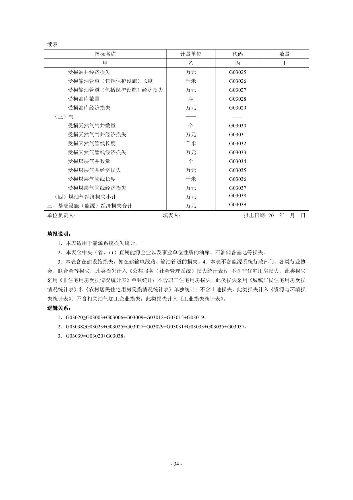 《特别重大自然灾害损失统计调查制度》(应急[2020]19号附件2)