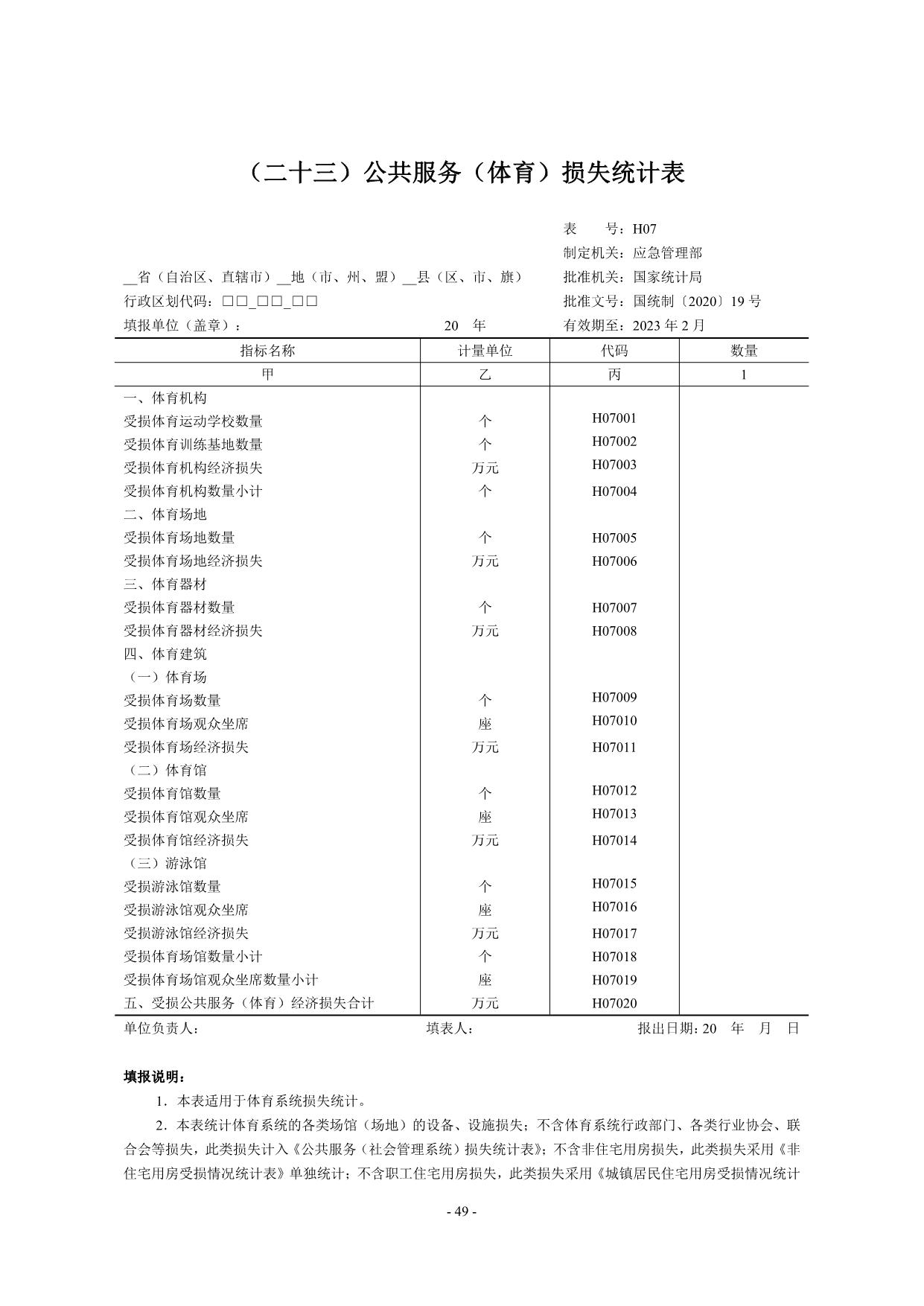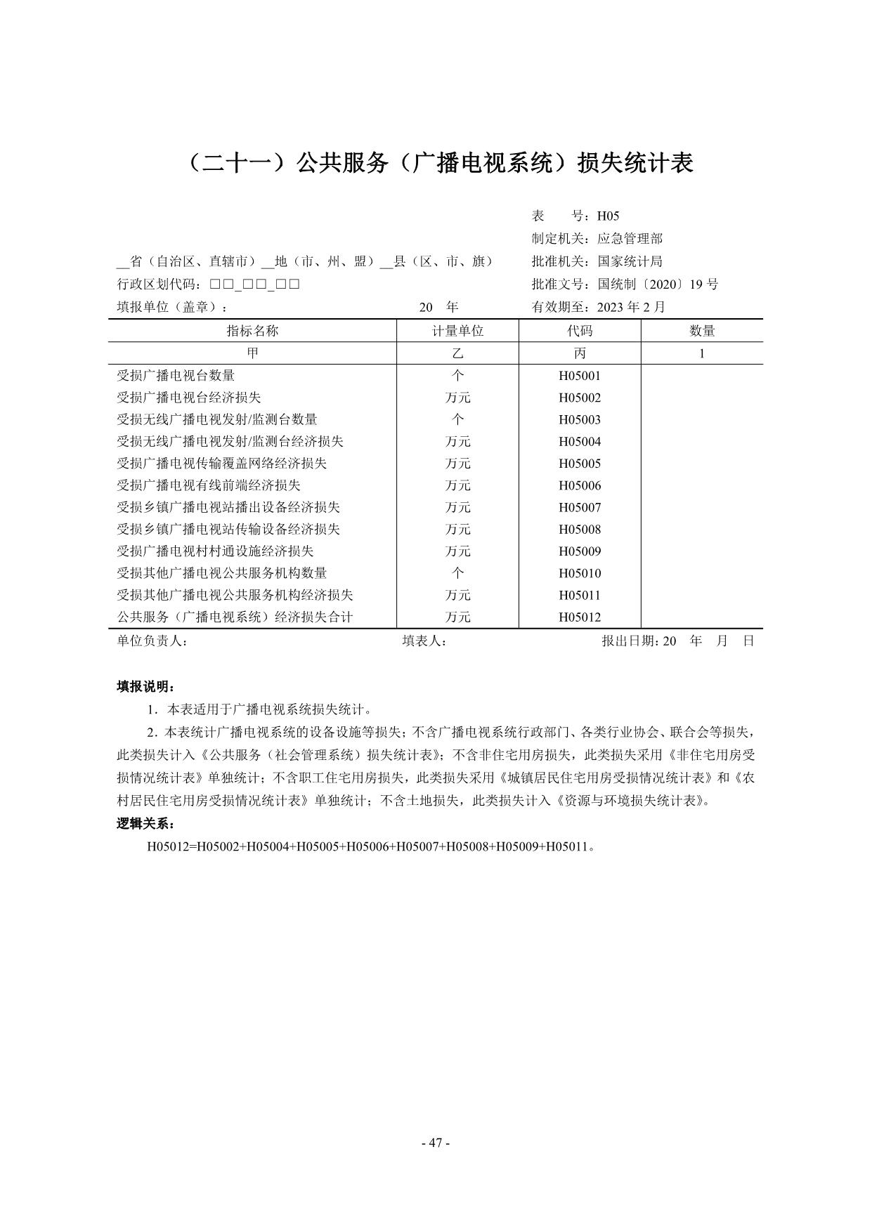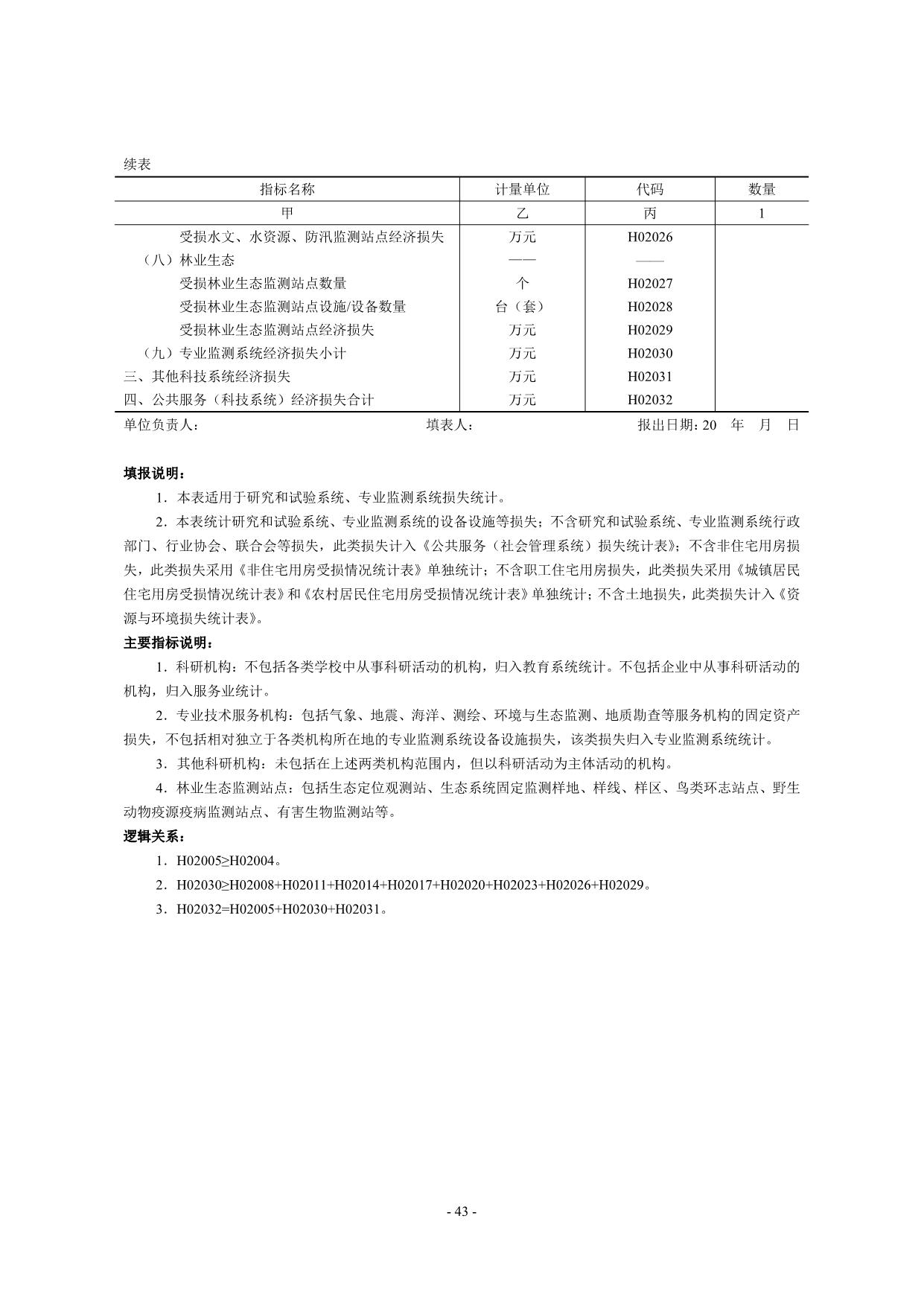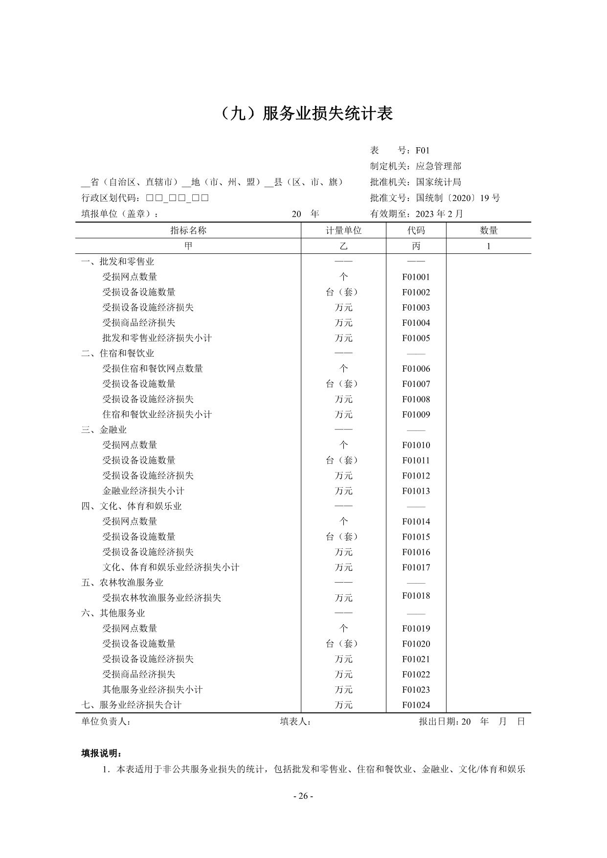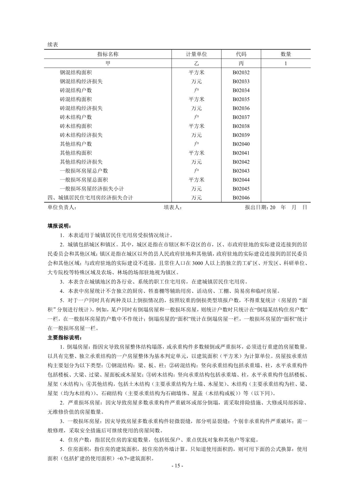 《特别重大自然灾害损失统计调查制度》(应急[2020]19号附件2)
