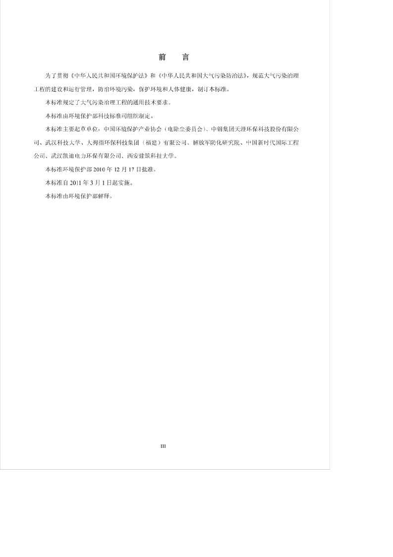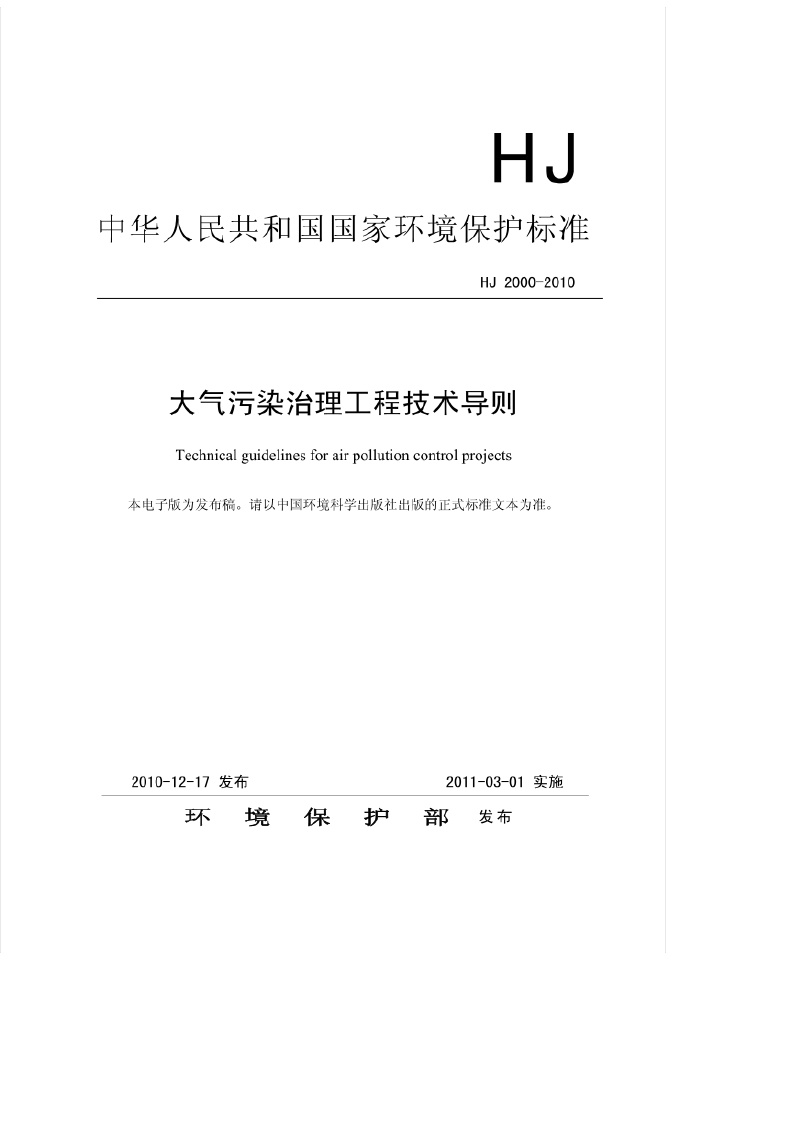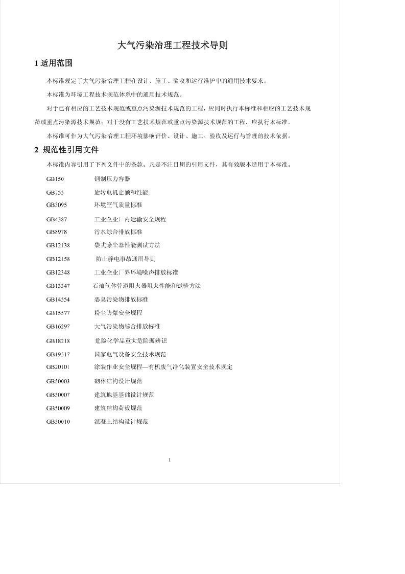 《大气污染治理工程技术导则》(HJ2000-2010)