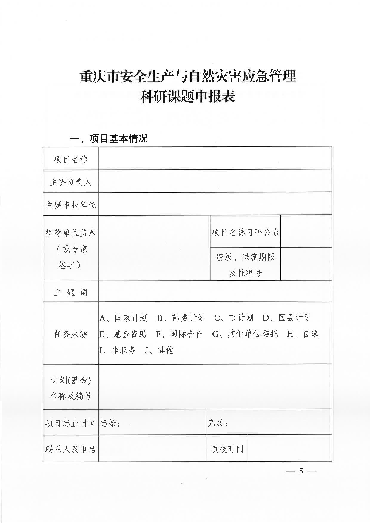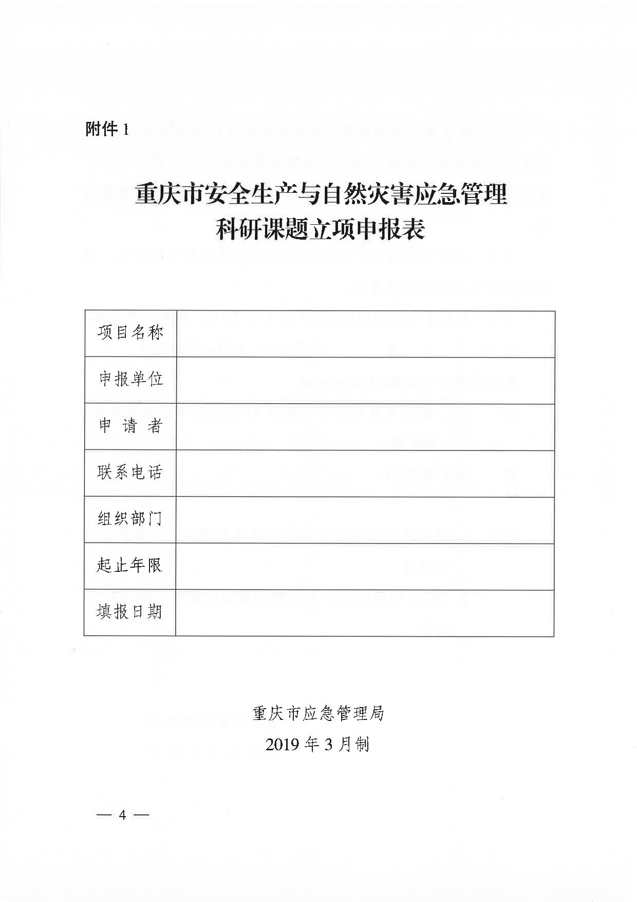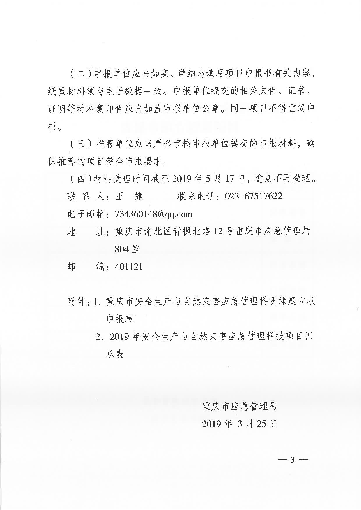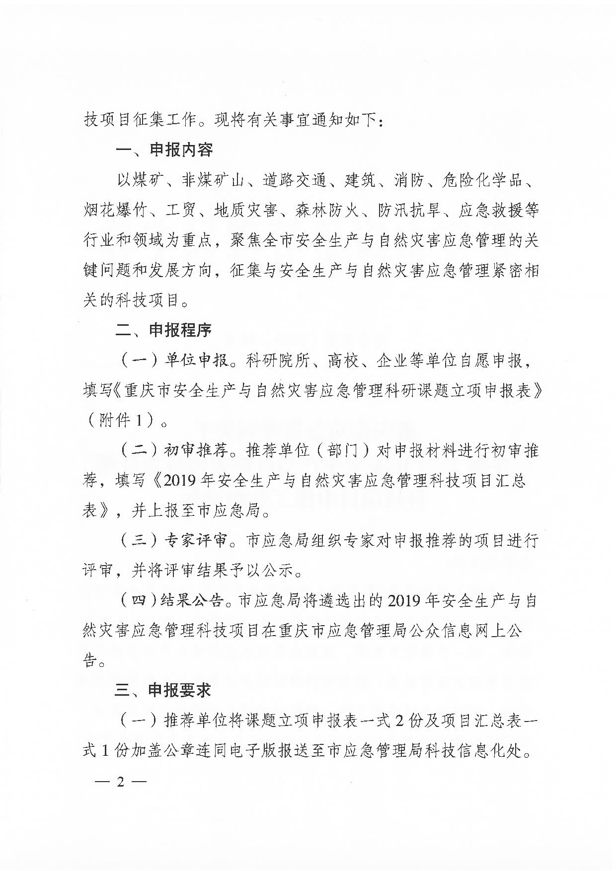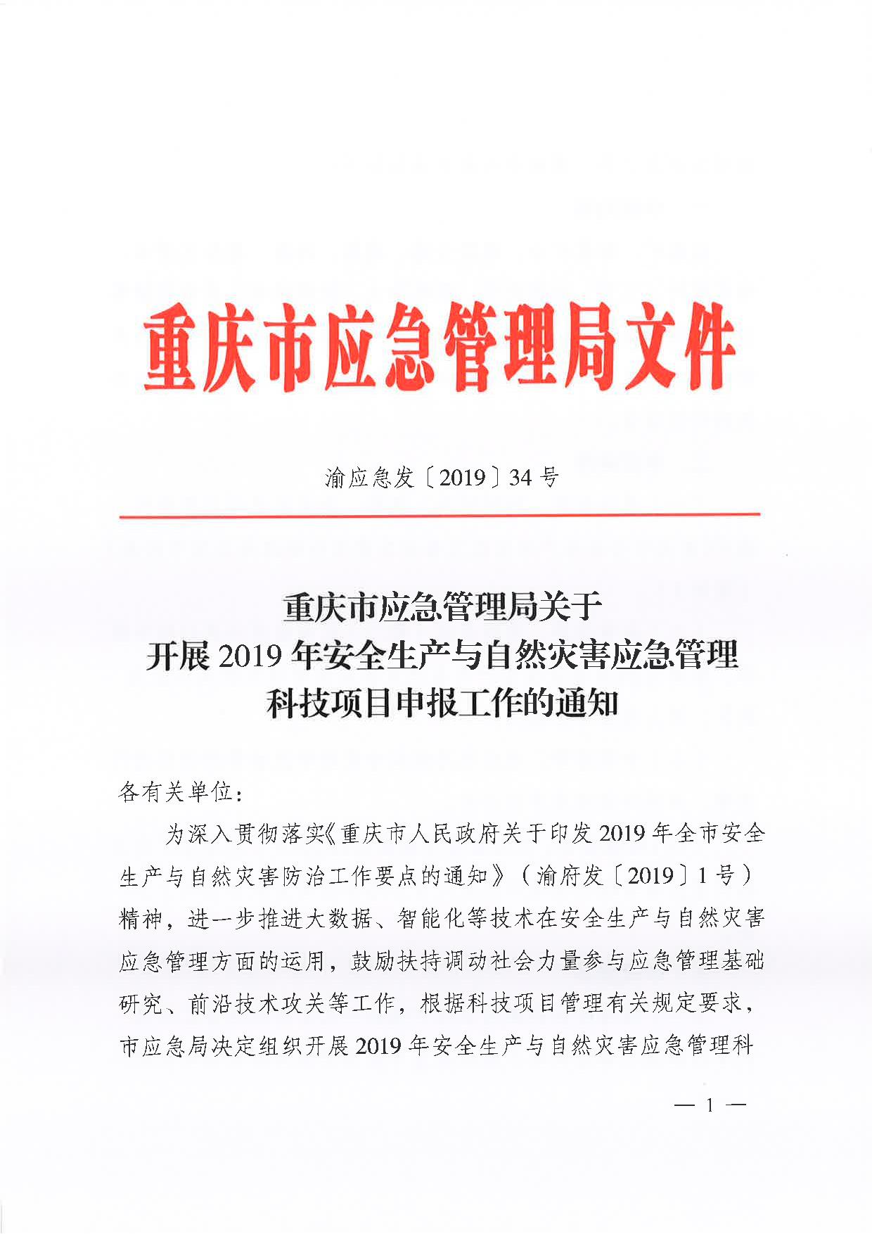 《关于开展安全生产与自然灾害应急管理科技项目申报工作的通知》(渝应急发[2019]34号)