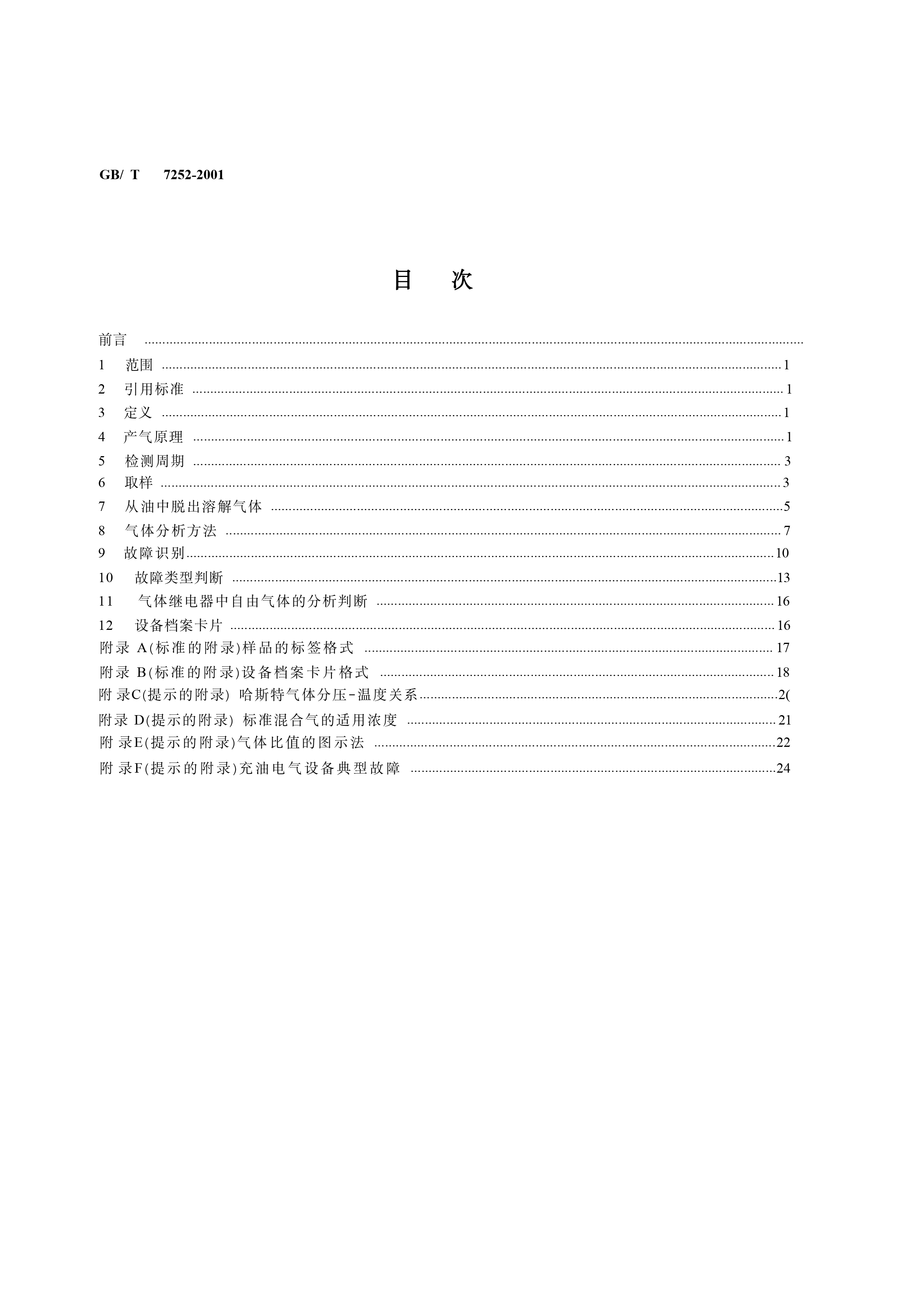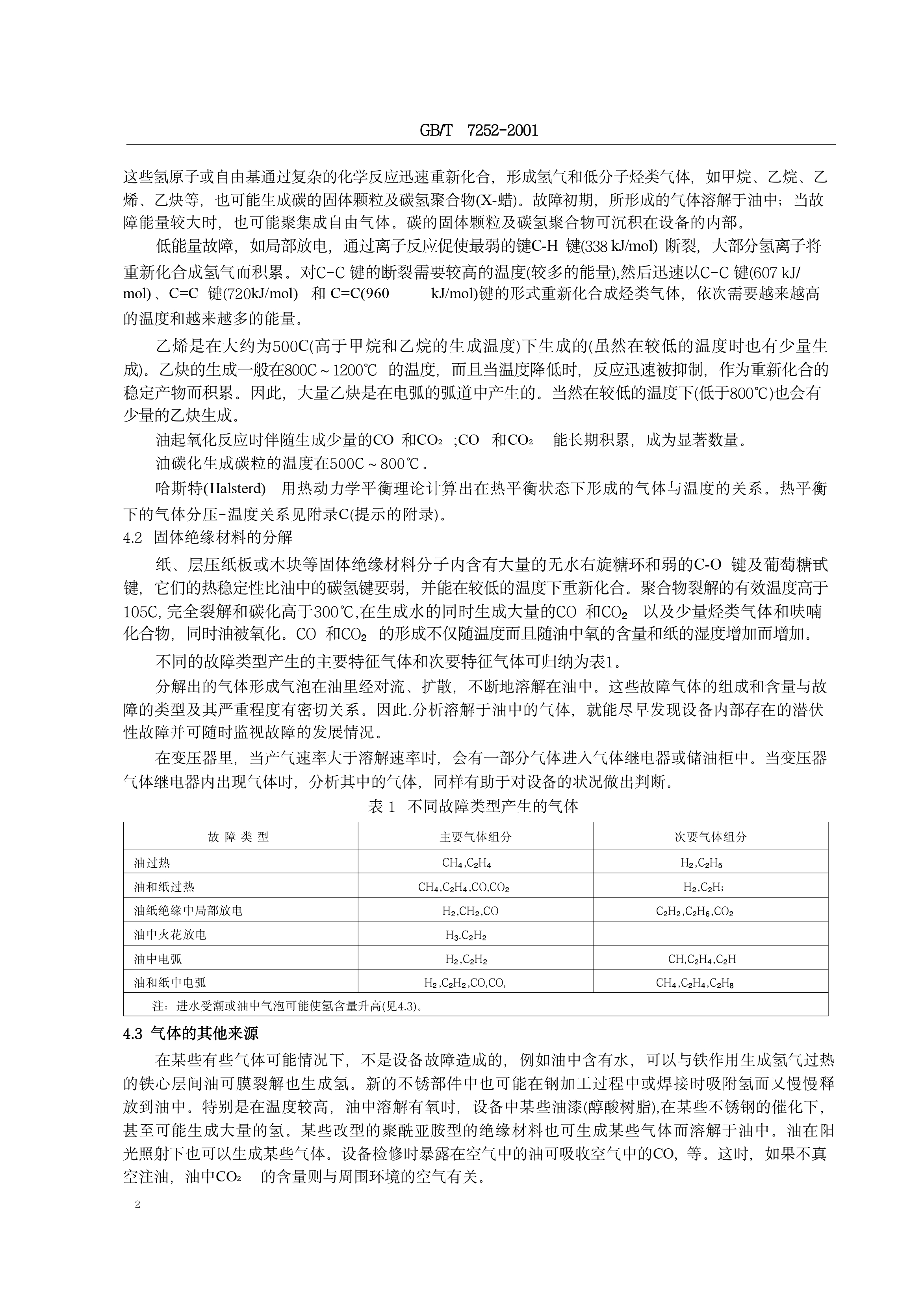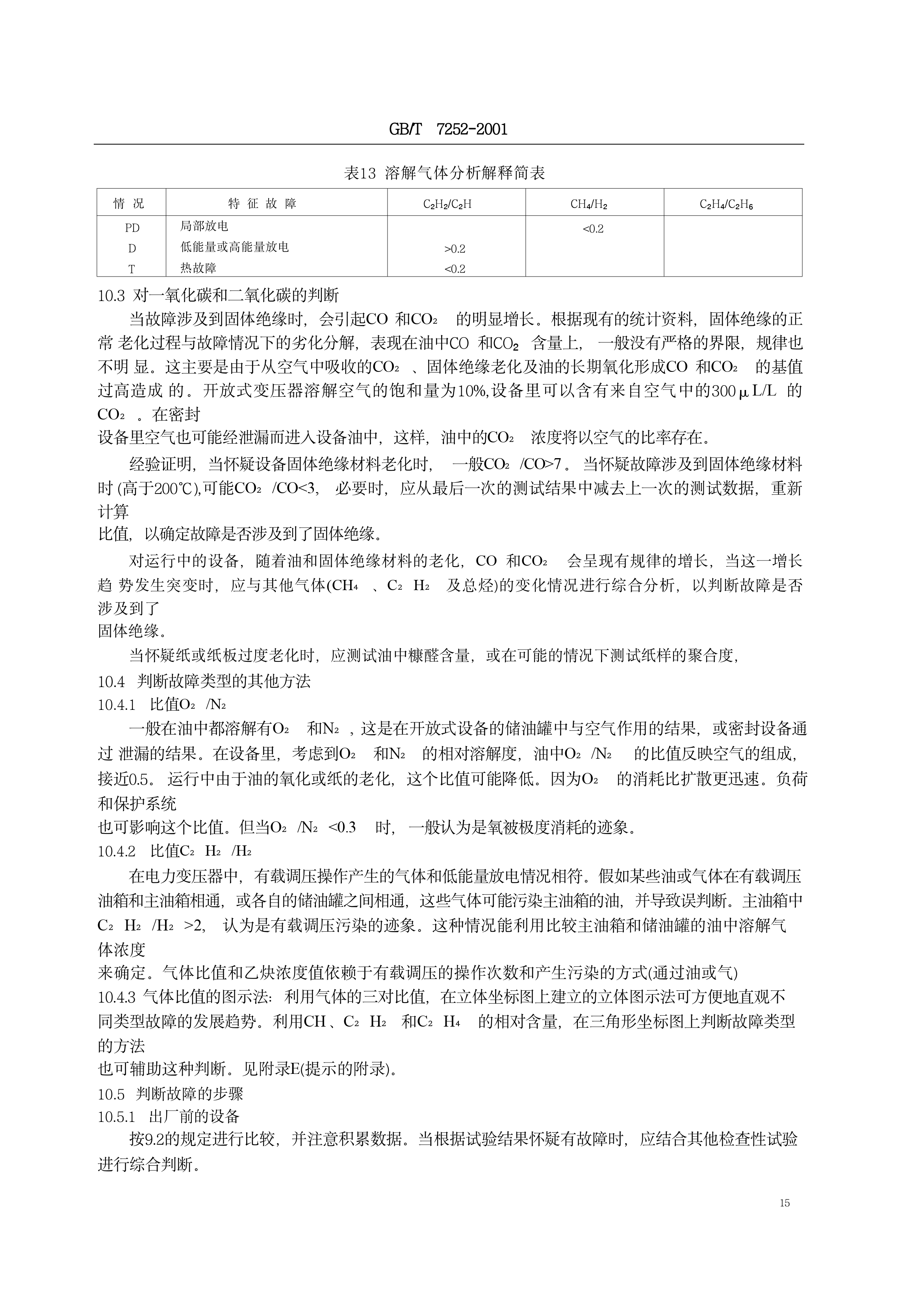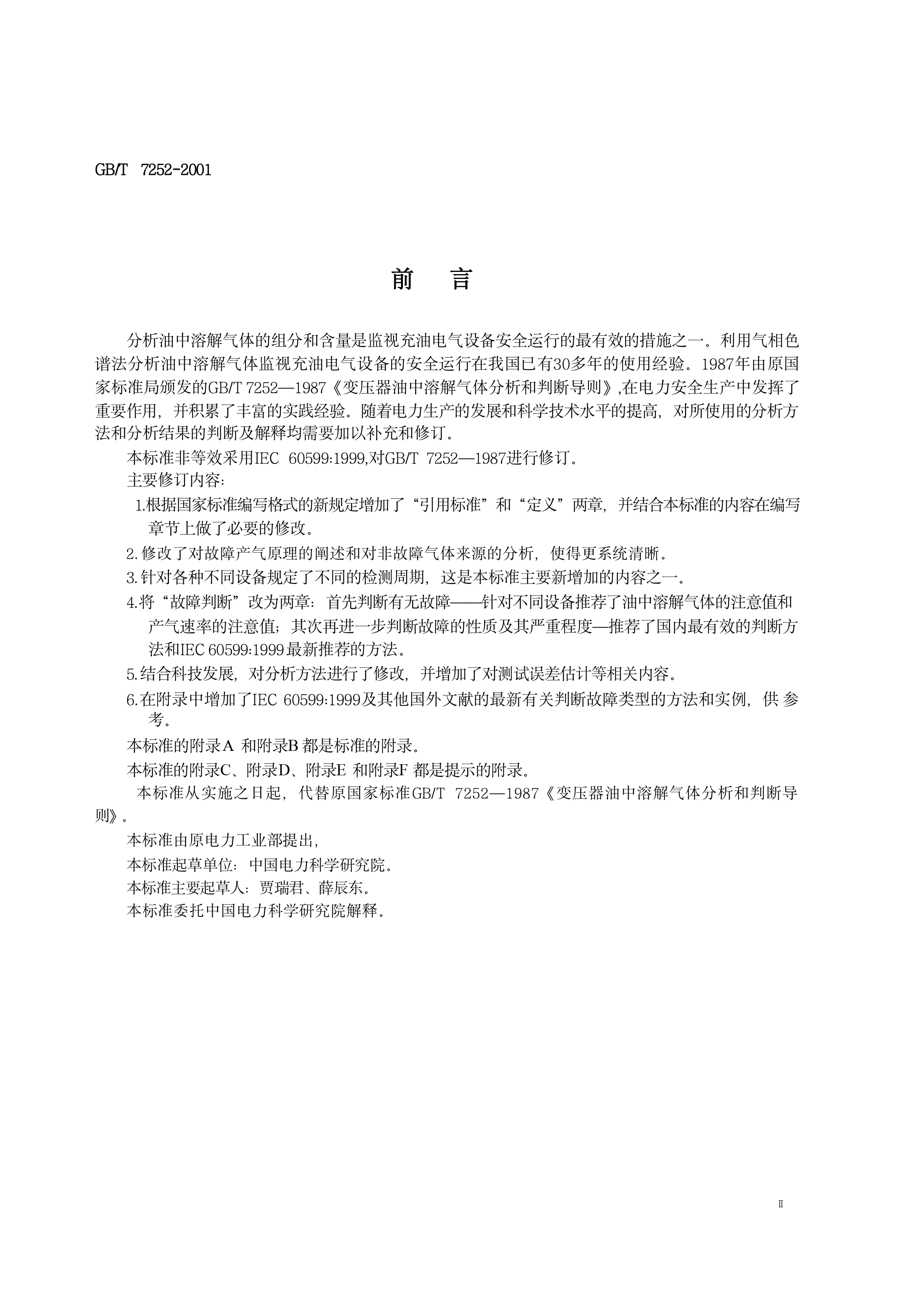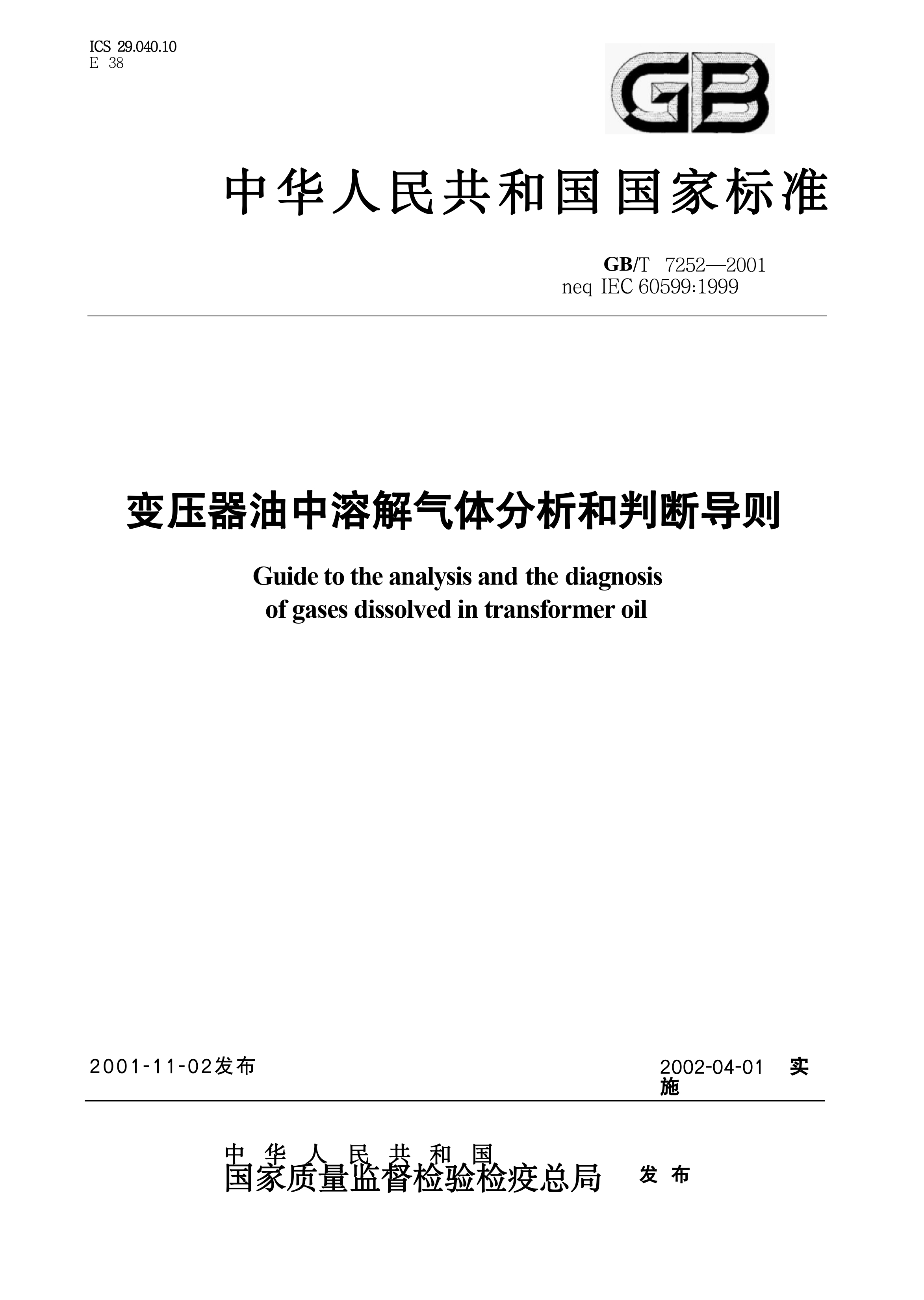 《变压器油中溶解气体分析和判断导则》(GB/T7252-2001)