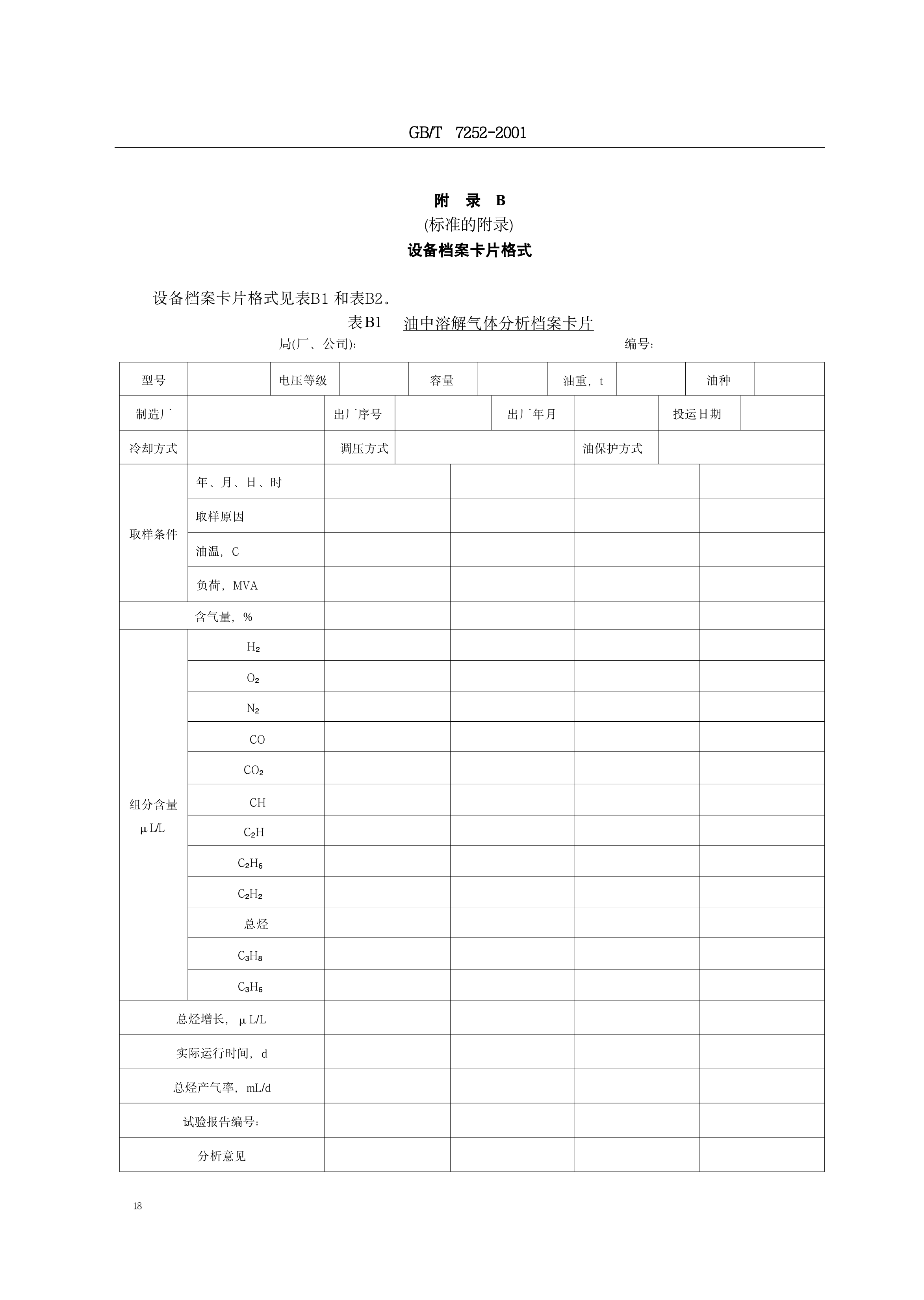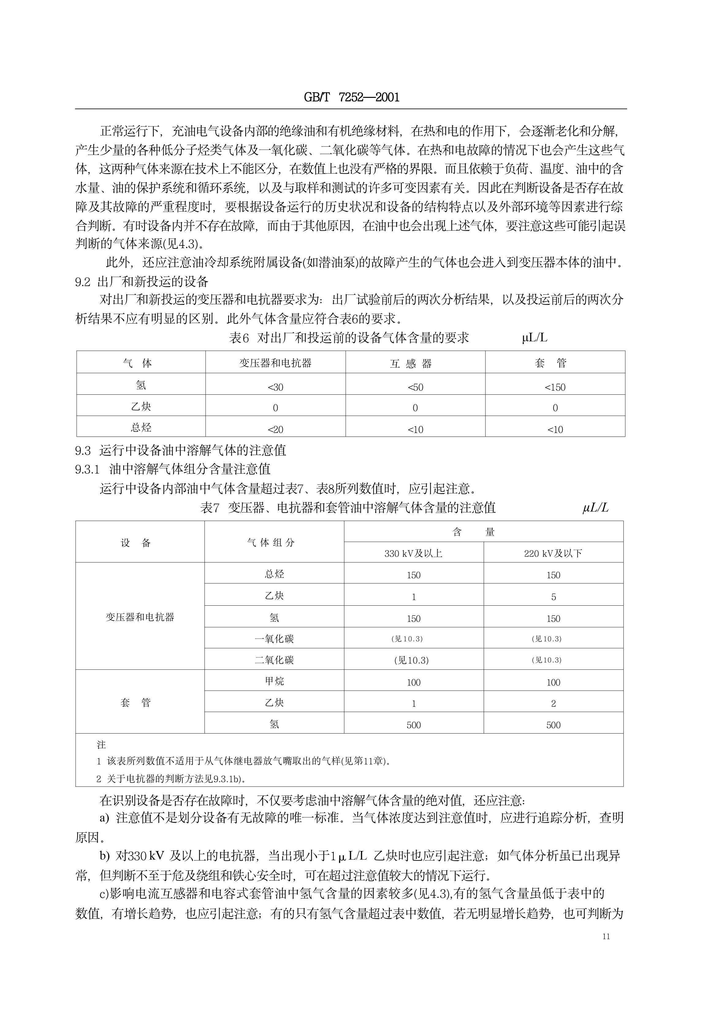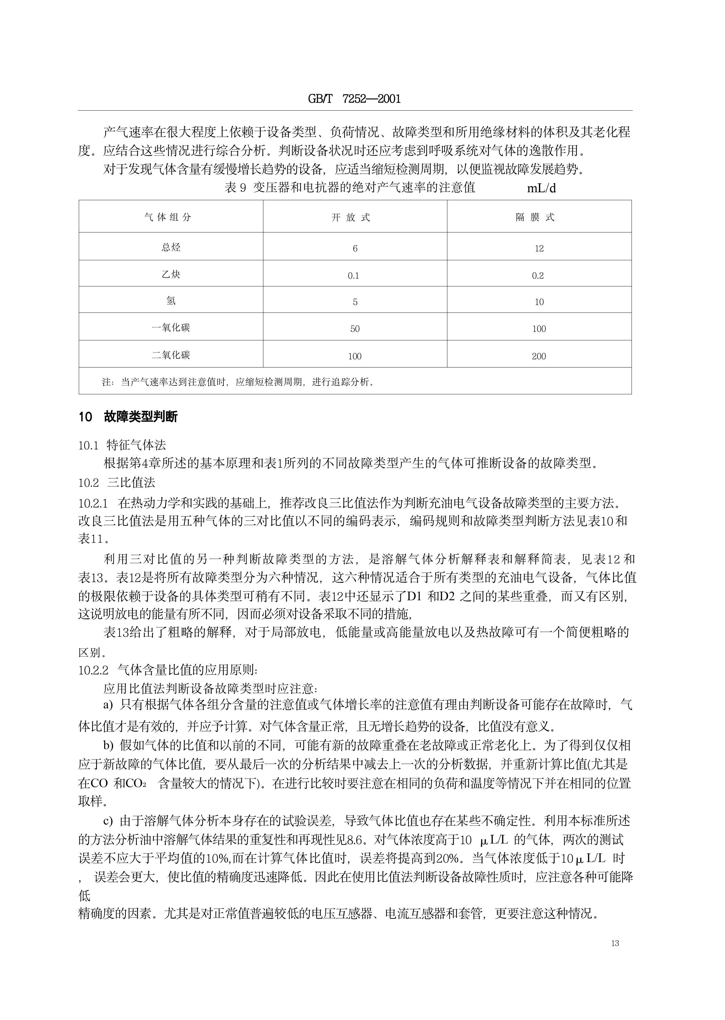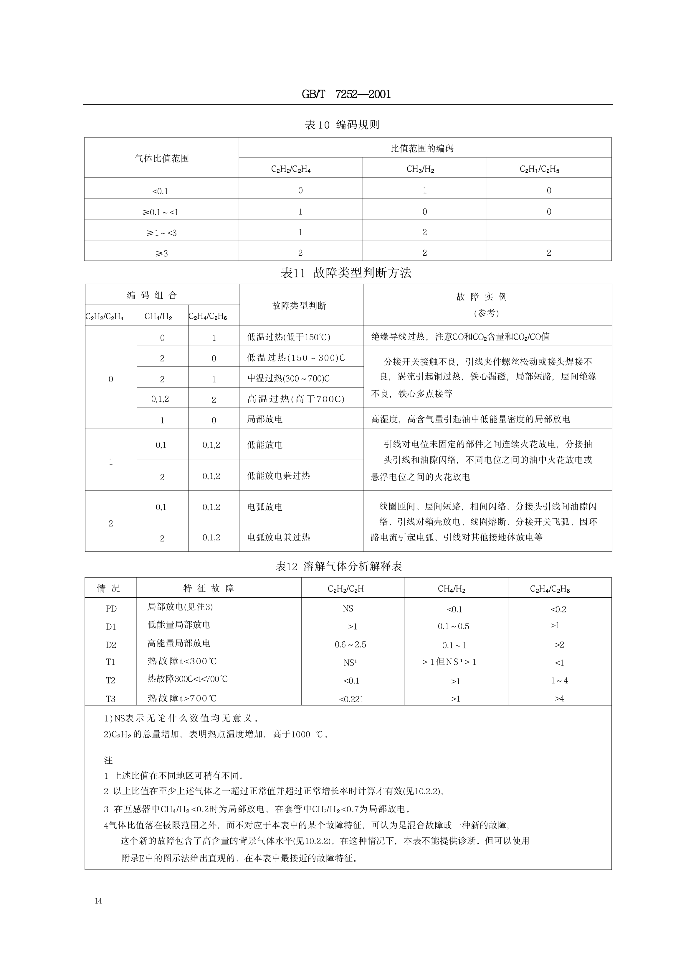 《变压器油中溶解气体分析和判断导则》(GB/T7252-2001)