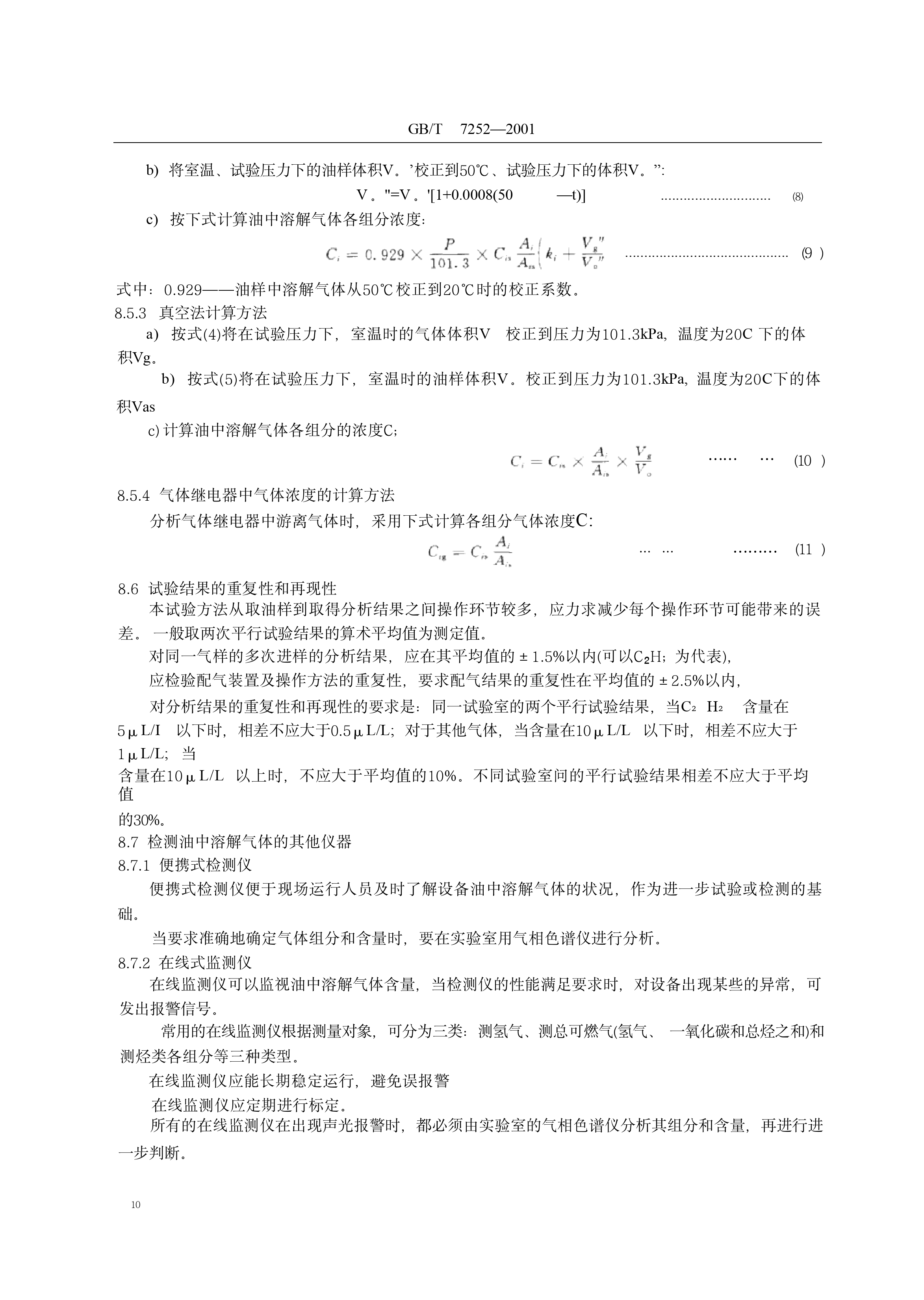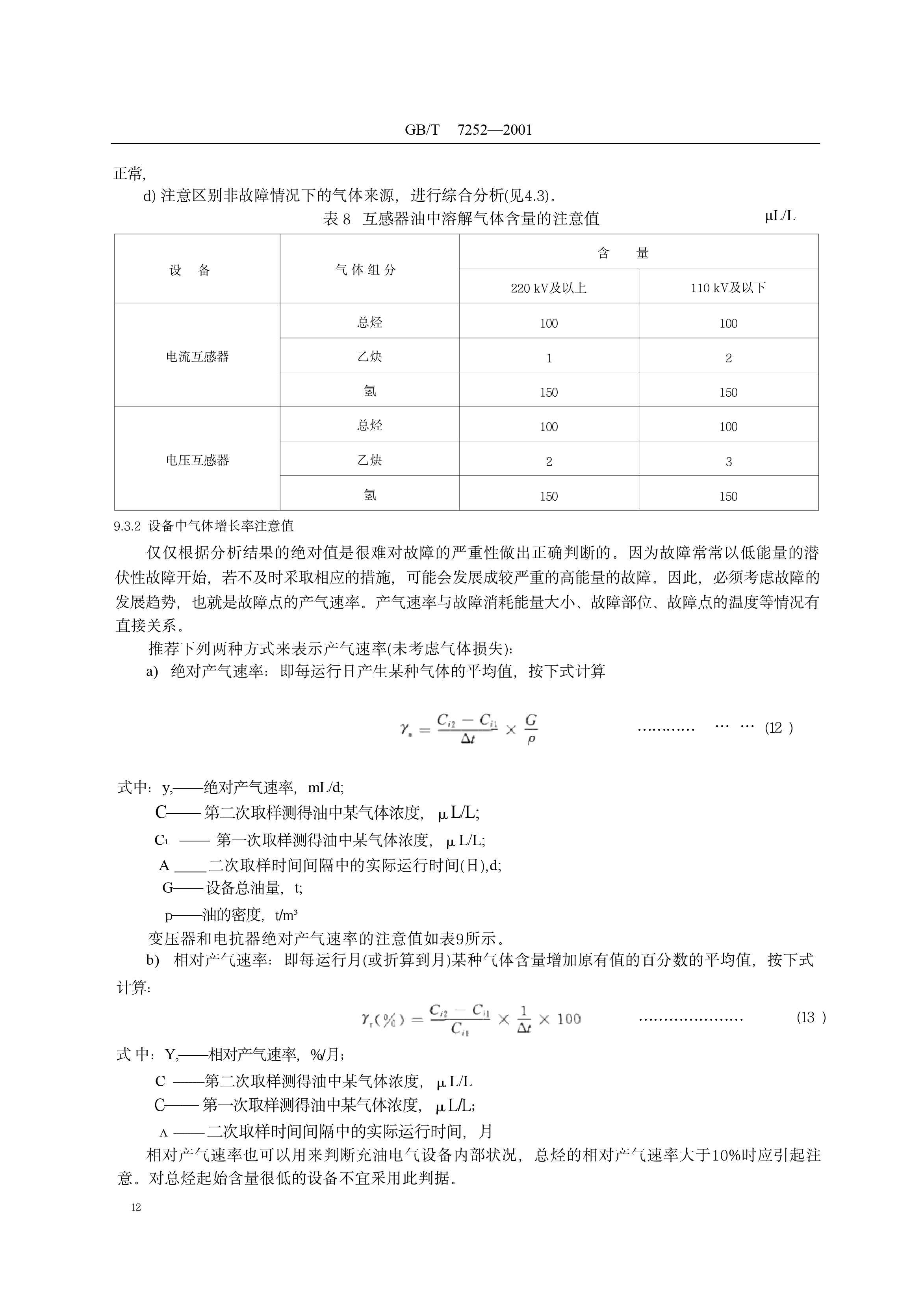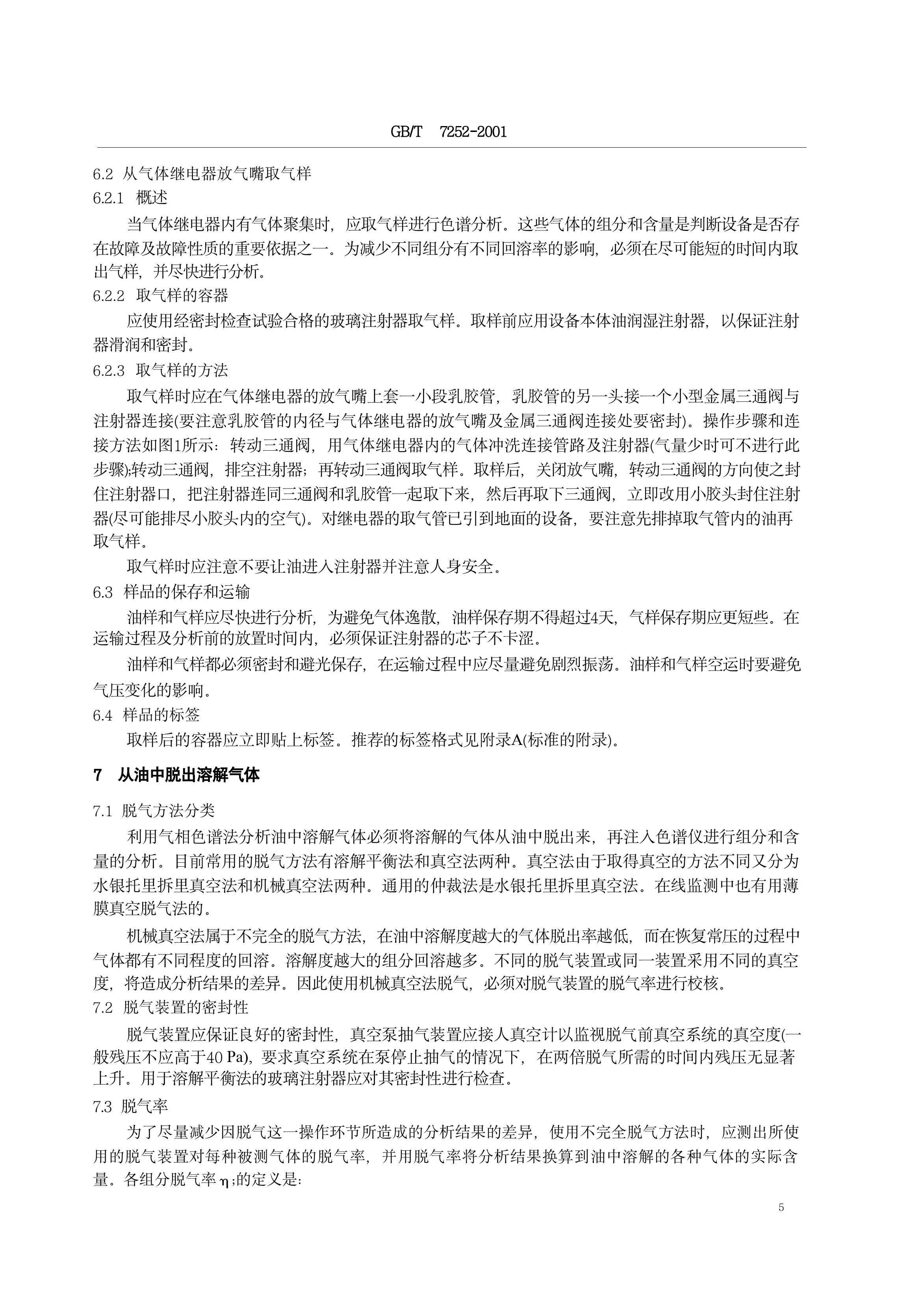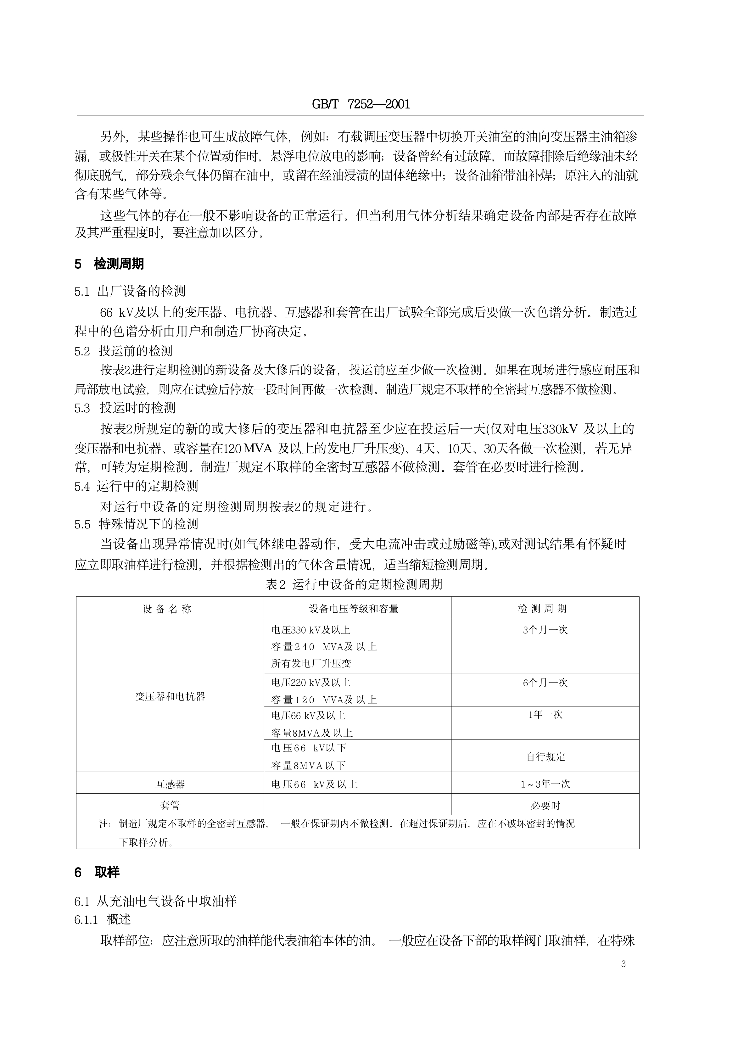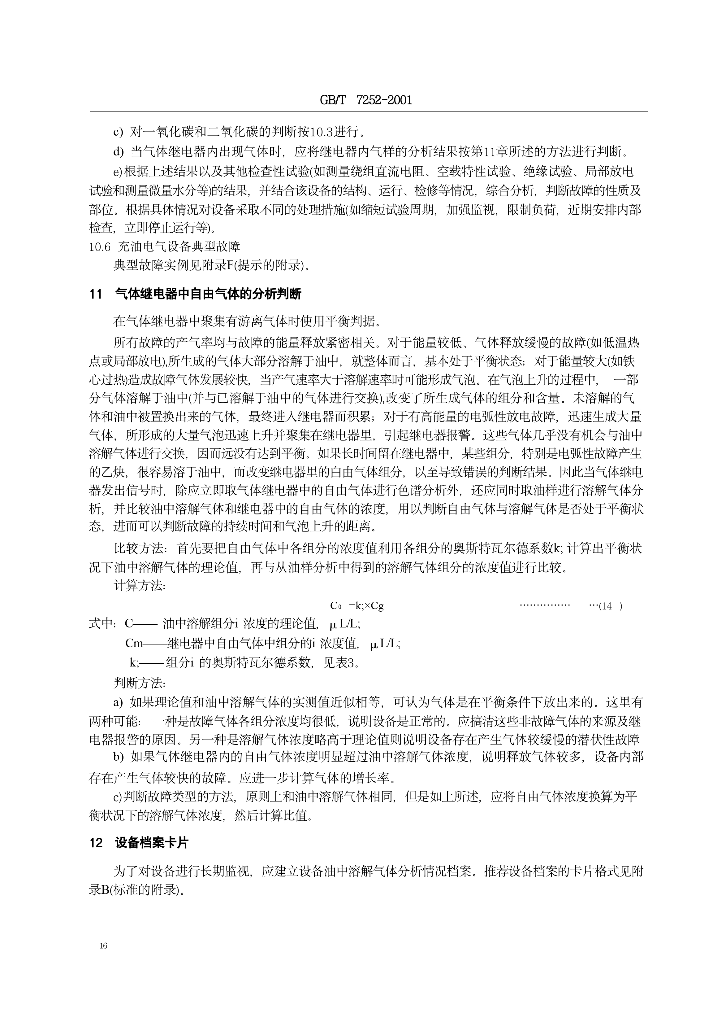 《变压器油中溶解气体分析和判断导则》(GB/T7252-2001)