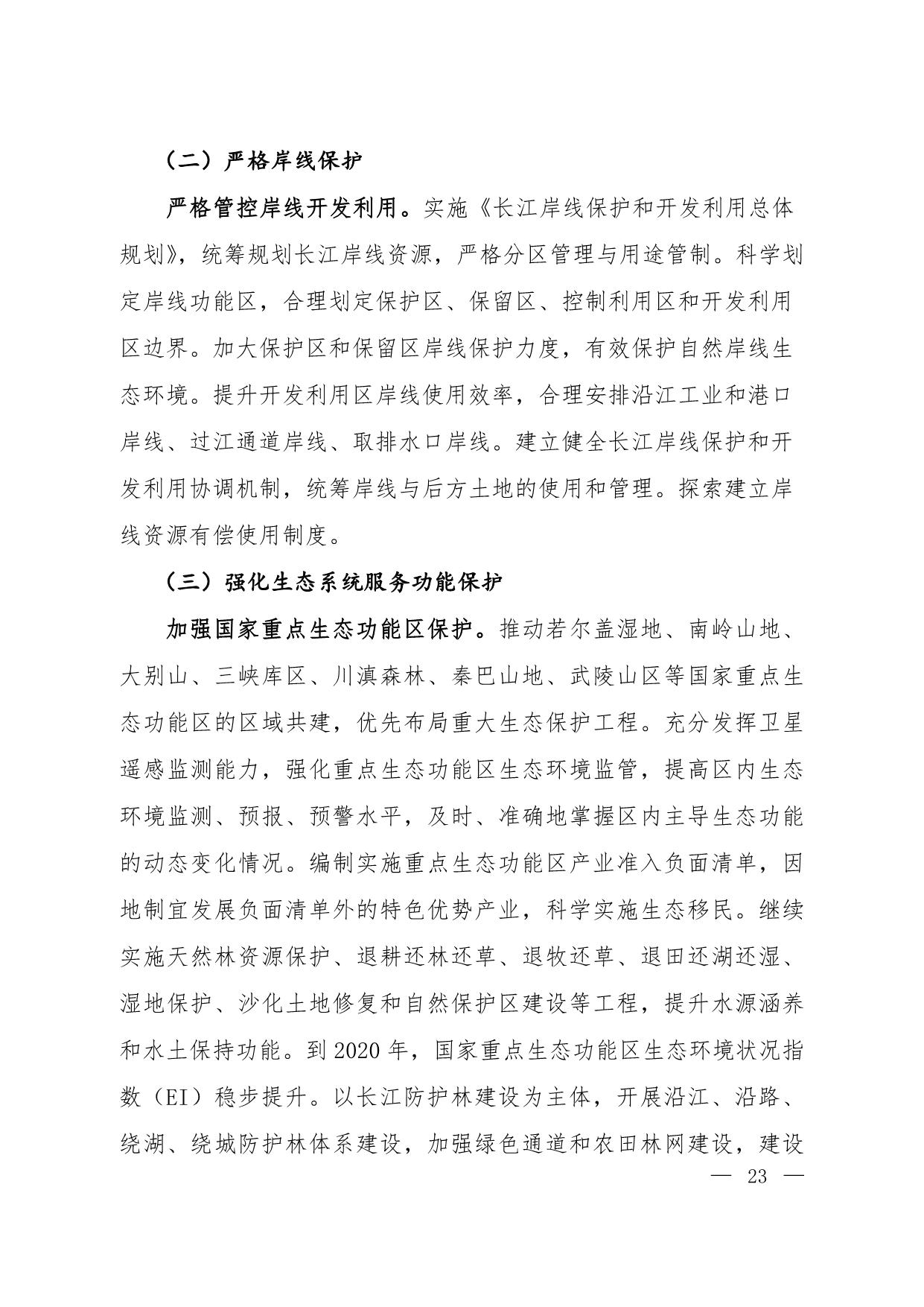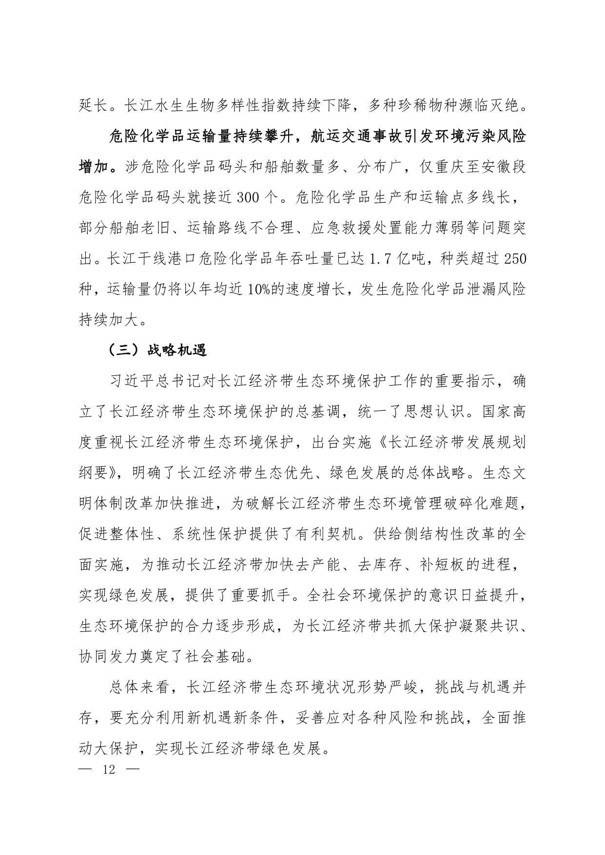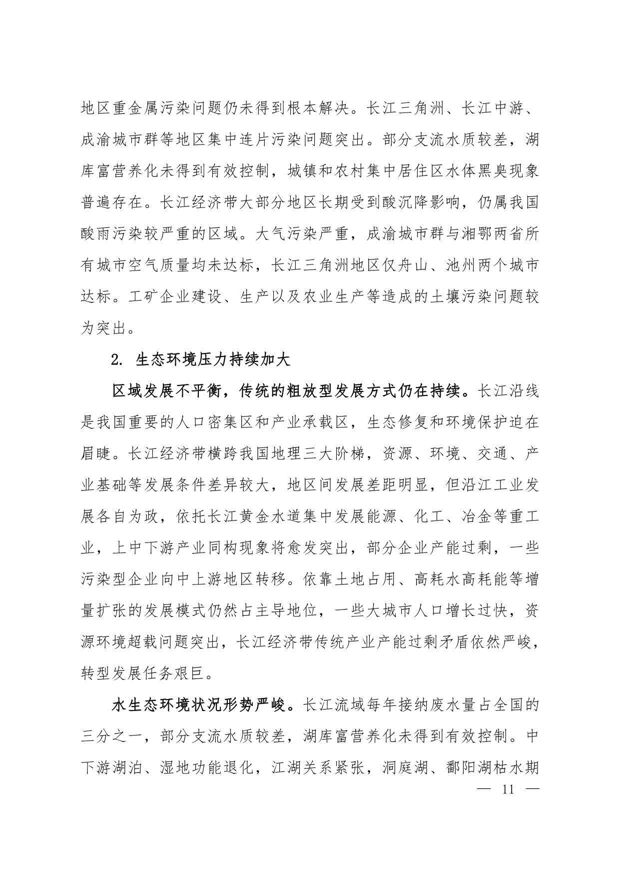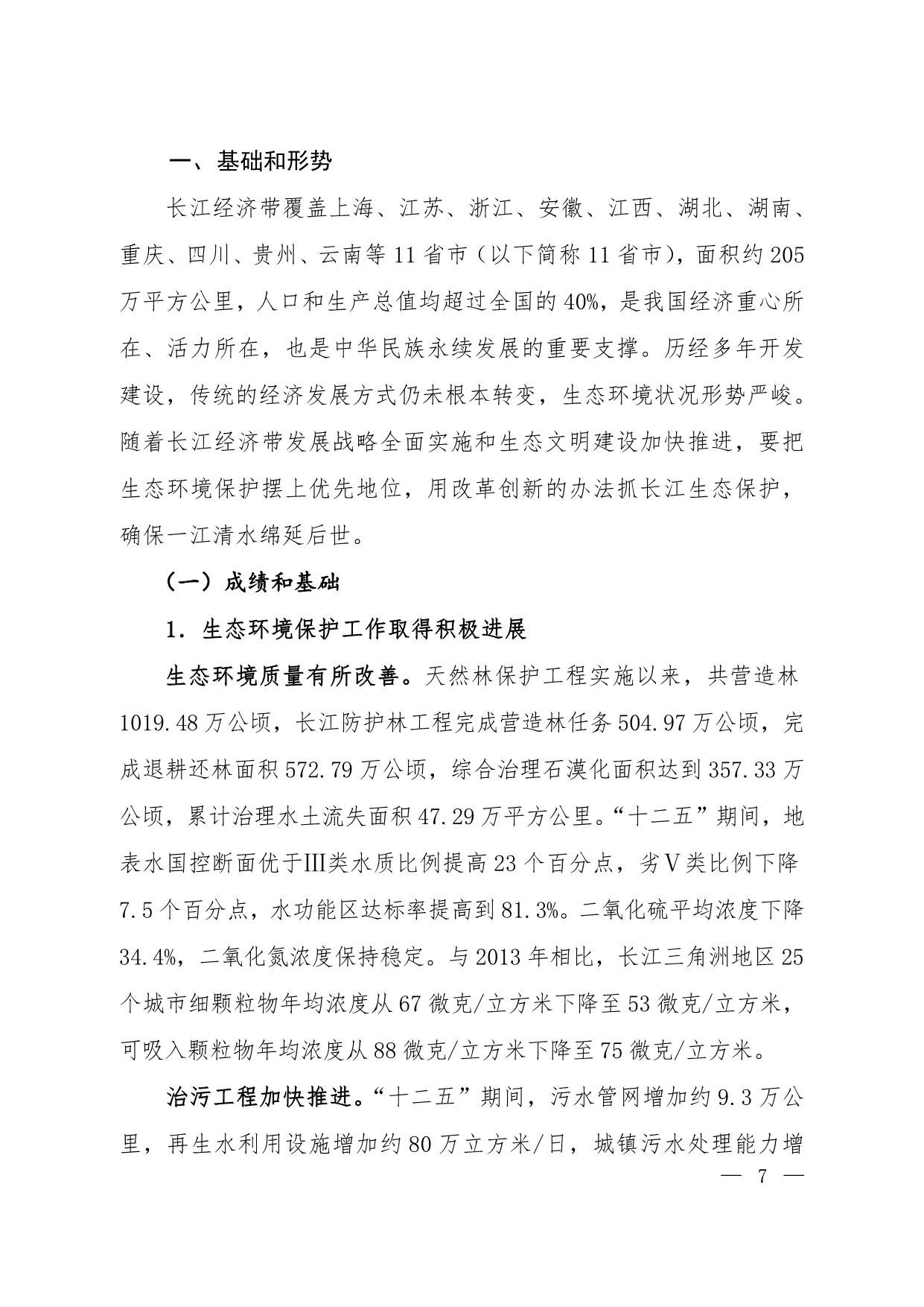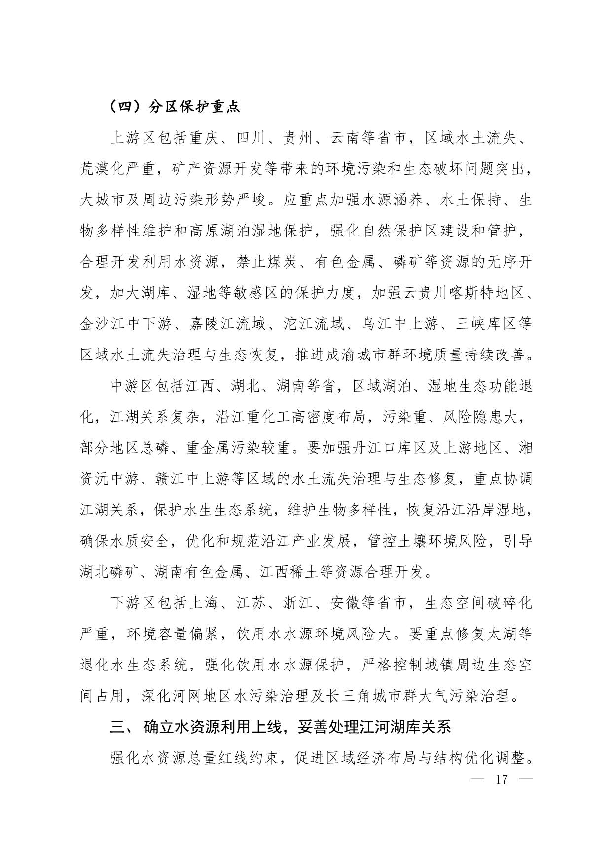 《长江经济带生态环境保护规划》(环规财〔2017〕88号附件)