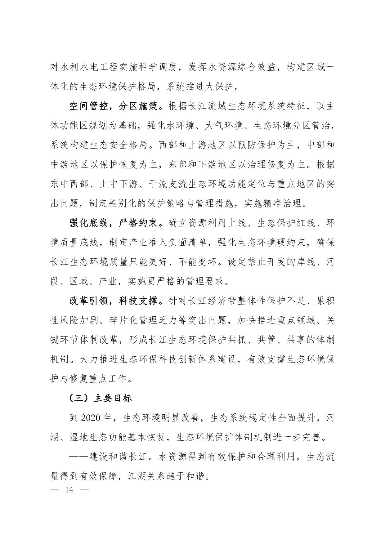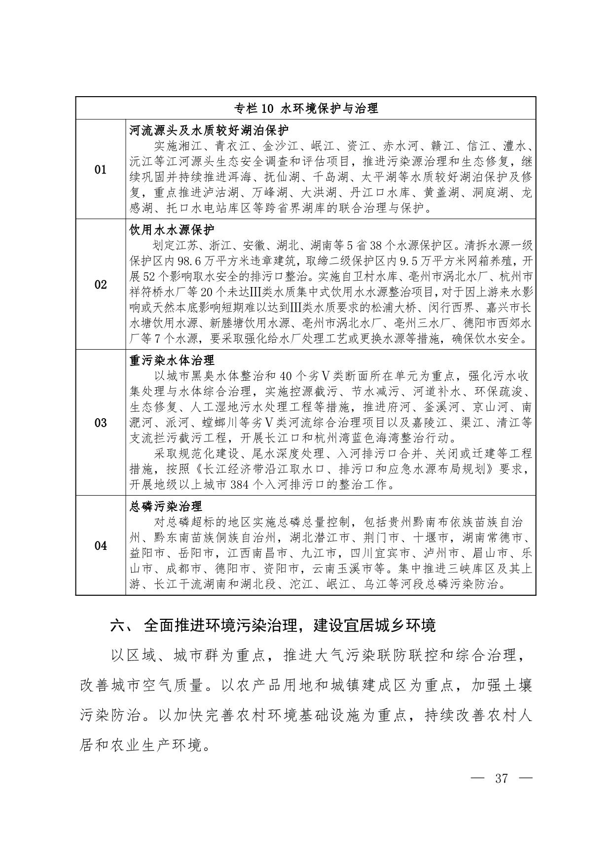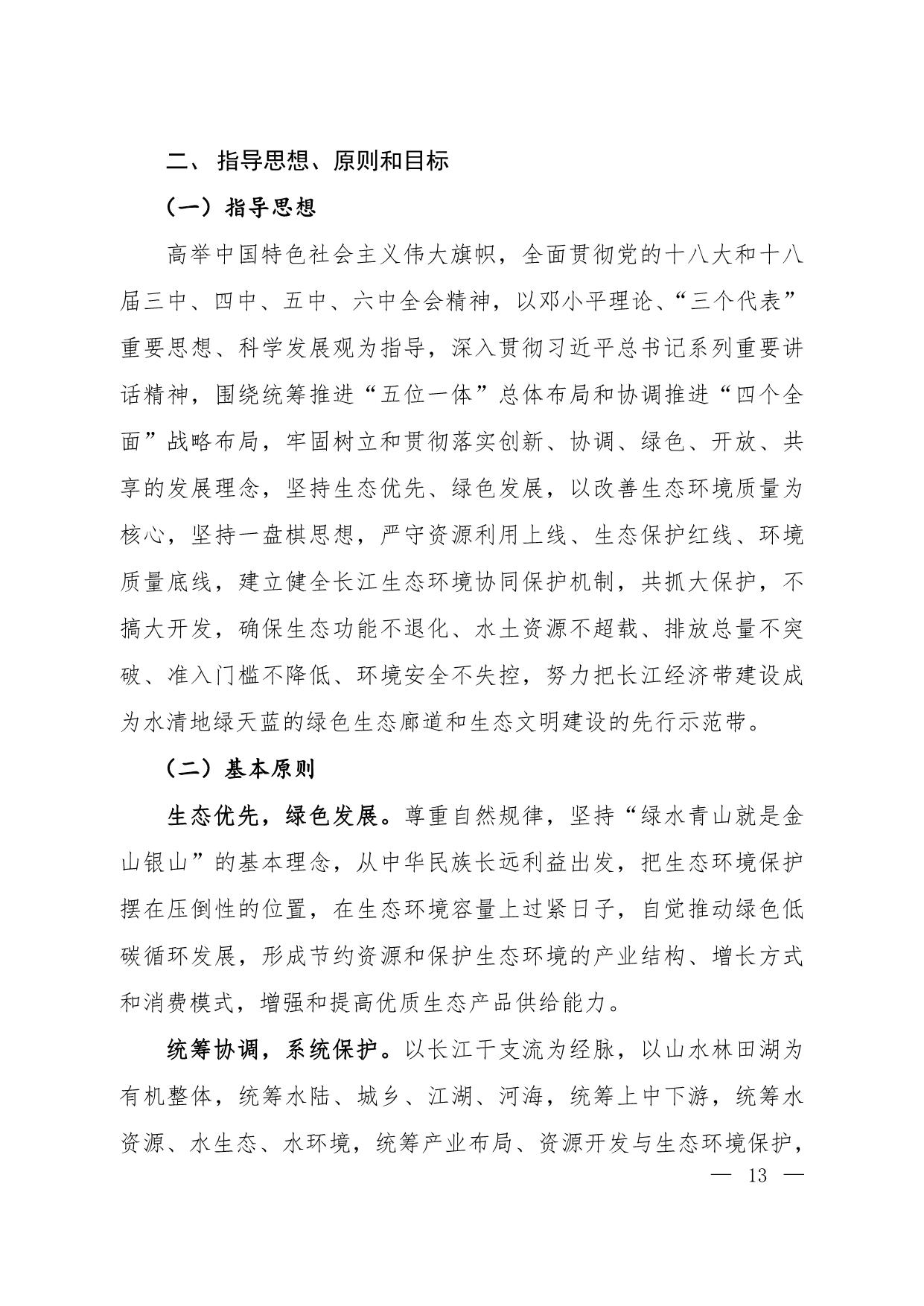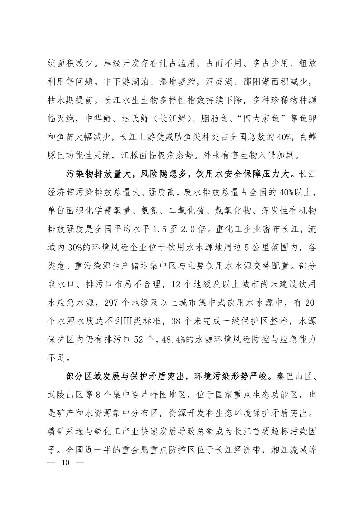 《长江经济带生态环境保护规划》(环规财〔2017〕88号附件)