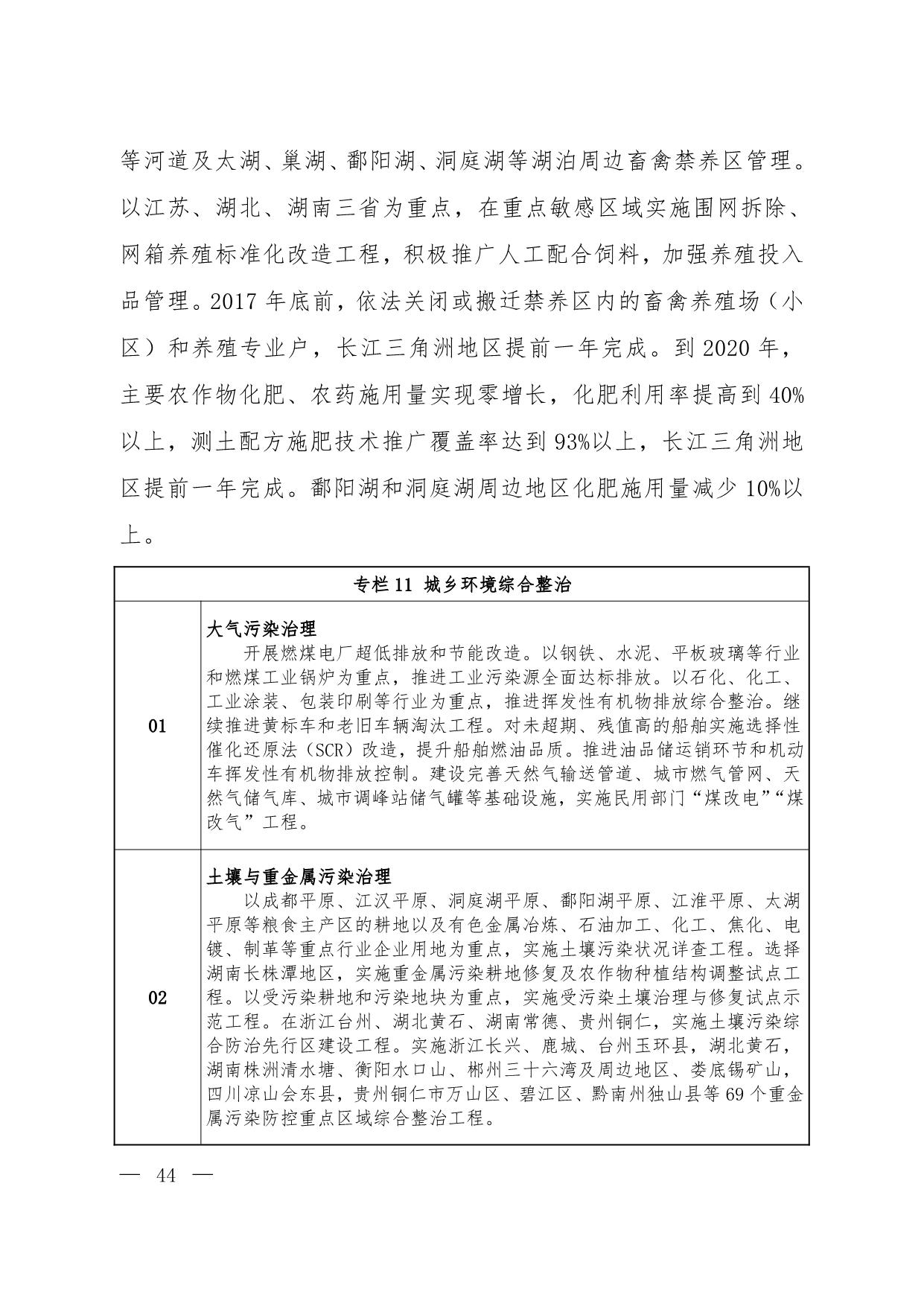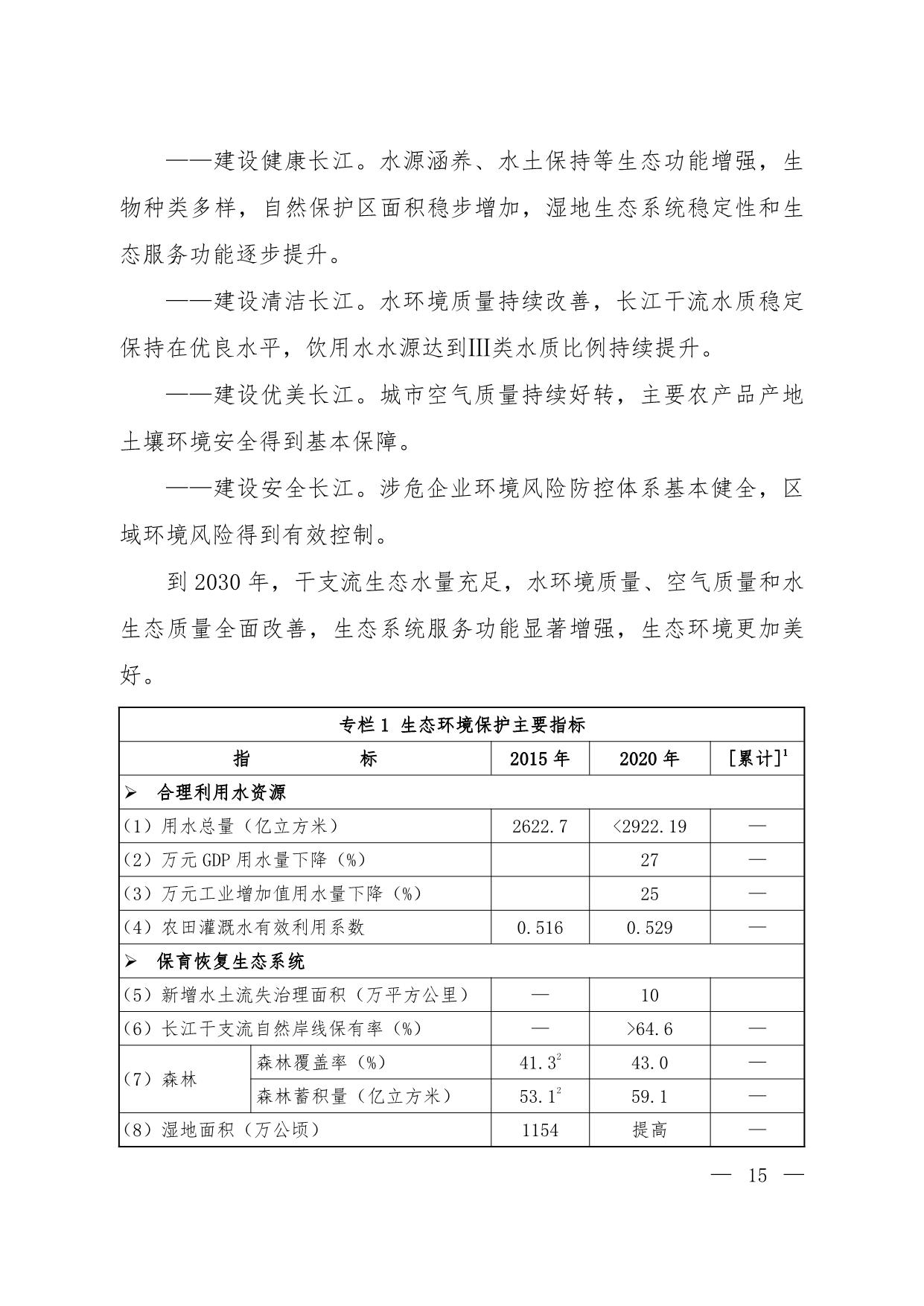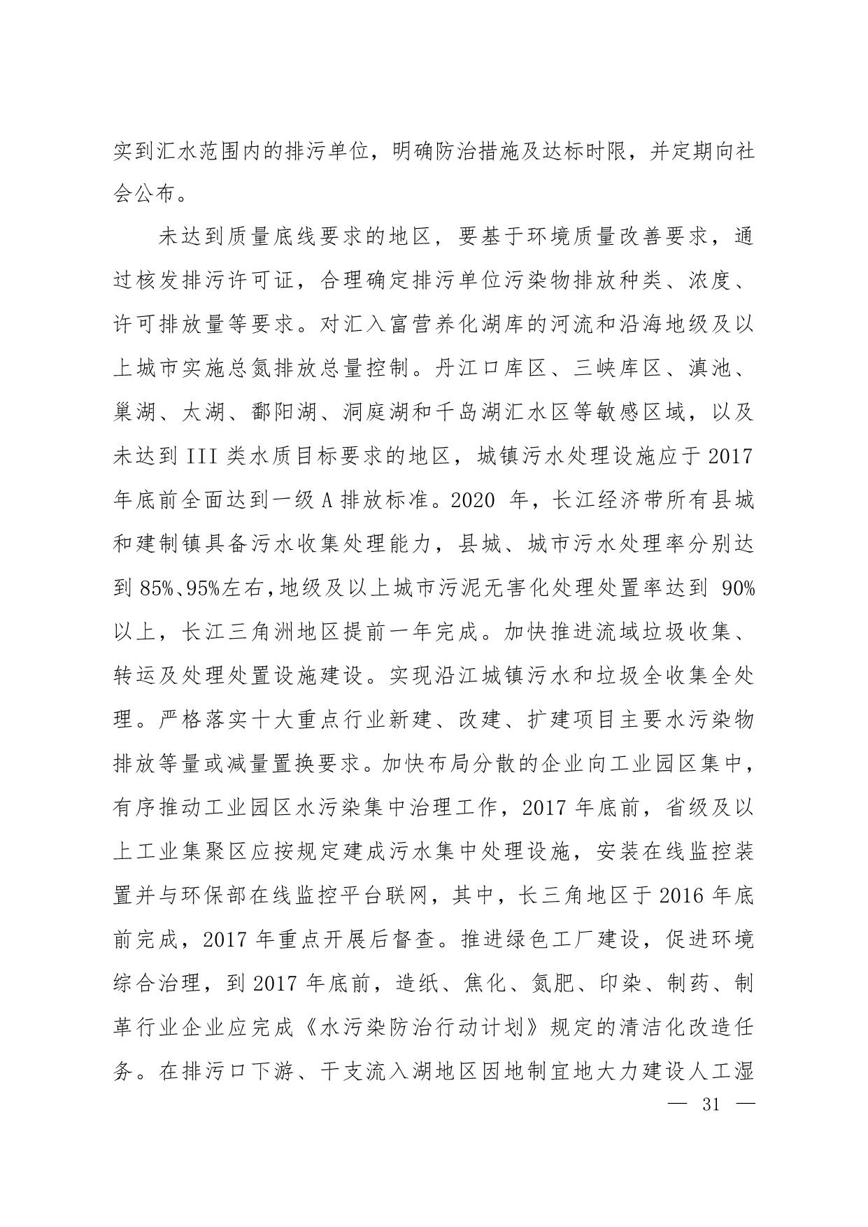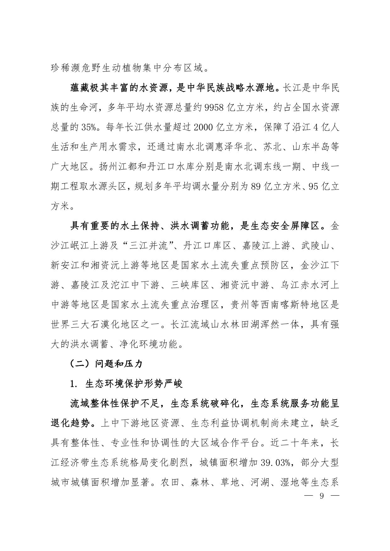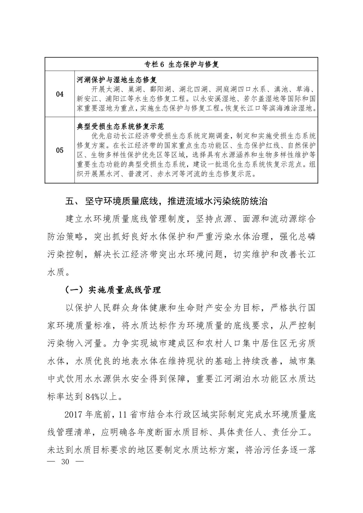 《长江经济带生态环境保护规划》(环规财〔2017〕88号附件)