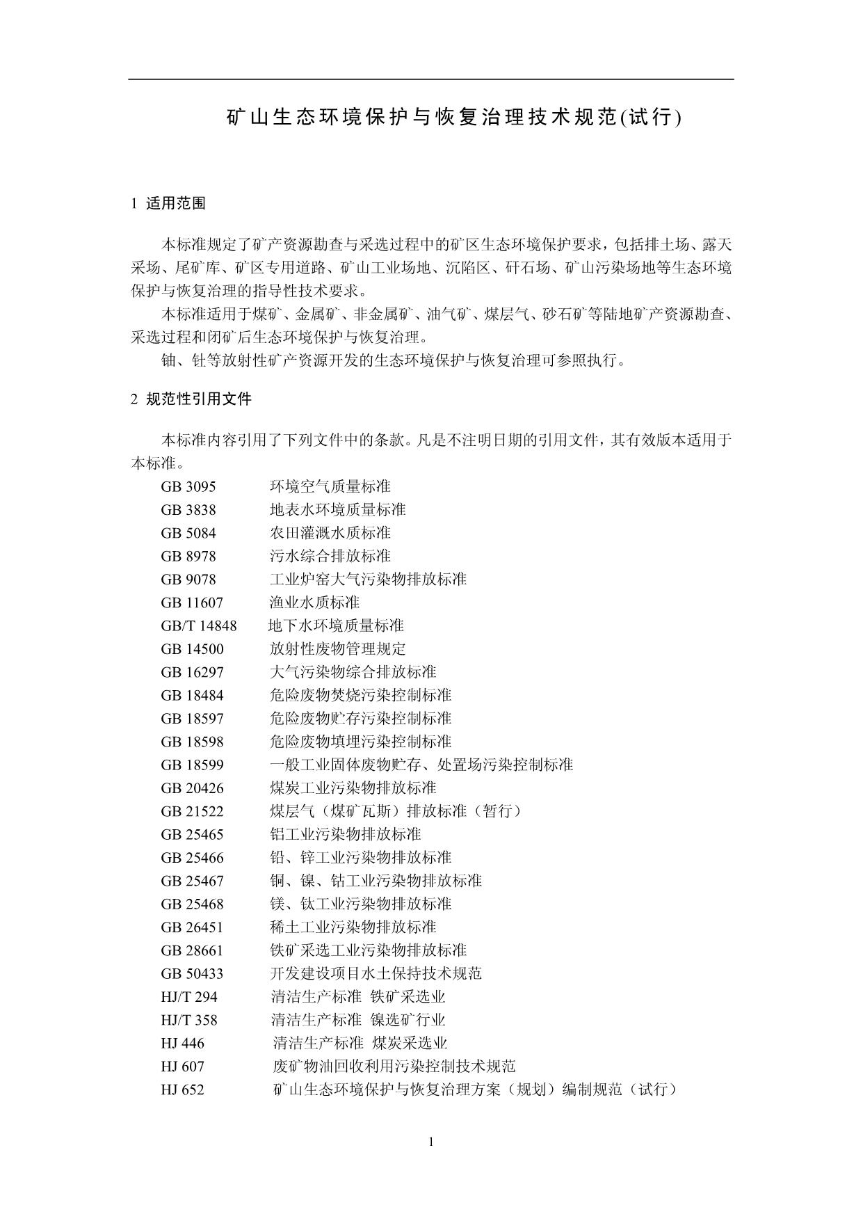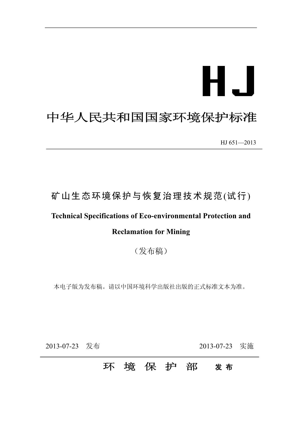 《矿山生态环境保护与恢复治理技术规范(试行)》(HJ651-2013)