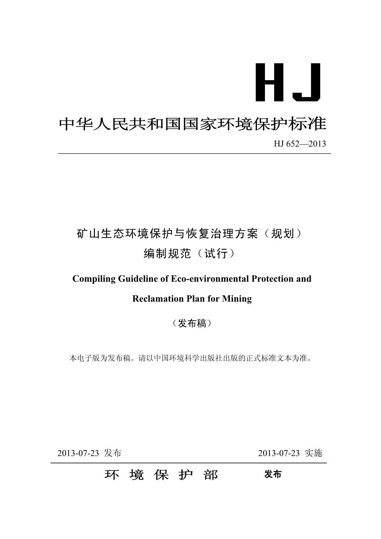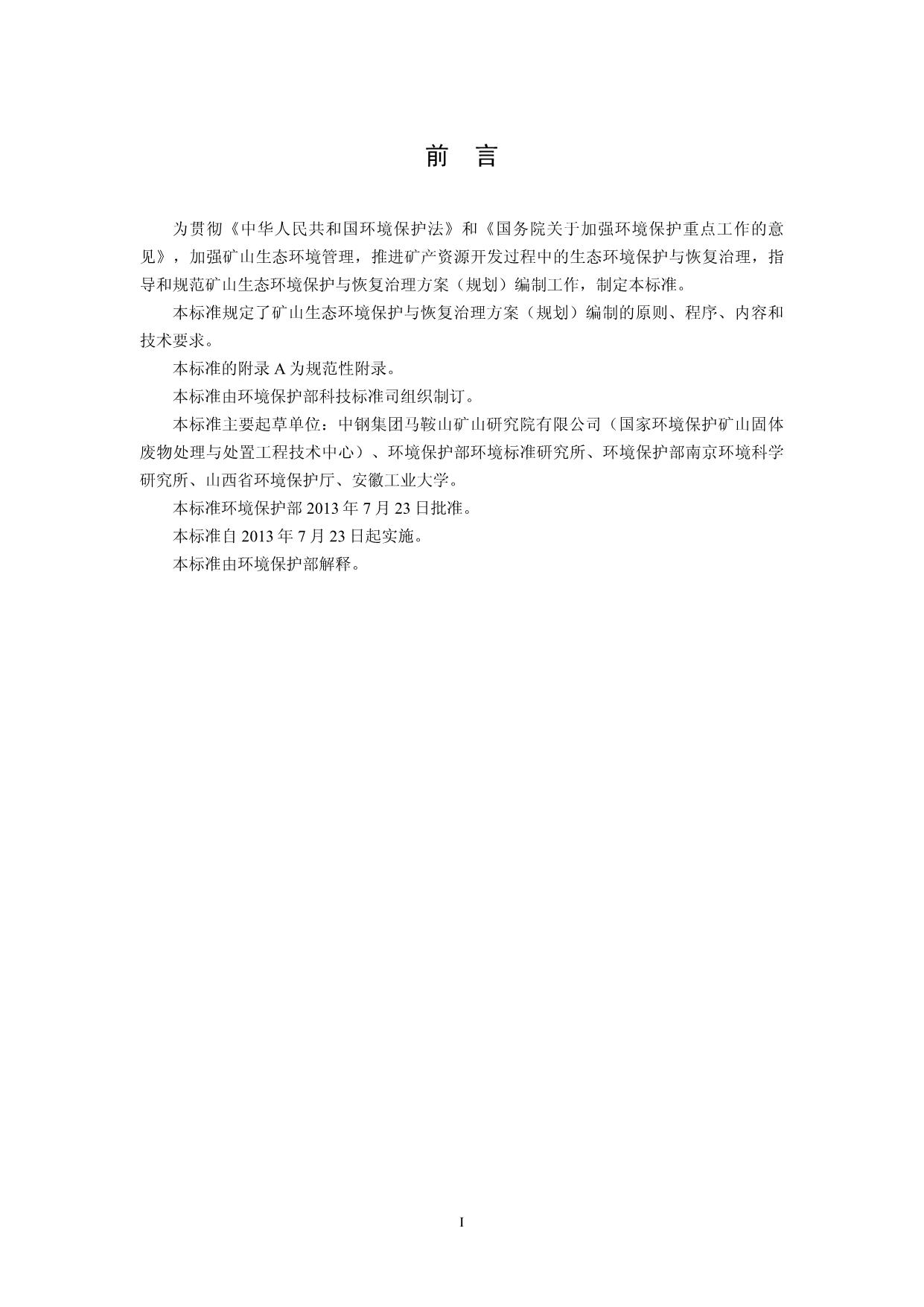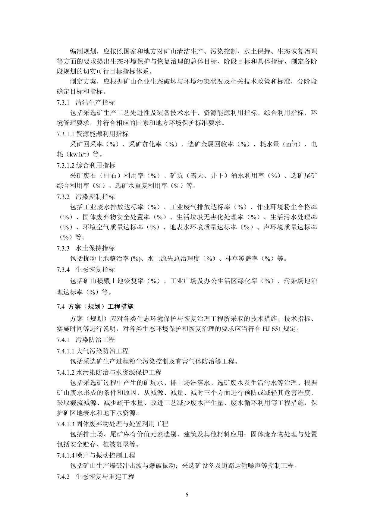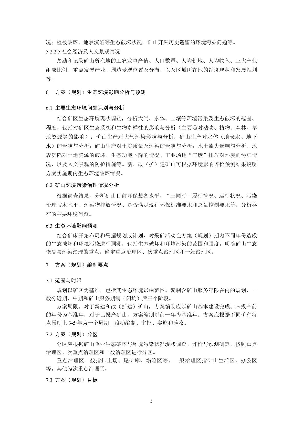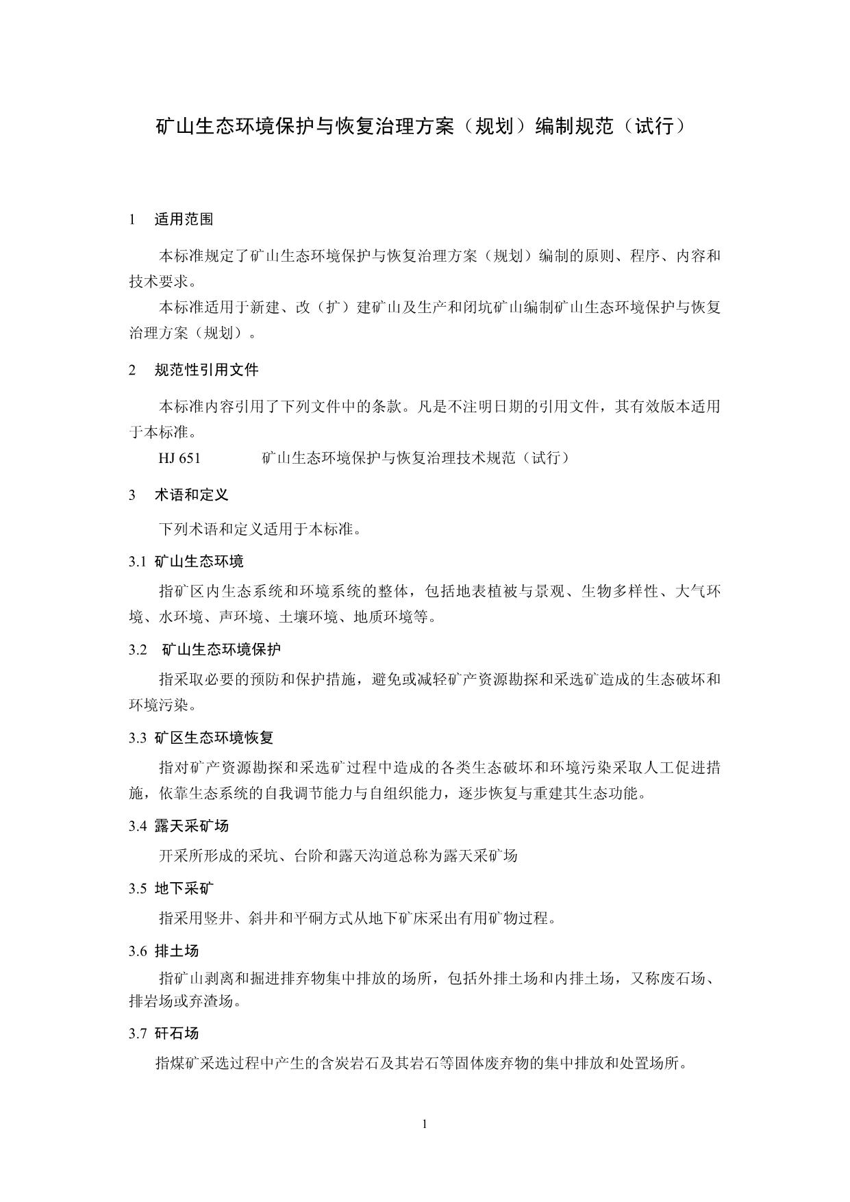 《矿山生态环境保护与恢复治理方案(规划)编制规范(试行)》(HJ652-2013)
