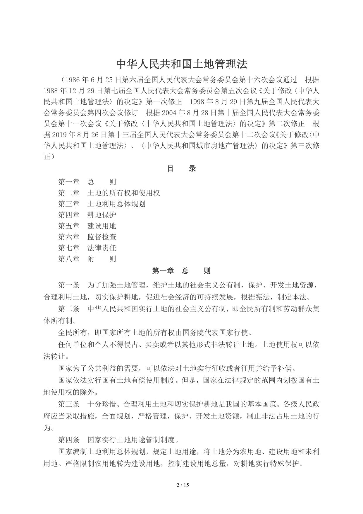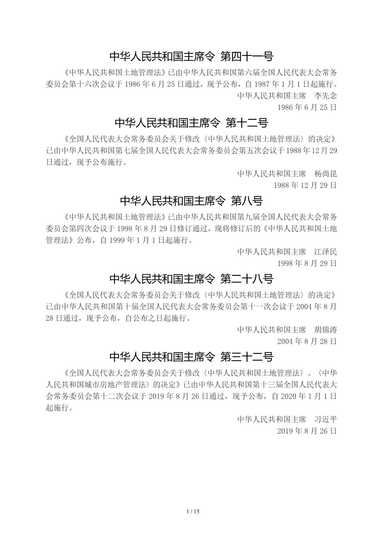 《中华人民共和国土地管理法》(国家主席令〔1986〕第41号,〔2019〕第32号第三次修正)