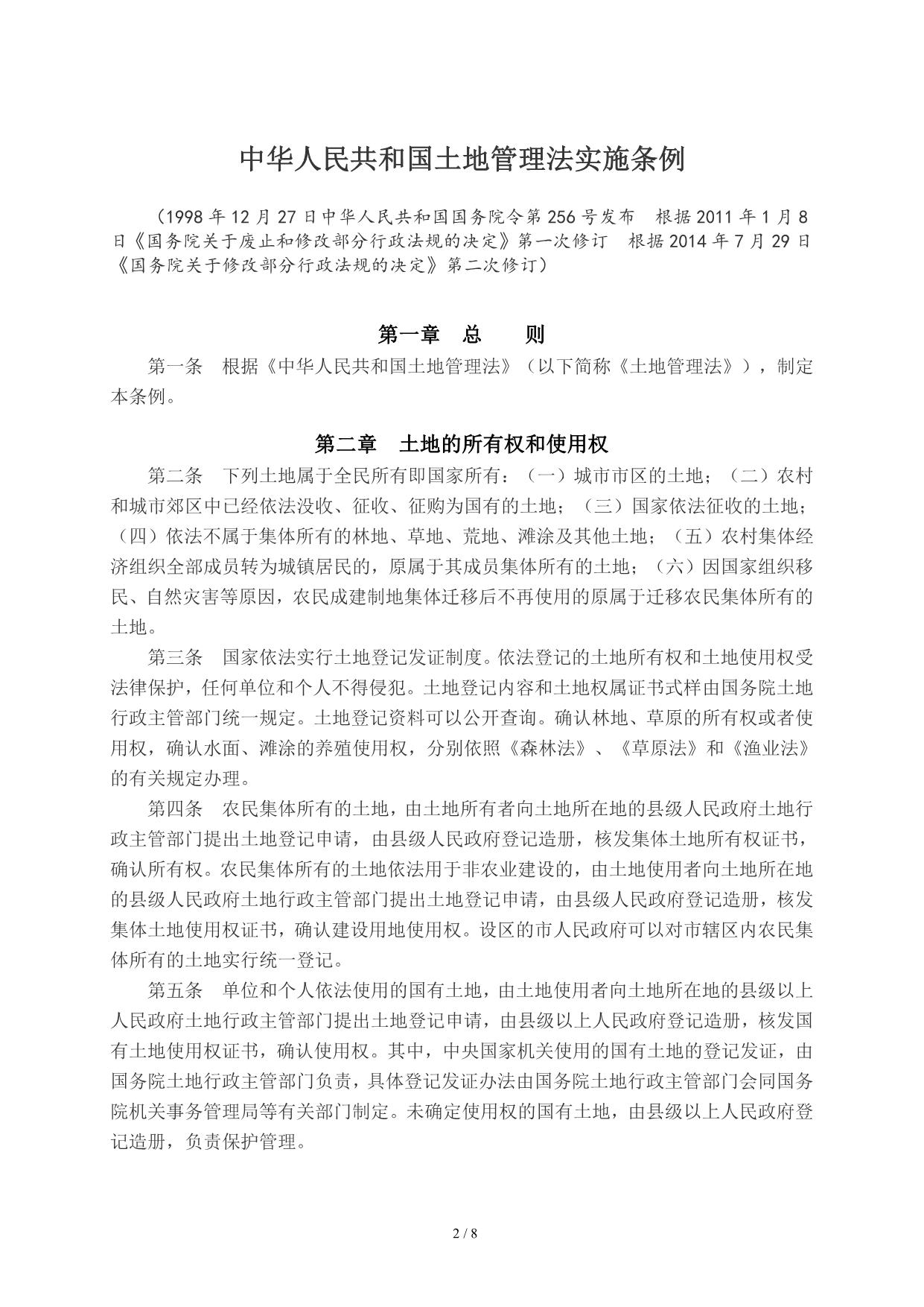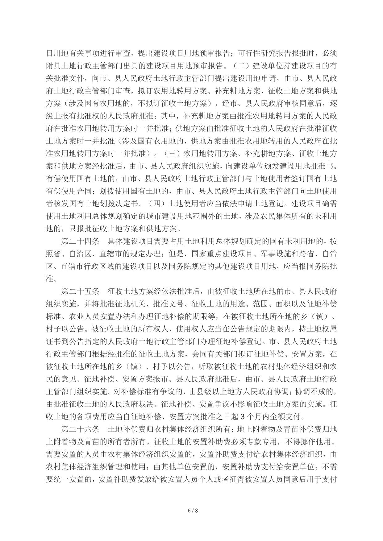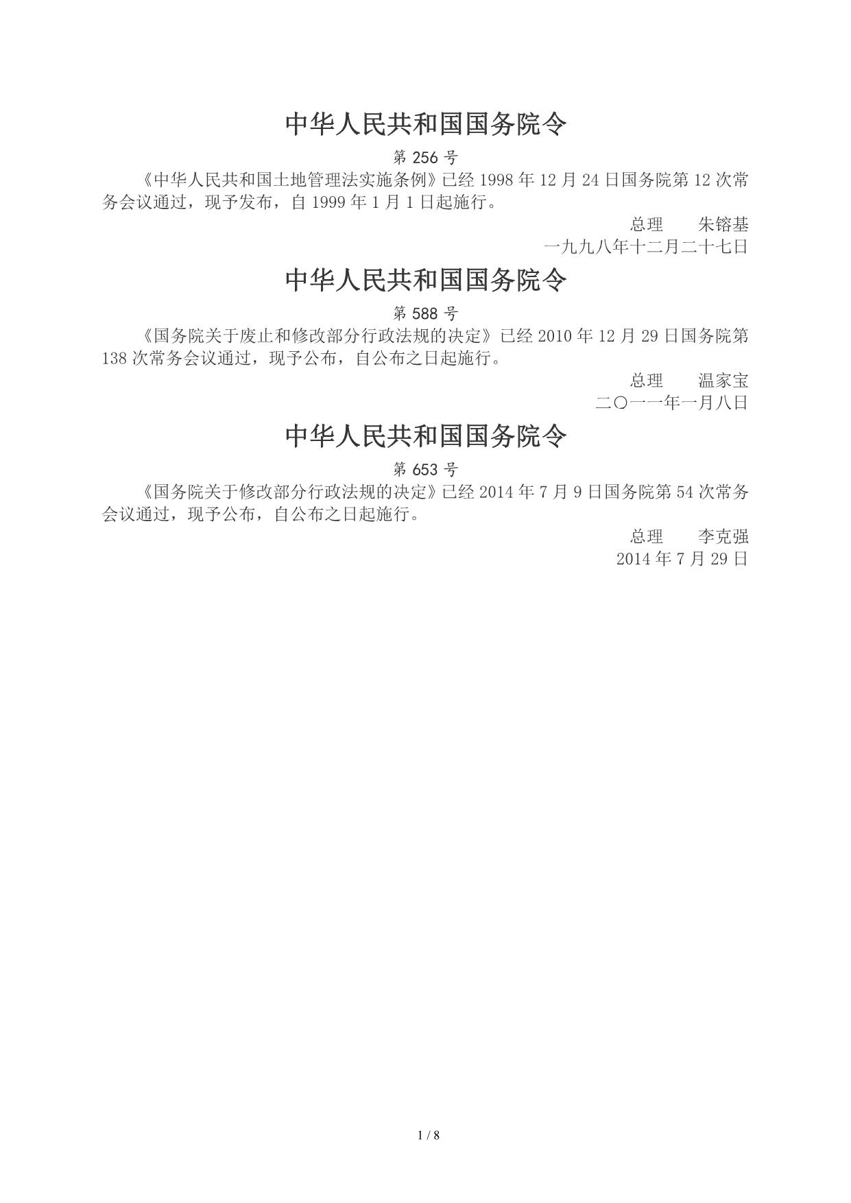 《国务院令第256号中华人民共和国土地管理法实施条例》(第653号第二次修订)