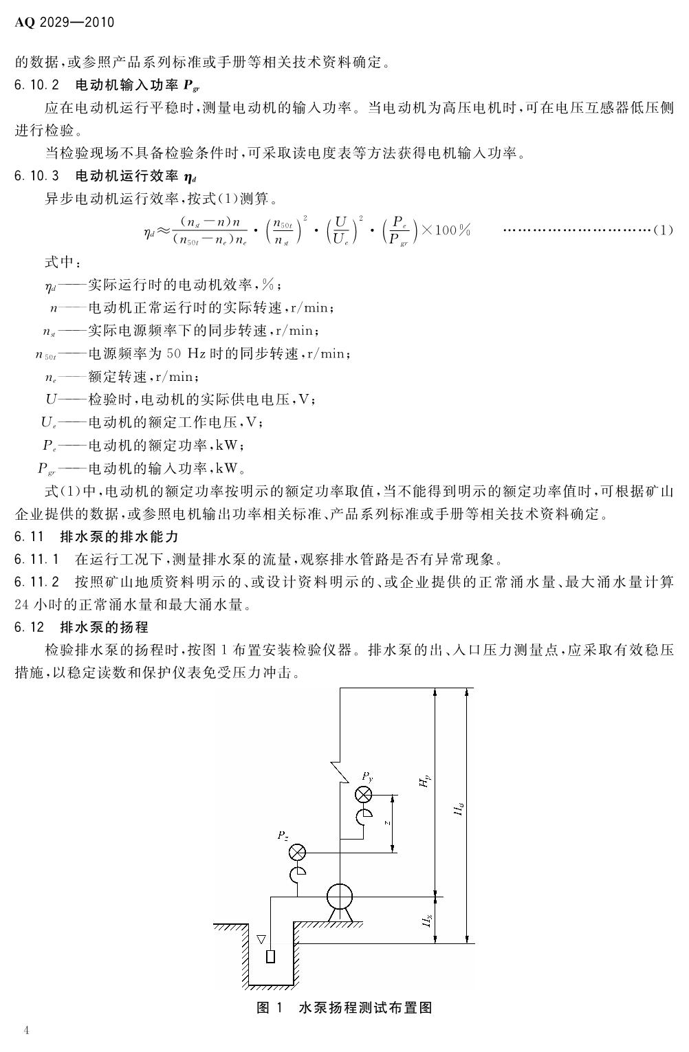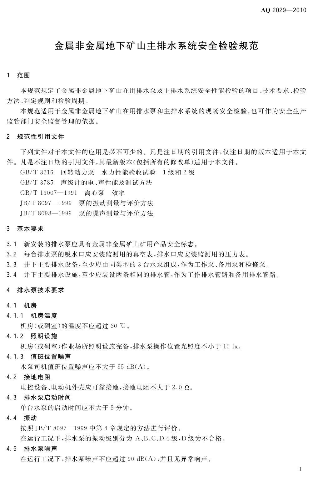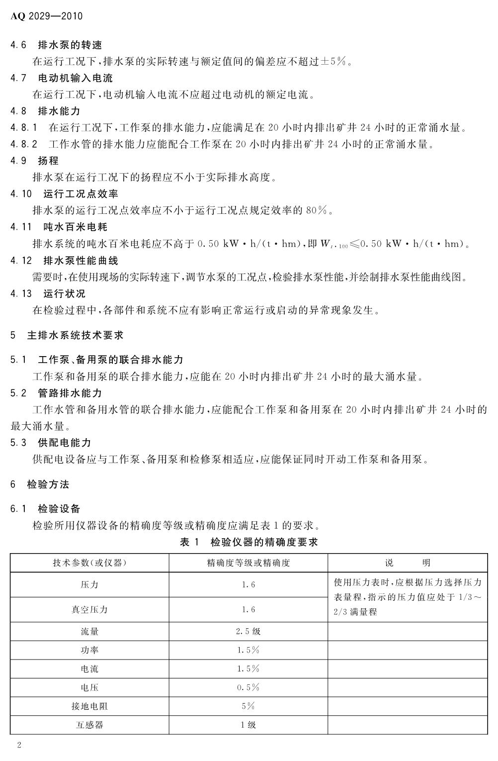 《金属非金属地下矿山主排水系统安全检验规范》(AQ2029-2010)