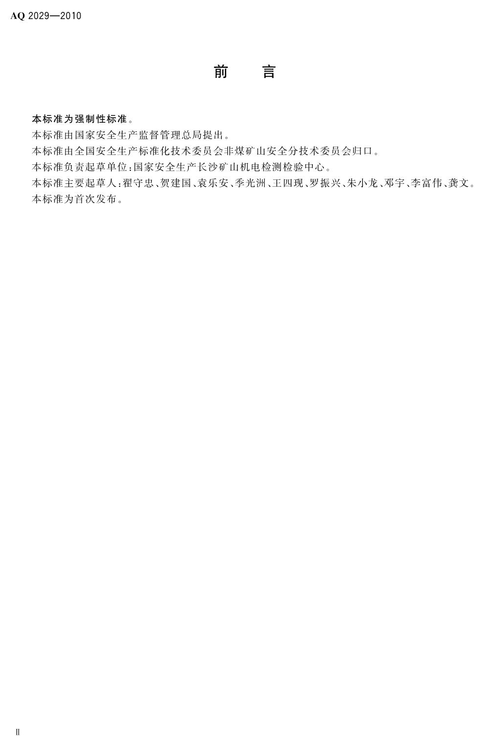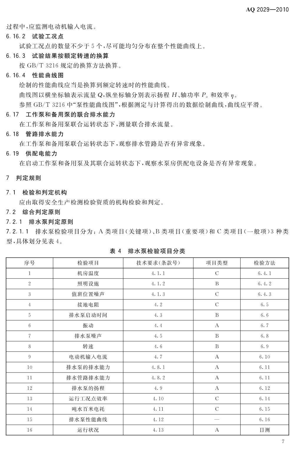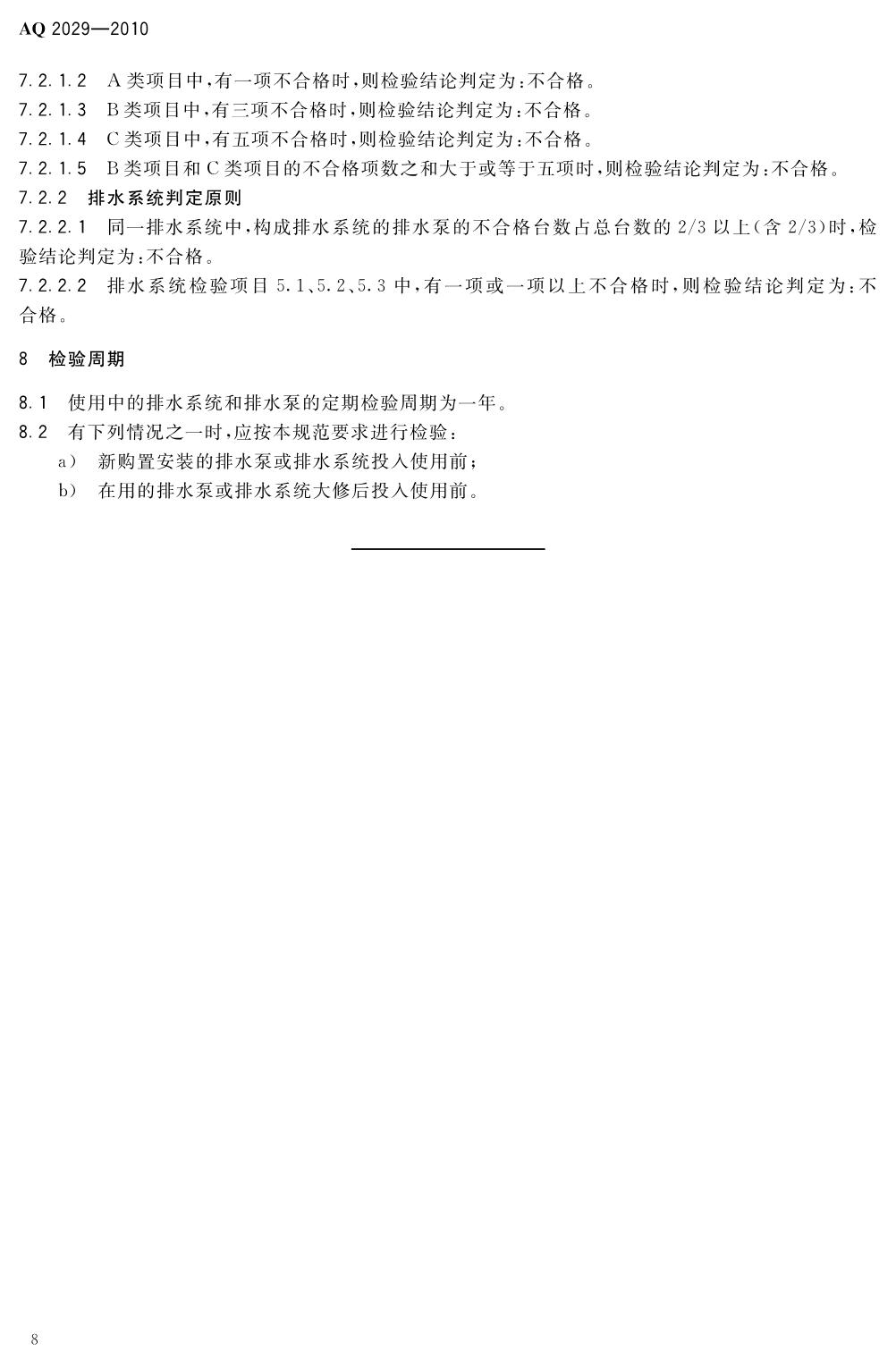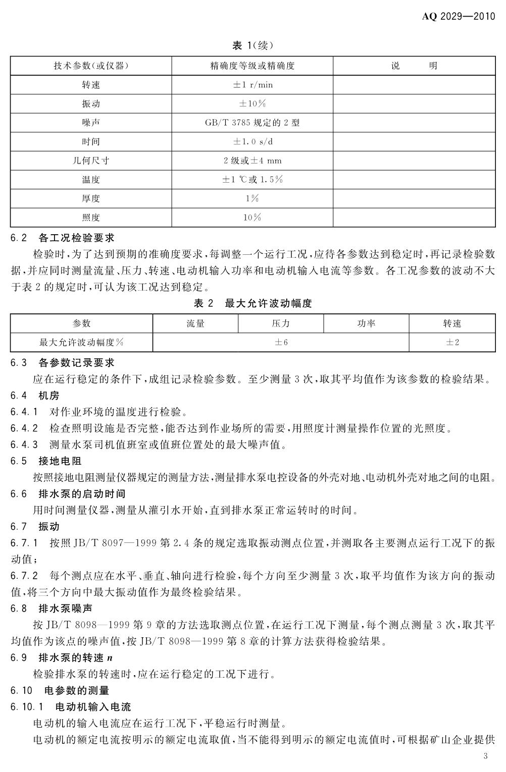《金属非金属地下矿山主排水系统安全检验规范》(AQ2029-2010)