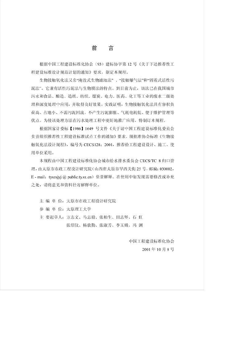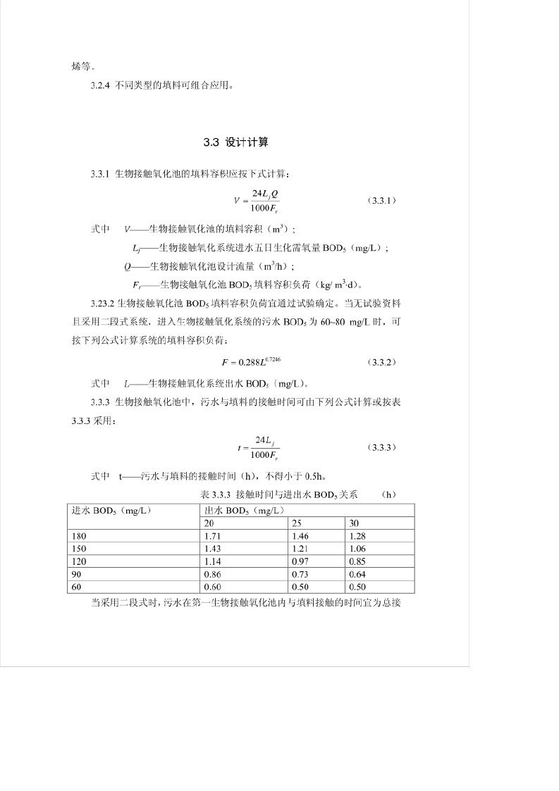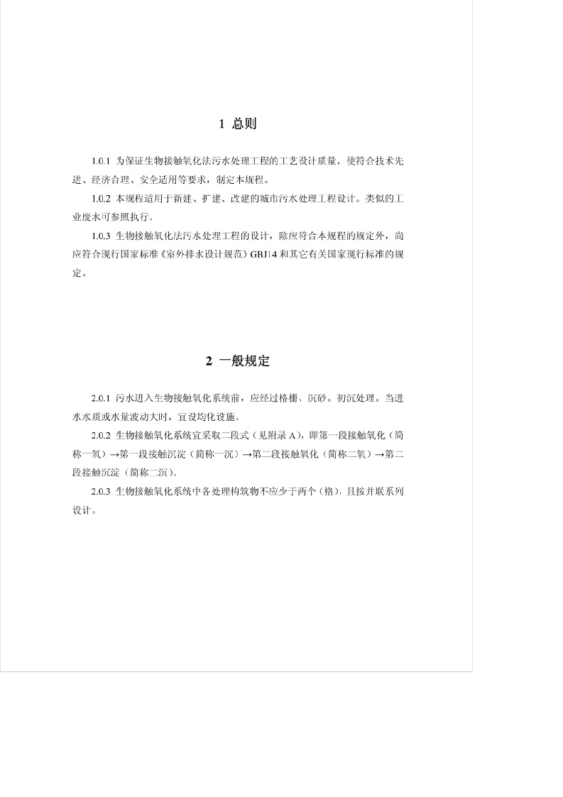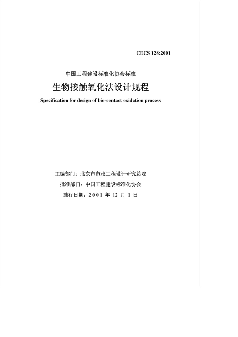 《生物接触氧化法设计规程》(CECS128-2001)