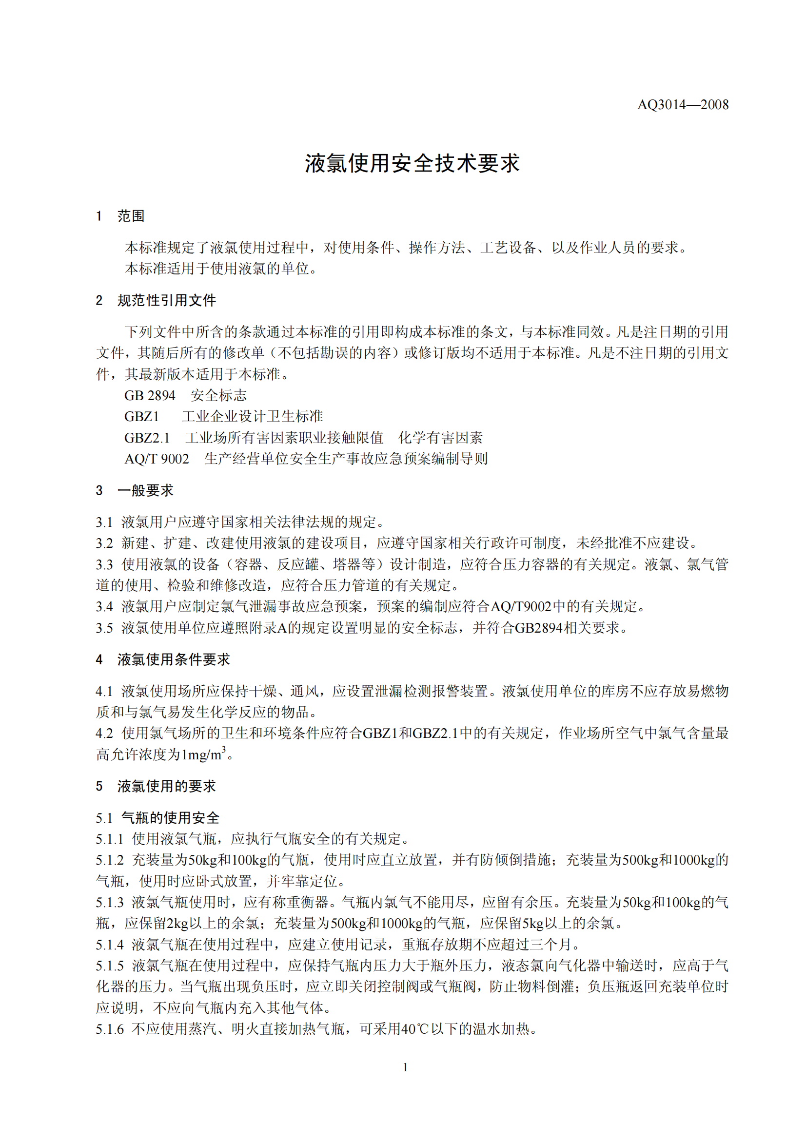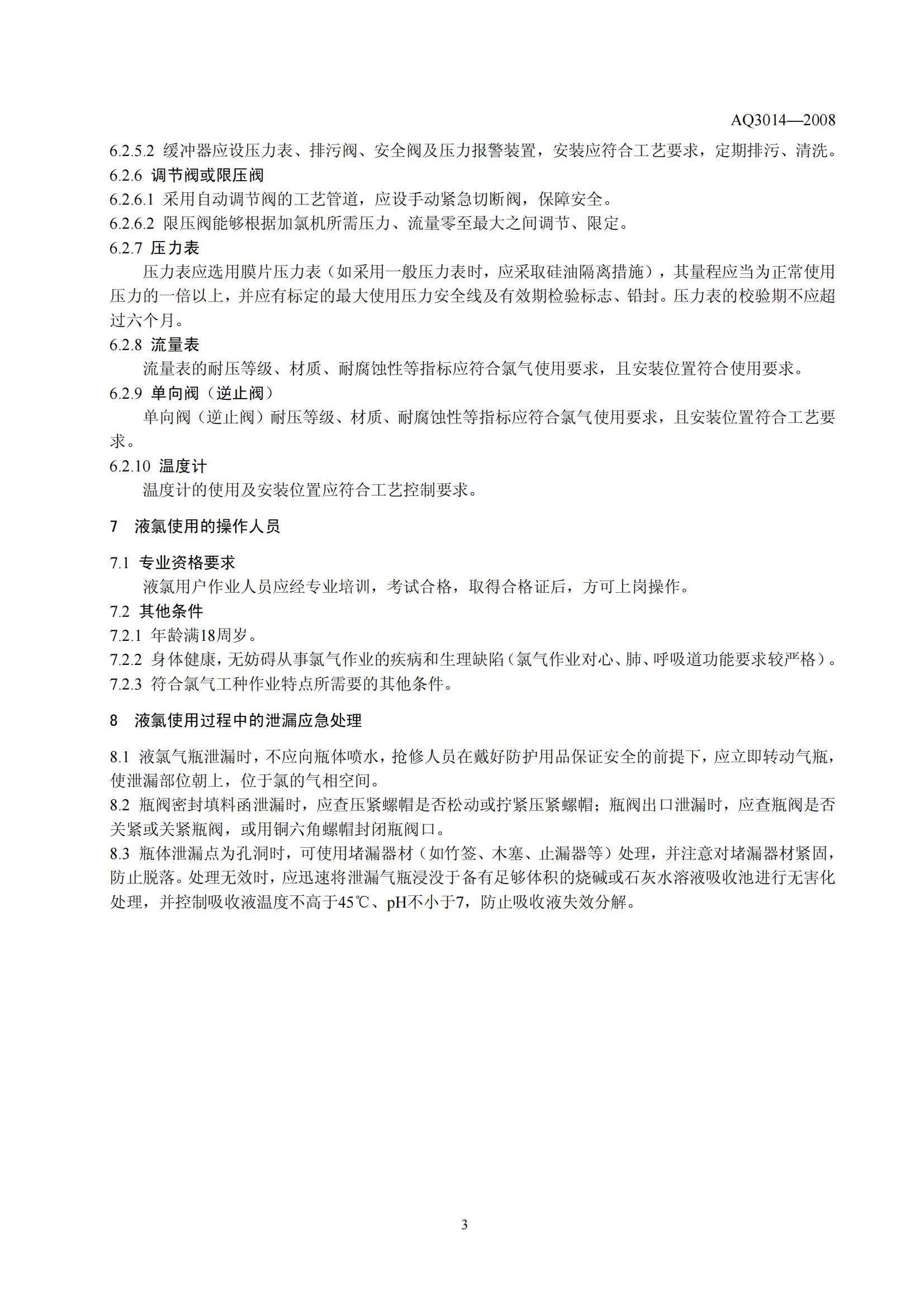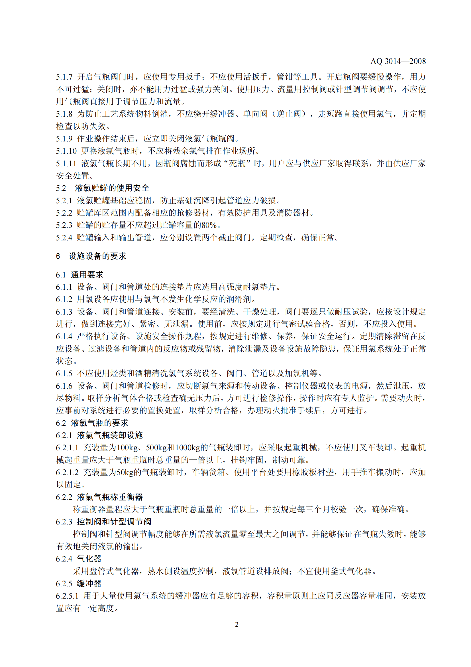 《液氯使用安全技术要求》(AQ3014-2008)