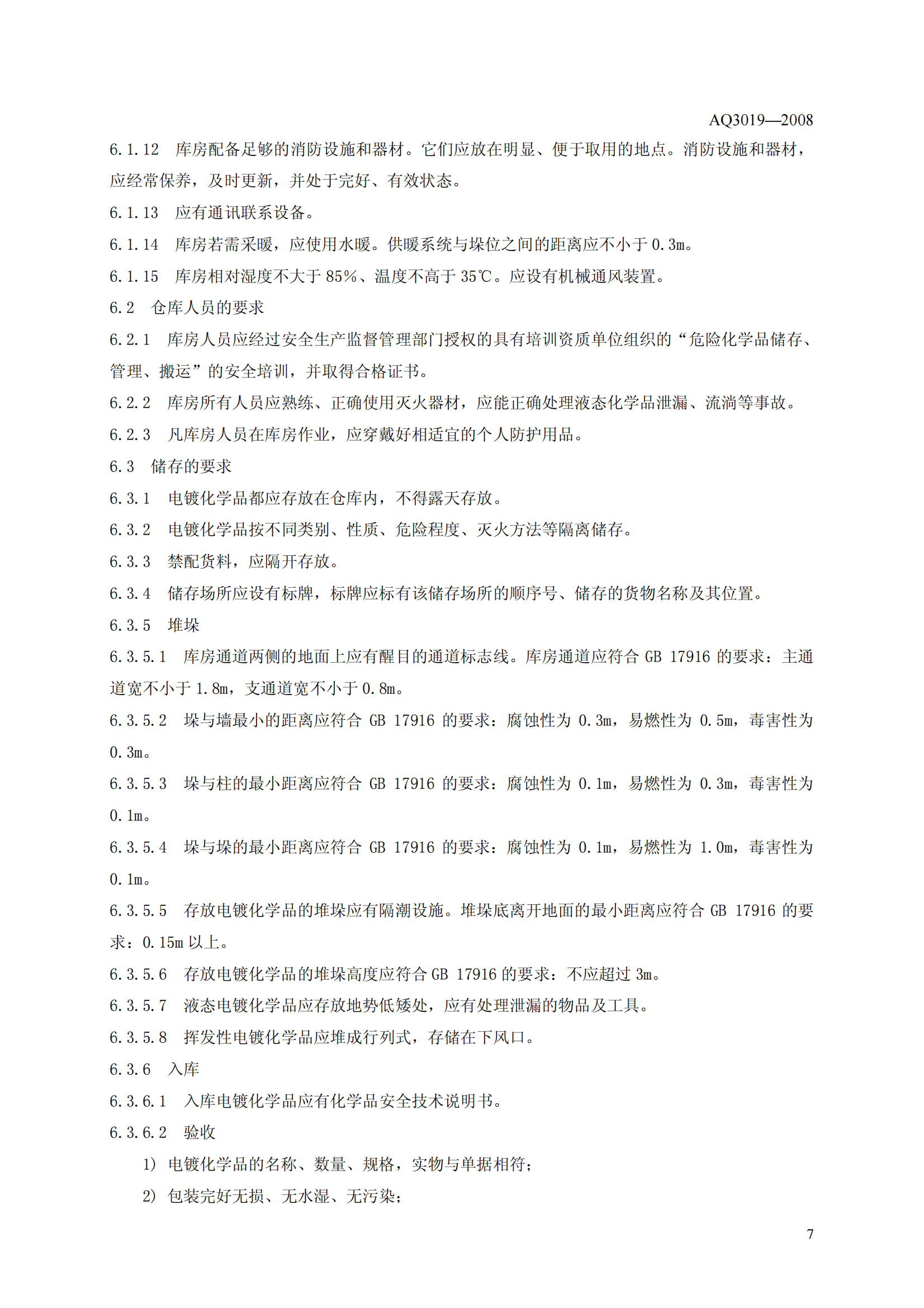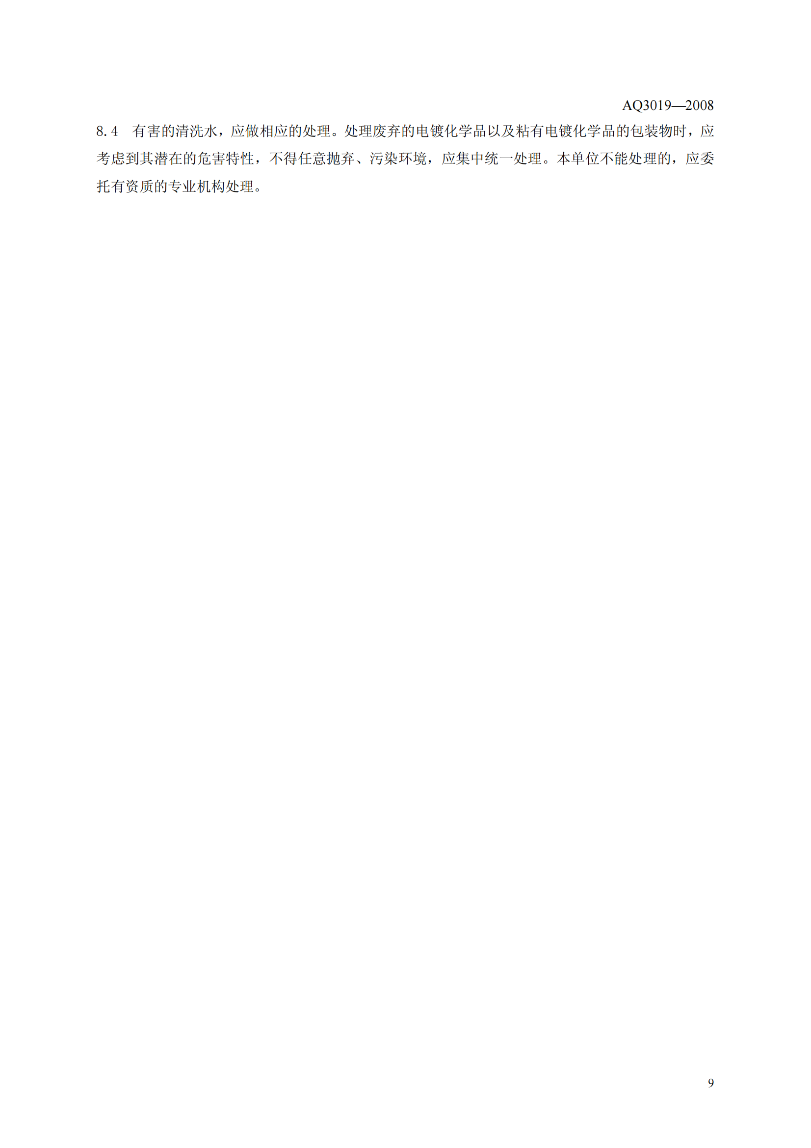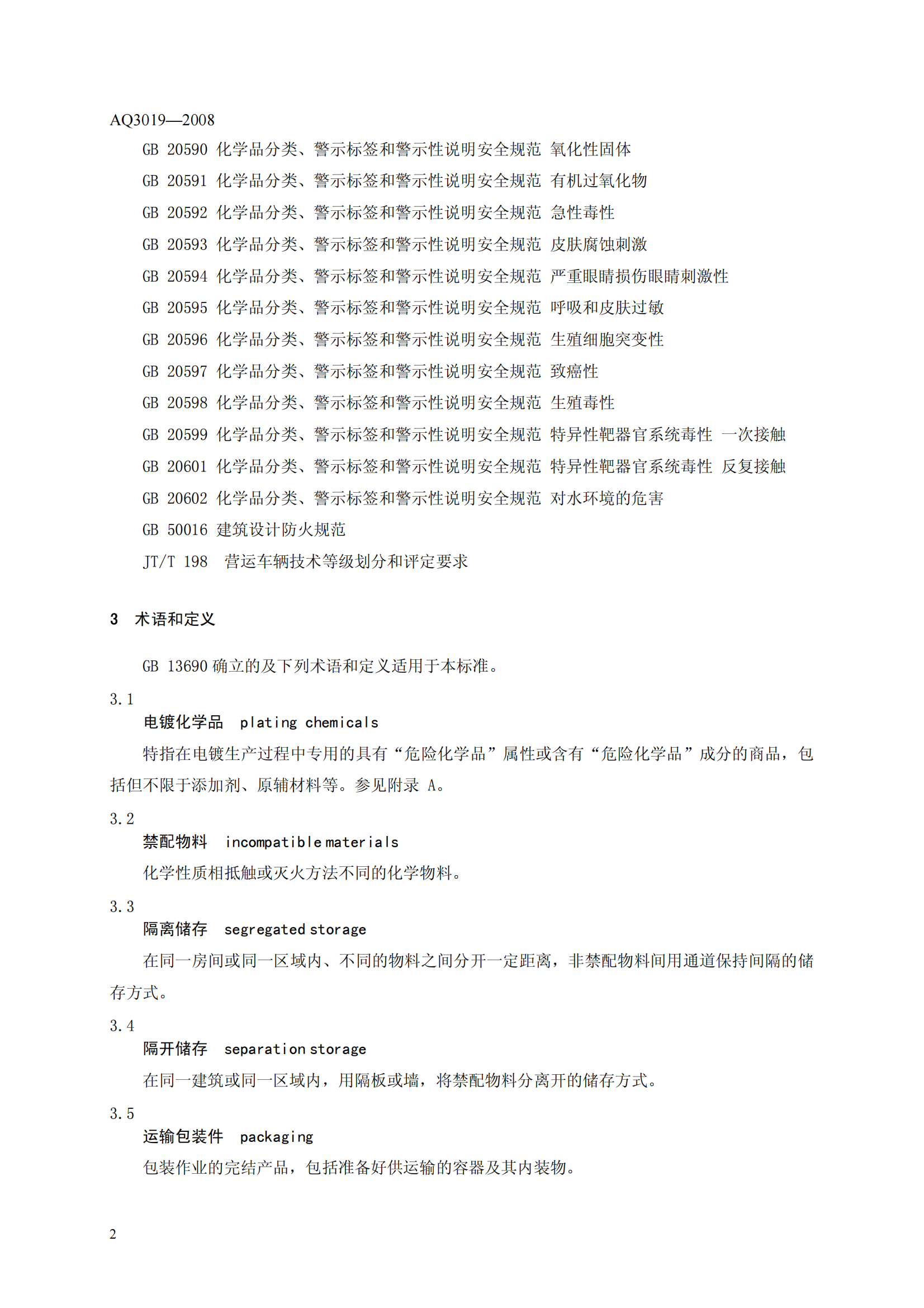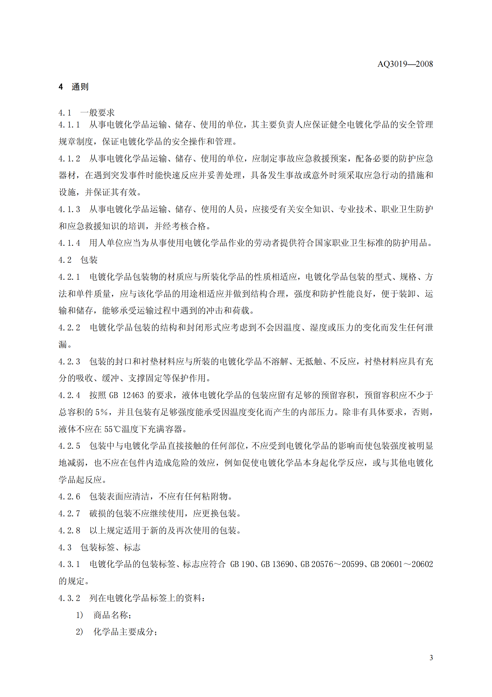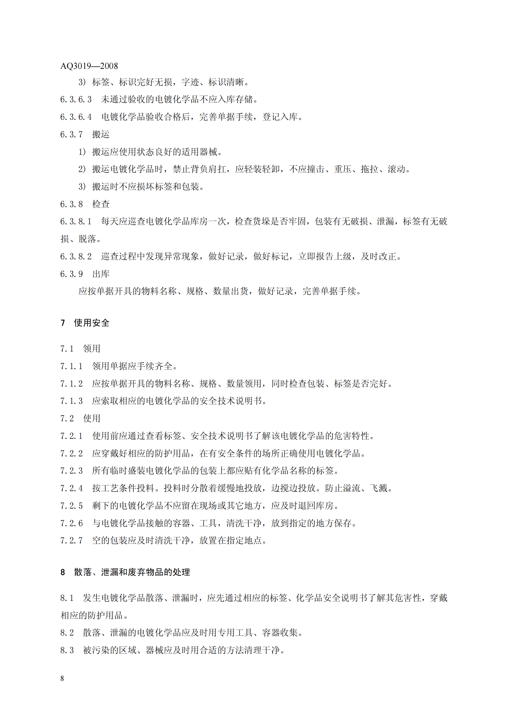 《电镀化学品运输、储存、使用安全规程》(AQ3019-2008)