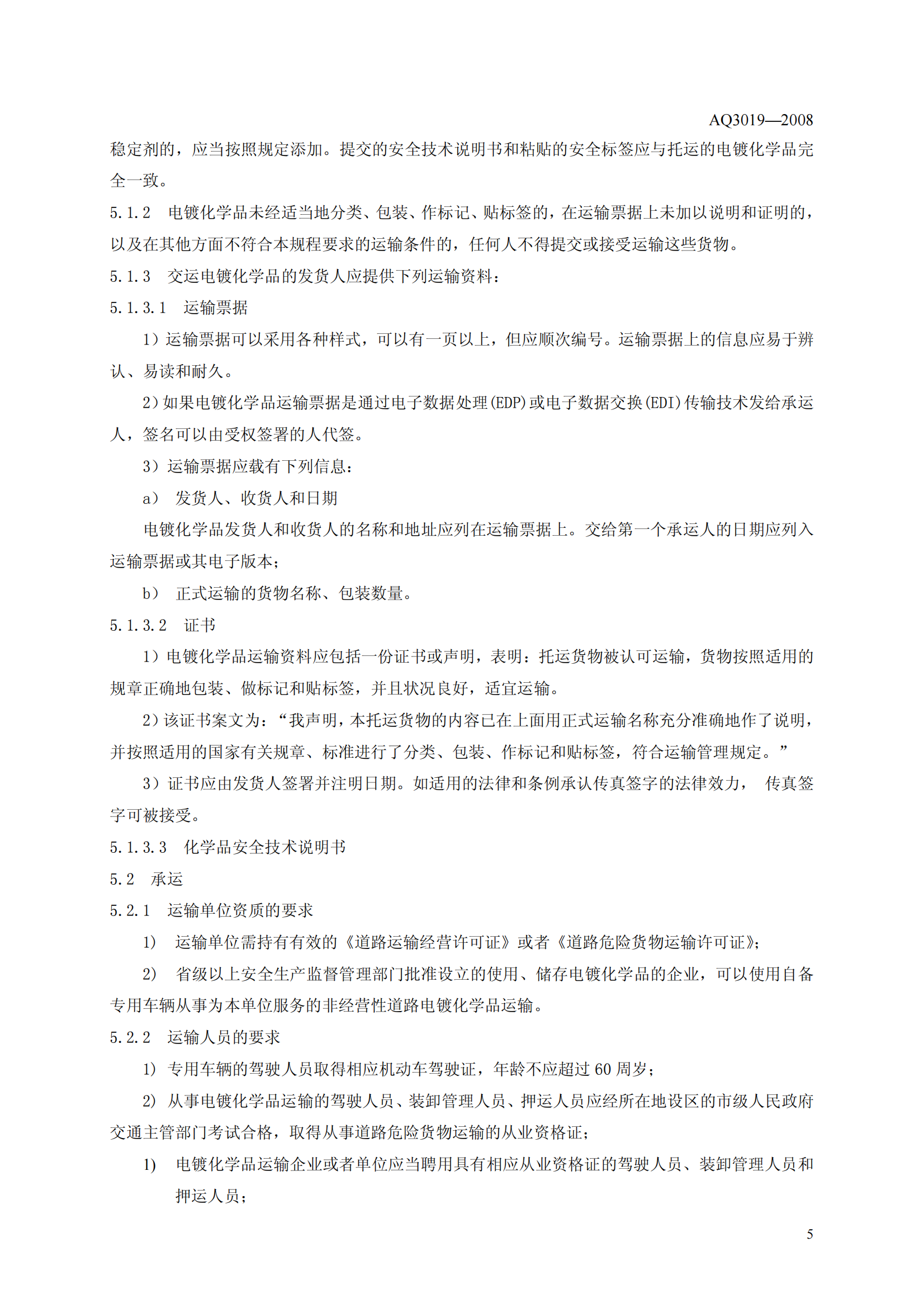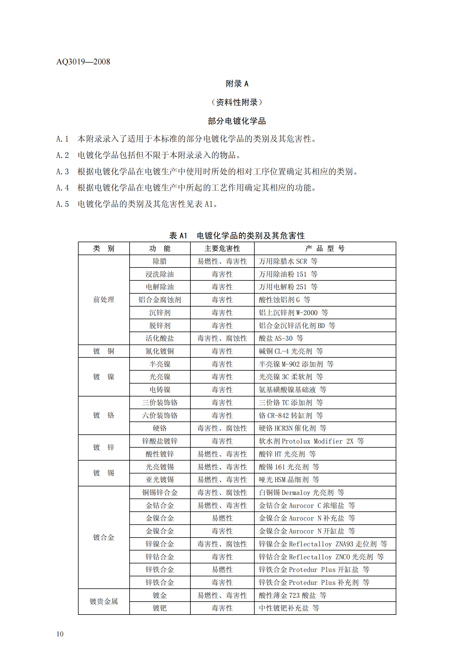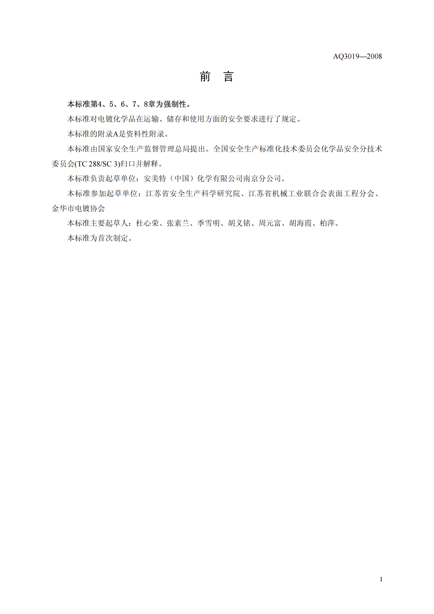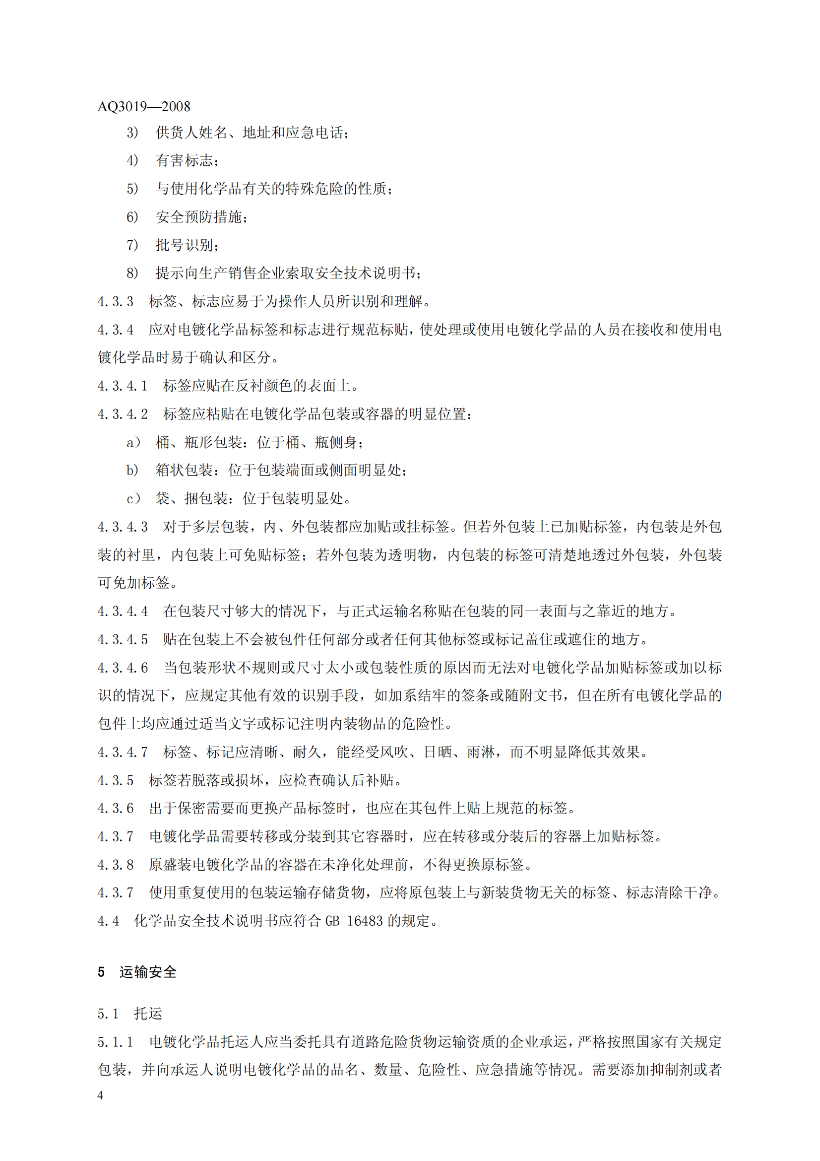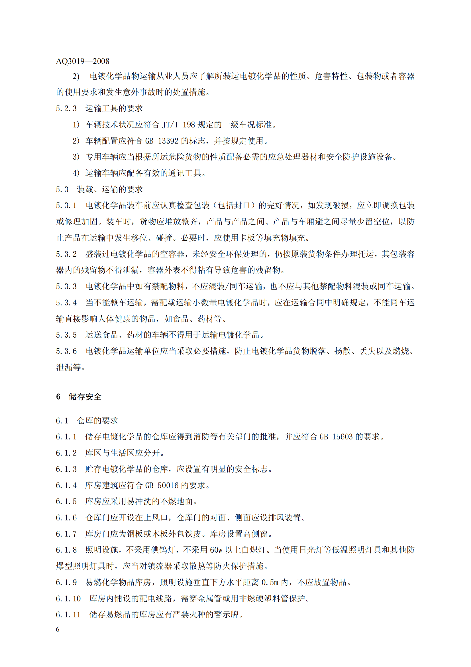 《电镀化学品运输、储存、使用安全规程》(AQ3019-2008)