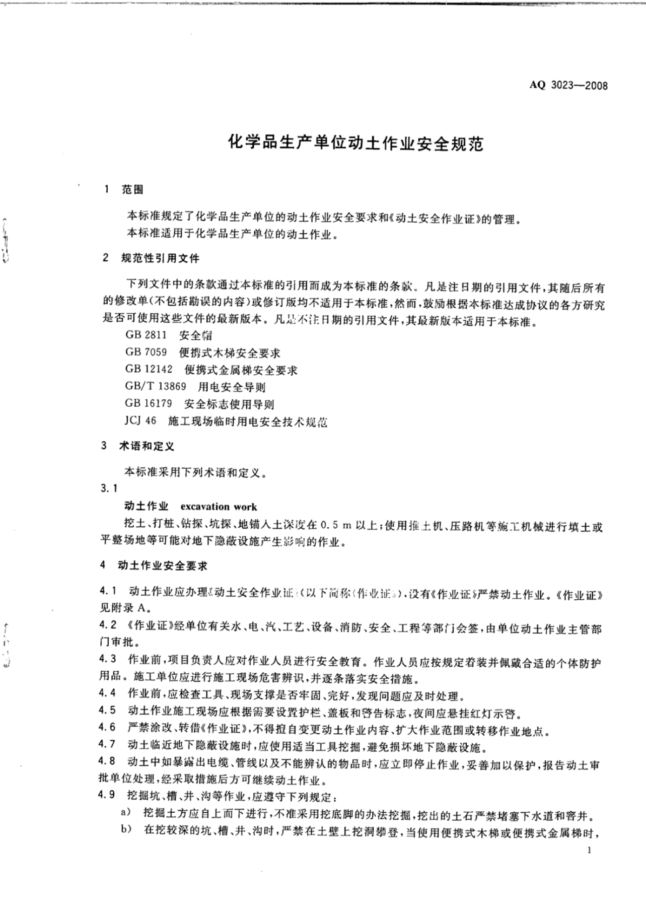 《化学品生产单位动土作业安全规范》(AQ3023-2008)