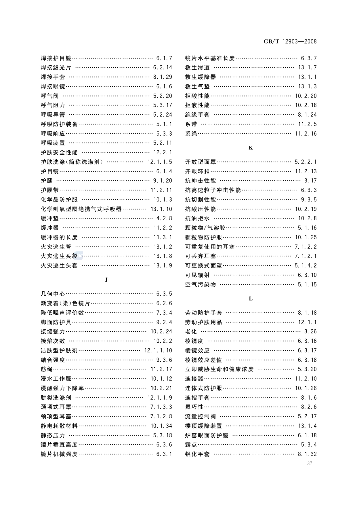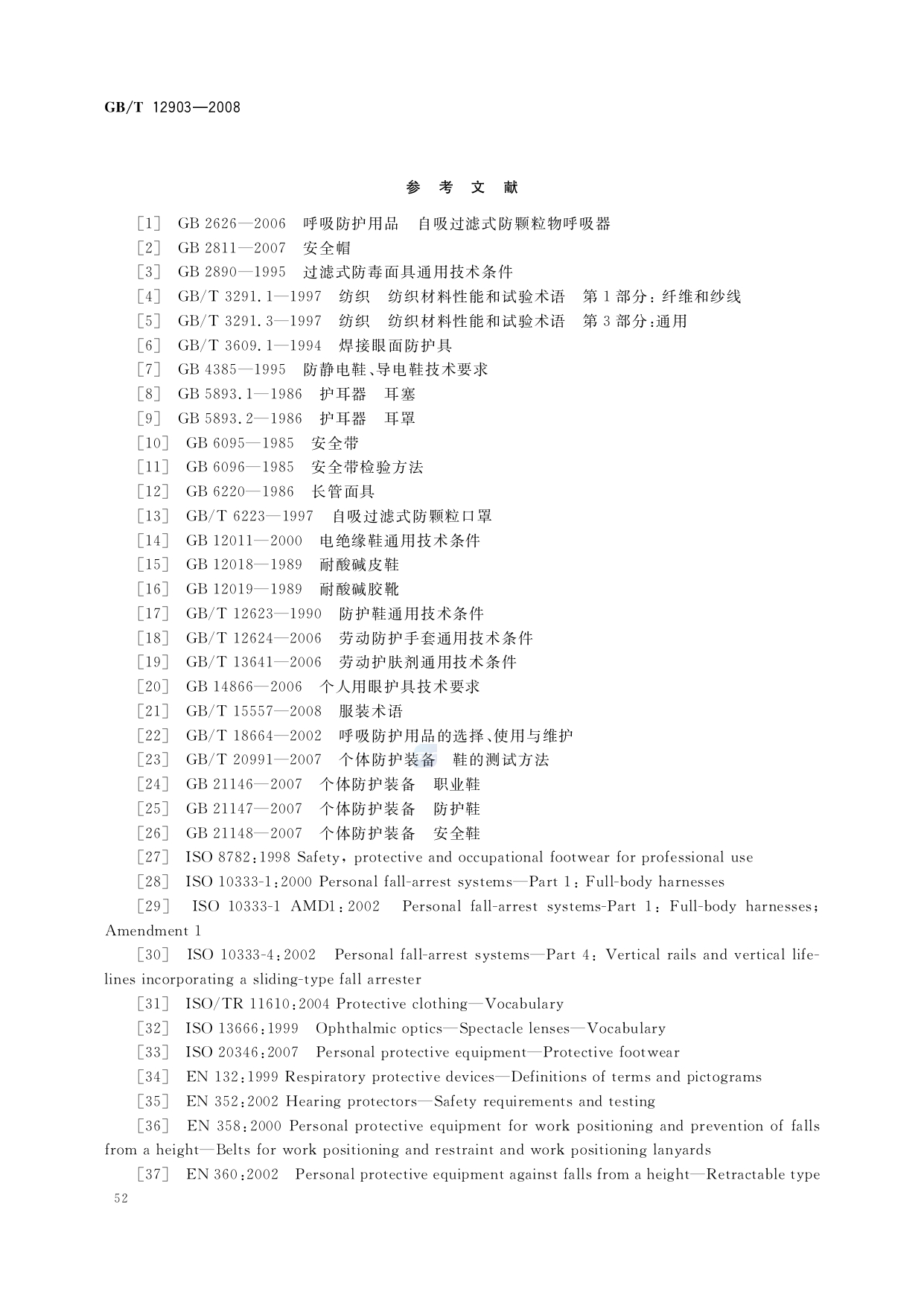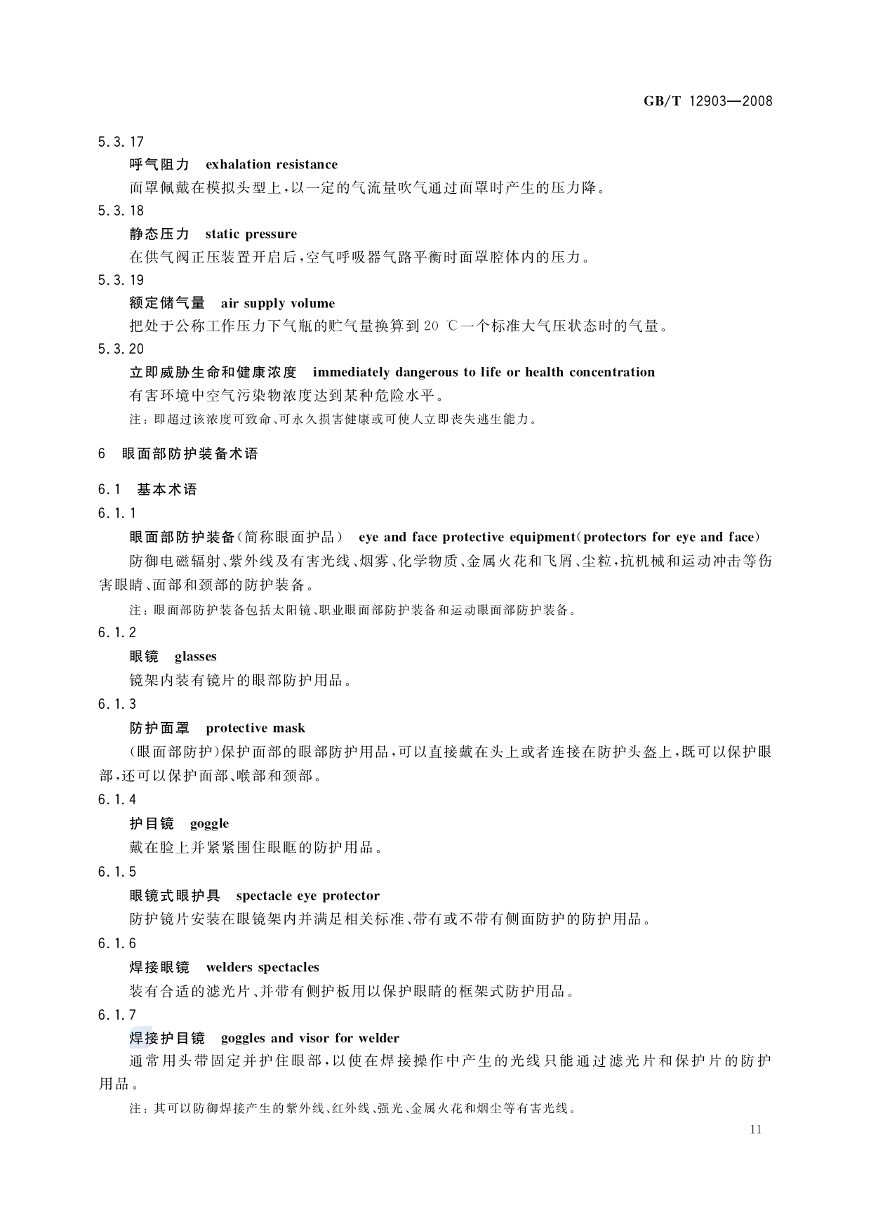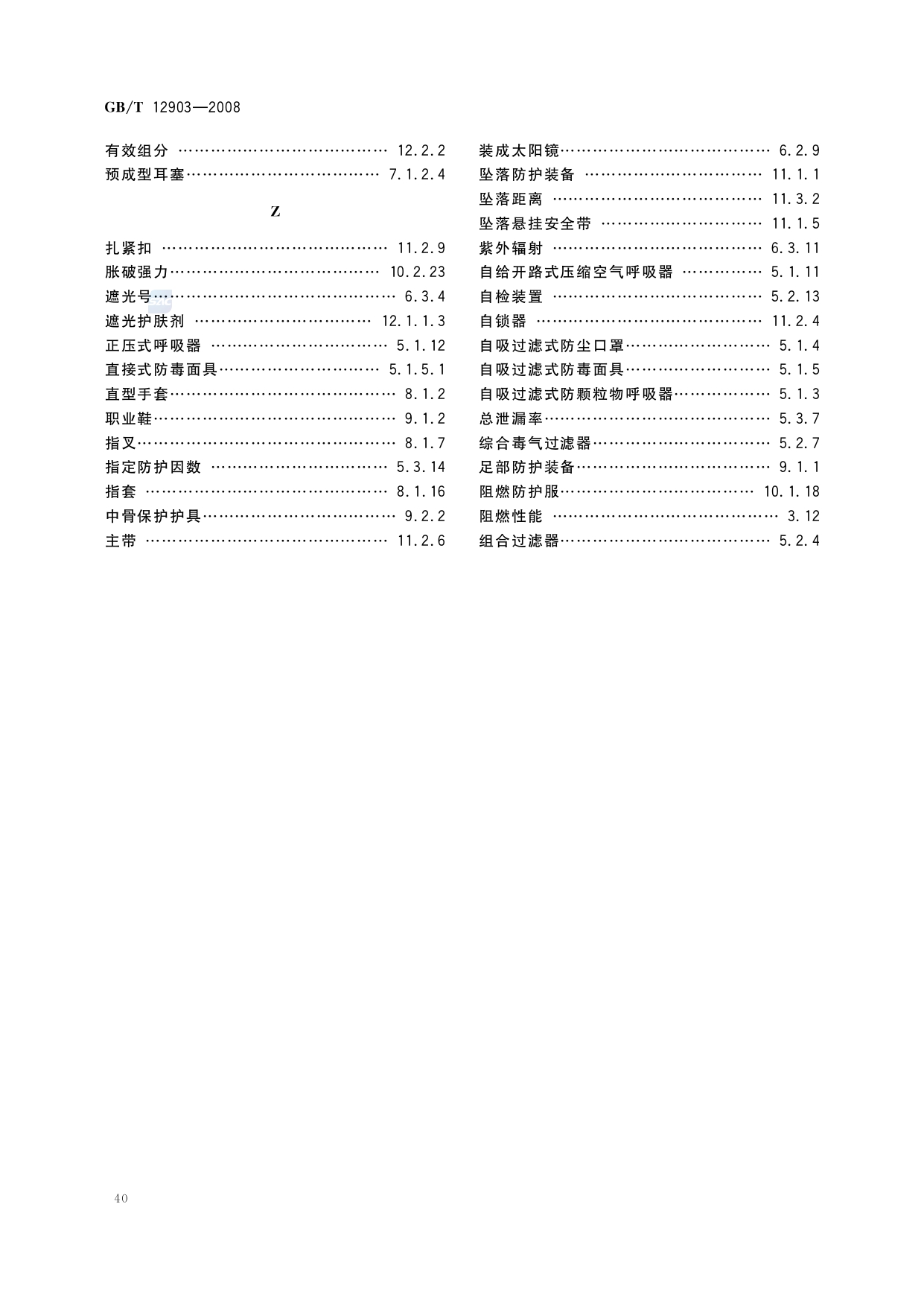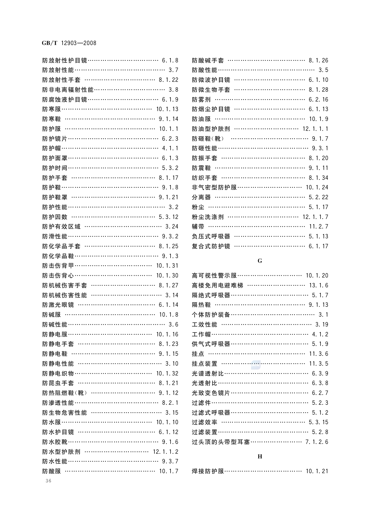 《个体防护装备术语》(GB/T12903-2008)