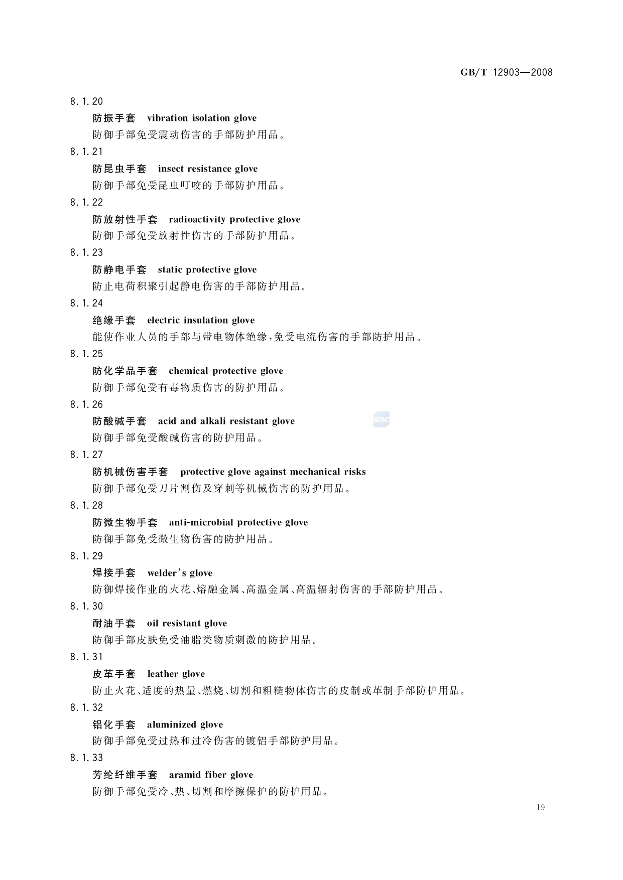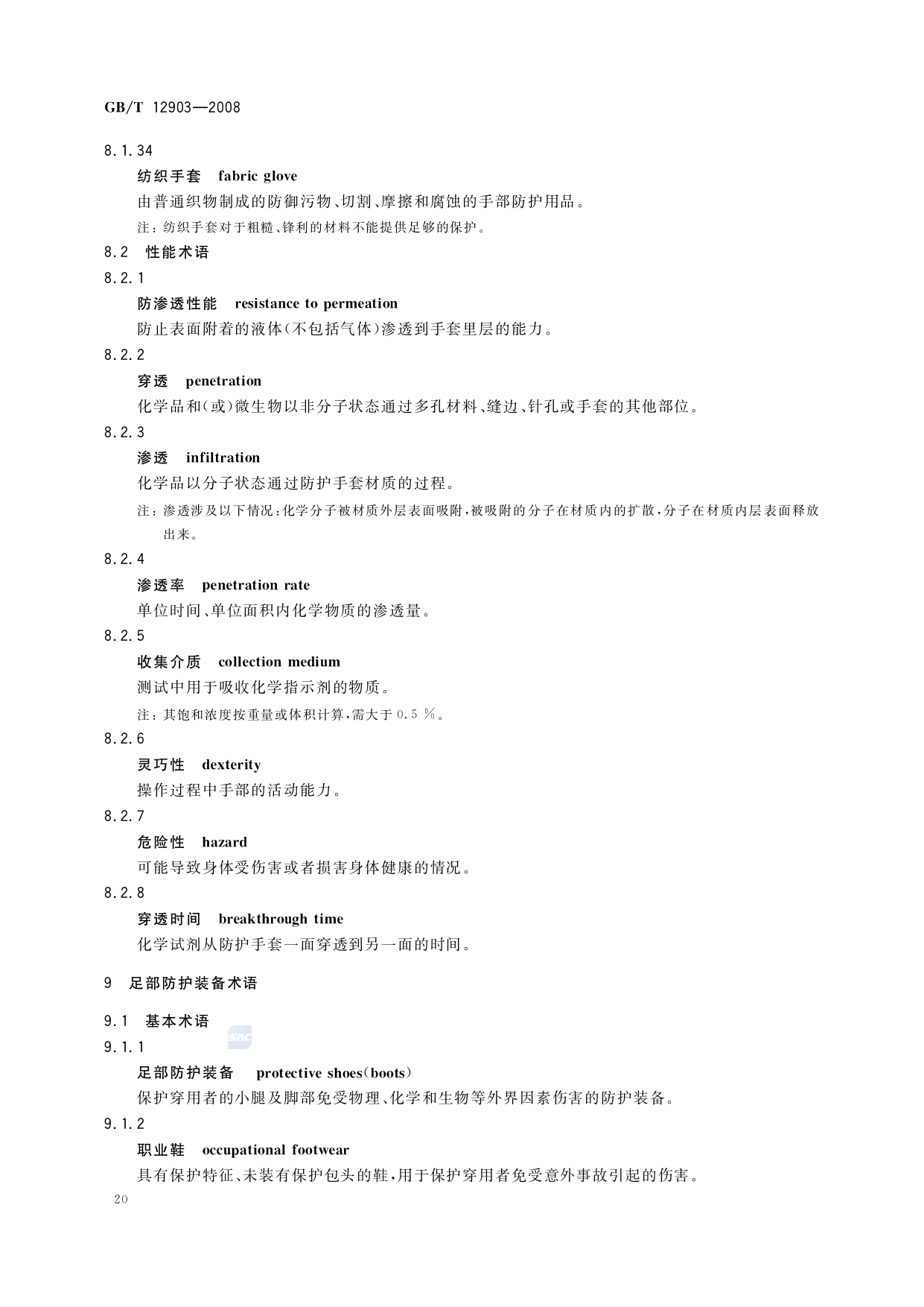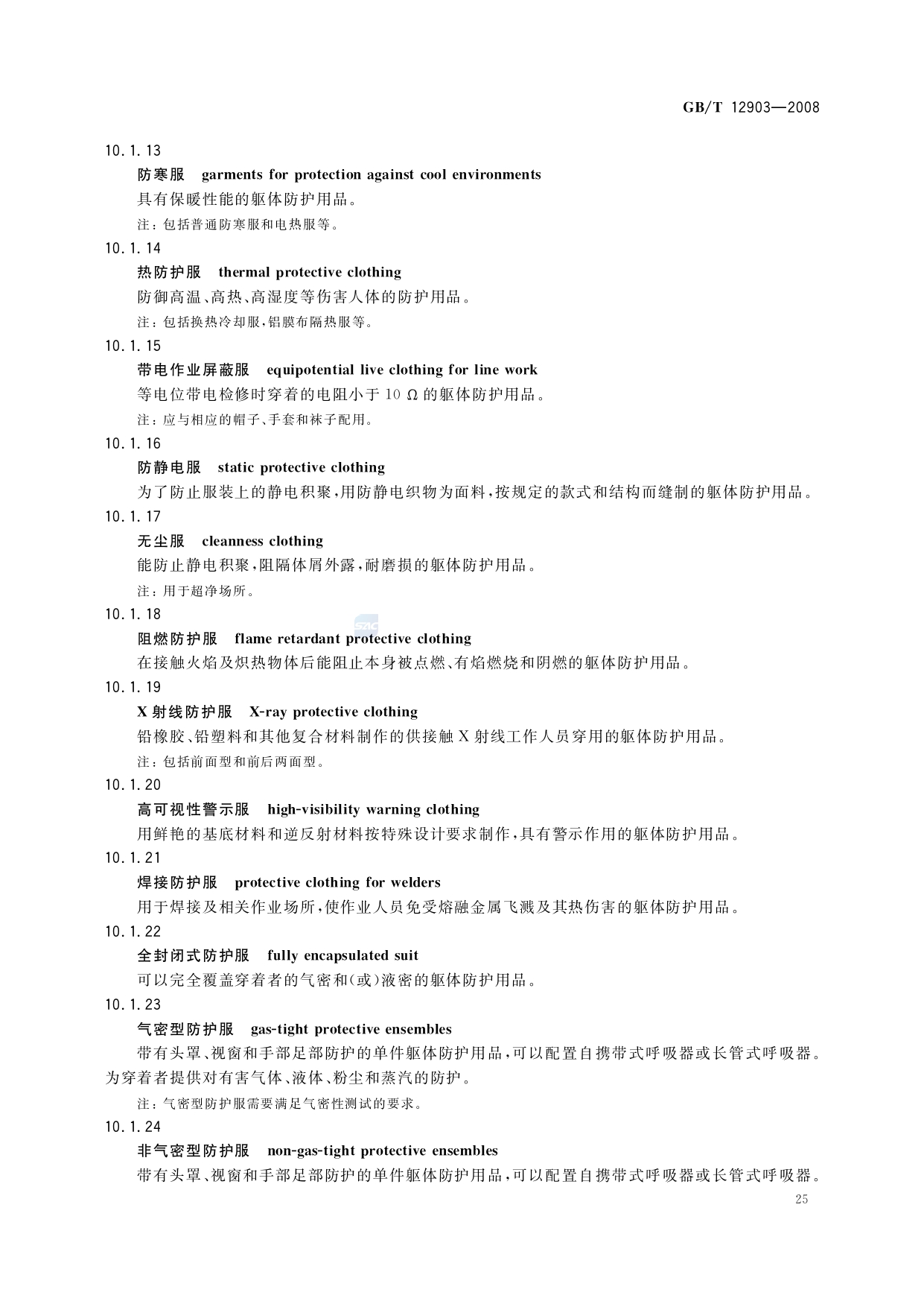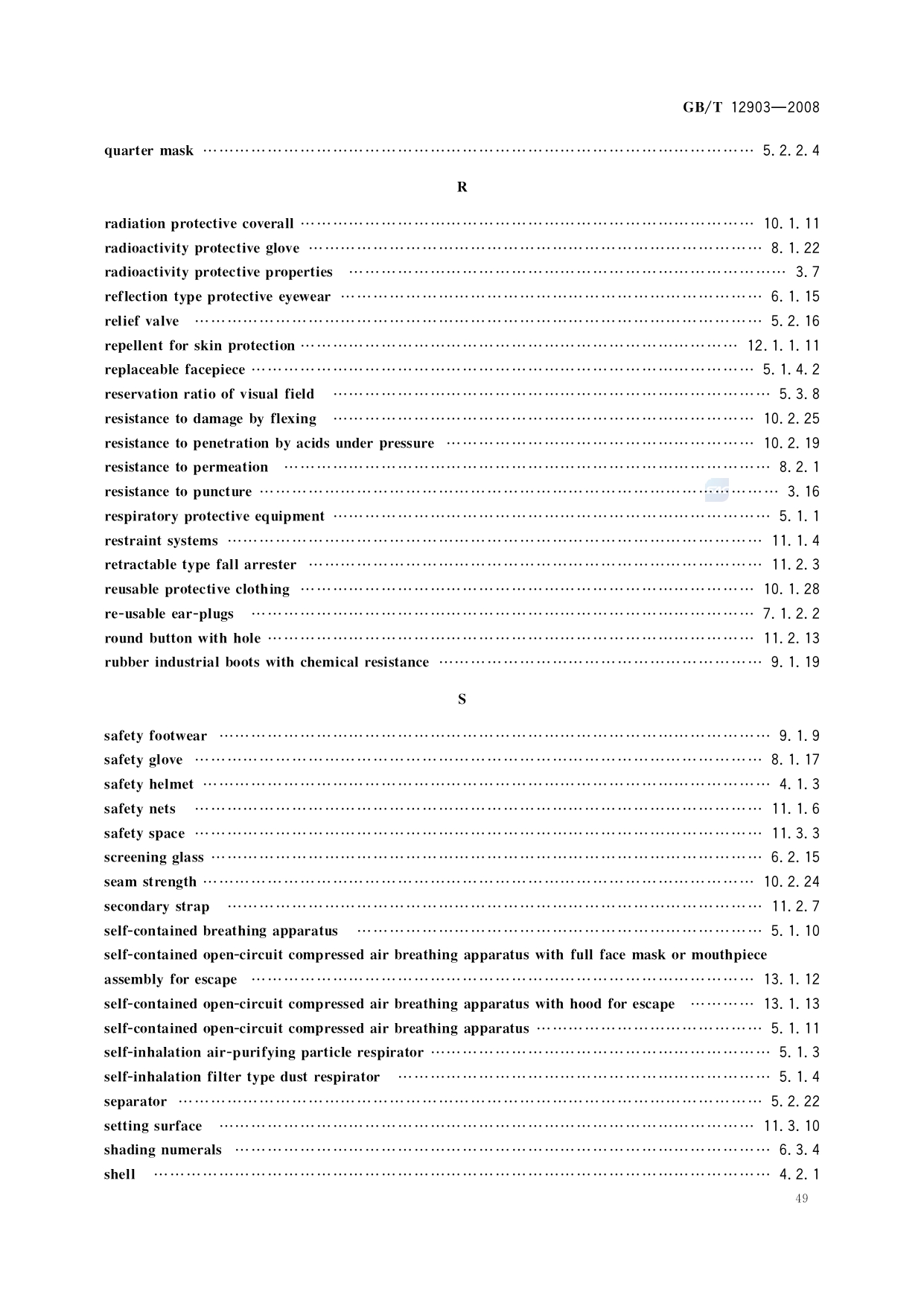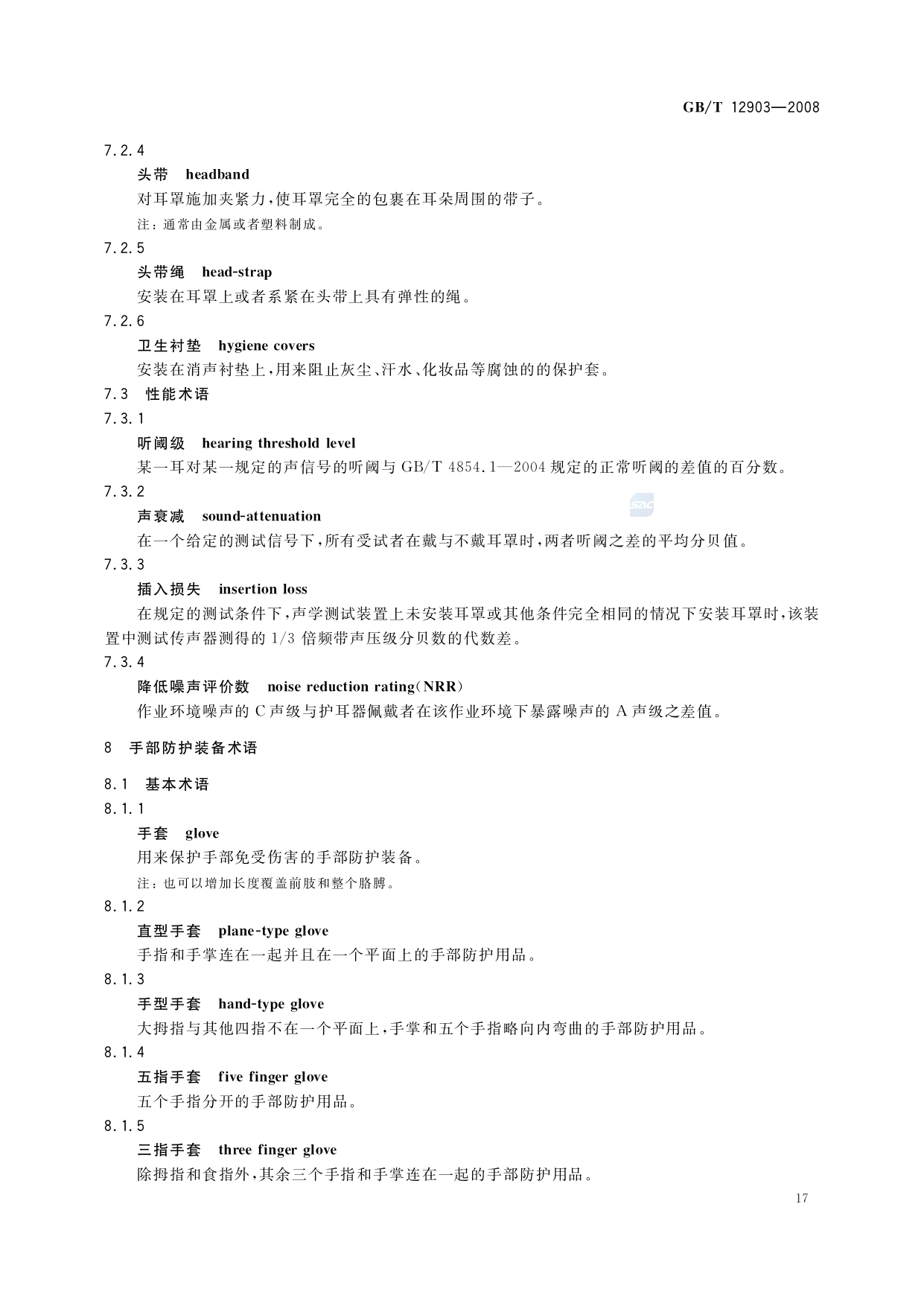 《个体防护装备术语》(GB/T12903-2008)